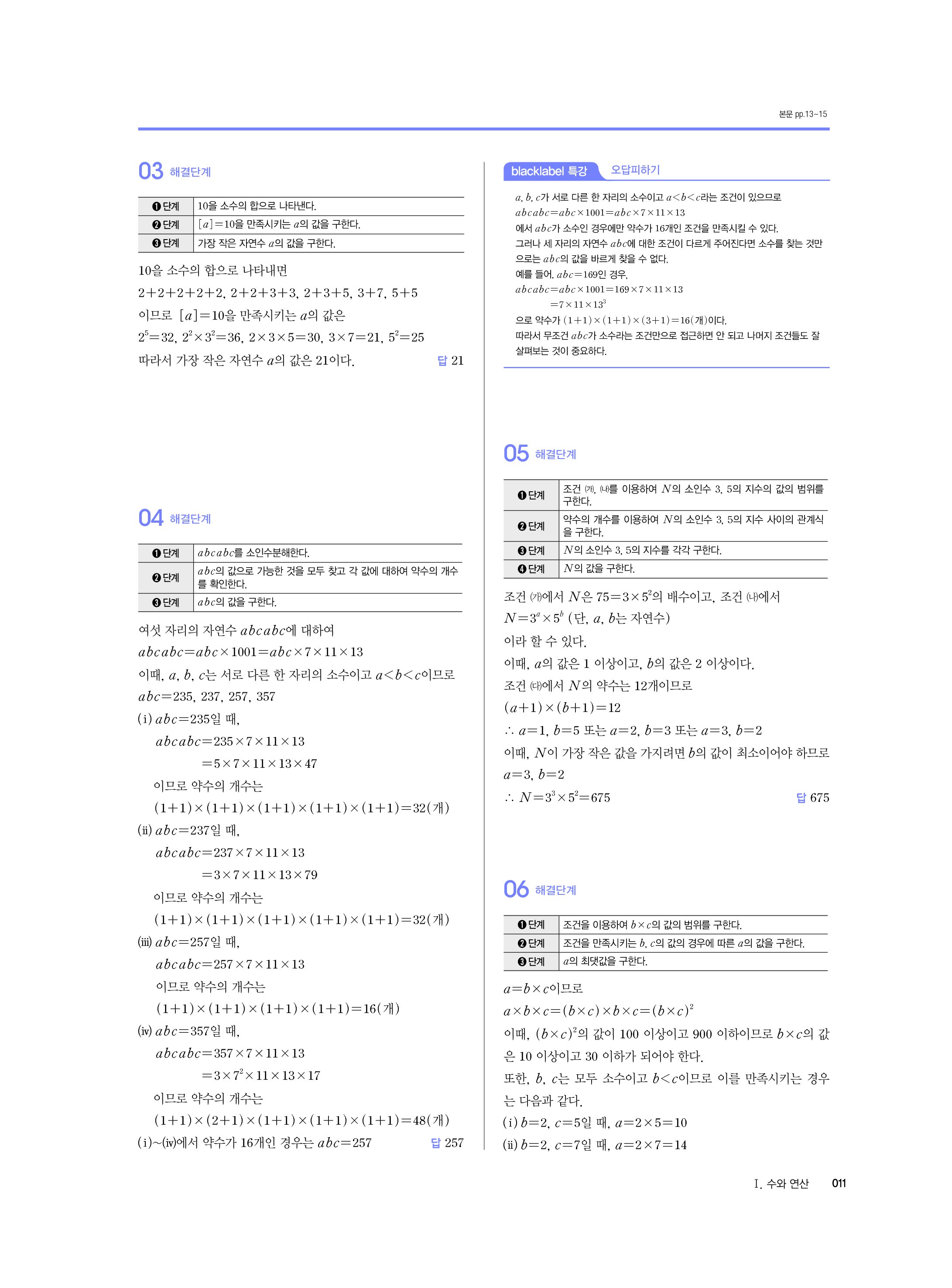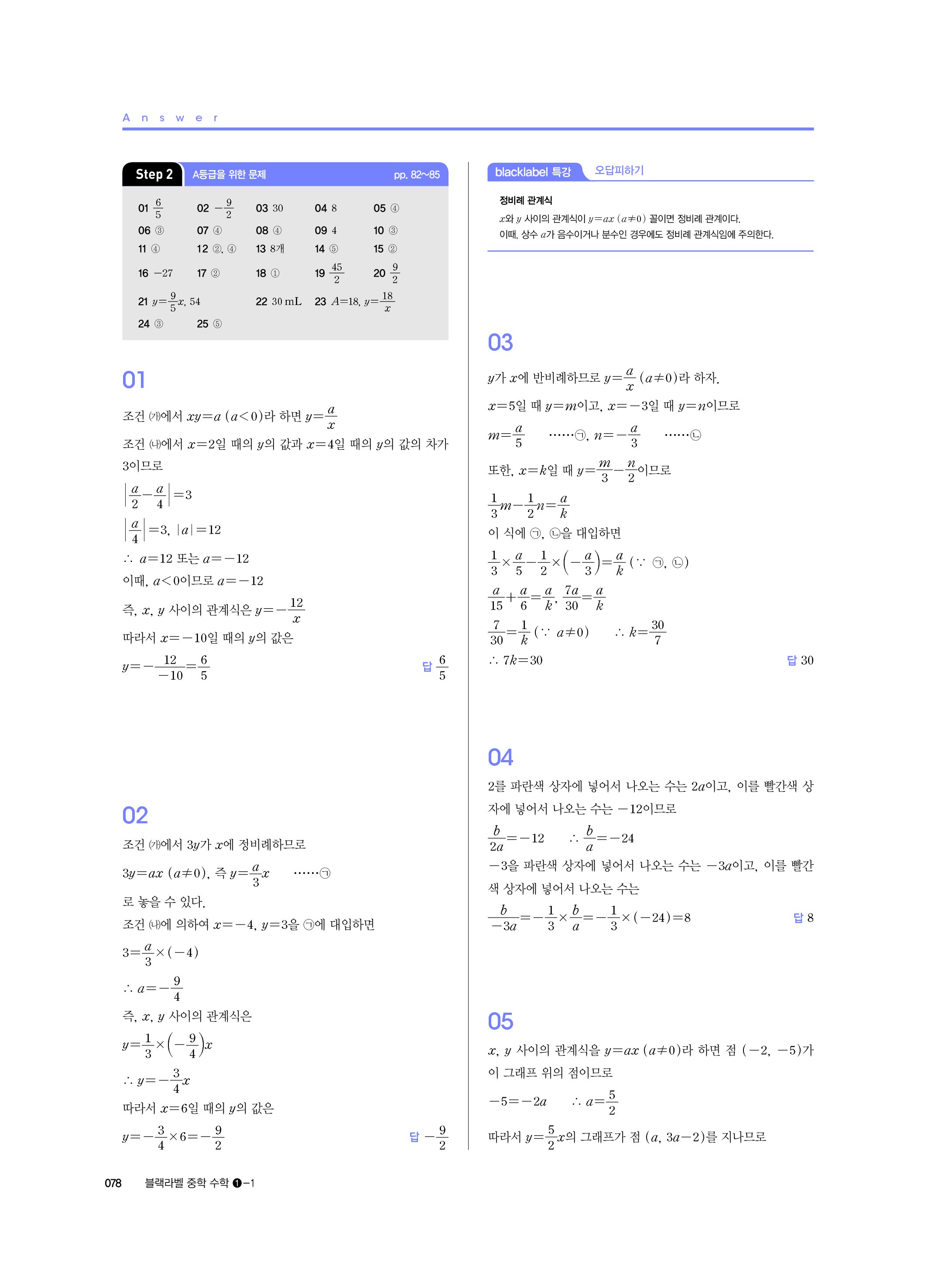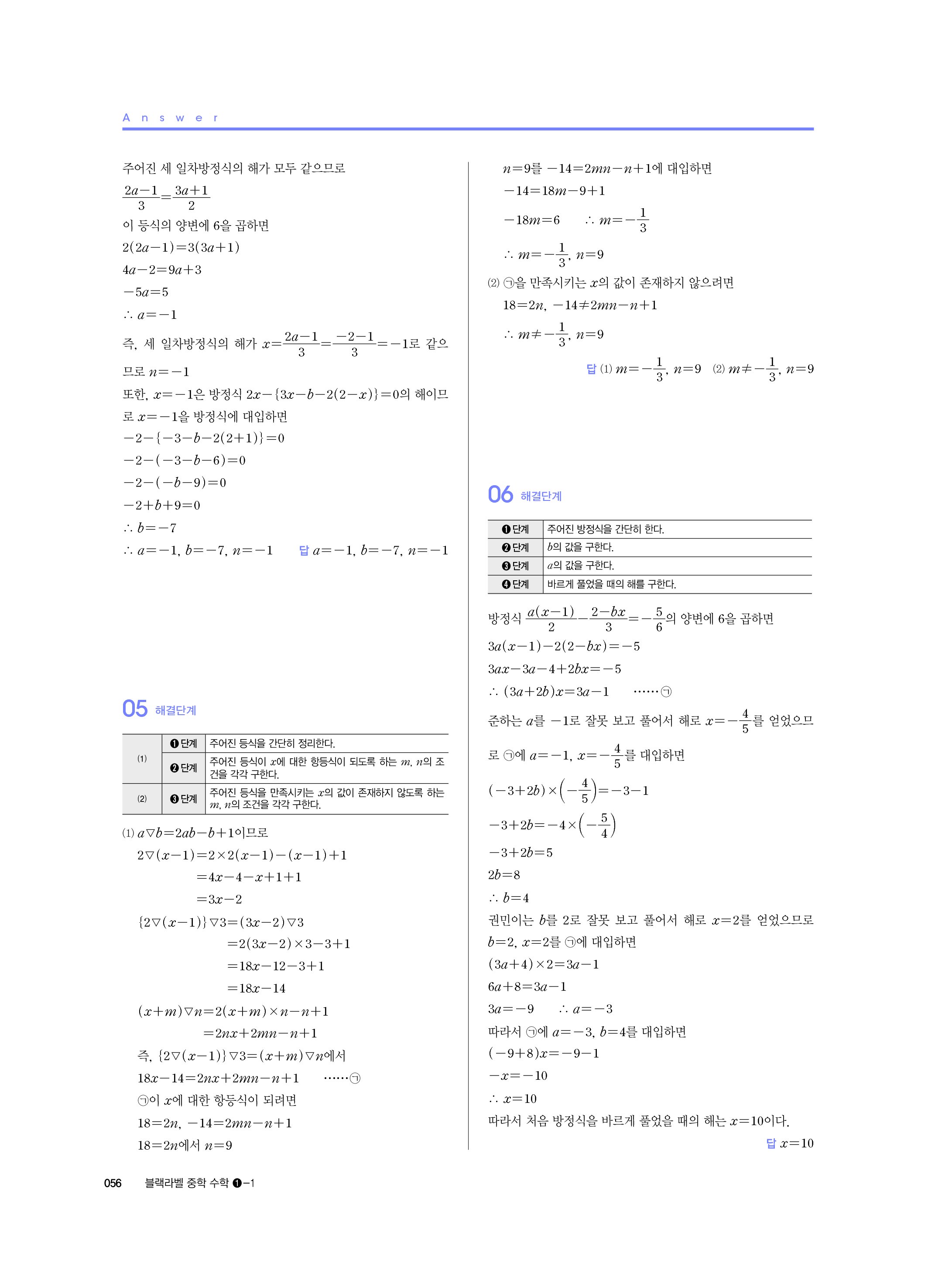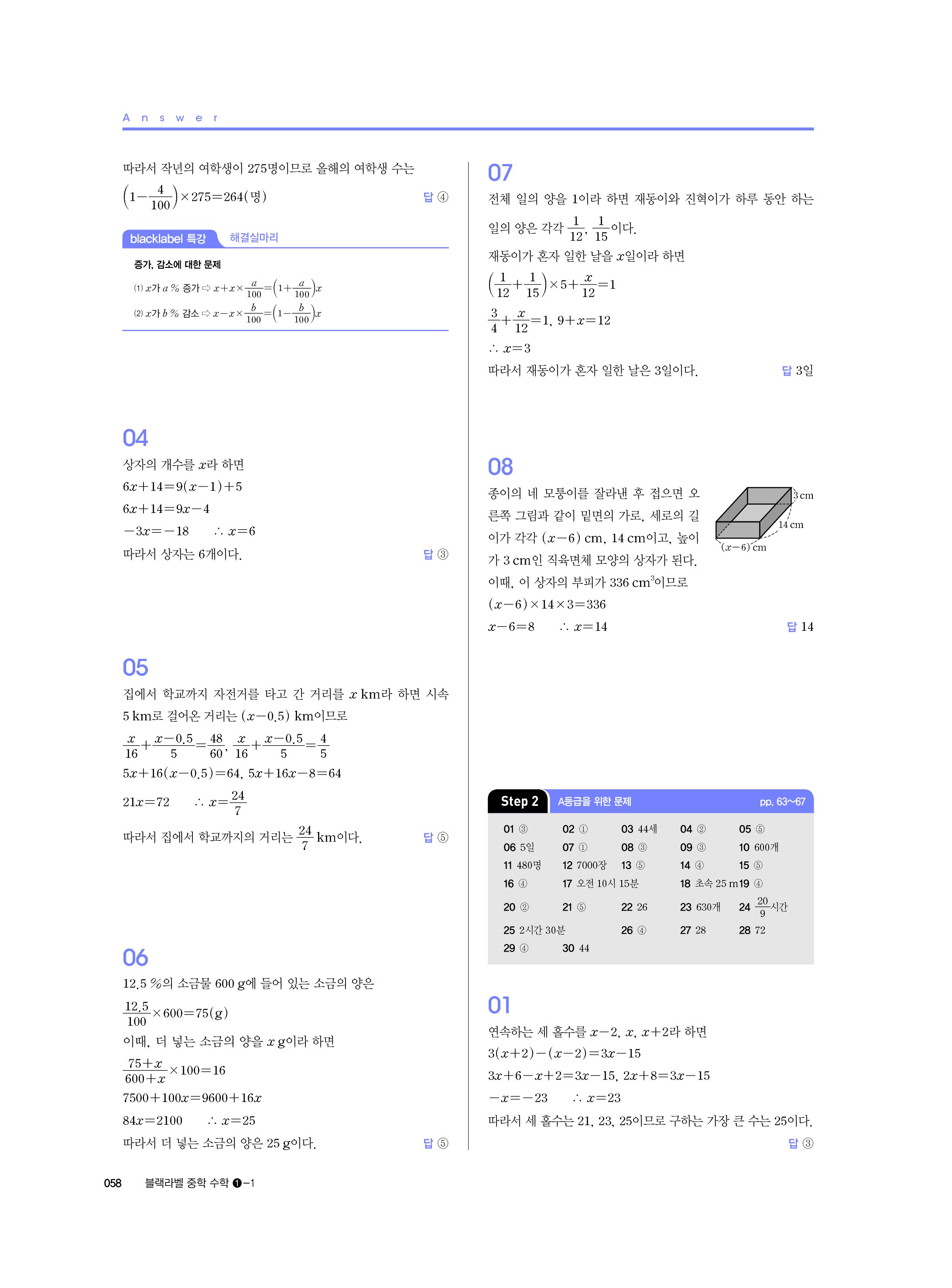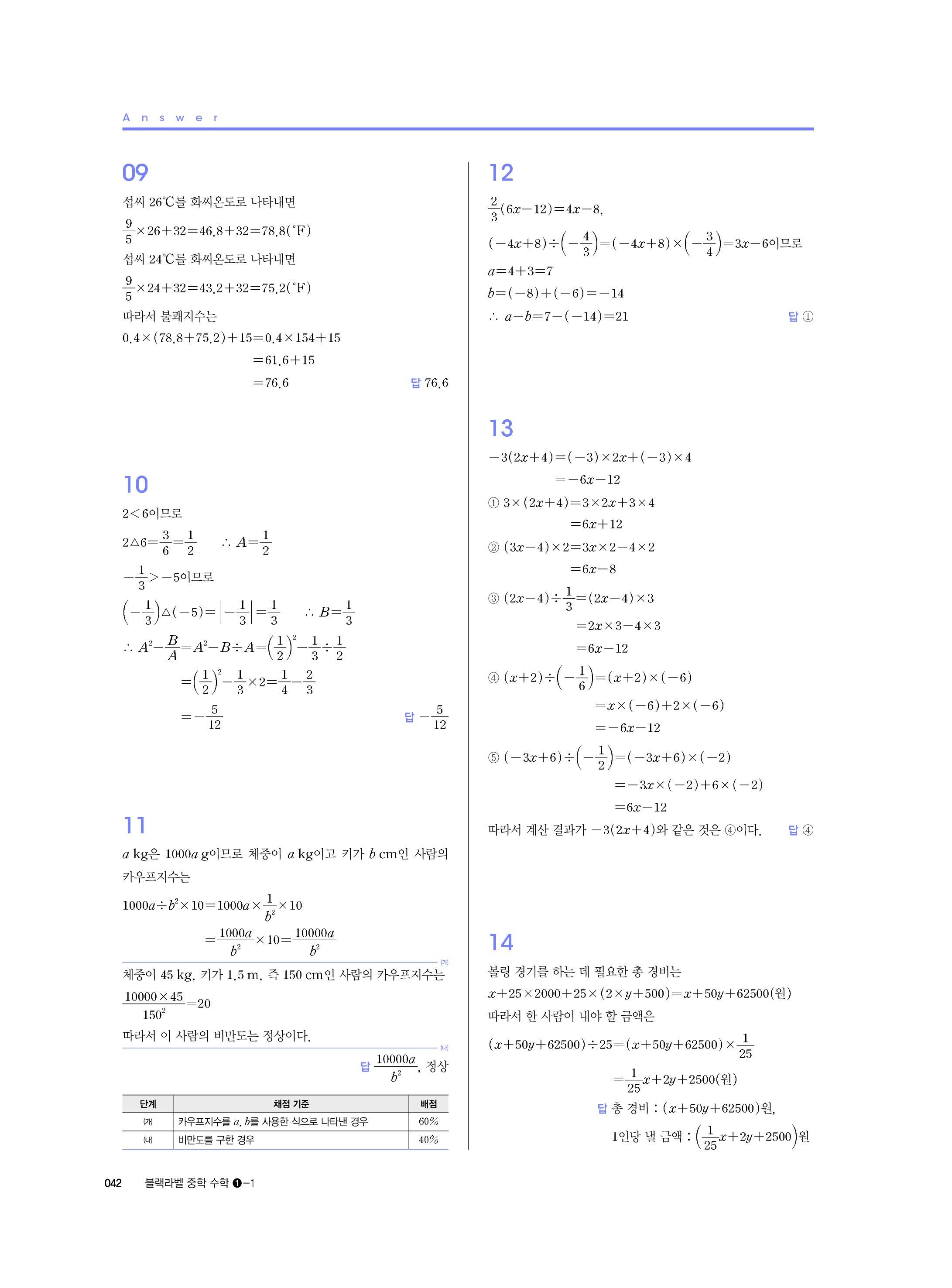 블랙라벨 중학수학 1-1 답지 해설 사진답지 빠른답지 모바일최적화 중1상