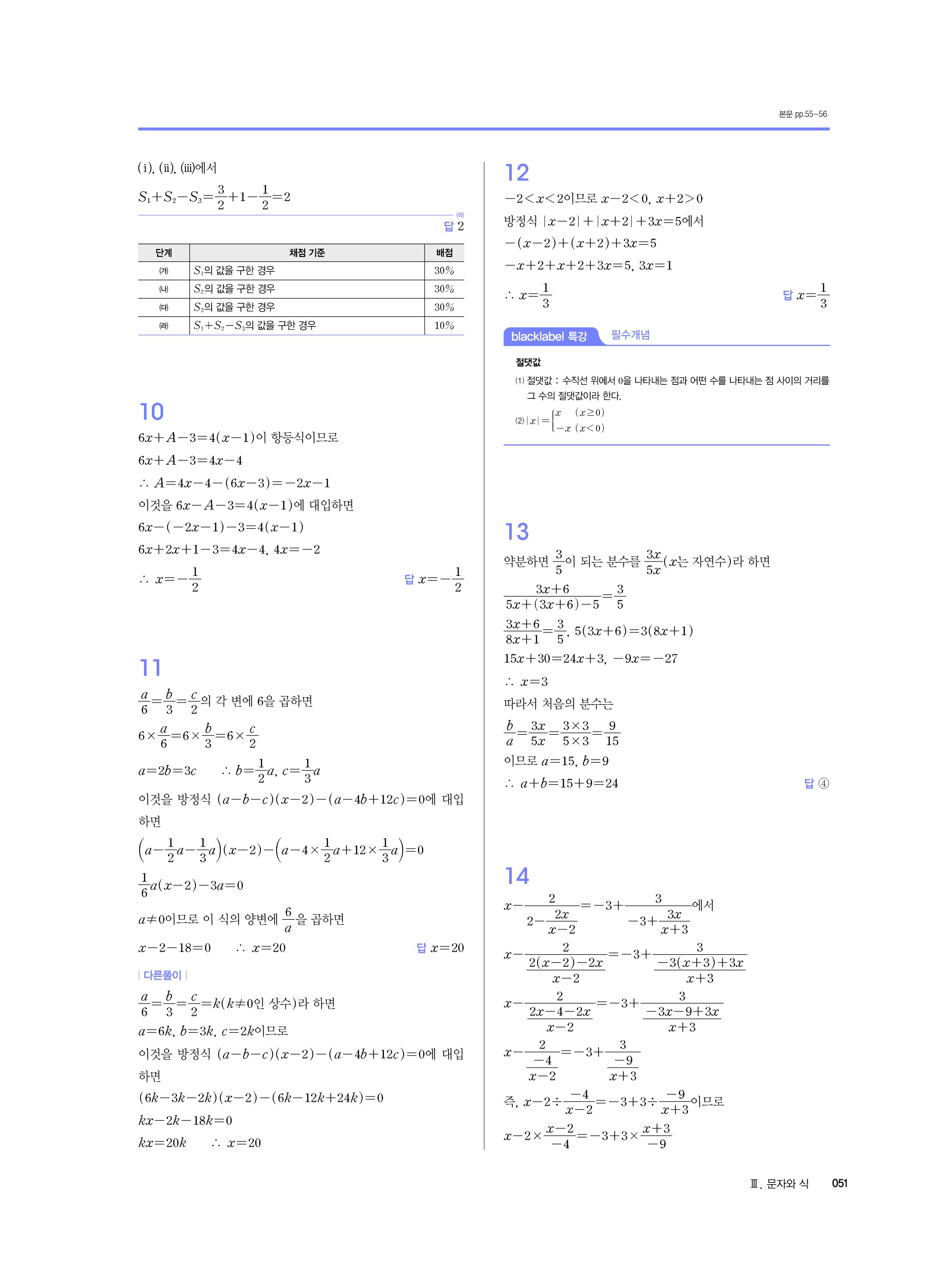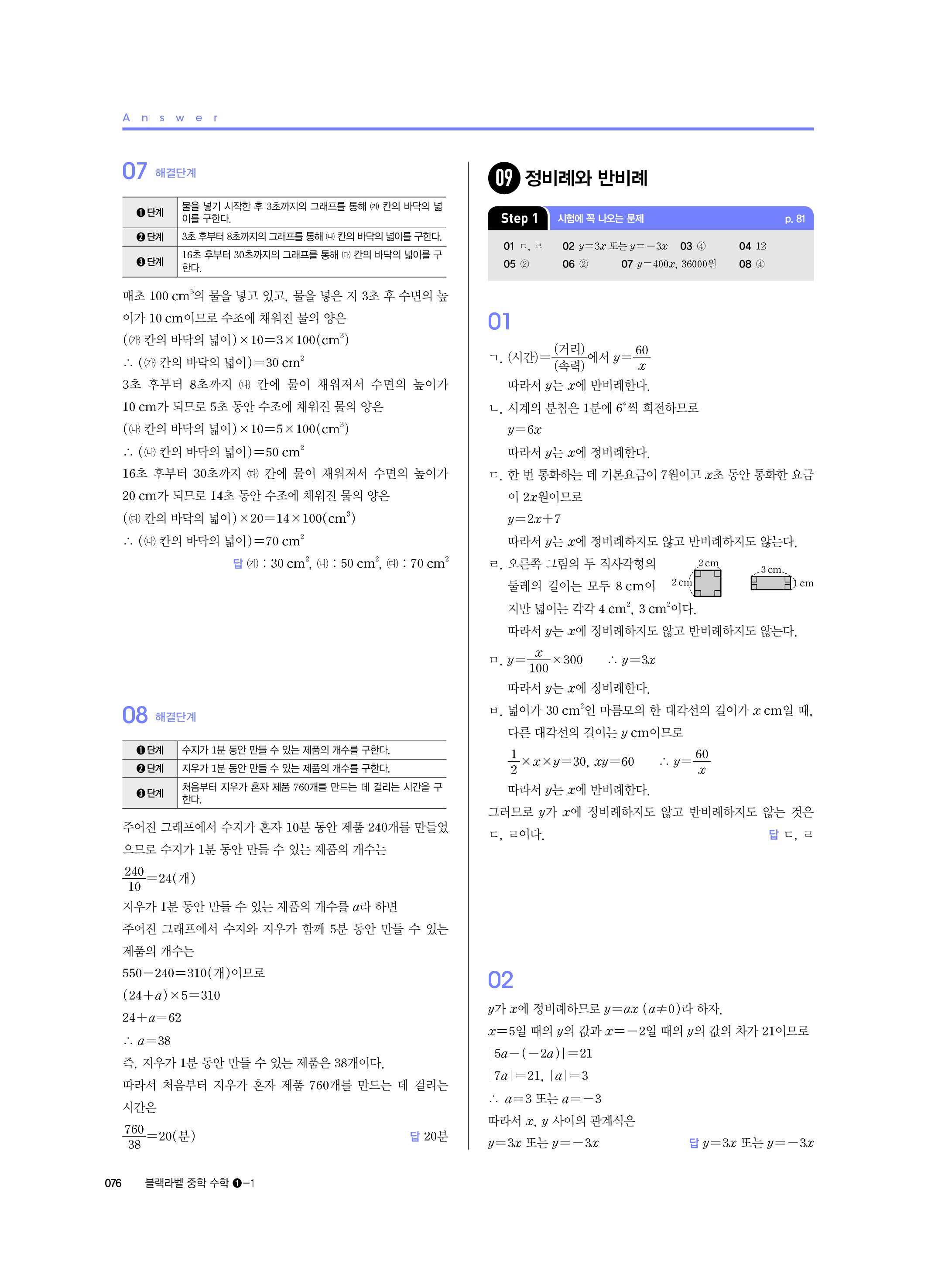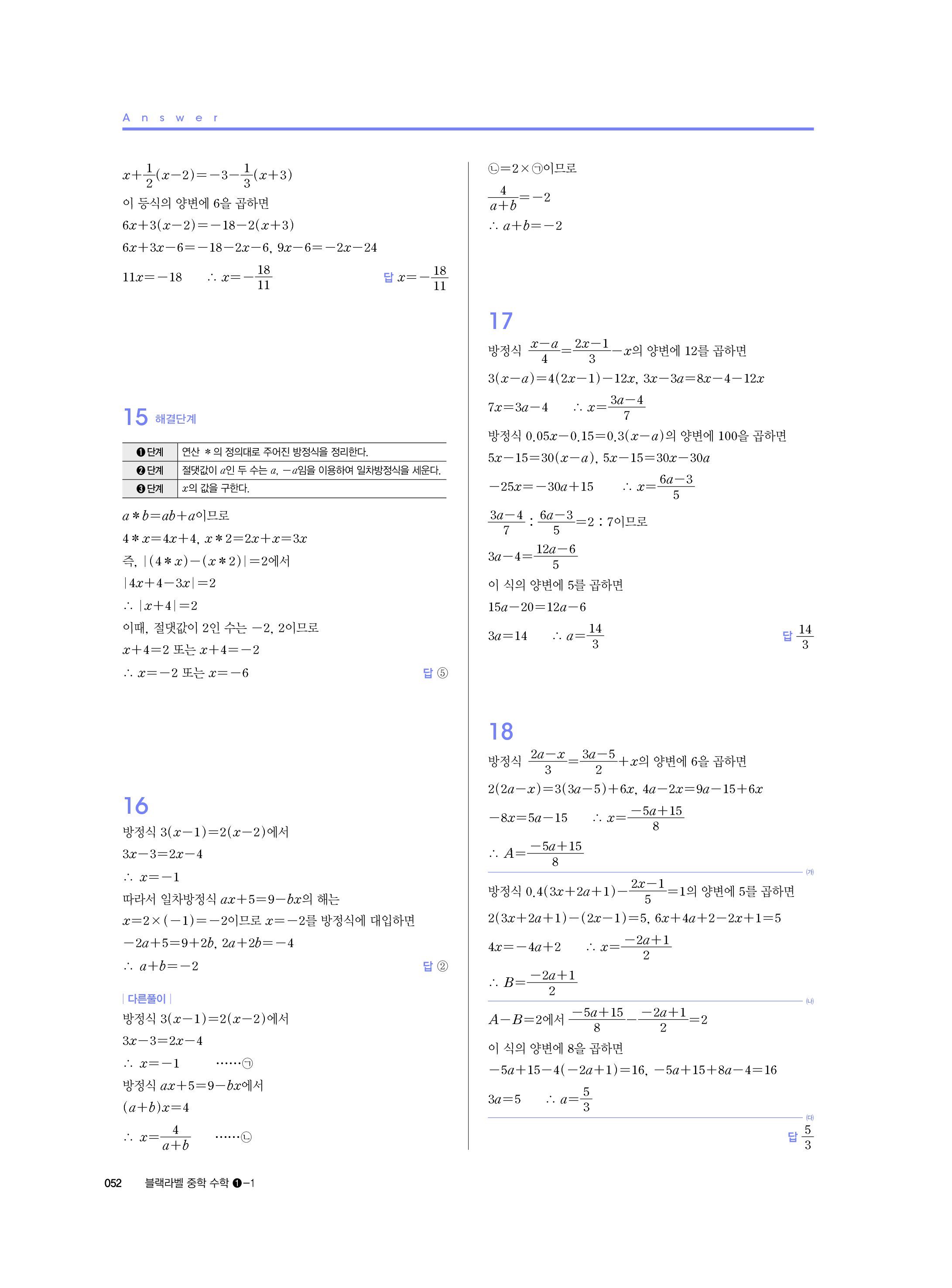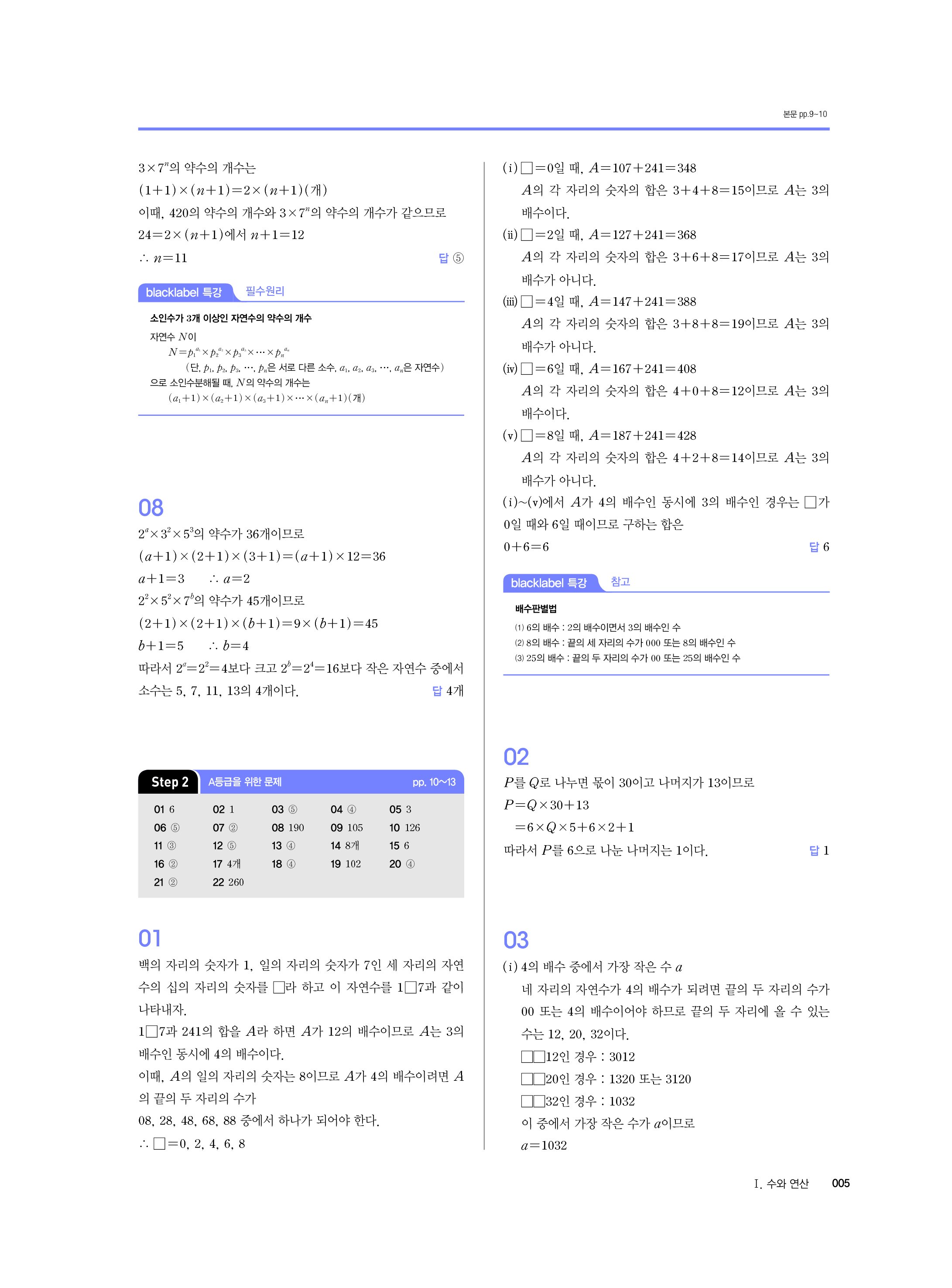 블랙라벨 중학수학 1-1 답지 해설 사진답지 빠른답지 모바일최적화 중1상