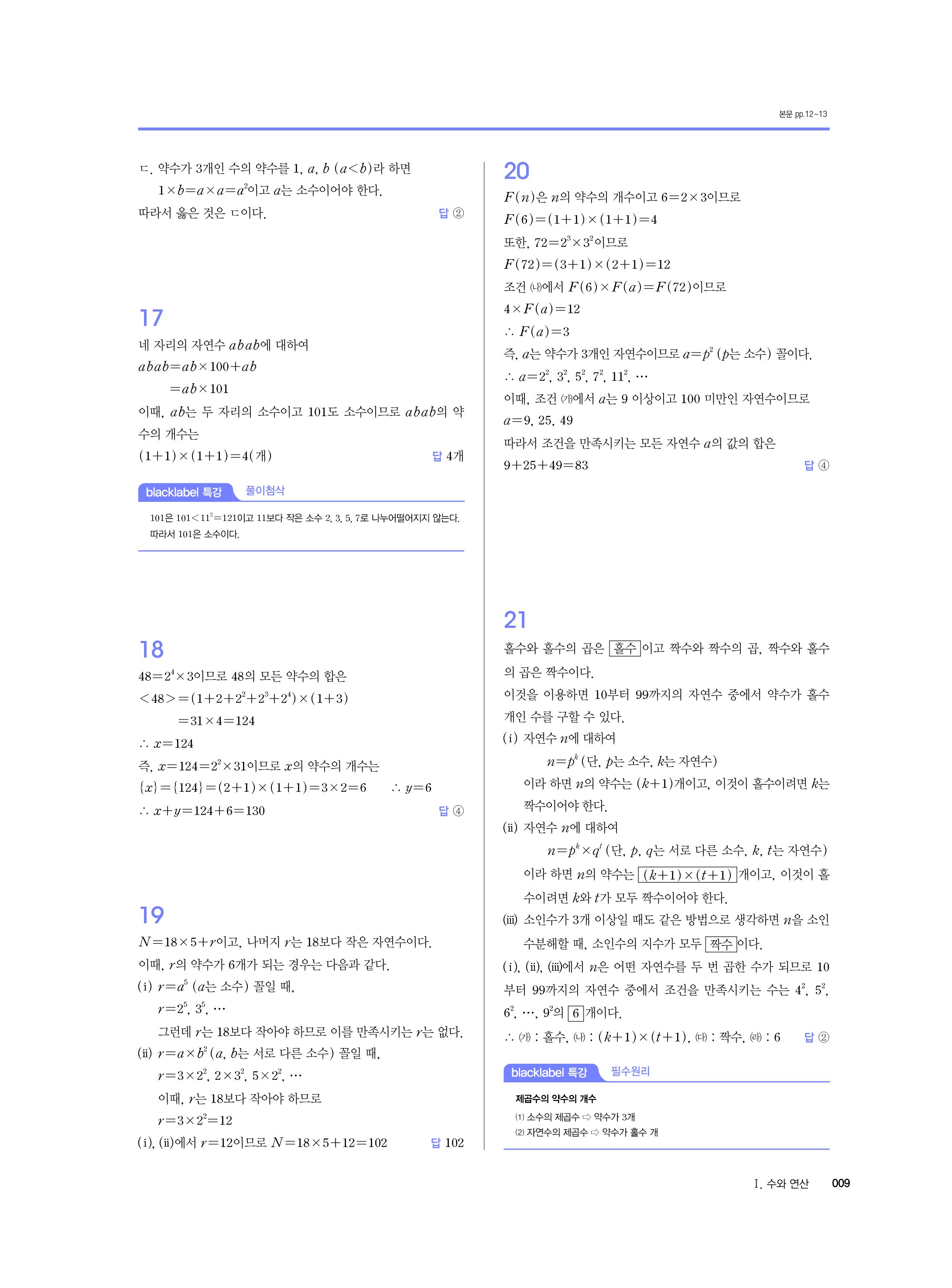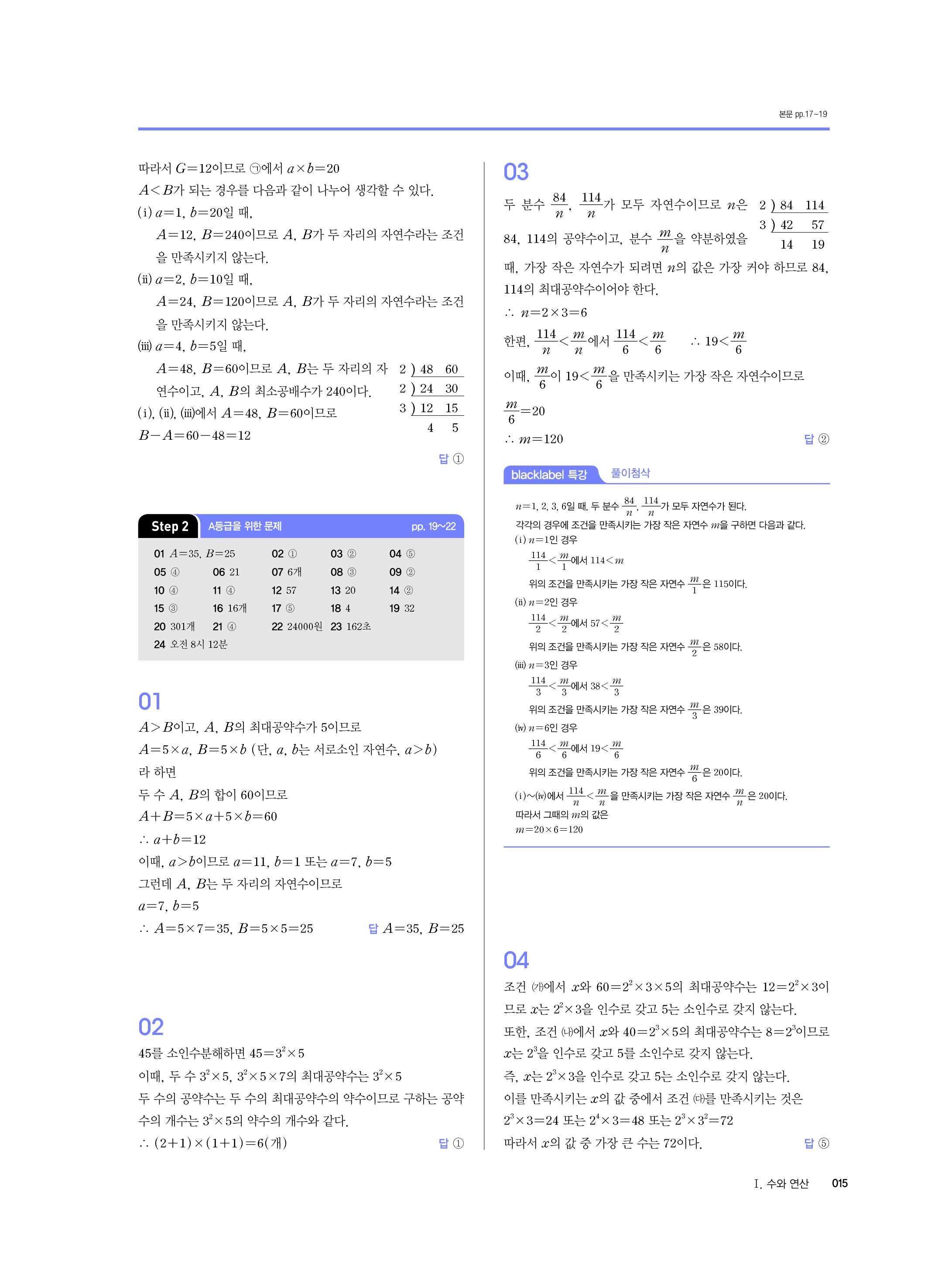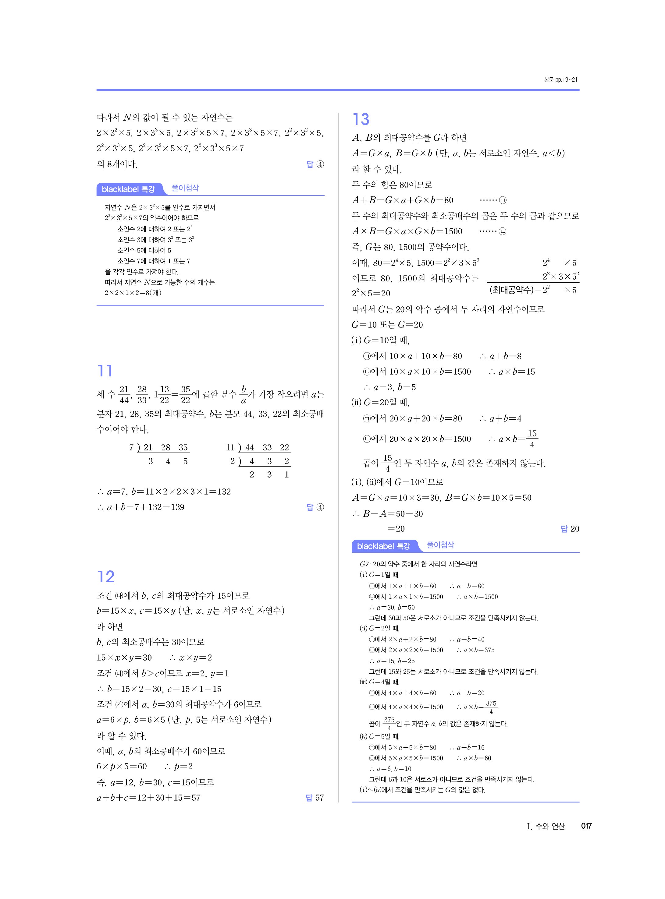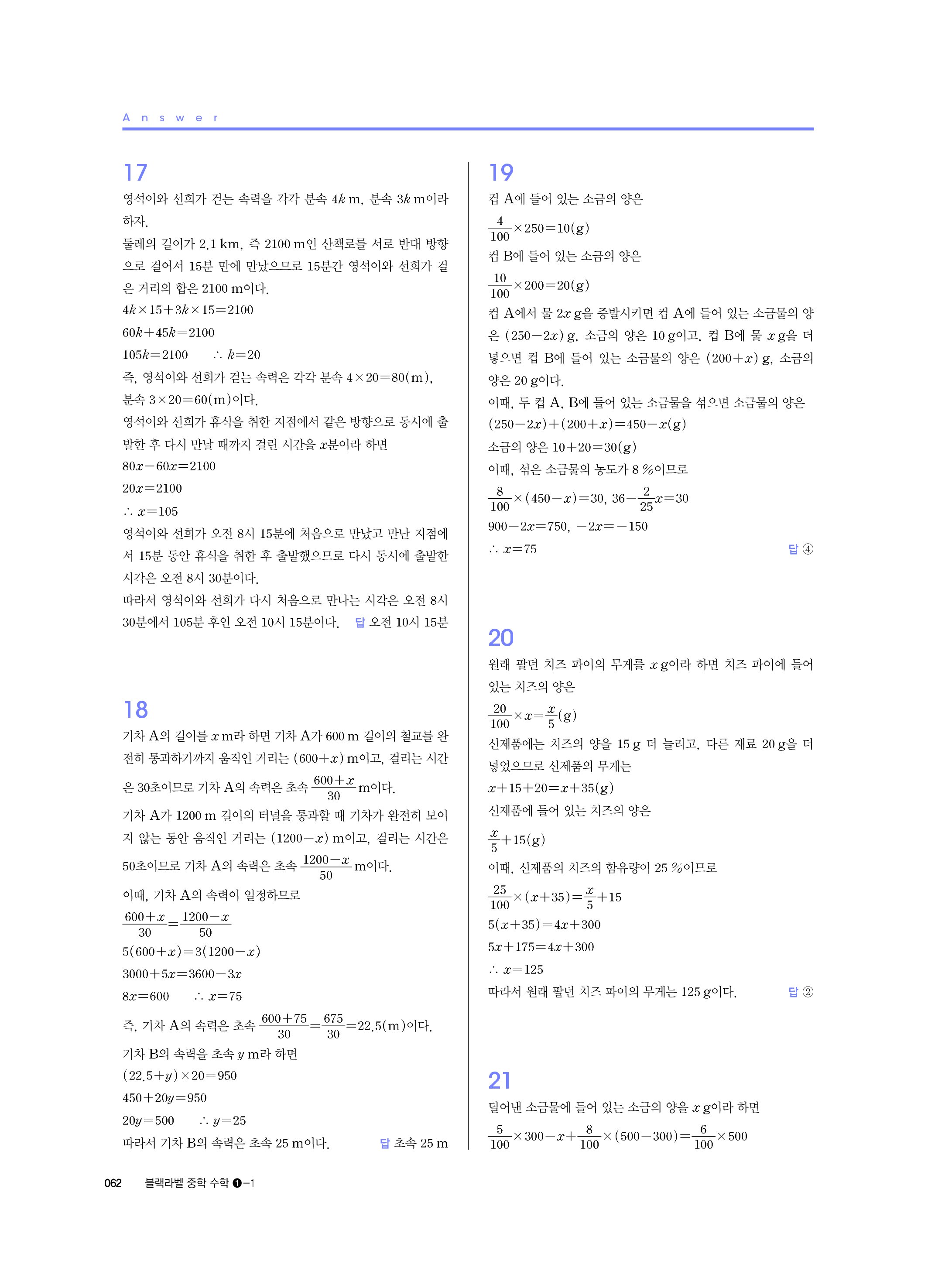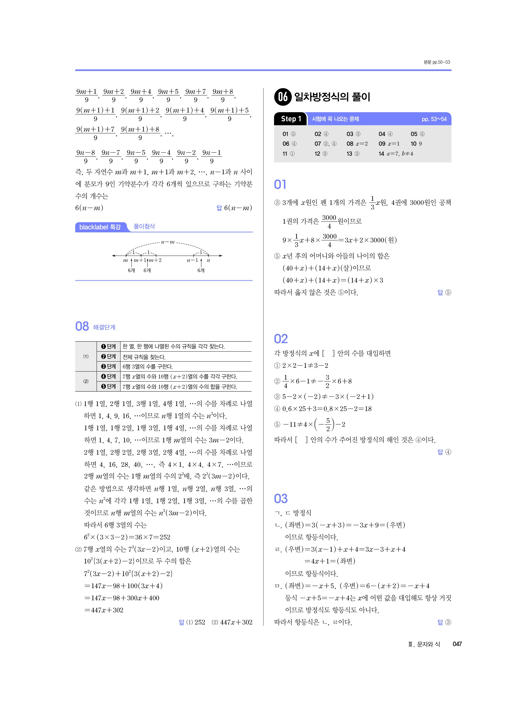 블랙라벨 중학수학 1-1 답지 해설 사진답지 빠른답지 모바일최적화 중1상