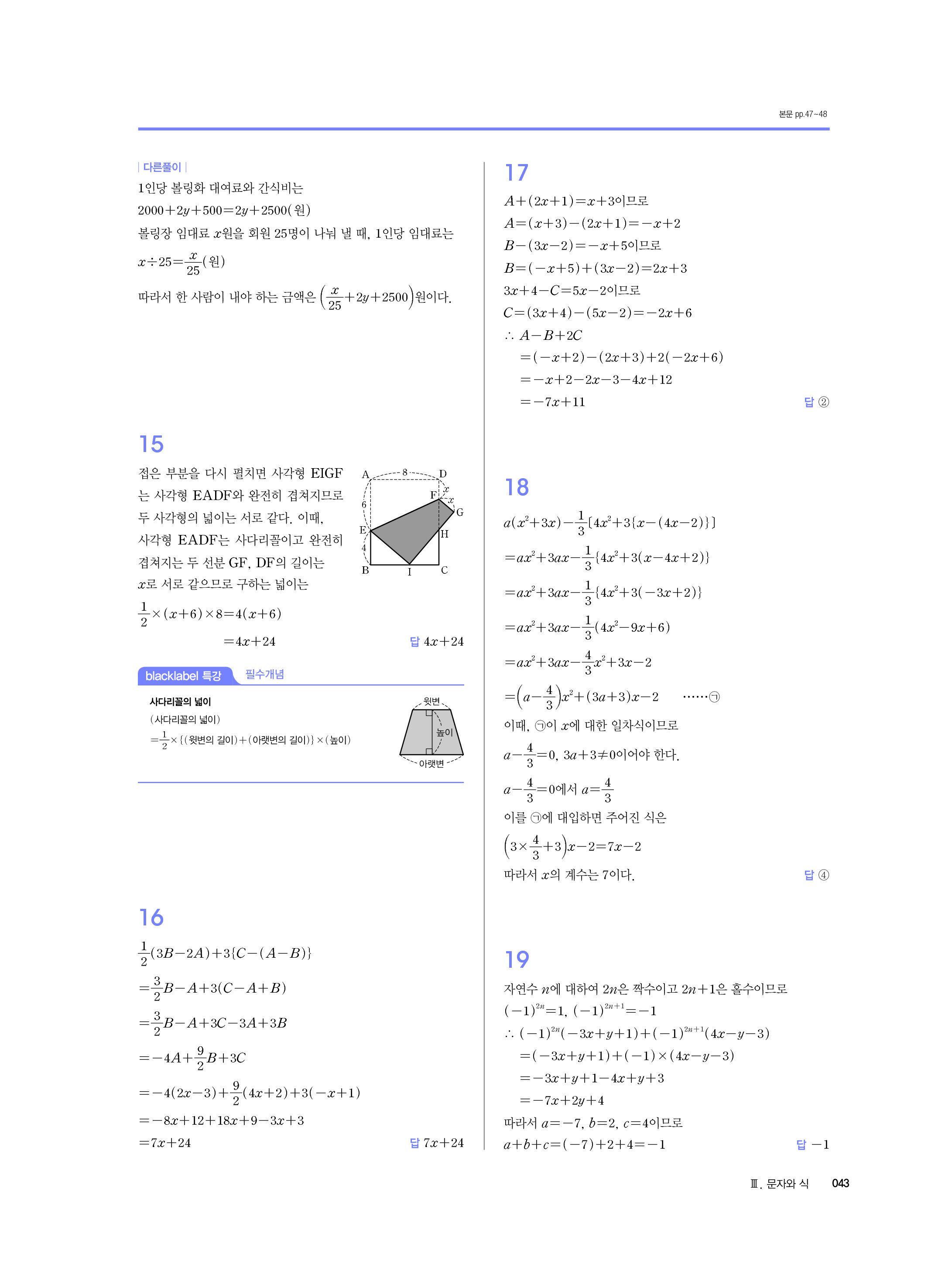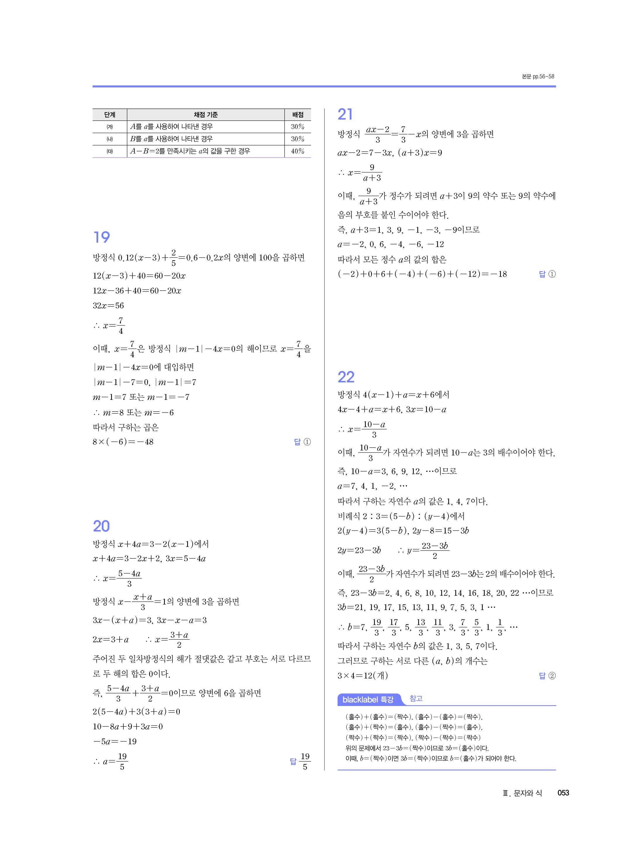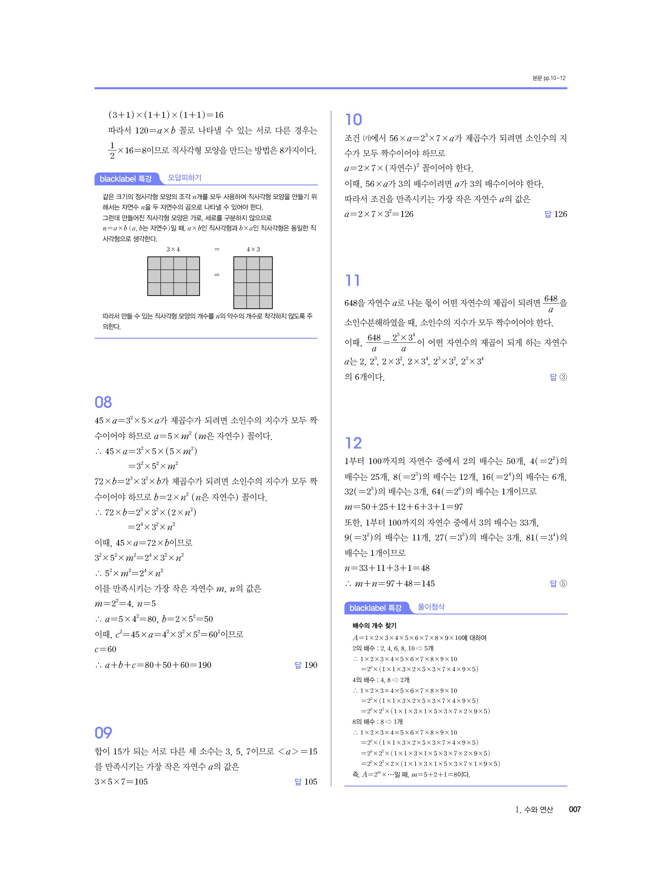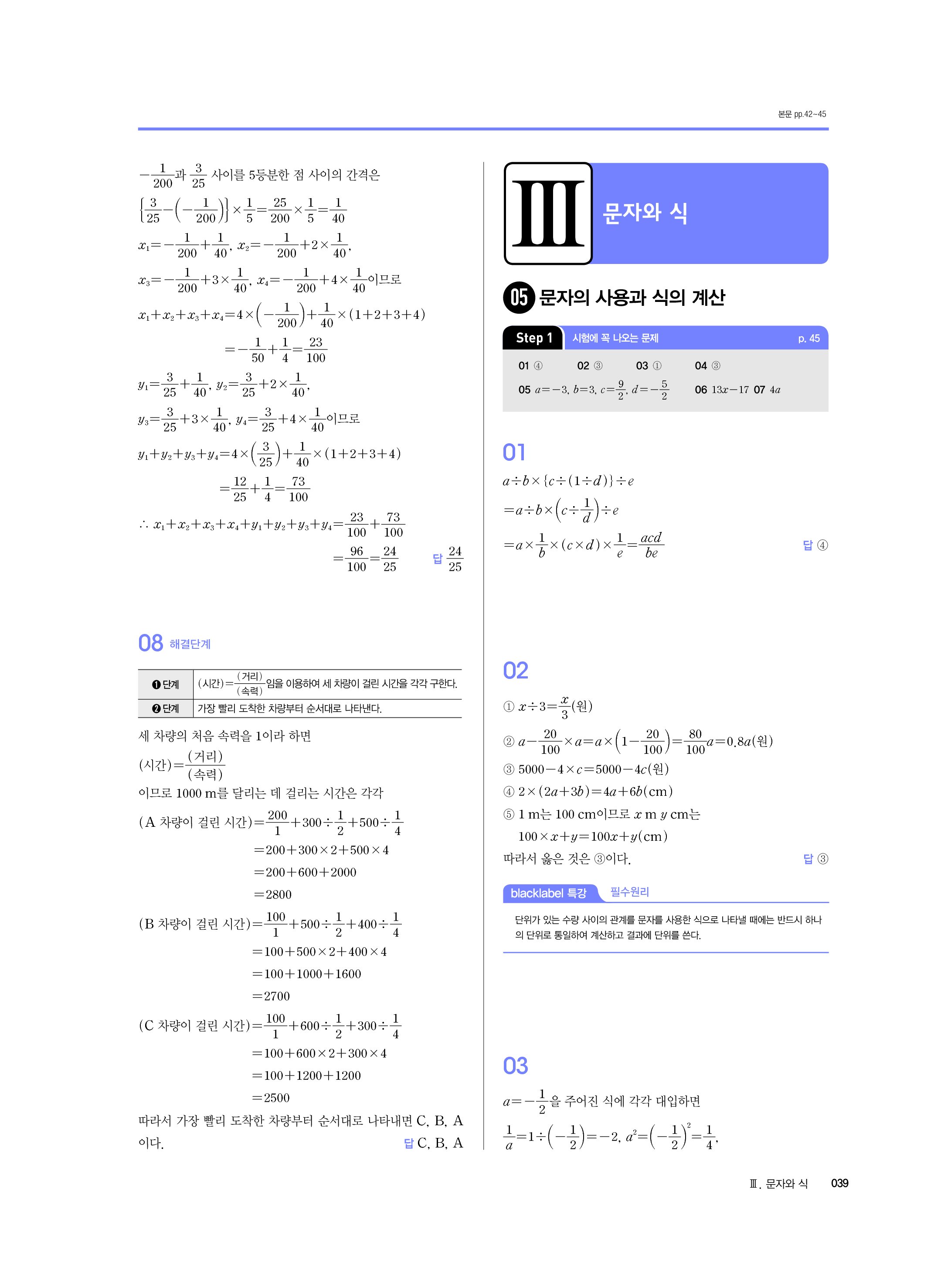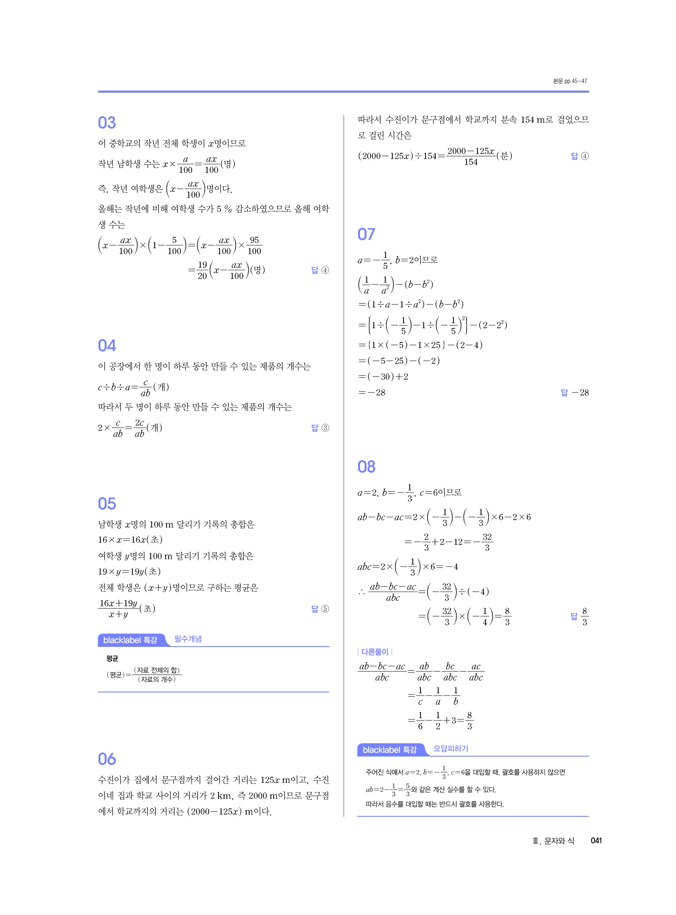 블랙라벨 중학수학 1-1 답지 해설 사진답지 빠른답지 모바일최적화 중1상