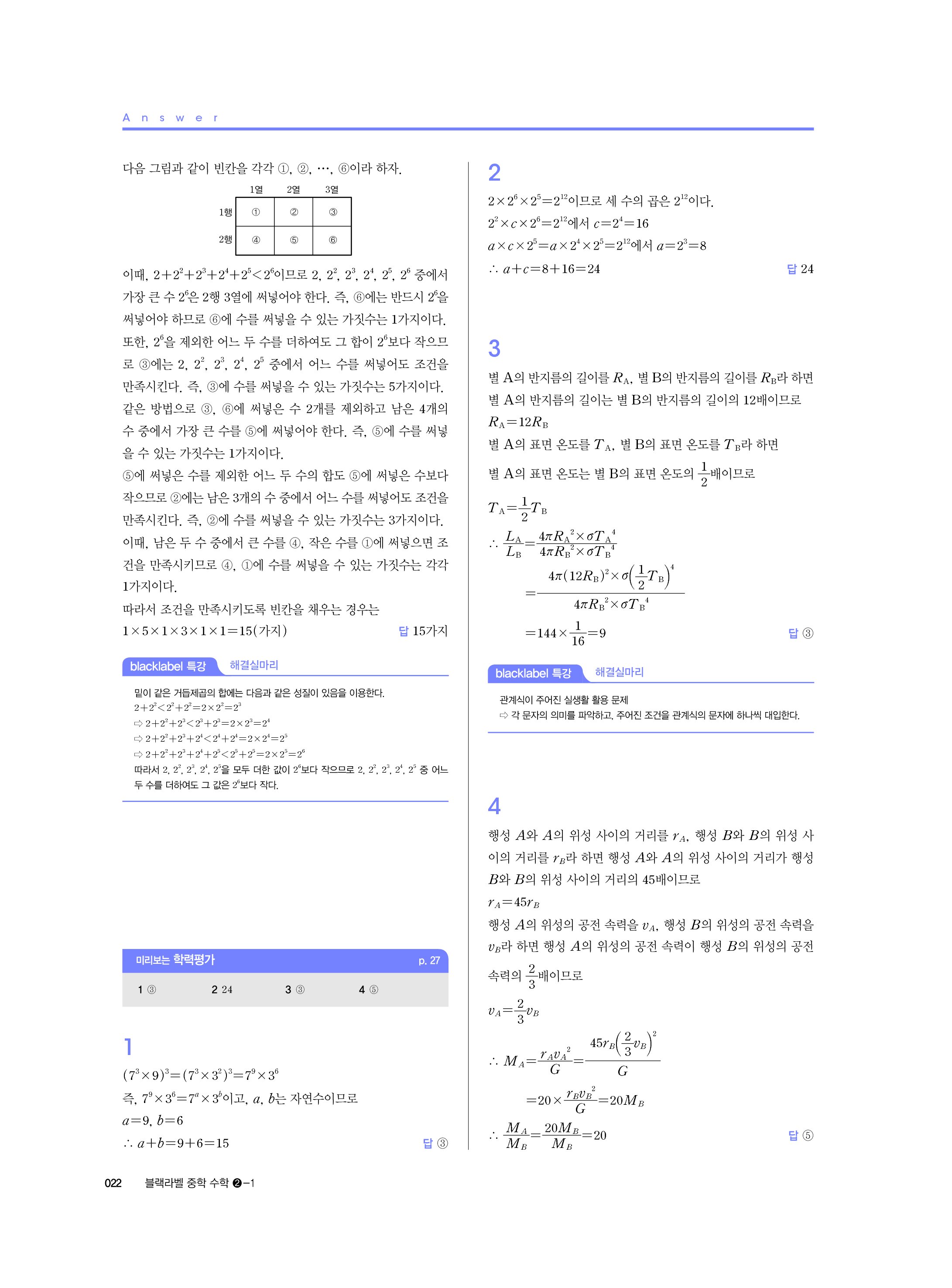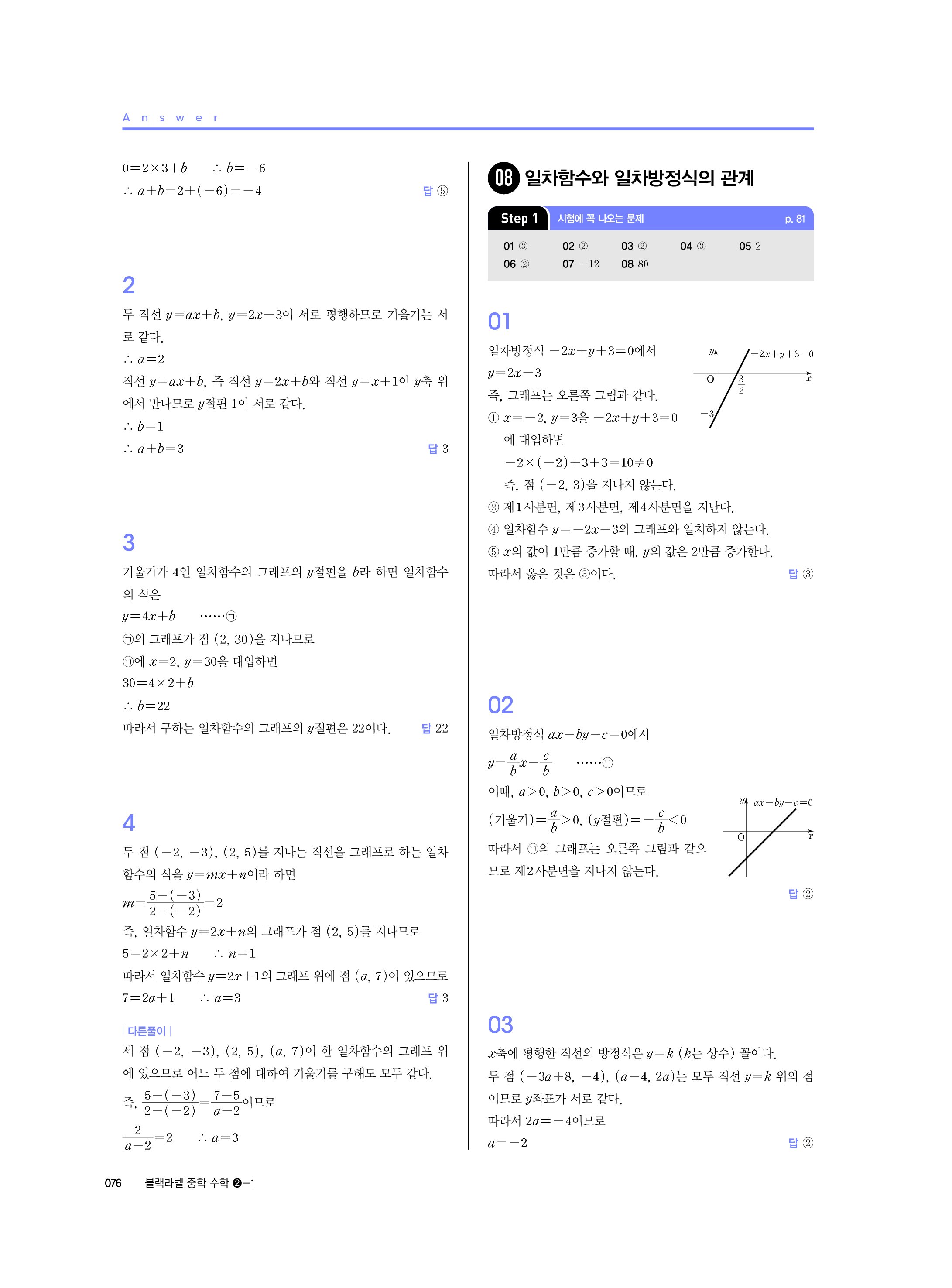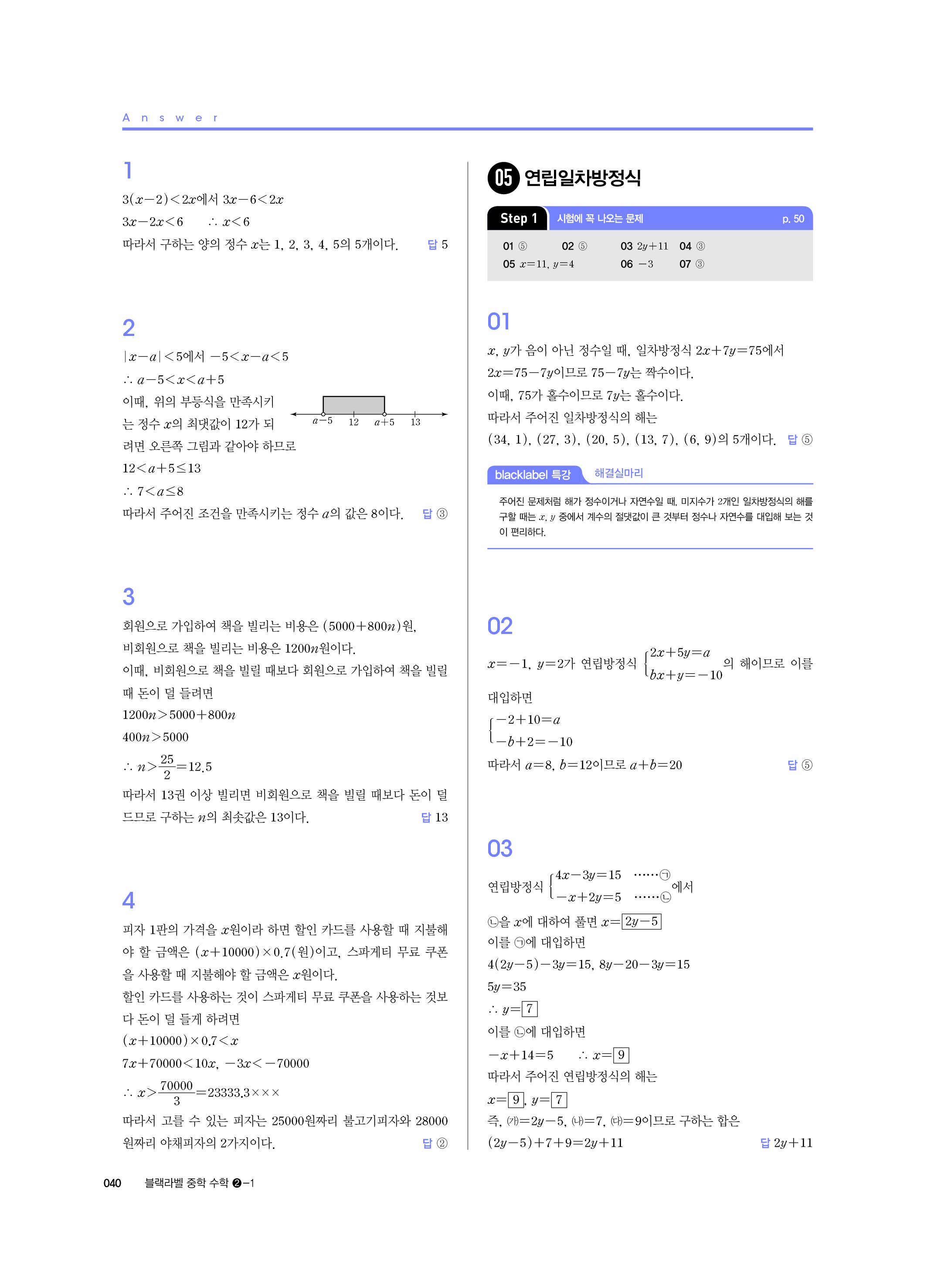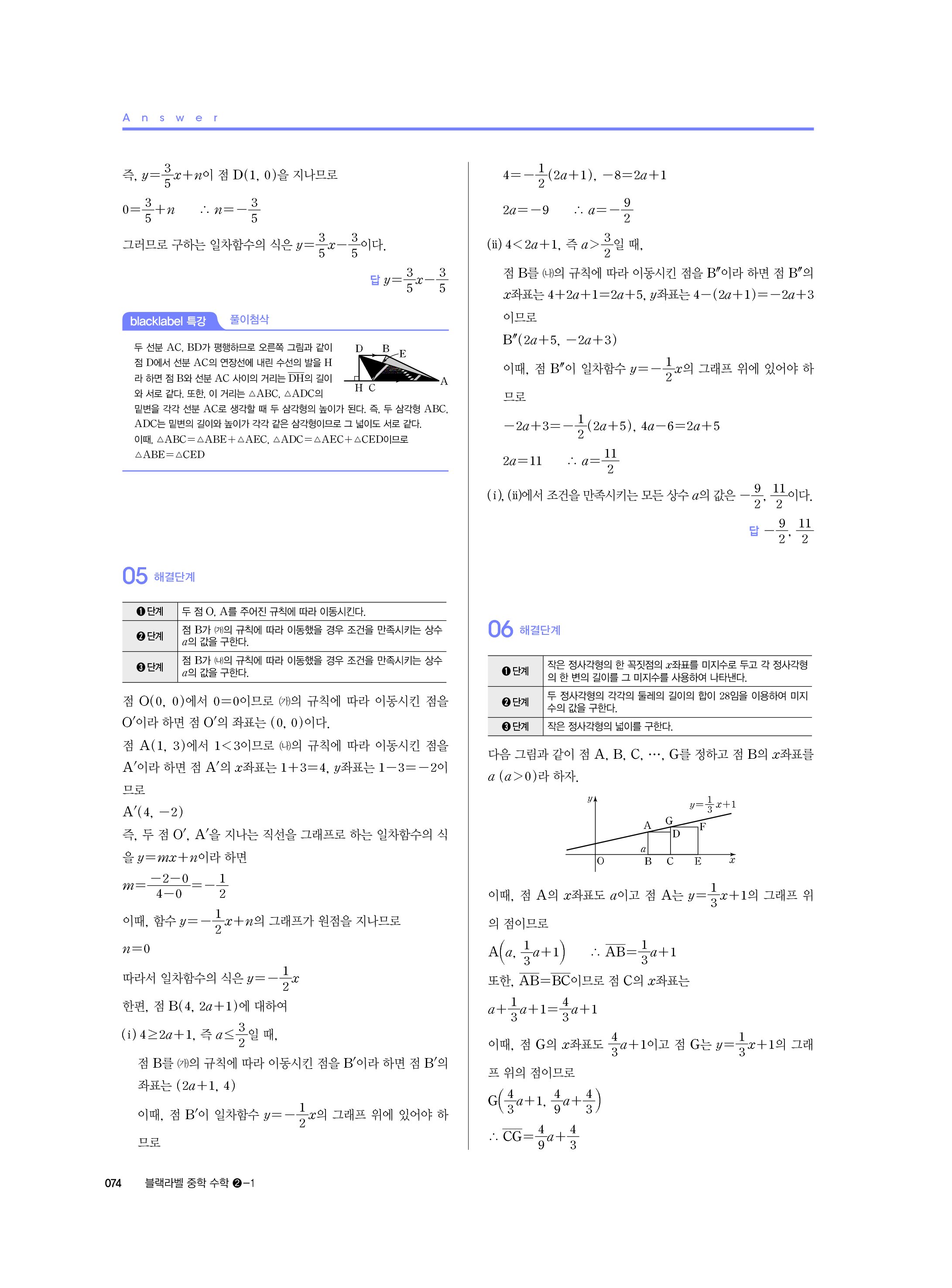 블랙라벨 중학수학 2-1 답지 해설 사진답지 빠른답지 모바일최적화 중2상