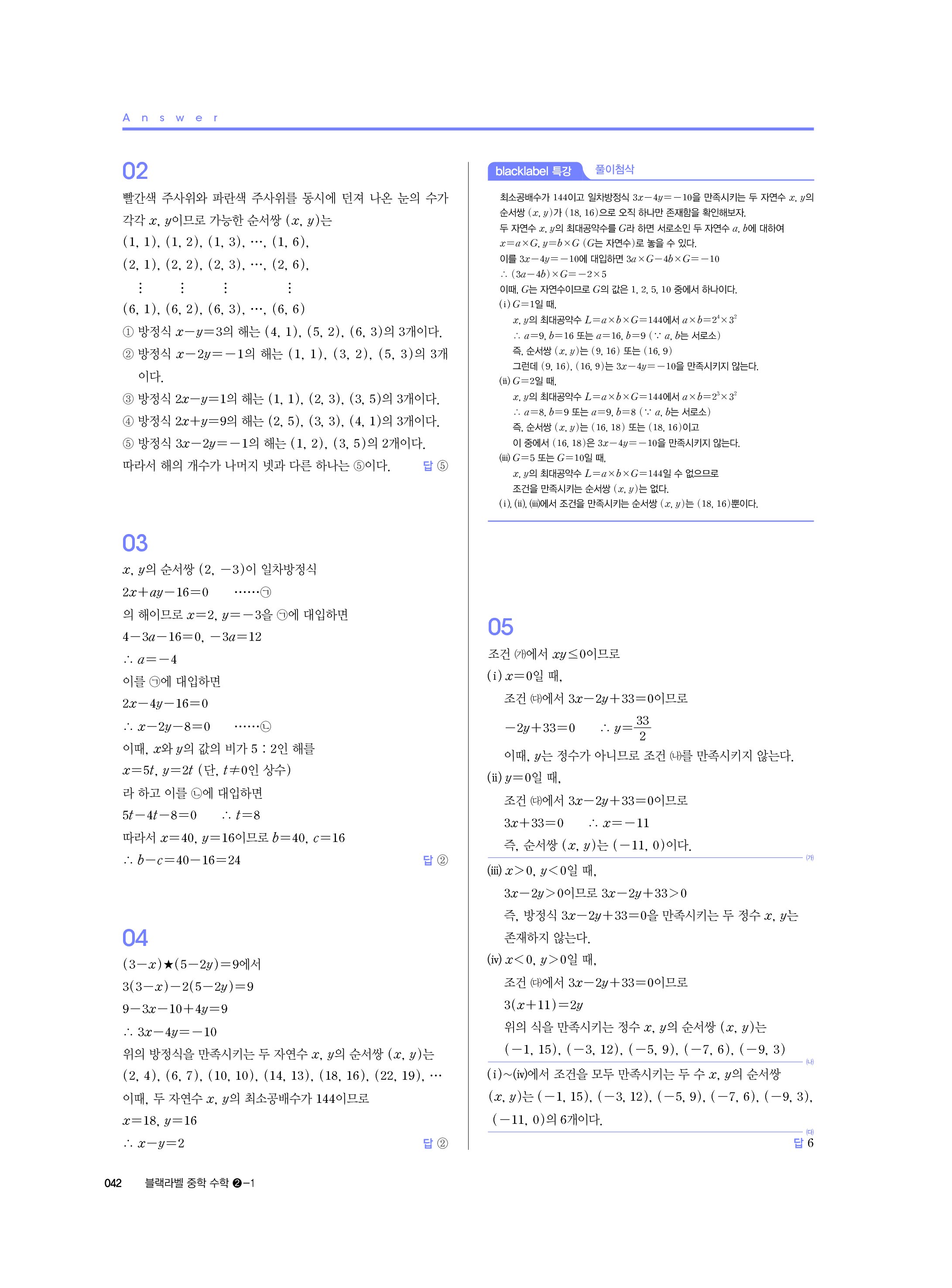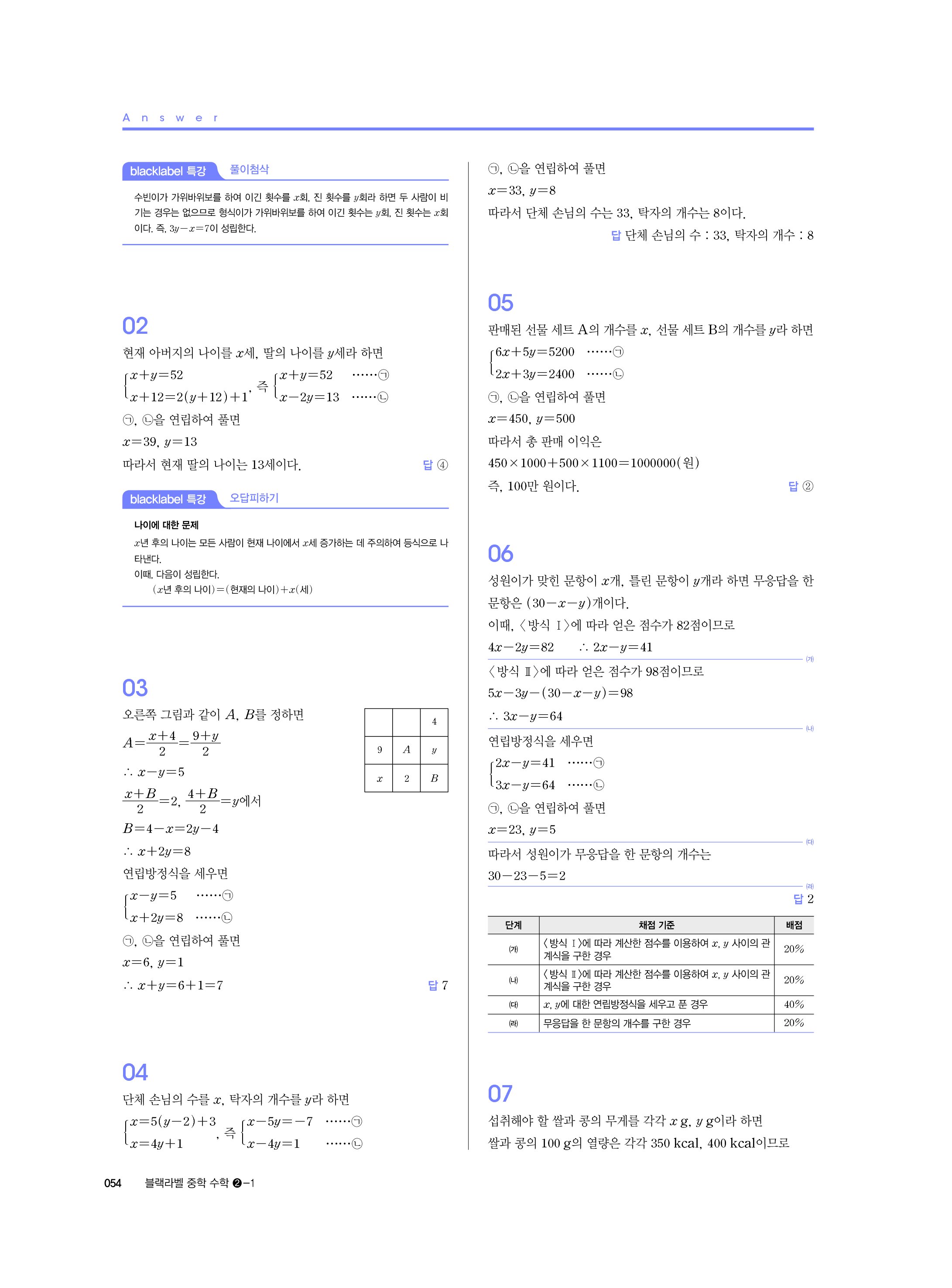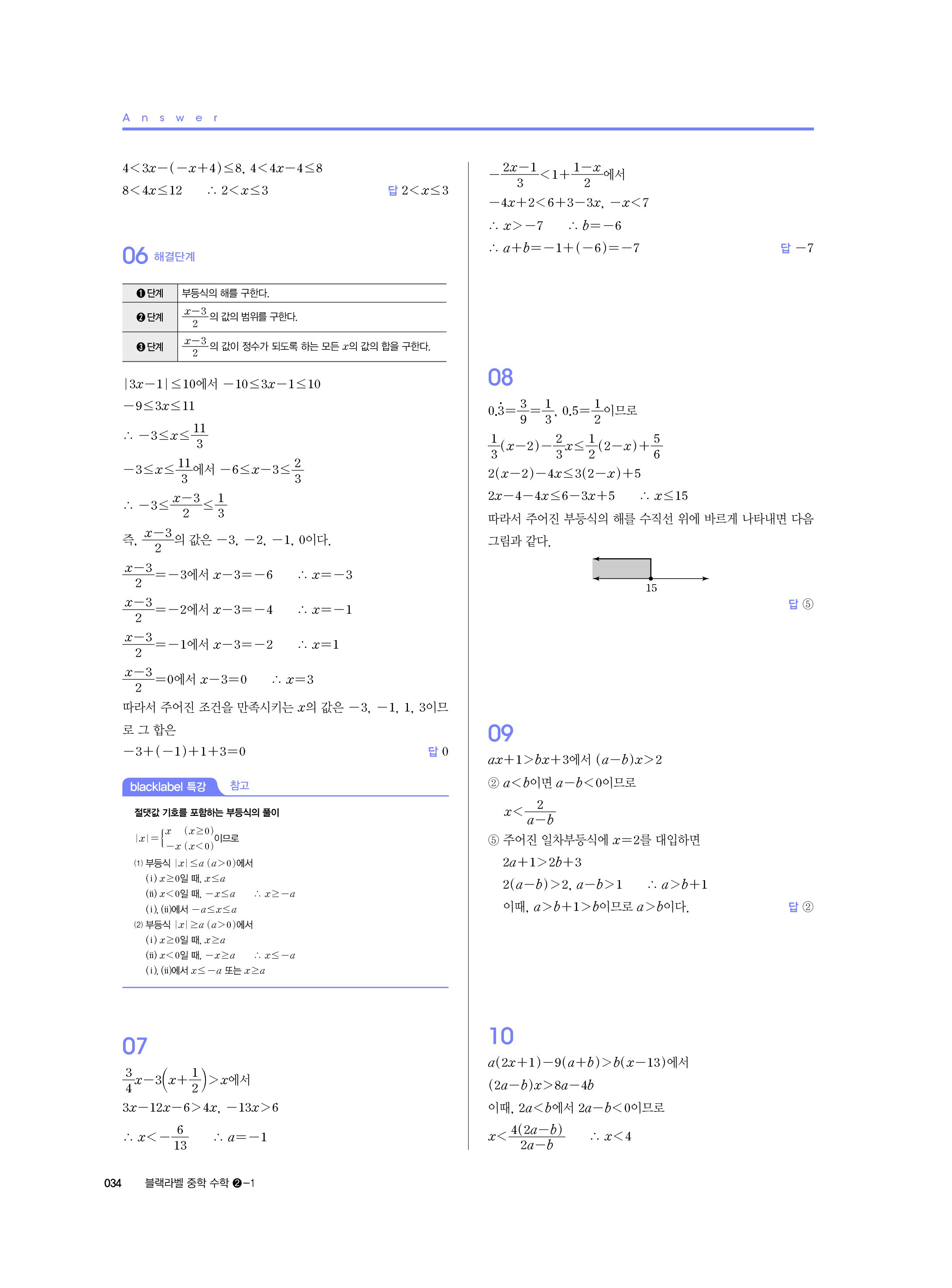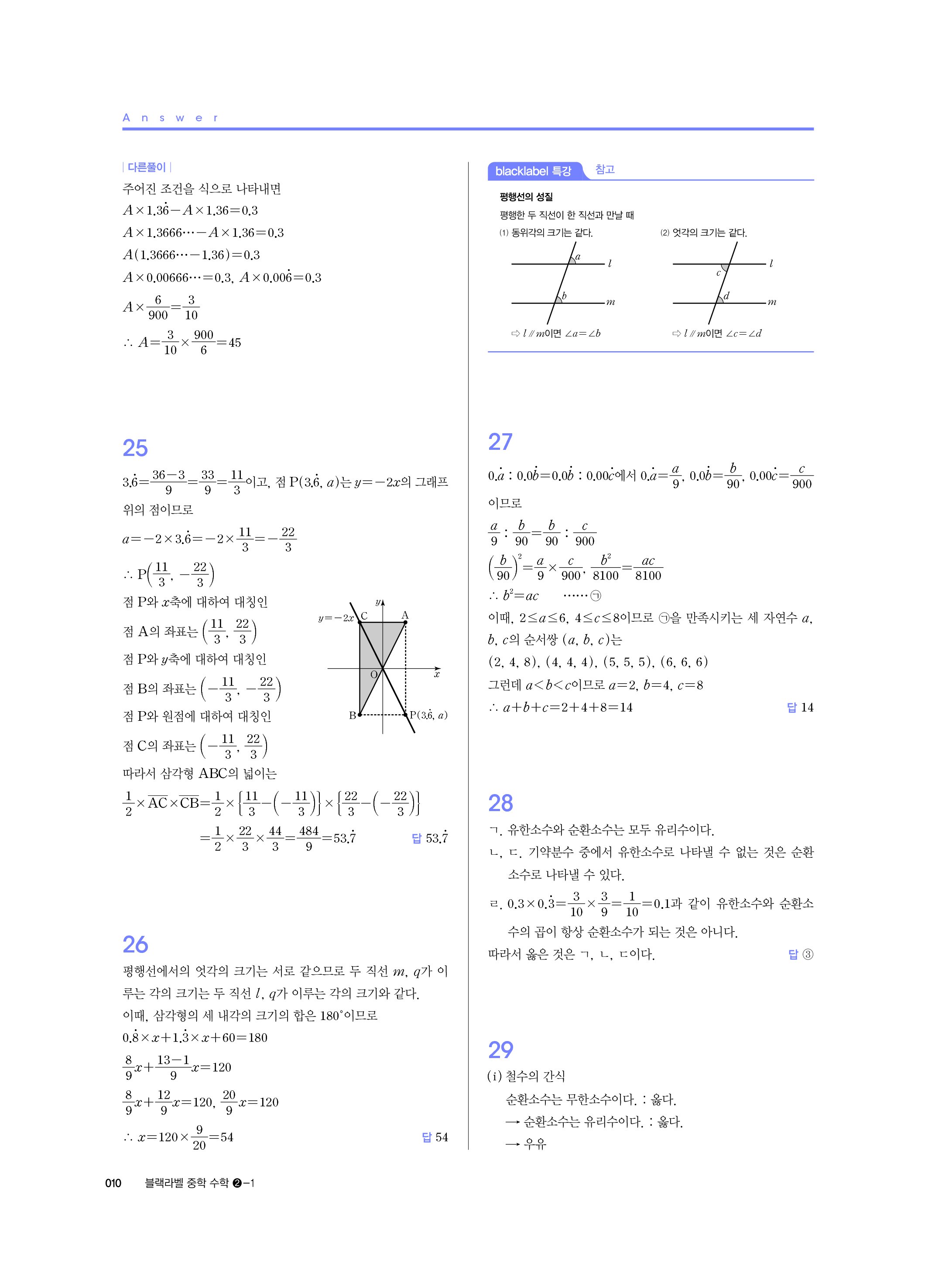 블랙라벨 중학수학 2-1 답지 해설 사진답지 빠른답지 모바일최적화 중2상