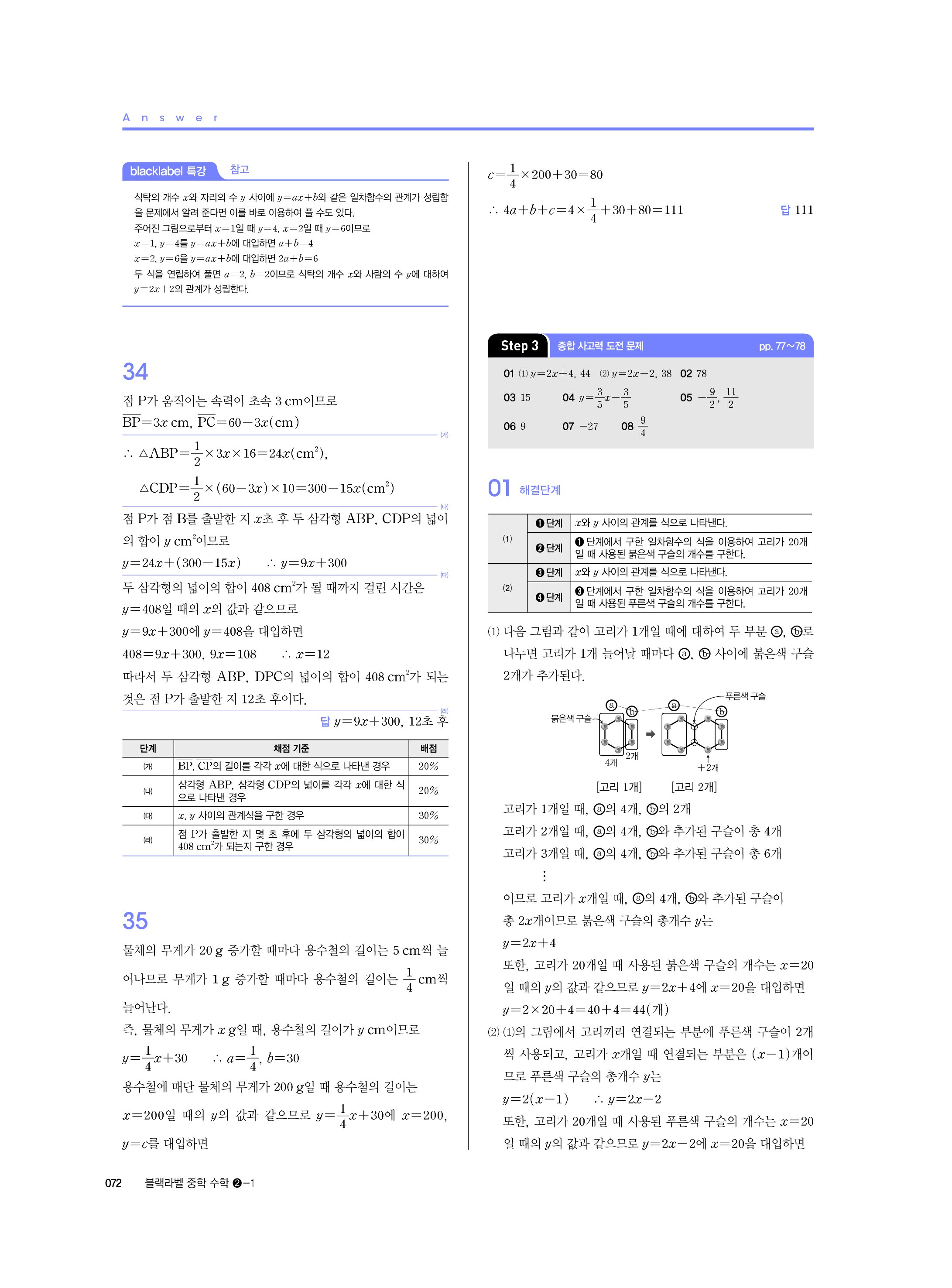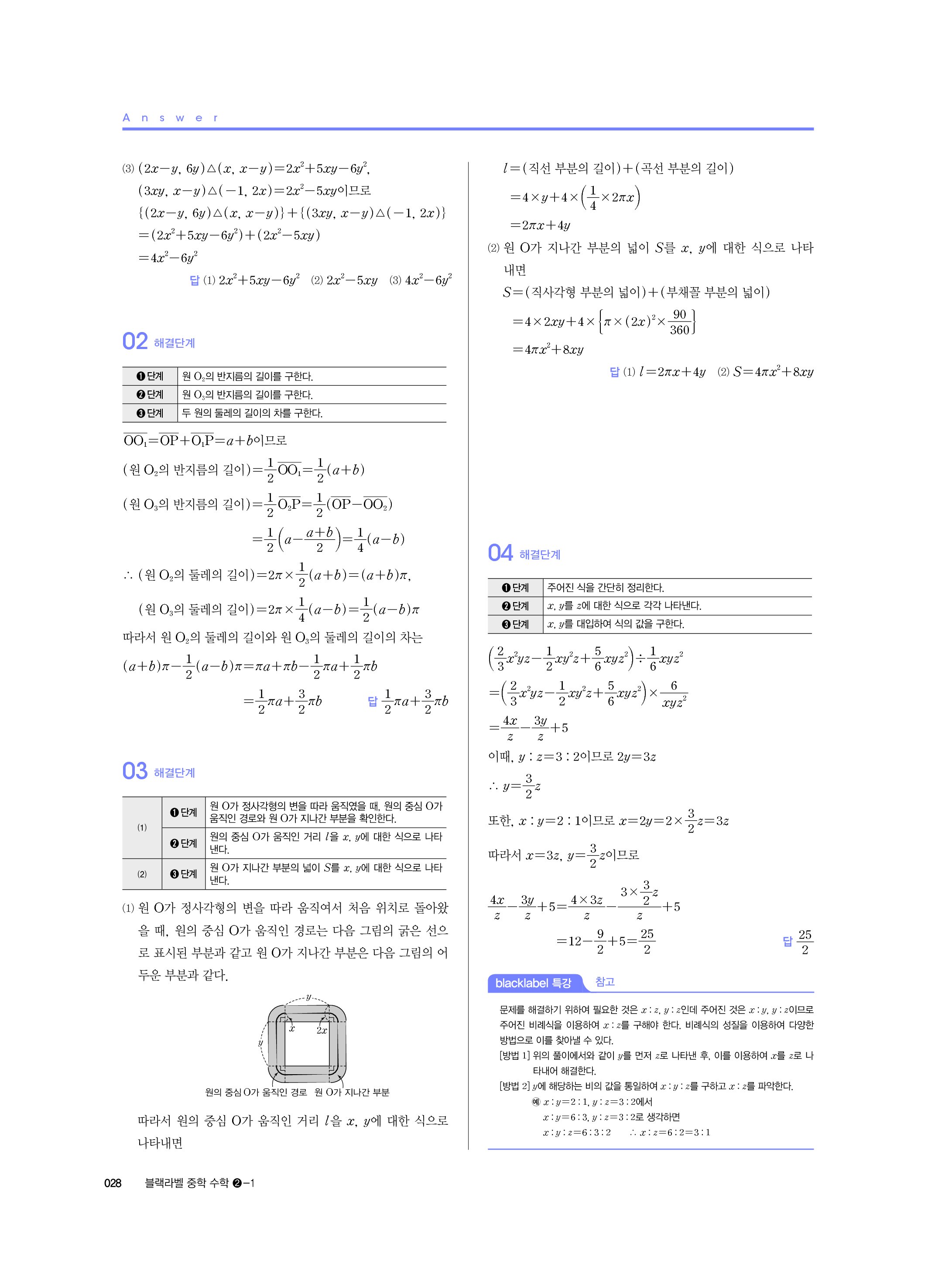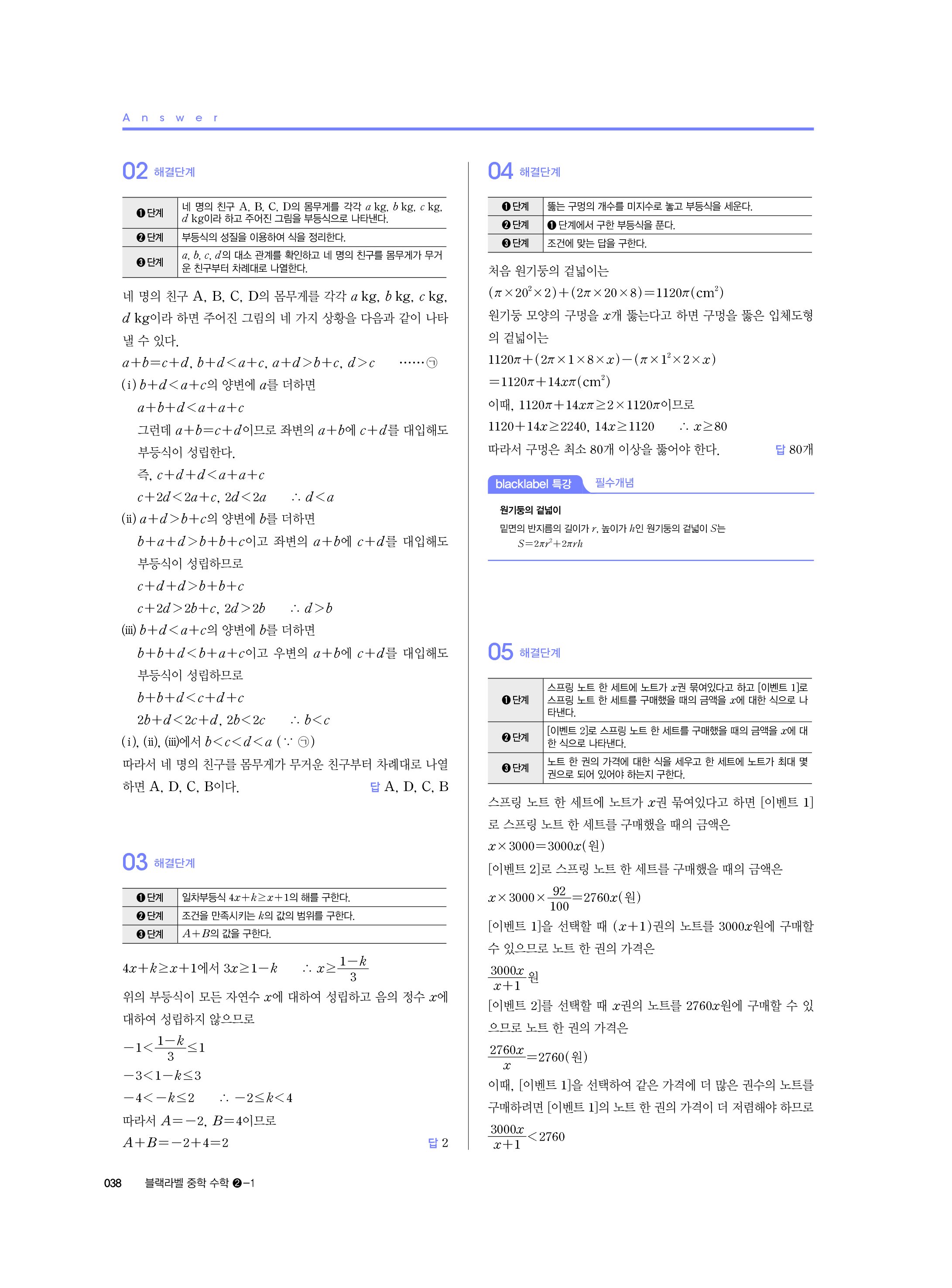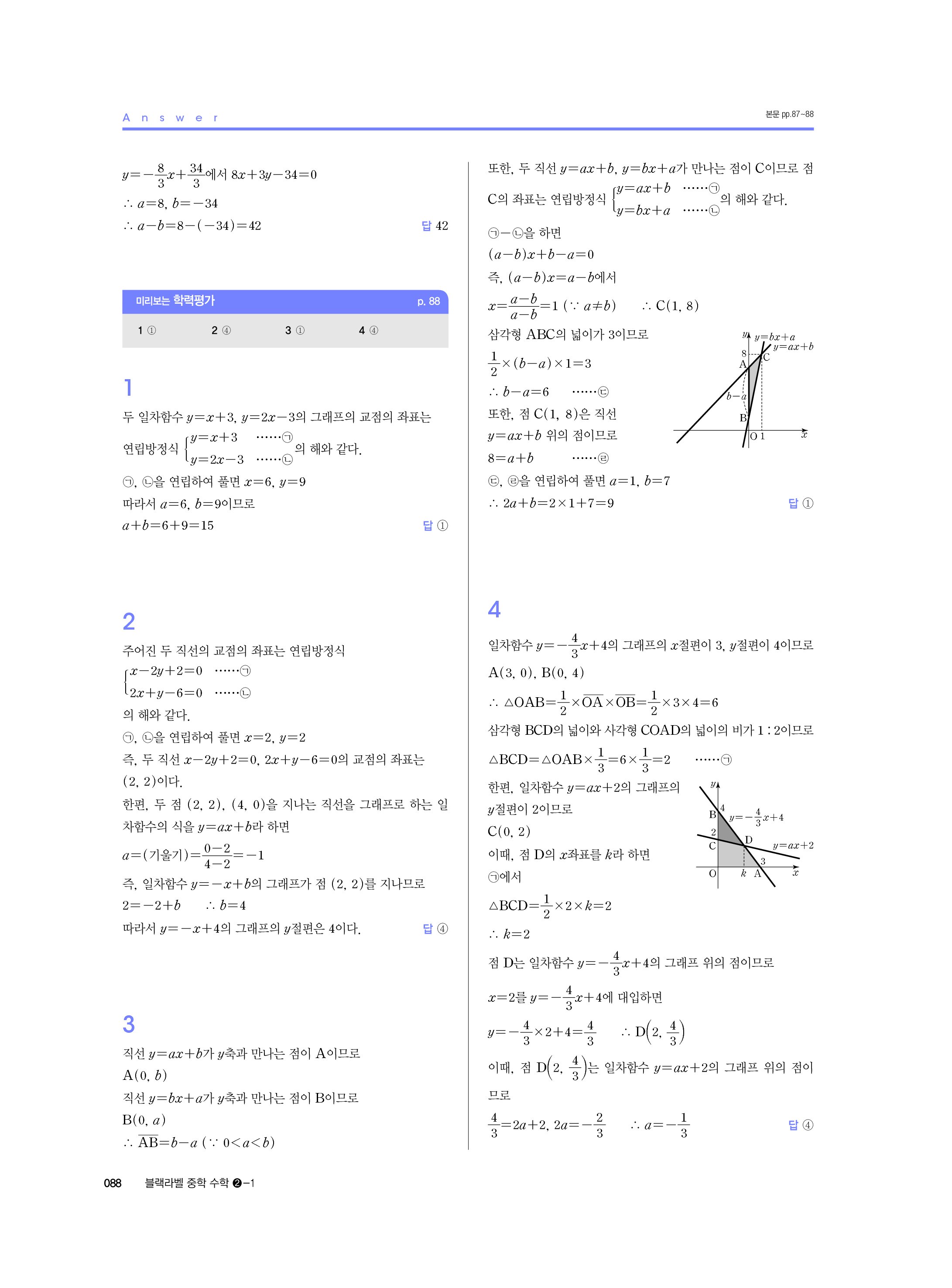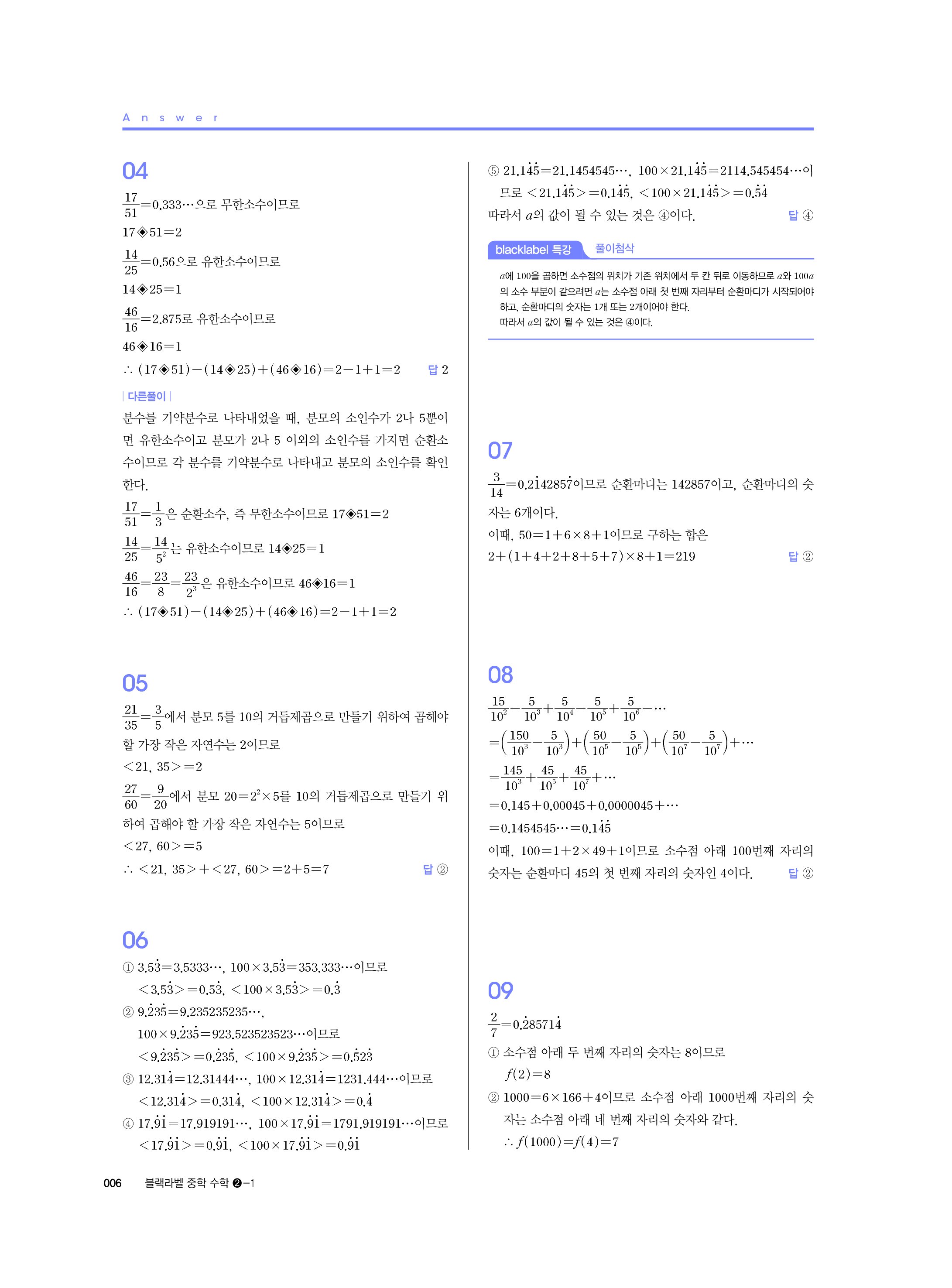 블랙라벨 중학수학 2-1 답지 해설 사진답지 빠른답지 모바일최적화 중2상