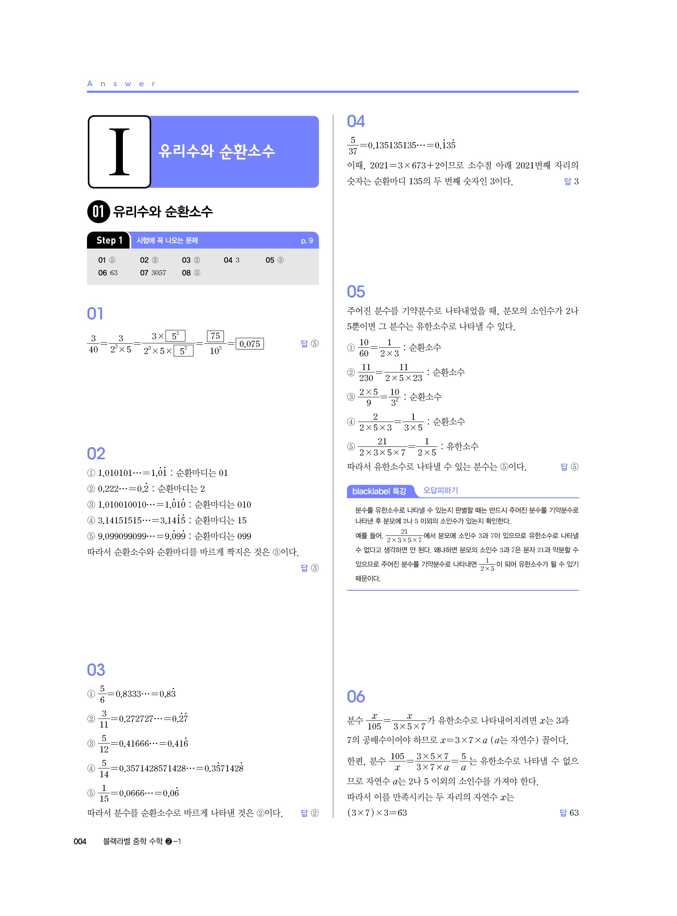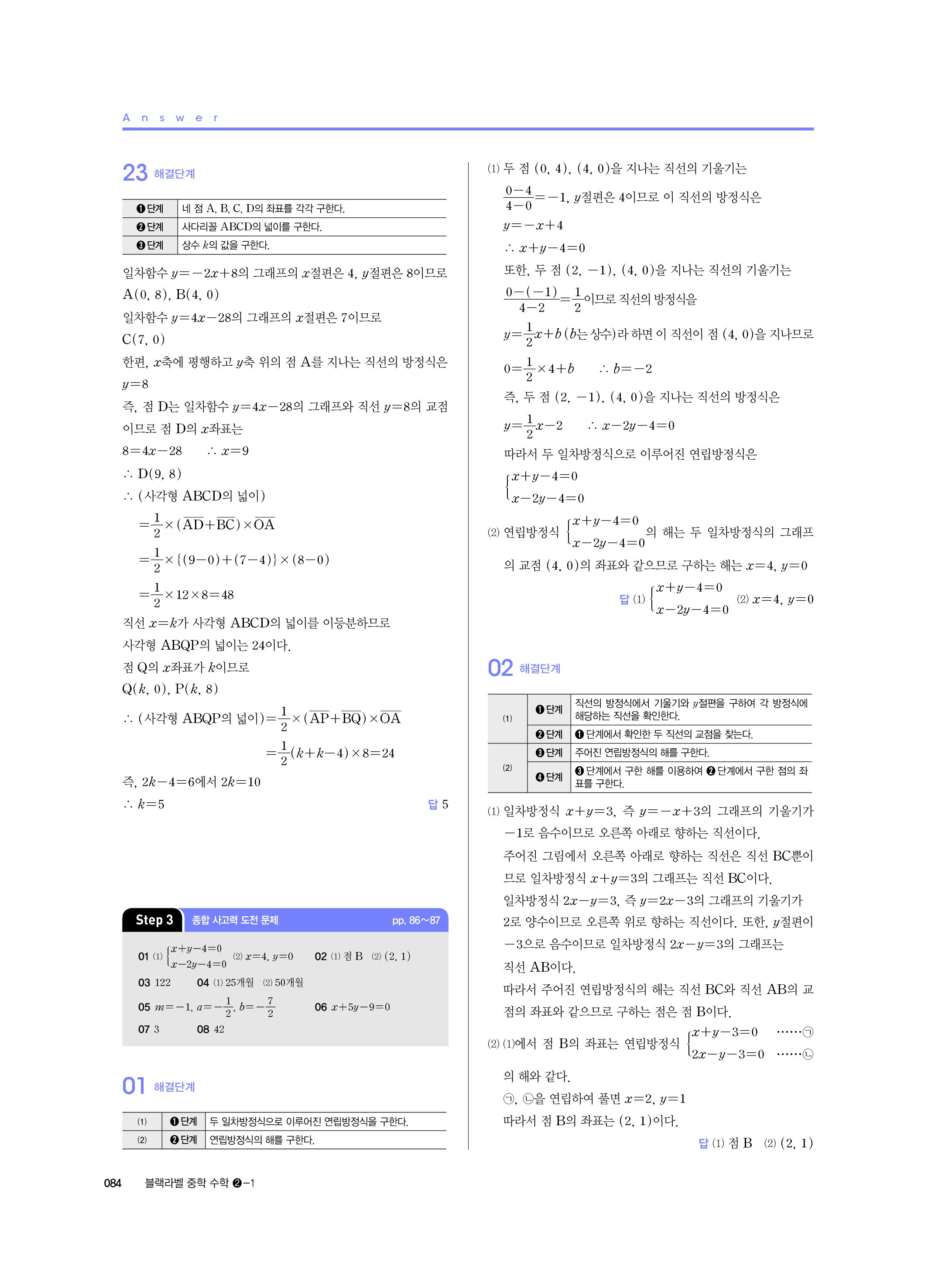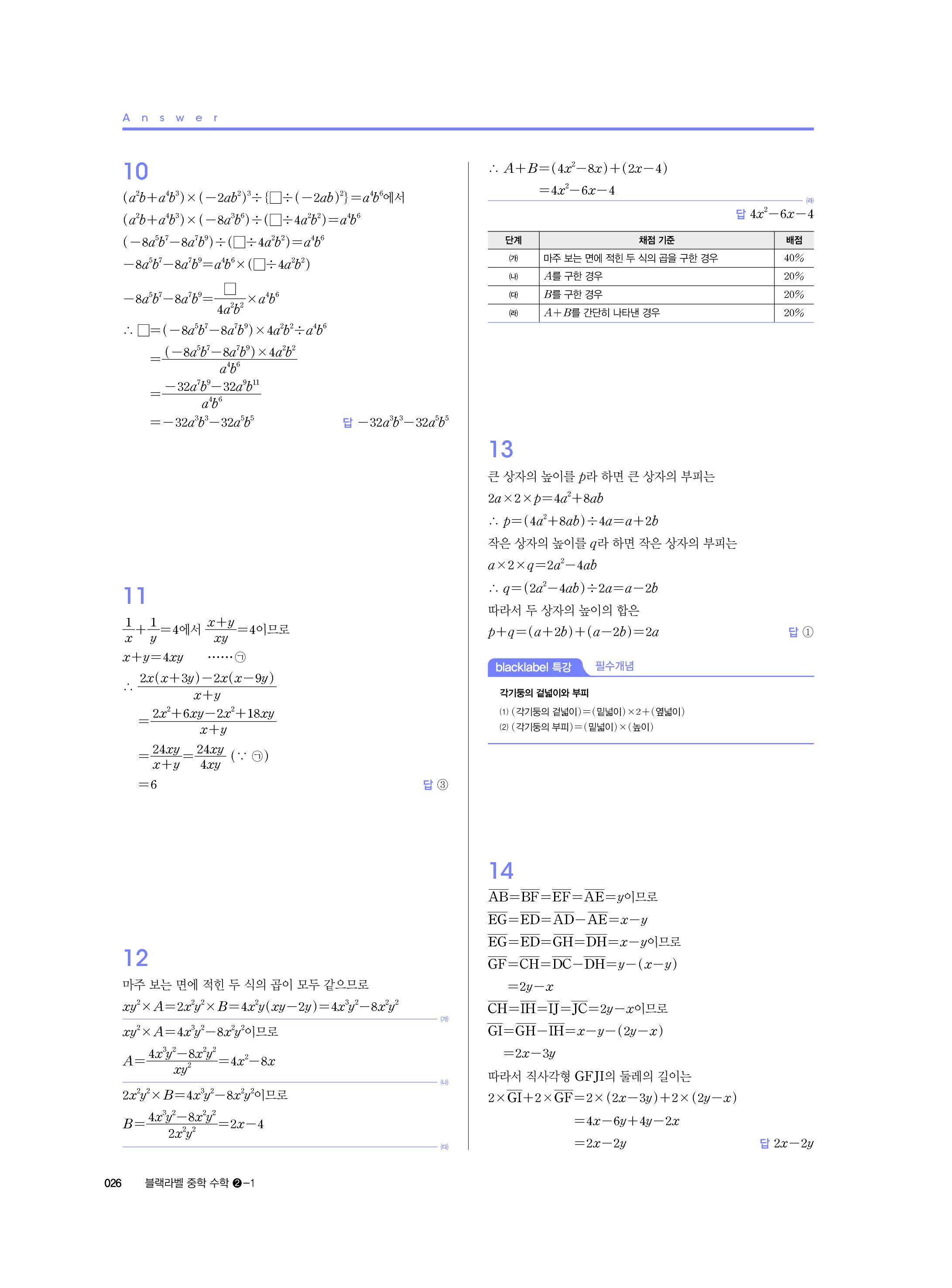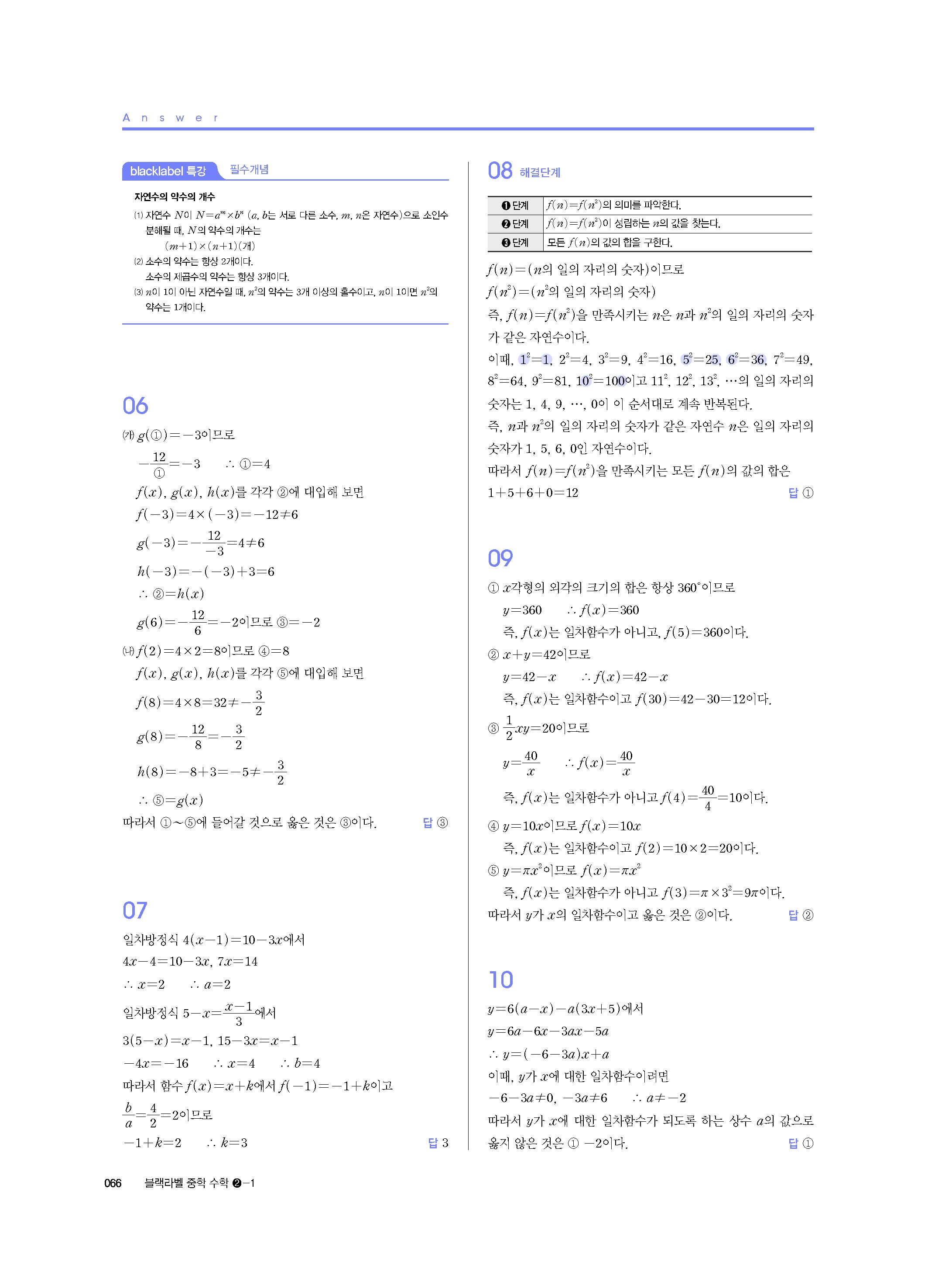 블랙라벨 중학수학 2-1 답지 해설 사진답지 빠른답지 모바일최적화 중2상