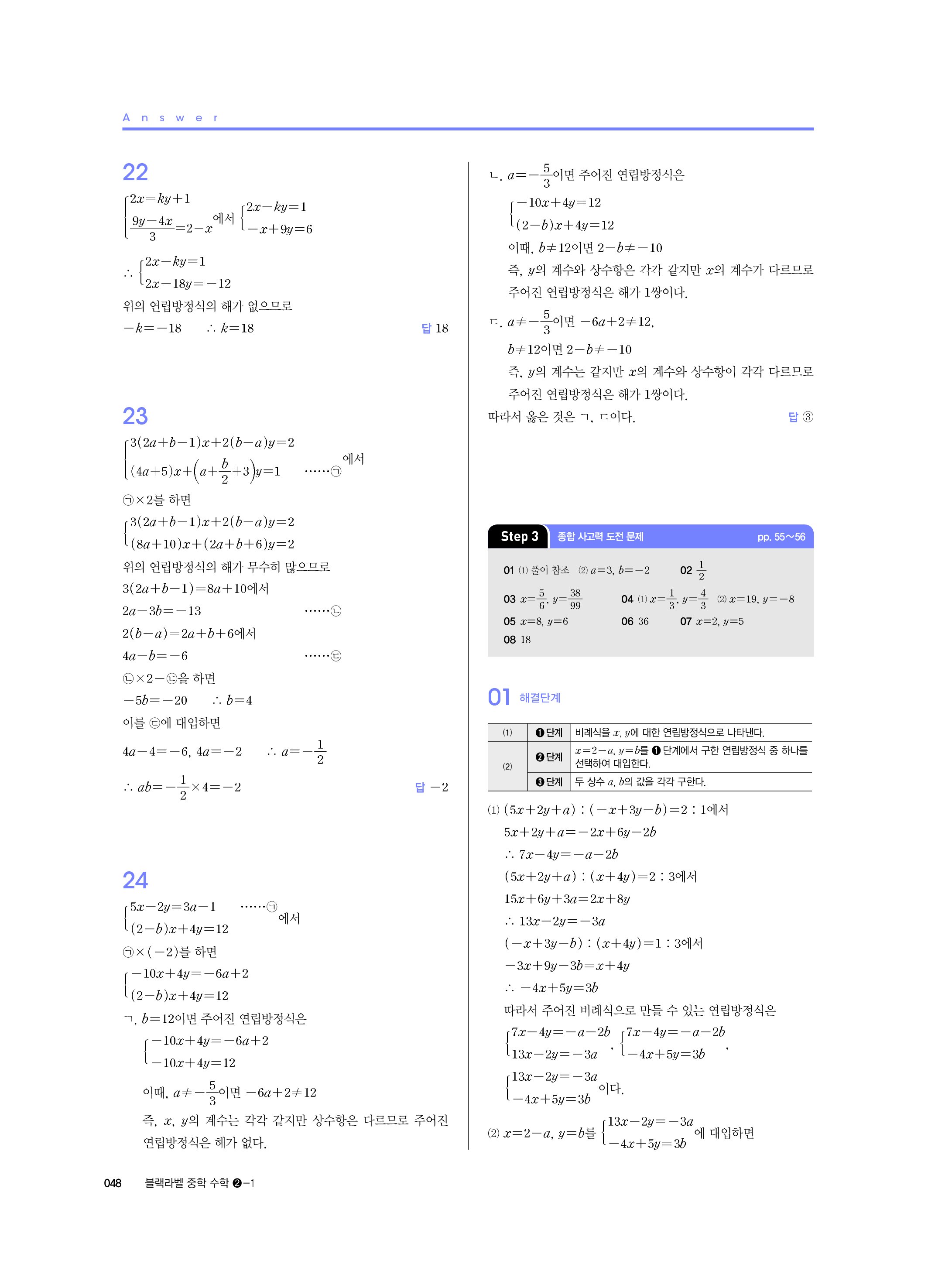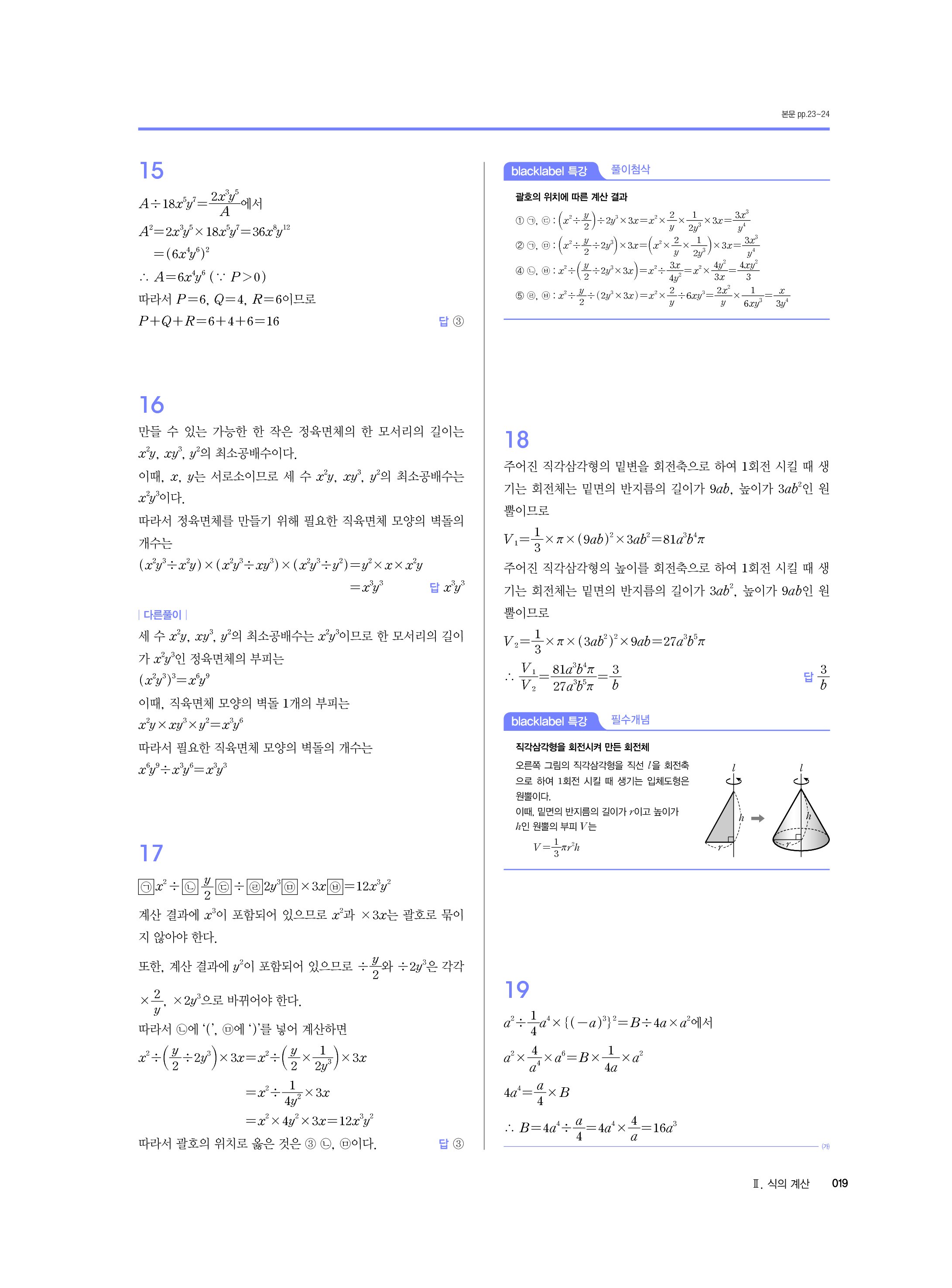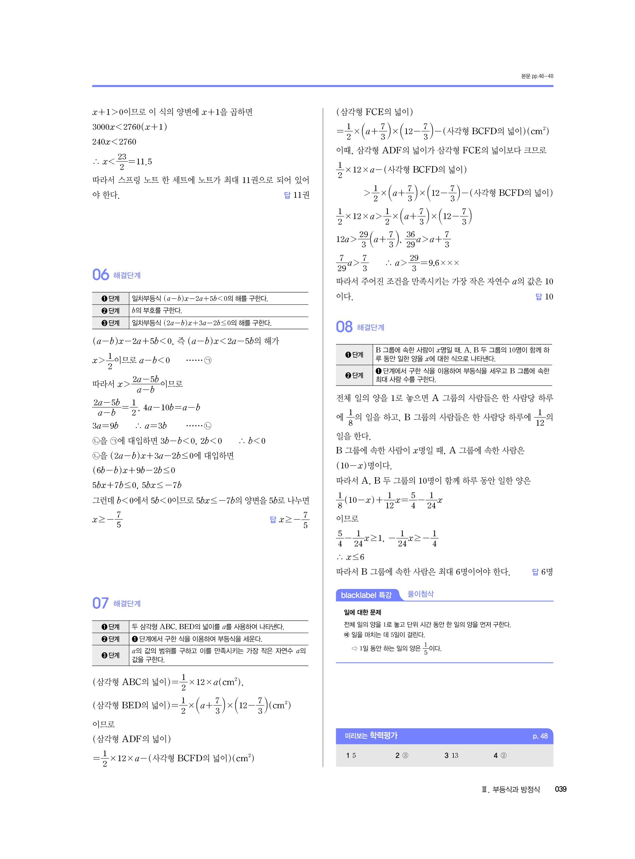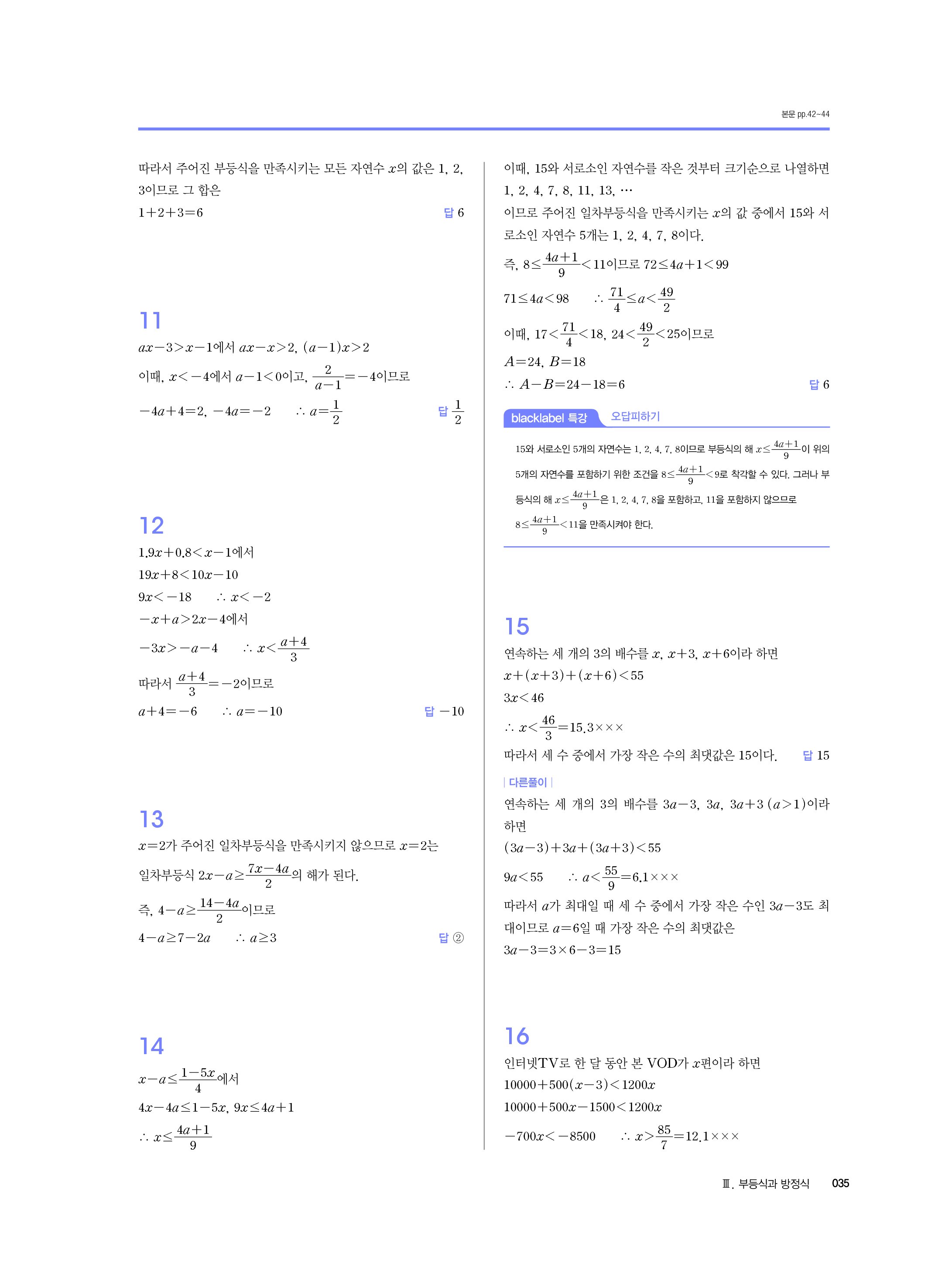 블랙라벨 중학수학 2-1 답지 해설 사진답지 빠른답지 모바일최적화 중2상