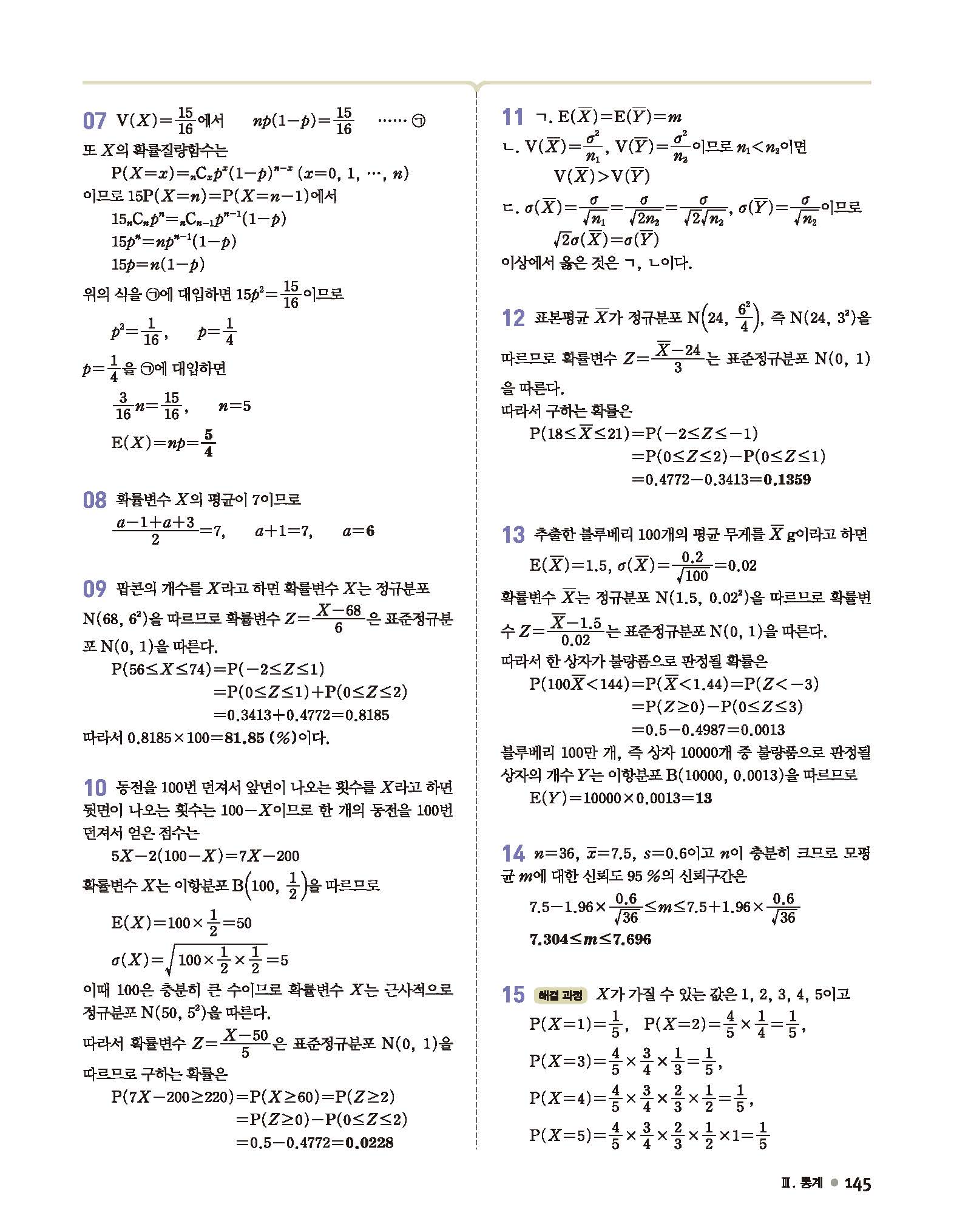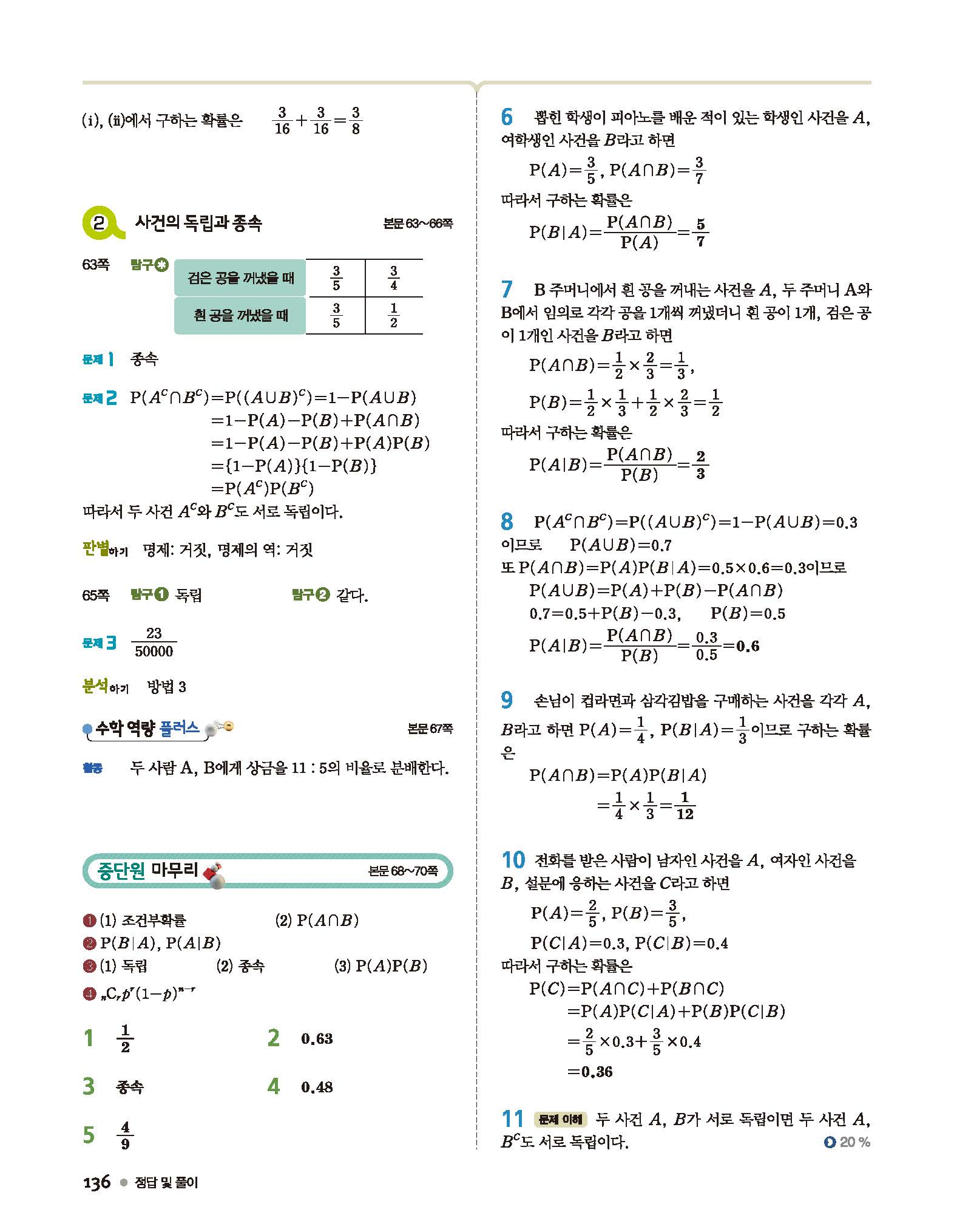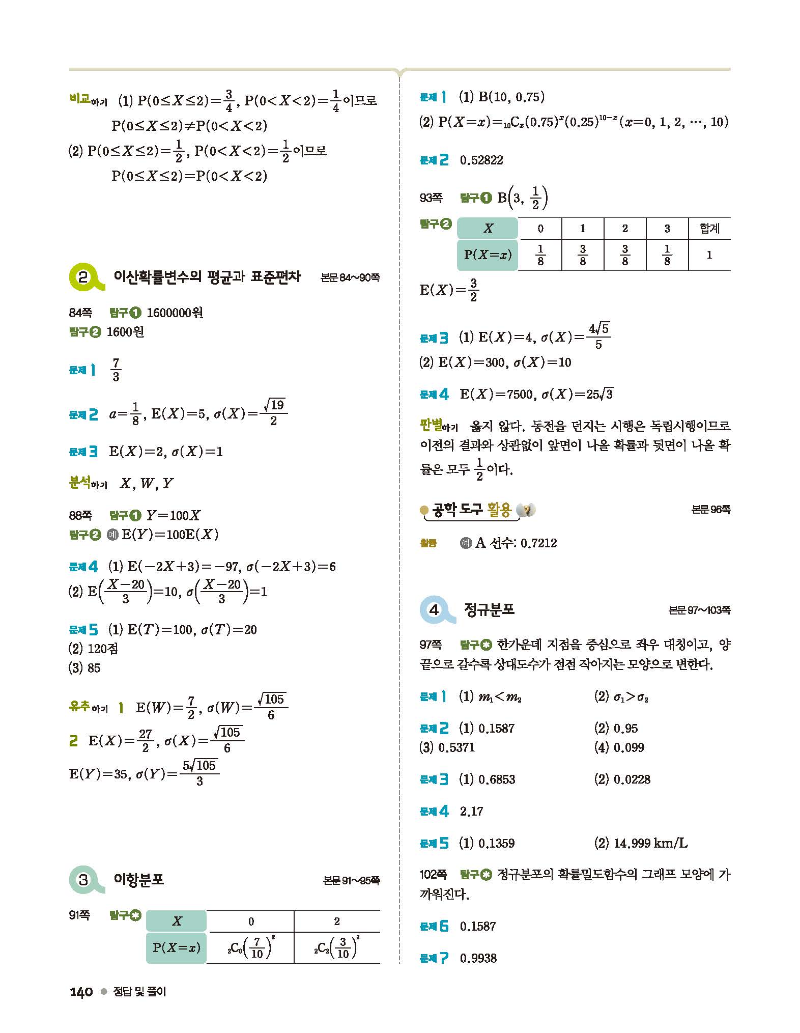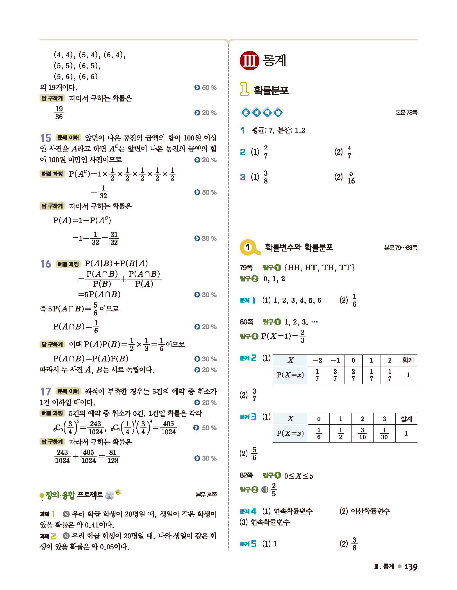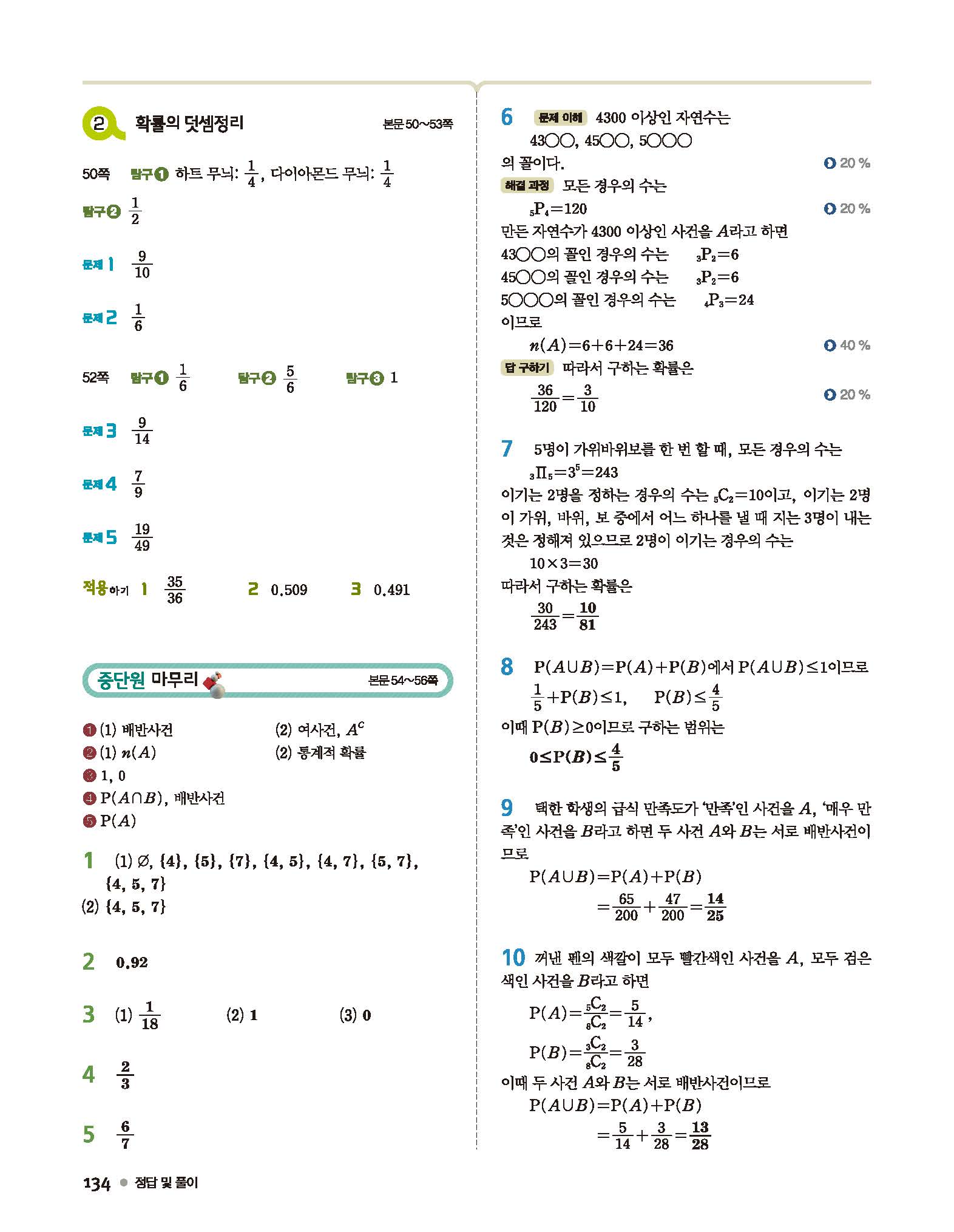 신사고 수학교과서 확률과통계 답지 해설 사진답지 빠른답지 모바일최적화