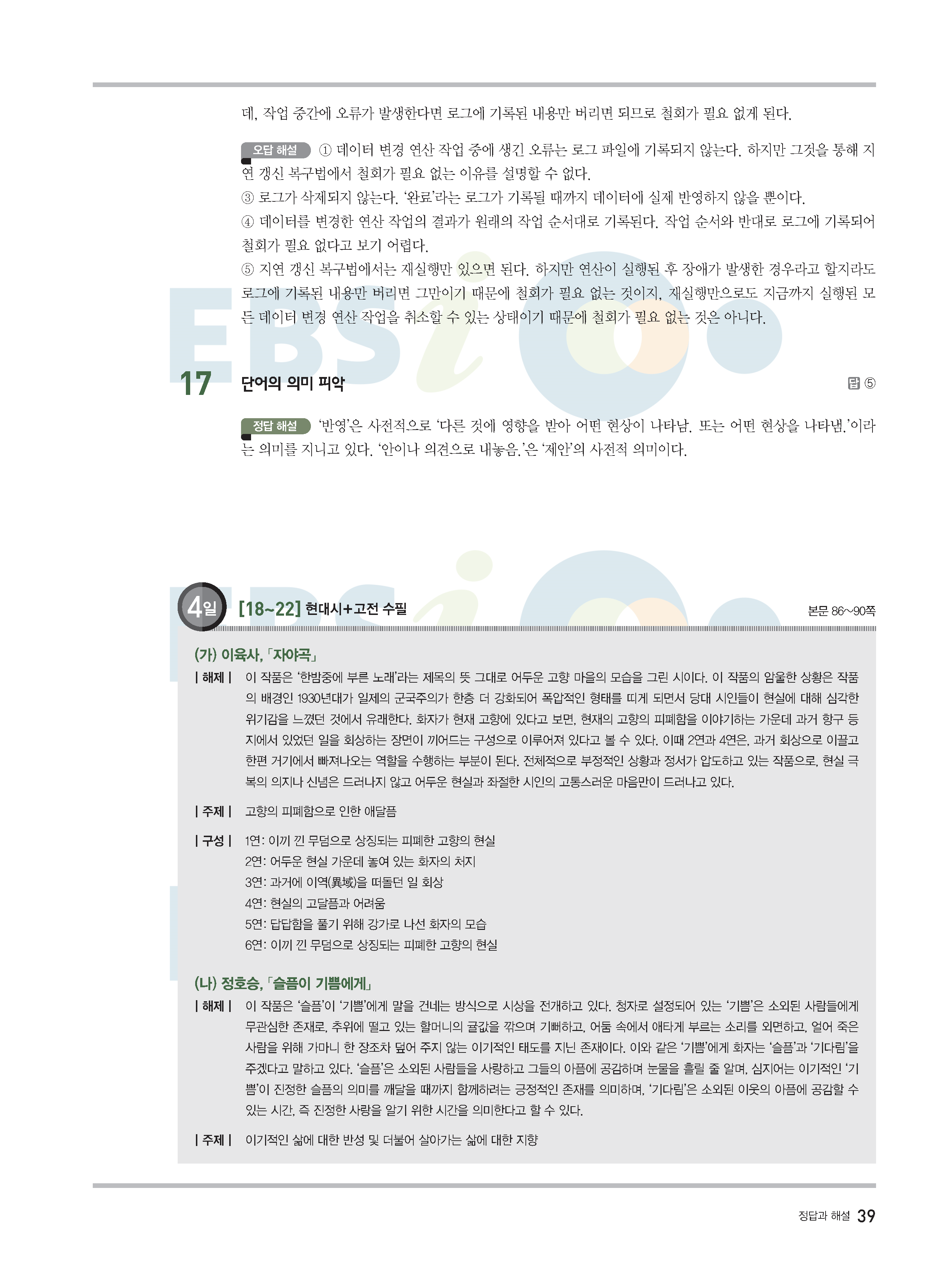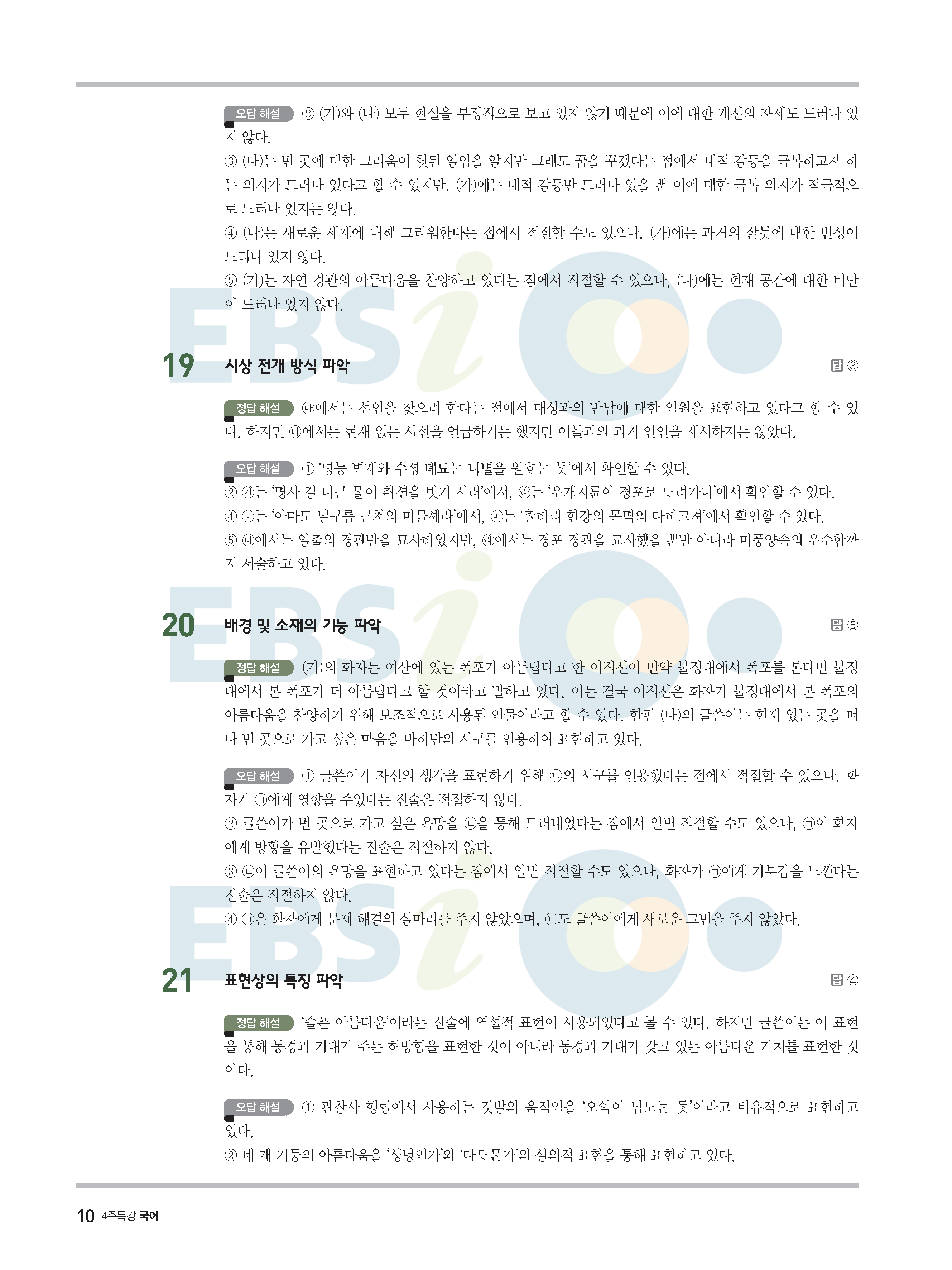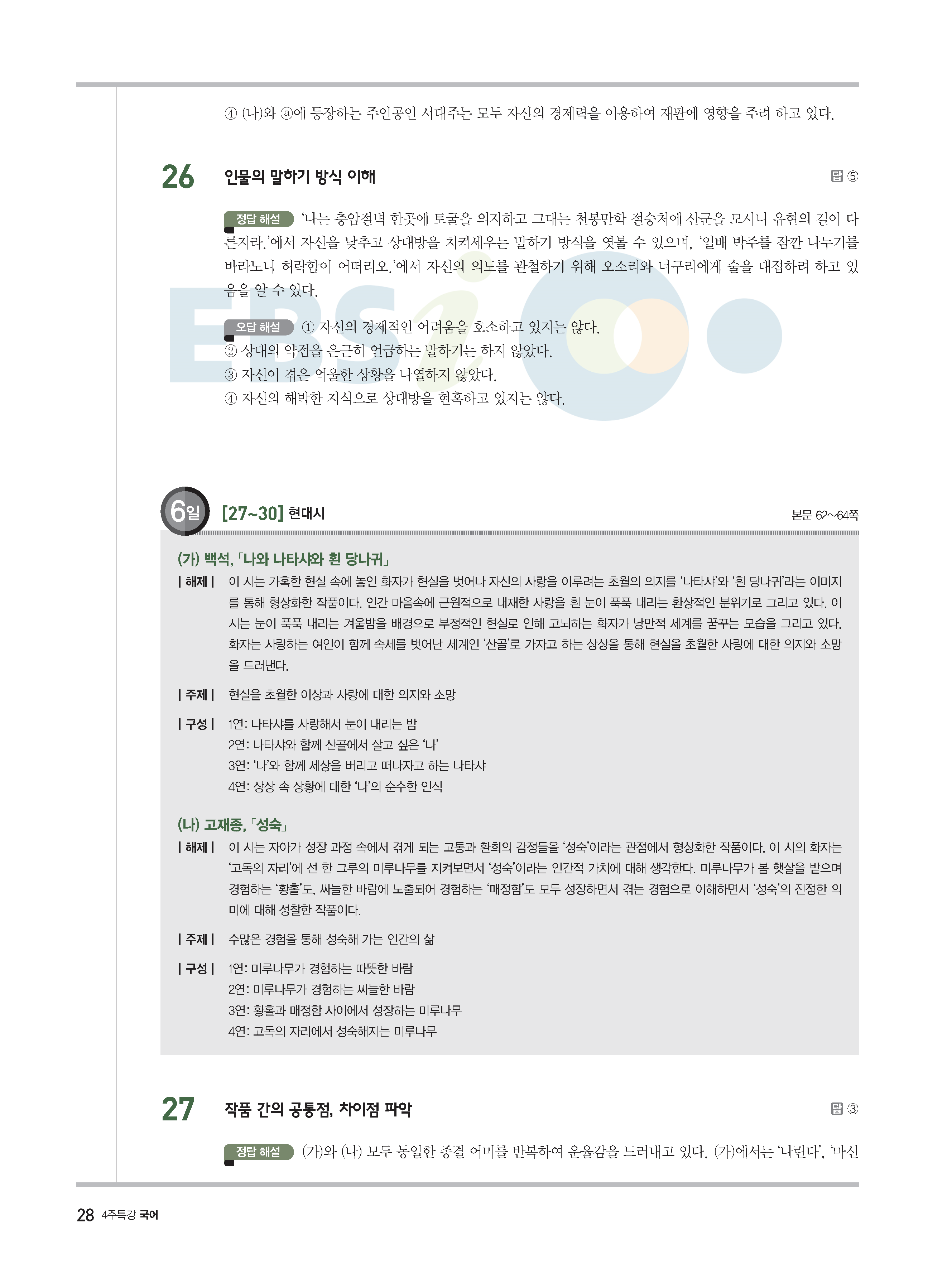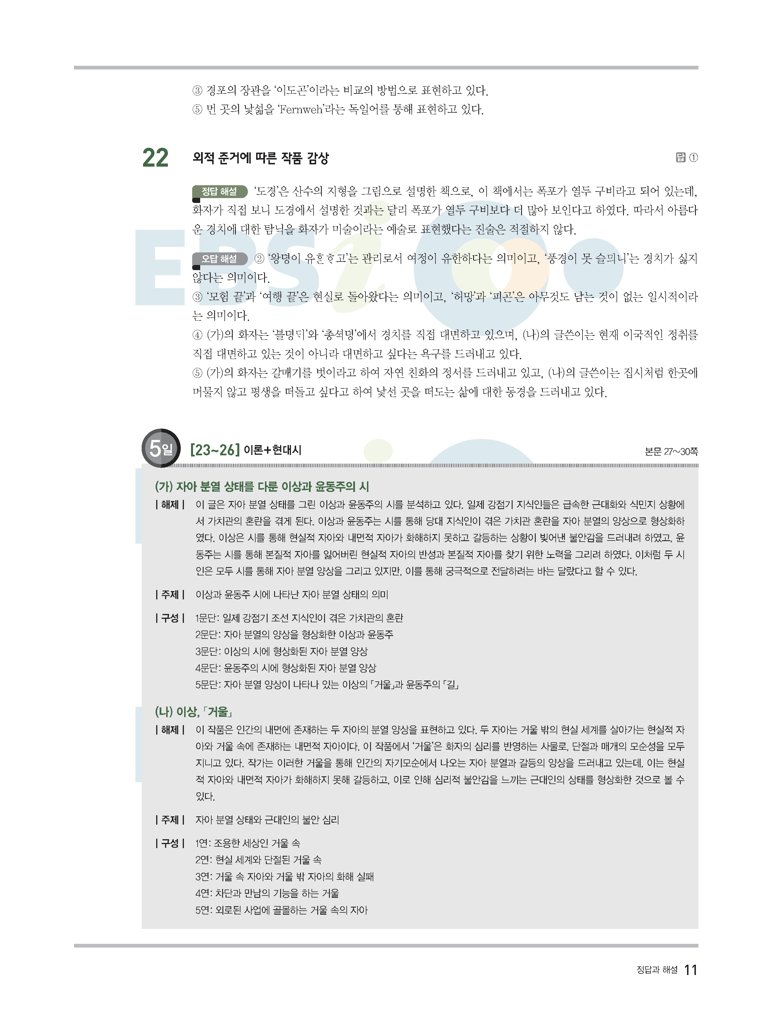 2022 EBS 수능연계완성 4주특강 국어 답지 해설 사진답지 빠른답지 모바일최적화