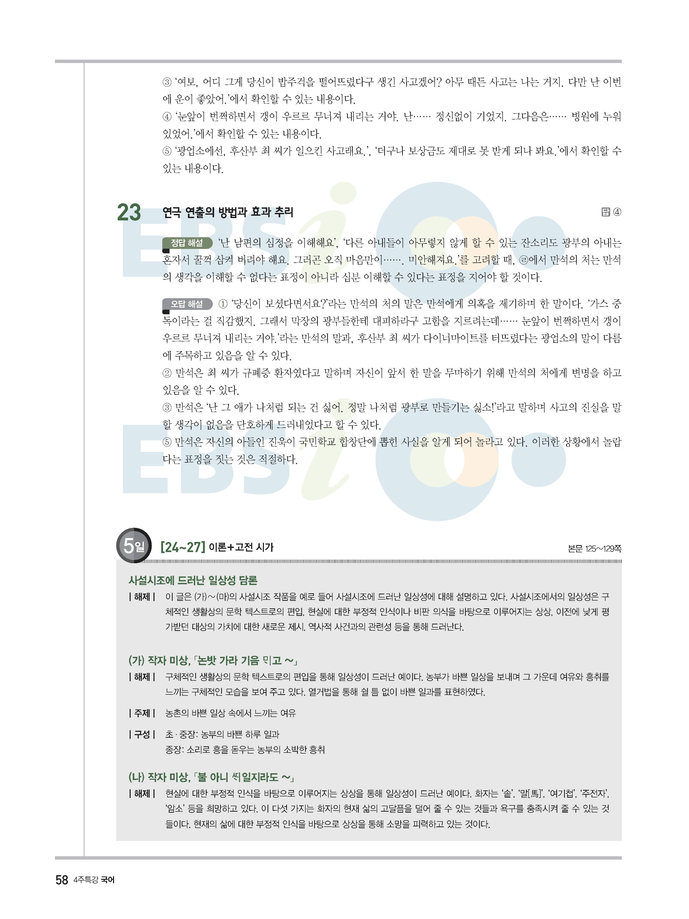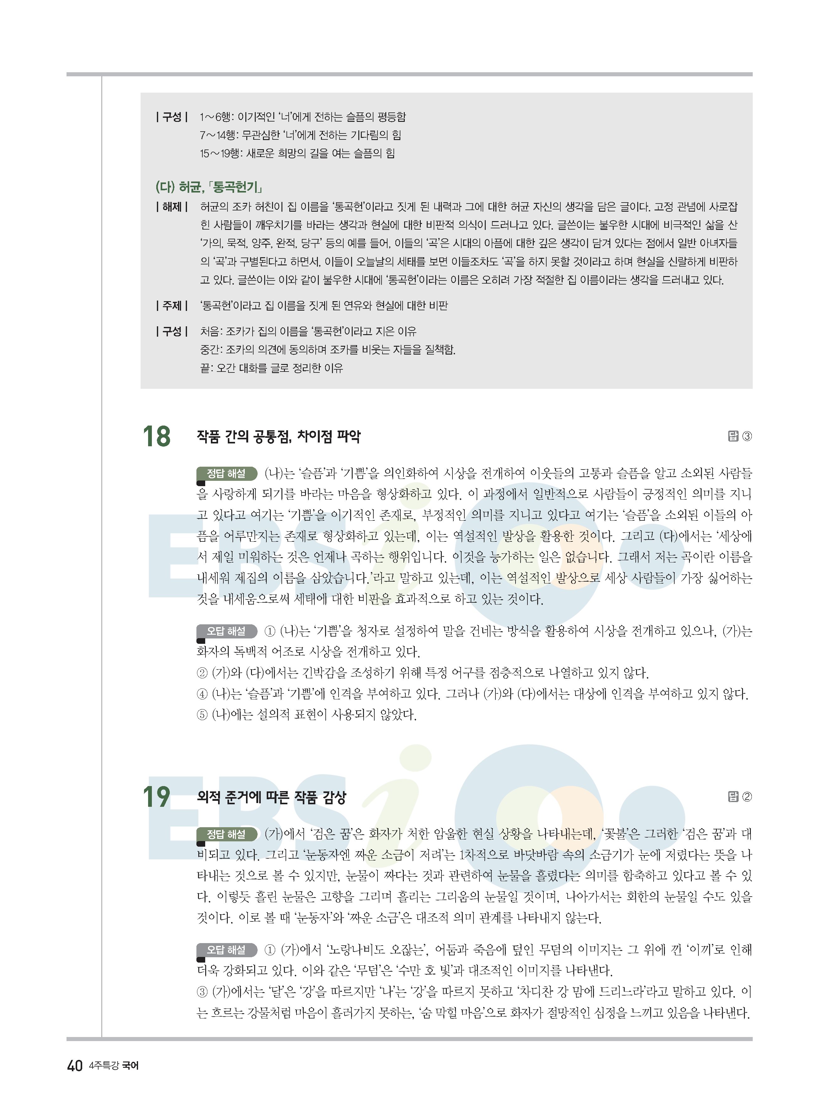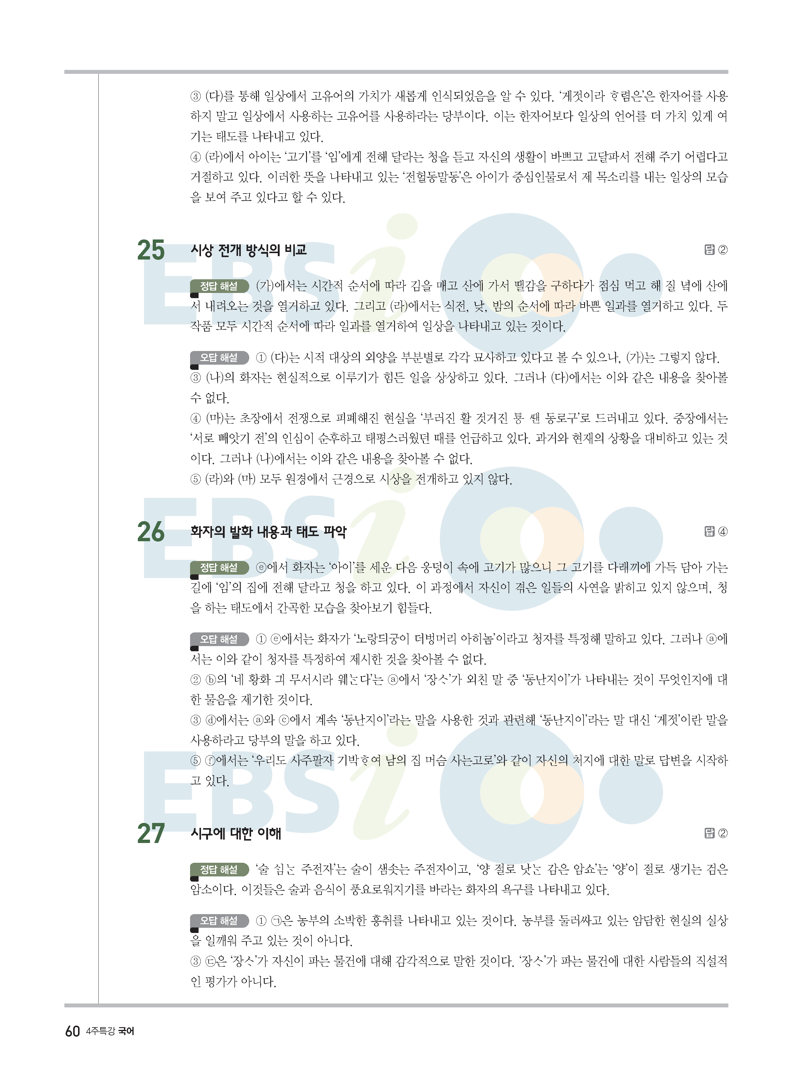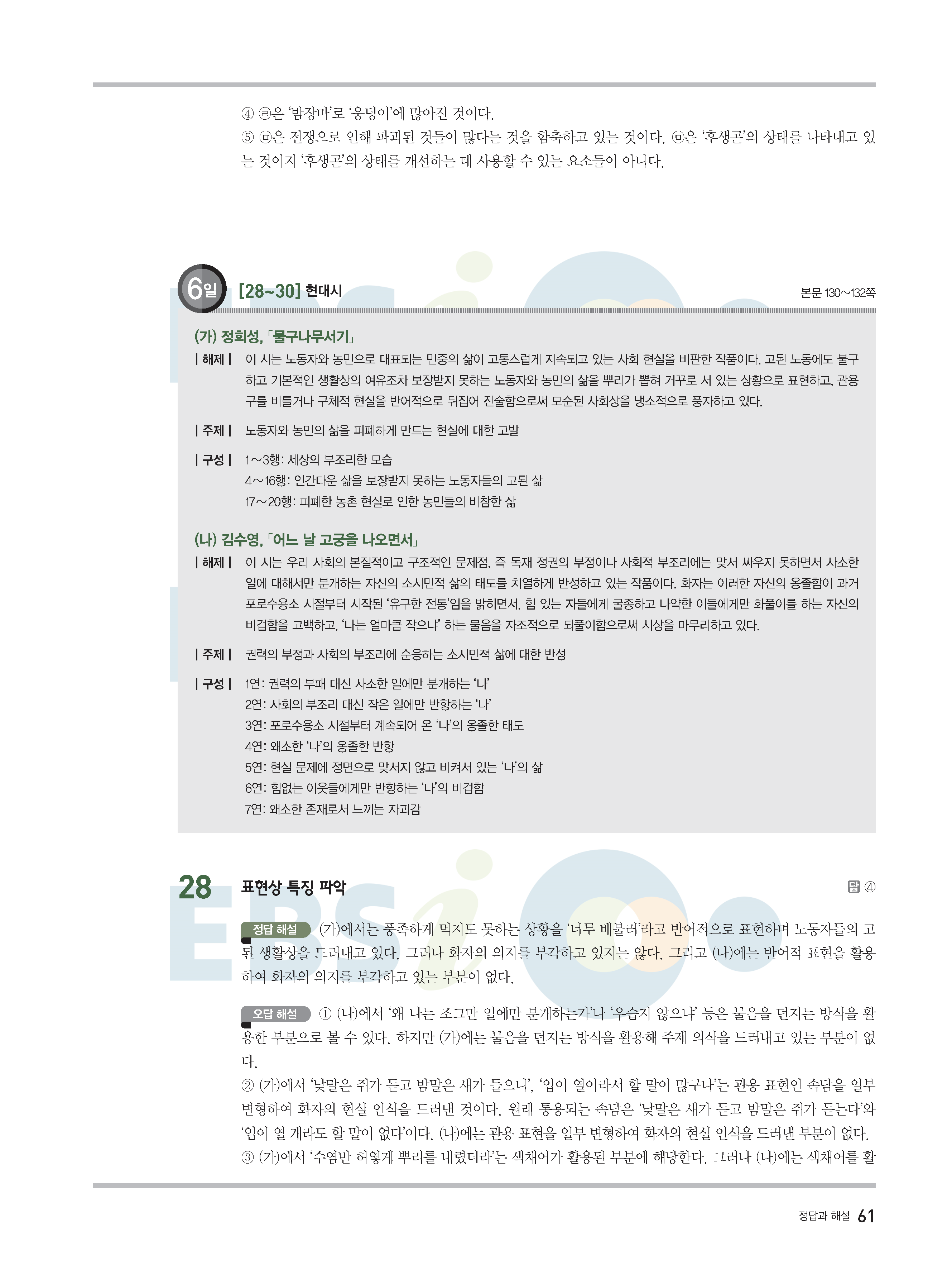 2022 EBS 수능연계완성 4주특강 국어 답지 해설 사진답지 빠른답지 모바일최적화