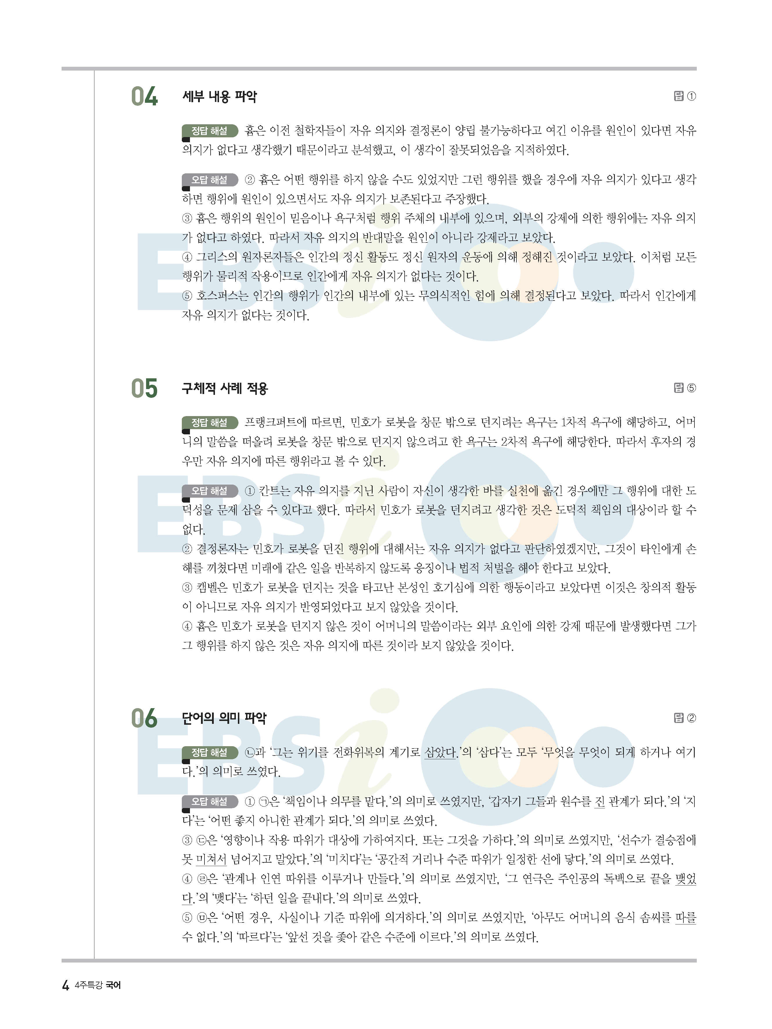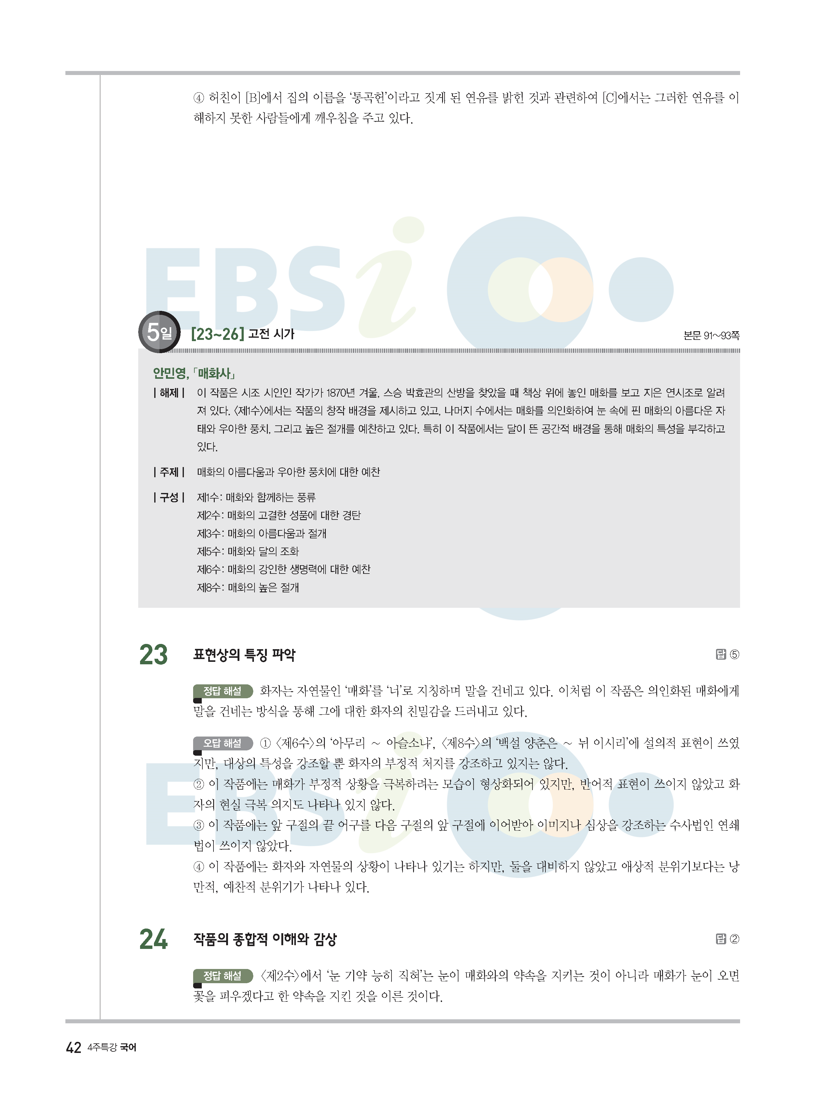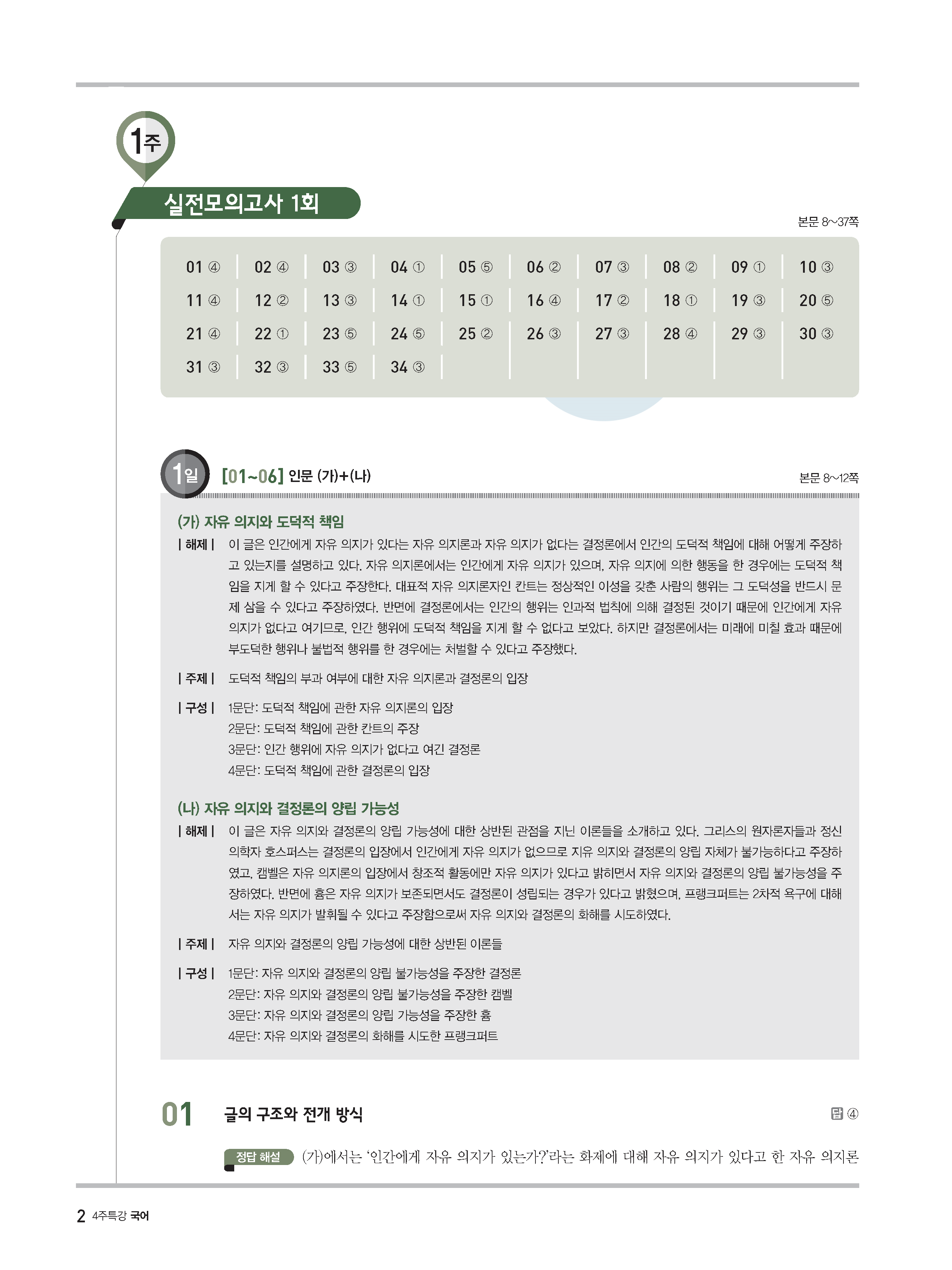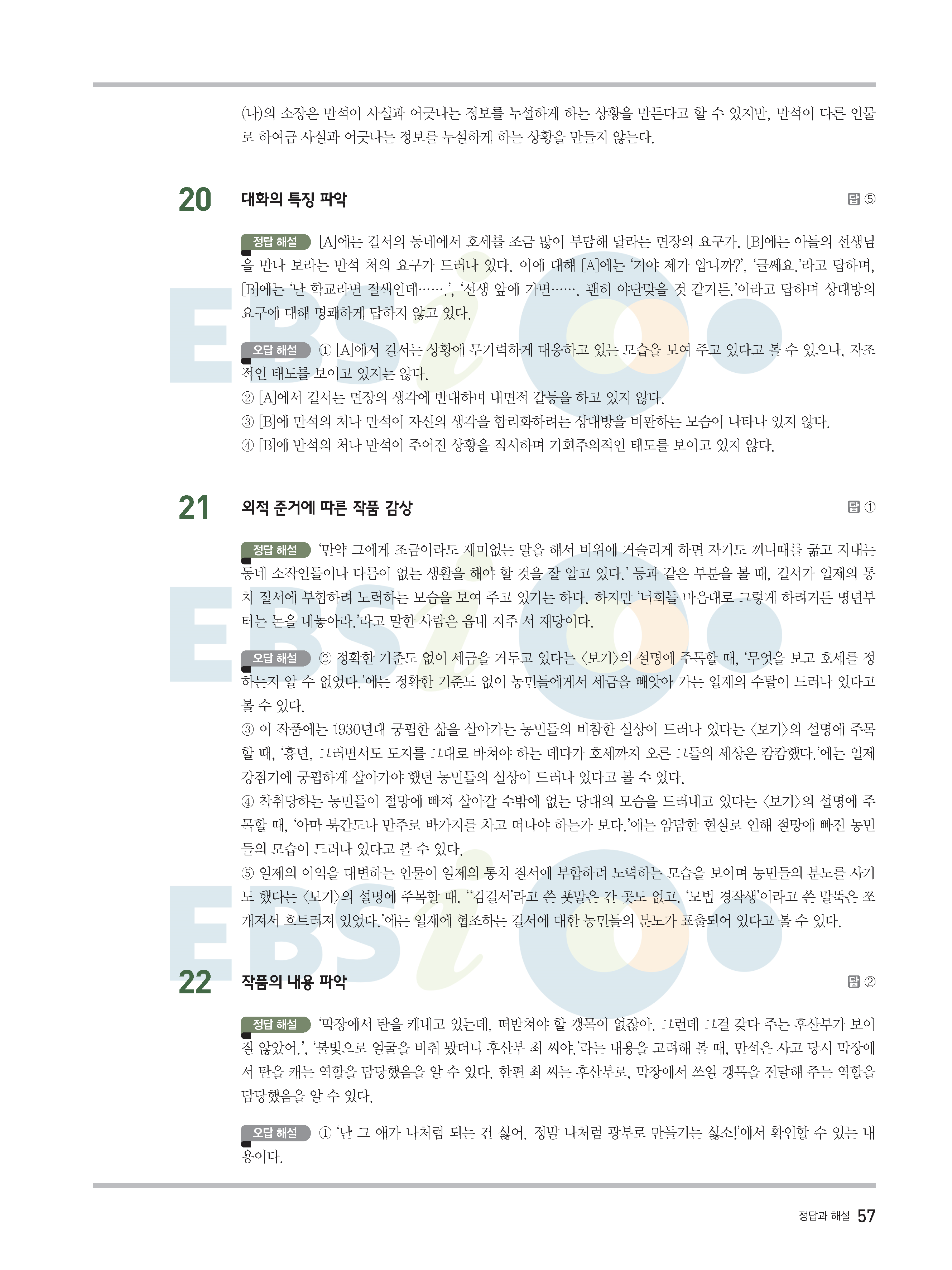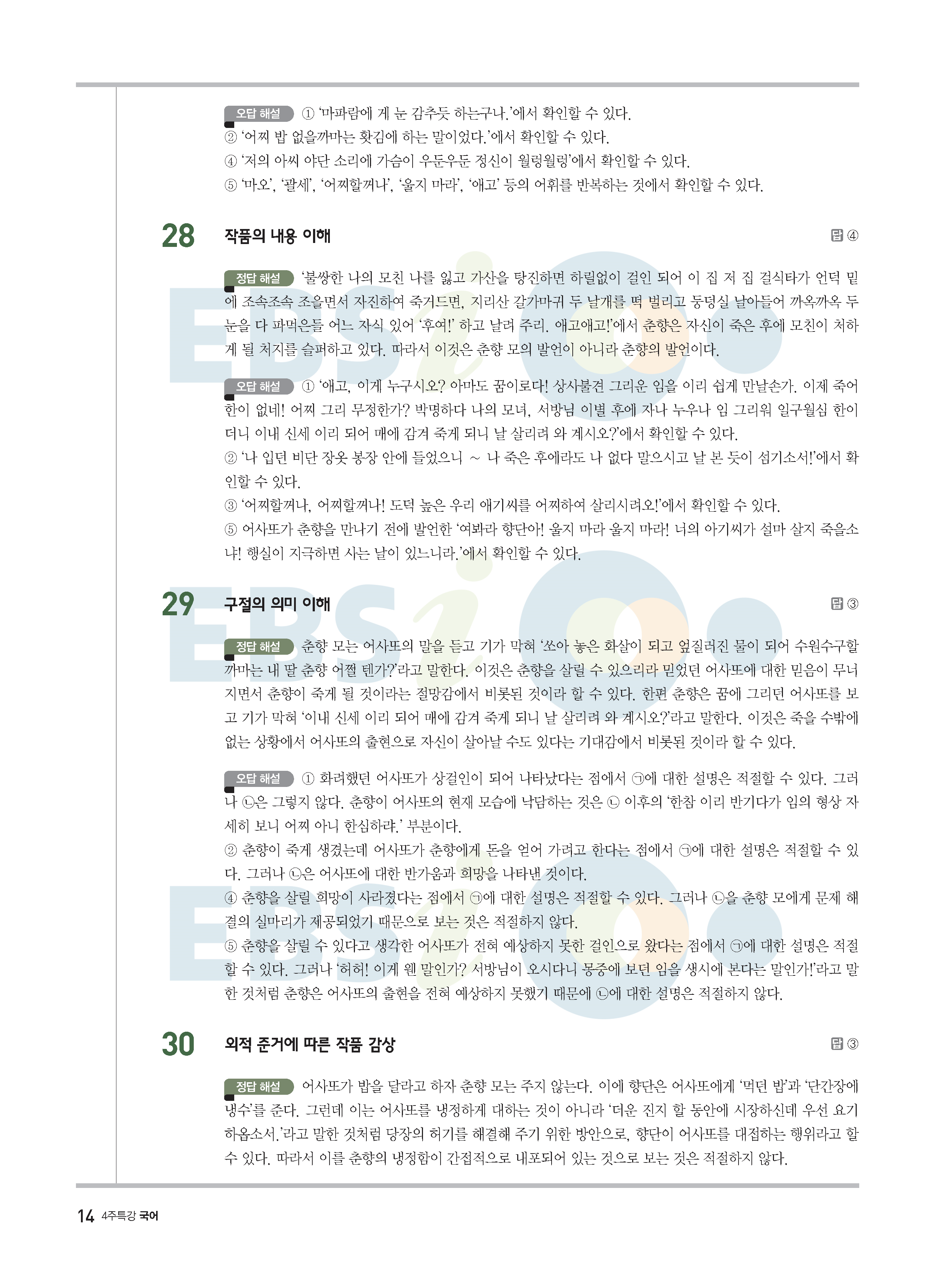 2022 EBS 수능연계완성 4주특강 국어 답지 해설 사진답지 빠른답지 모바일최적화