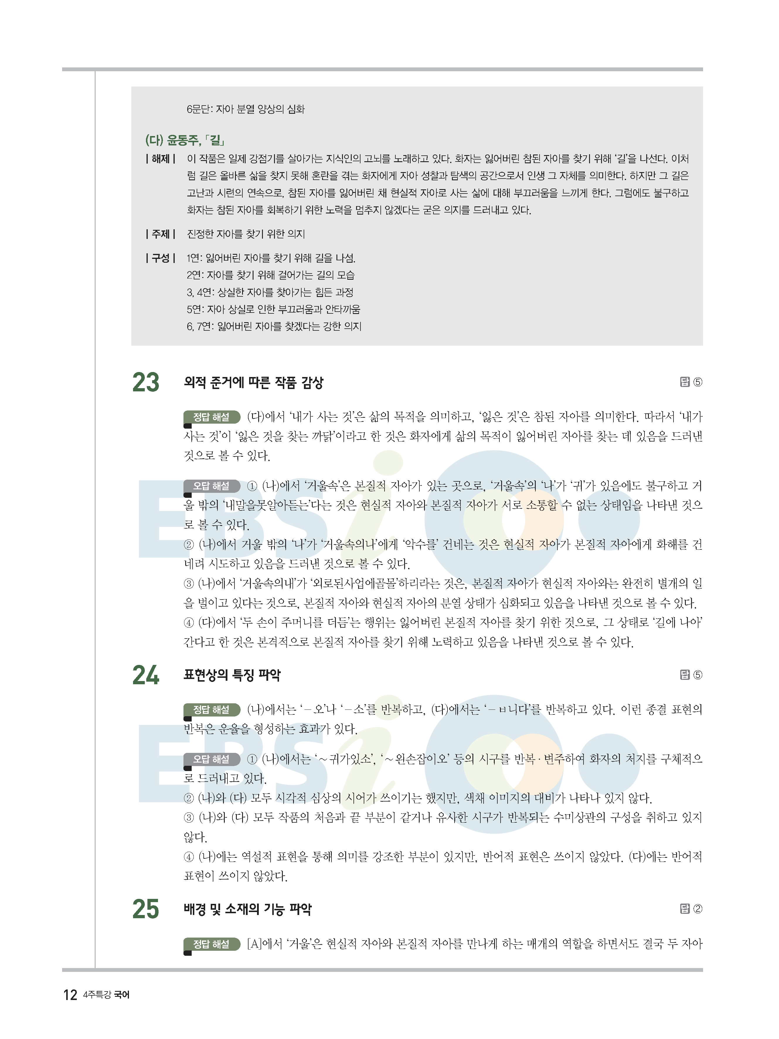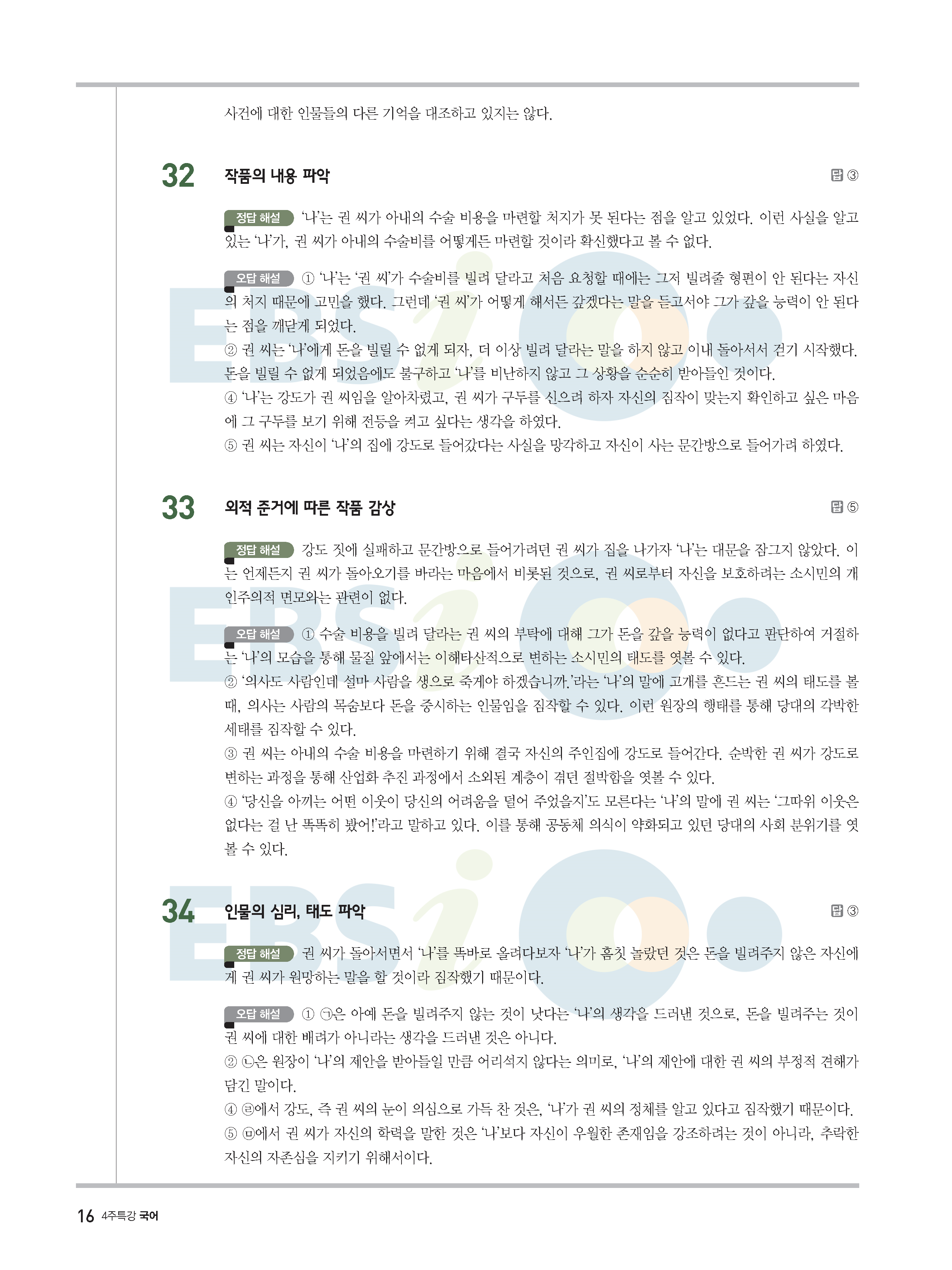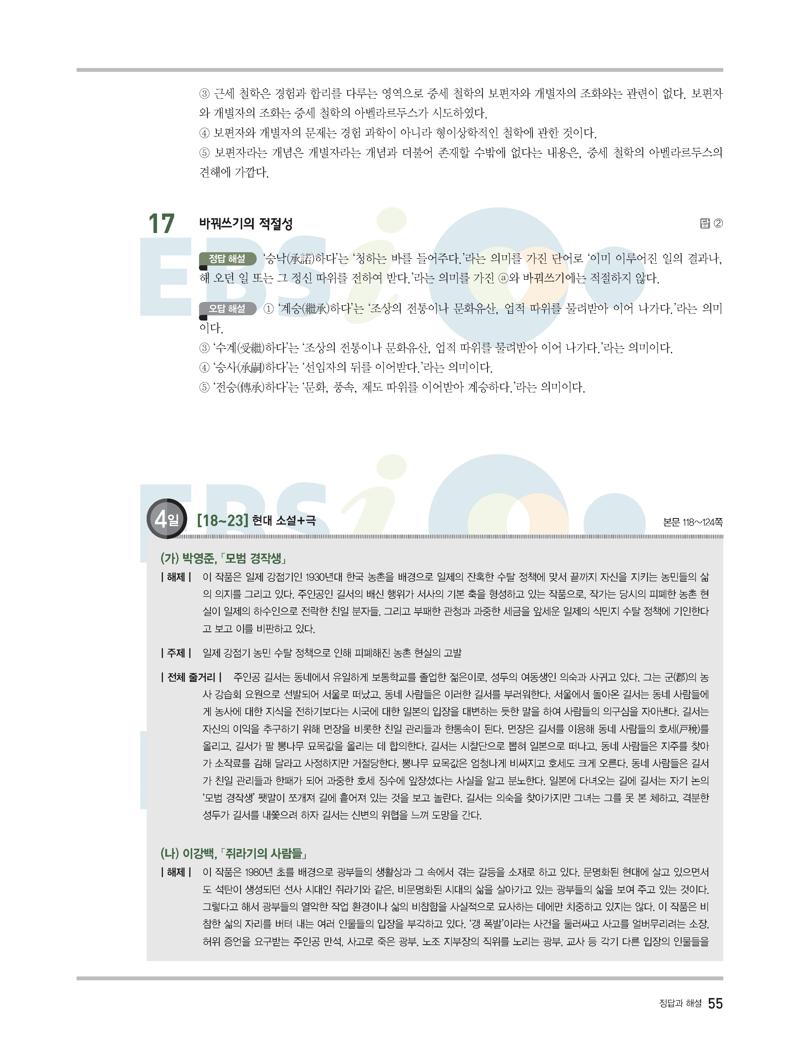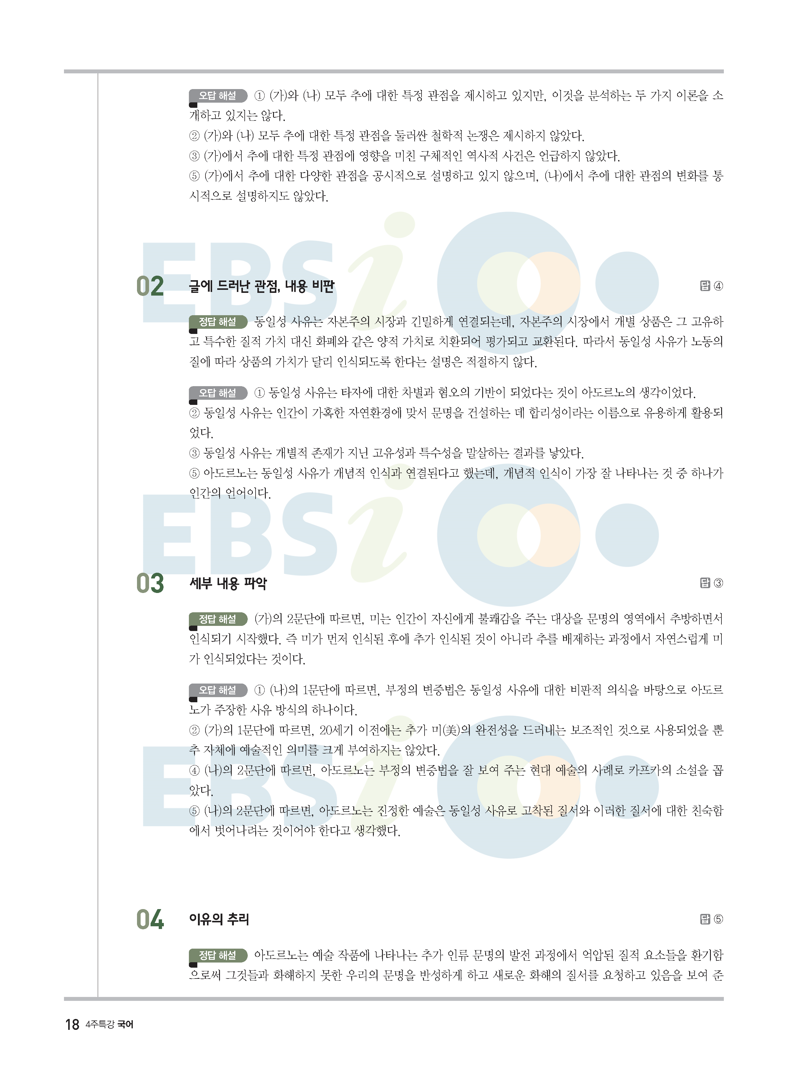 2022 EBS 수능연계완성 4주특강 국어 답지 해설 사진답지 빠른답지 모바일최적화