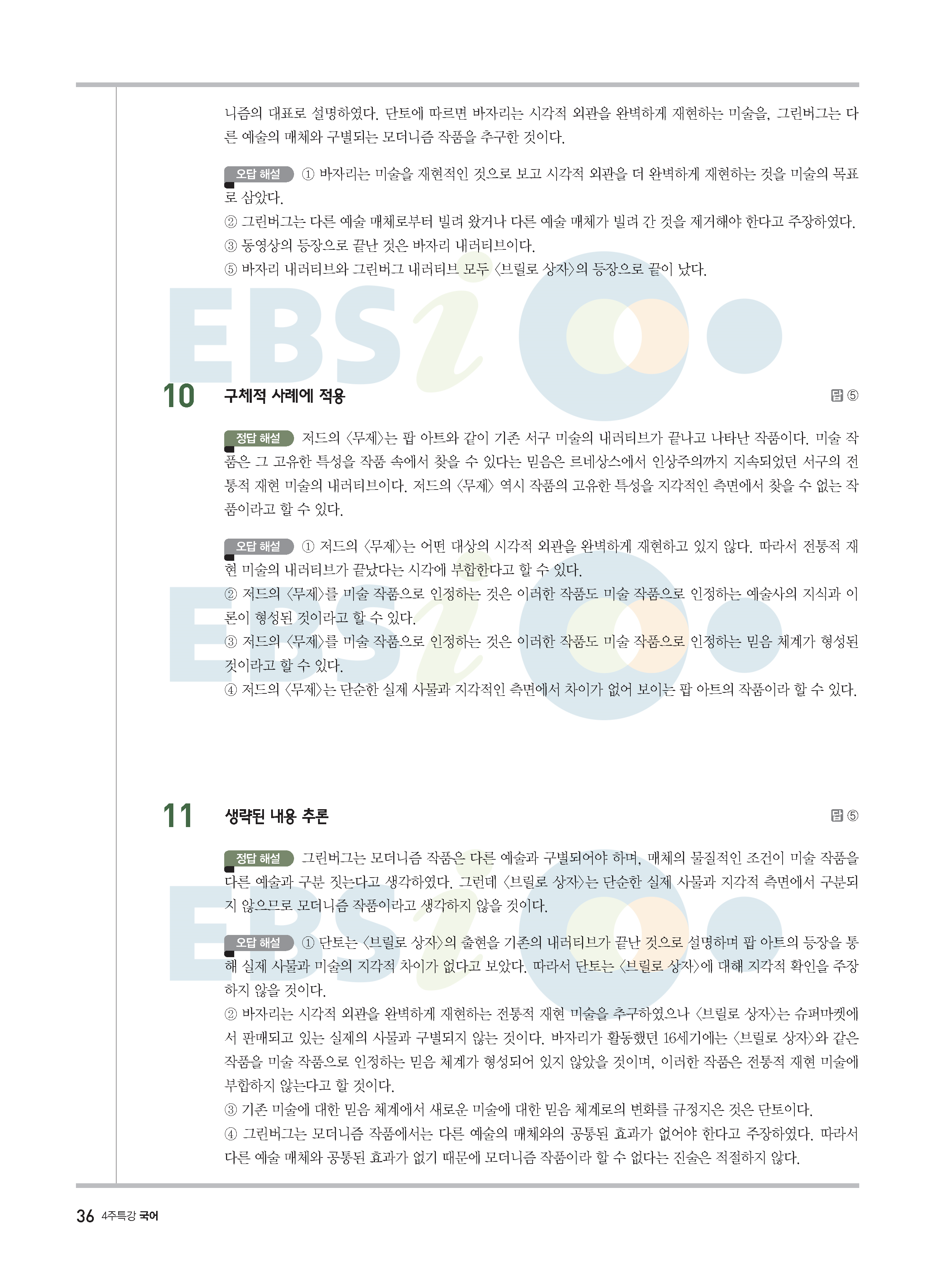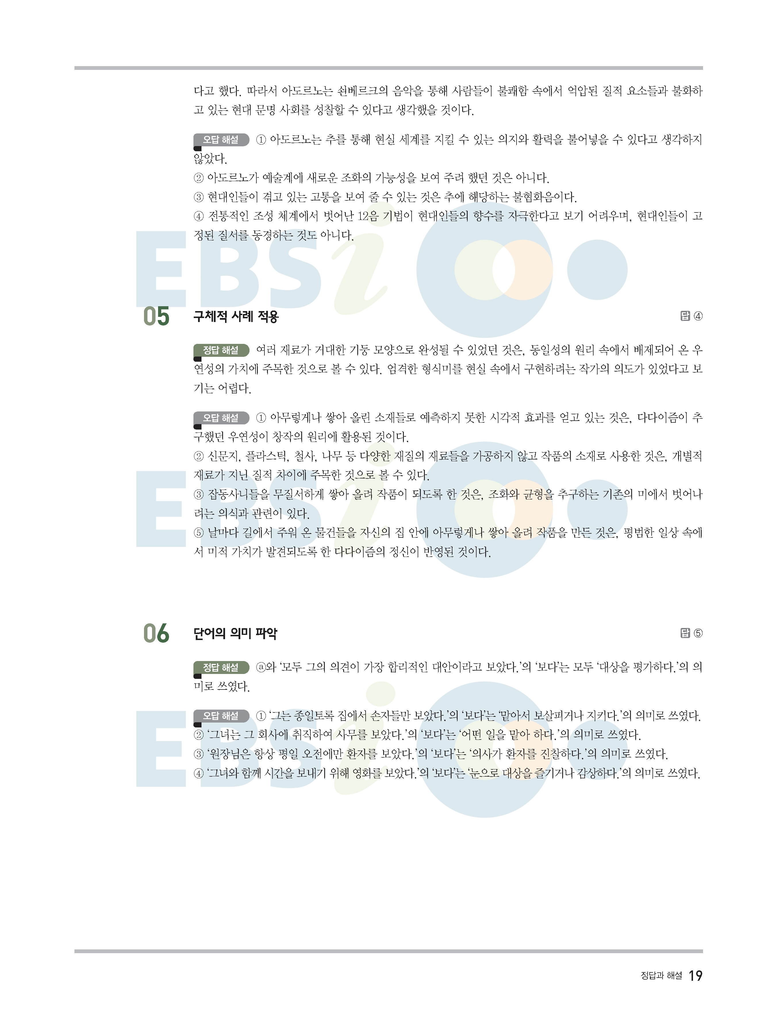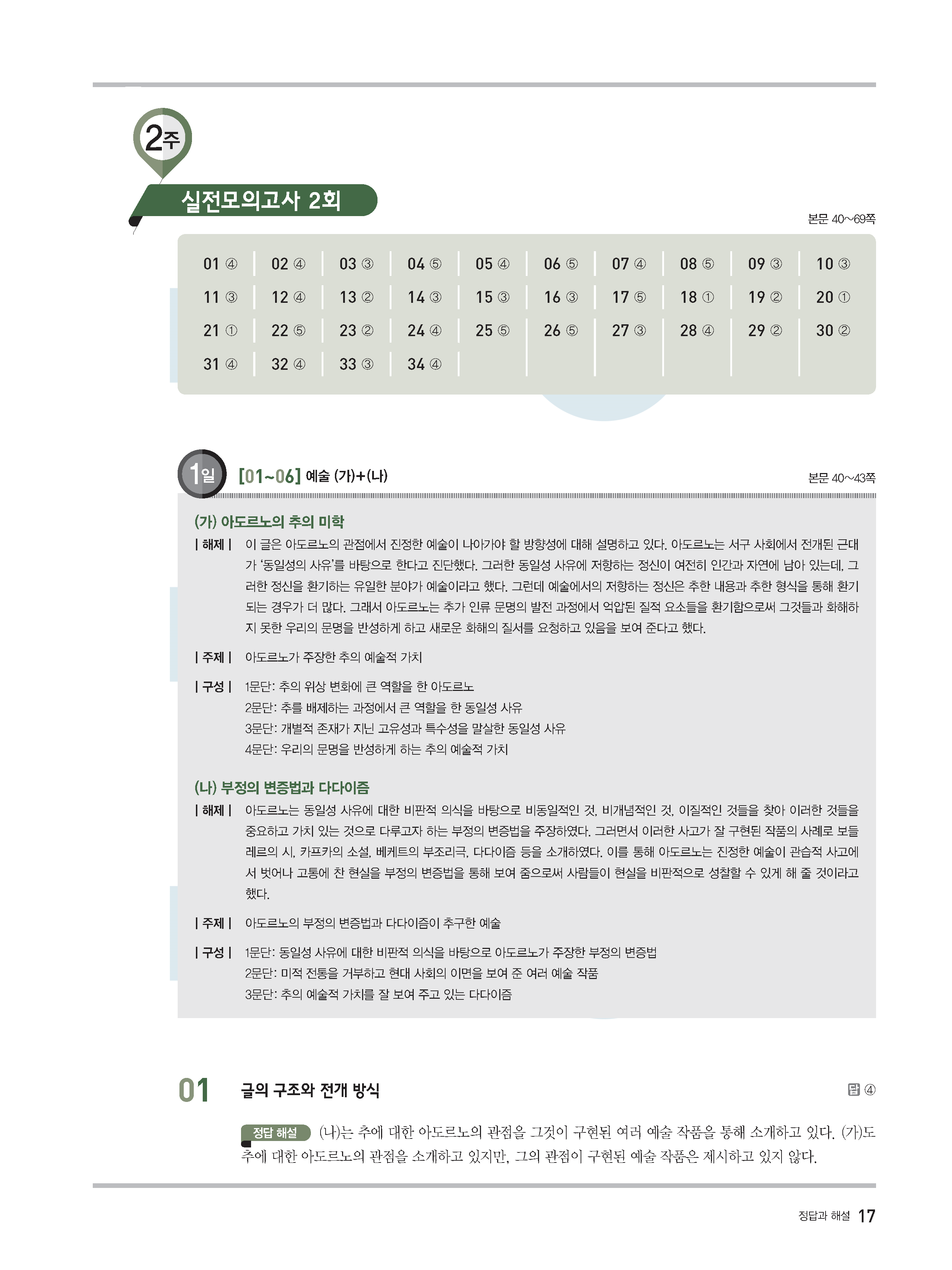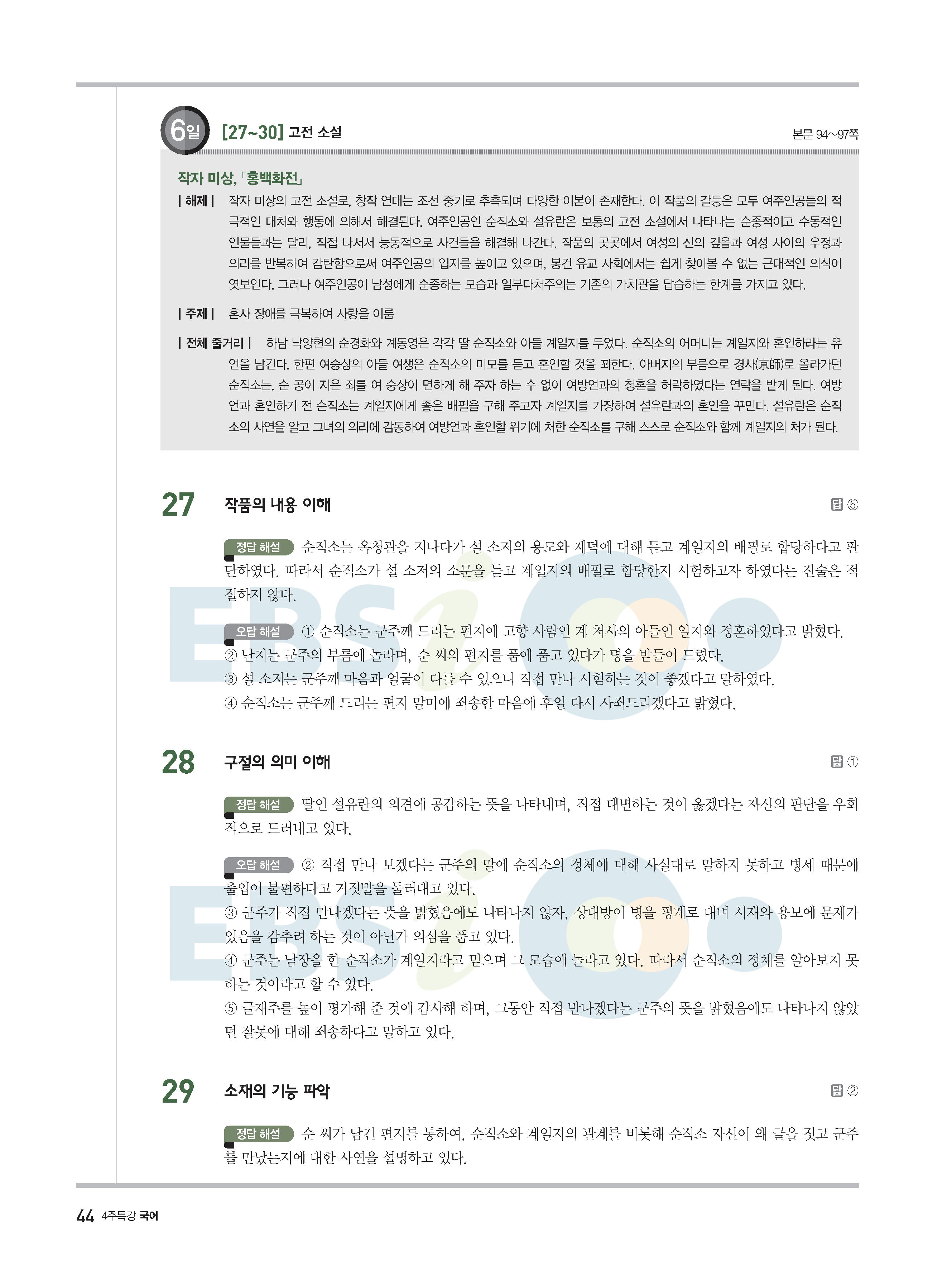 2022 EBS 수능연계완성 4주특강 국어 답지 해설 사진답지 빠른답지 모바일최적화