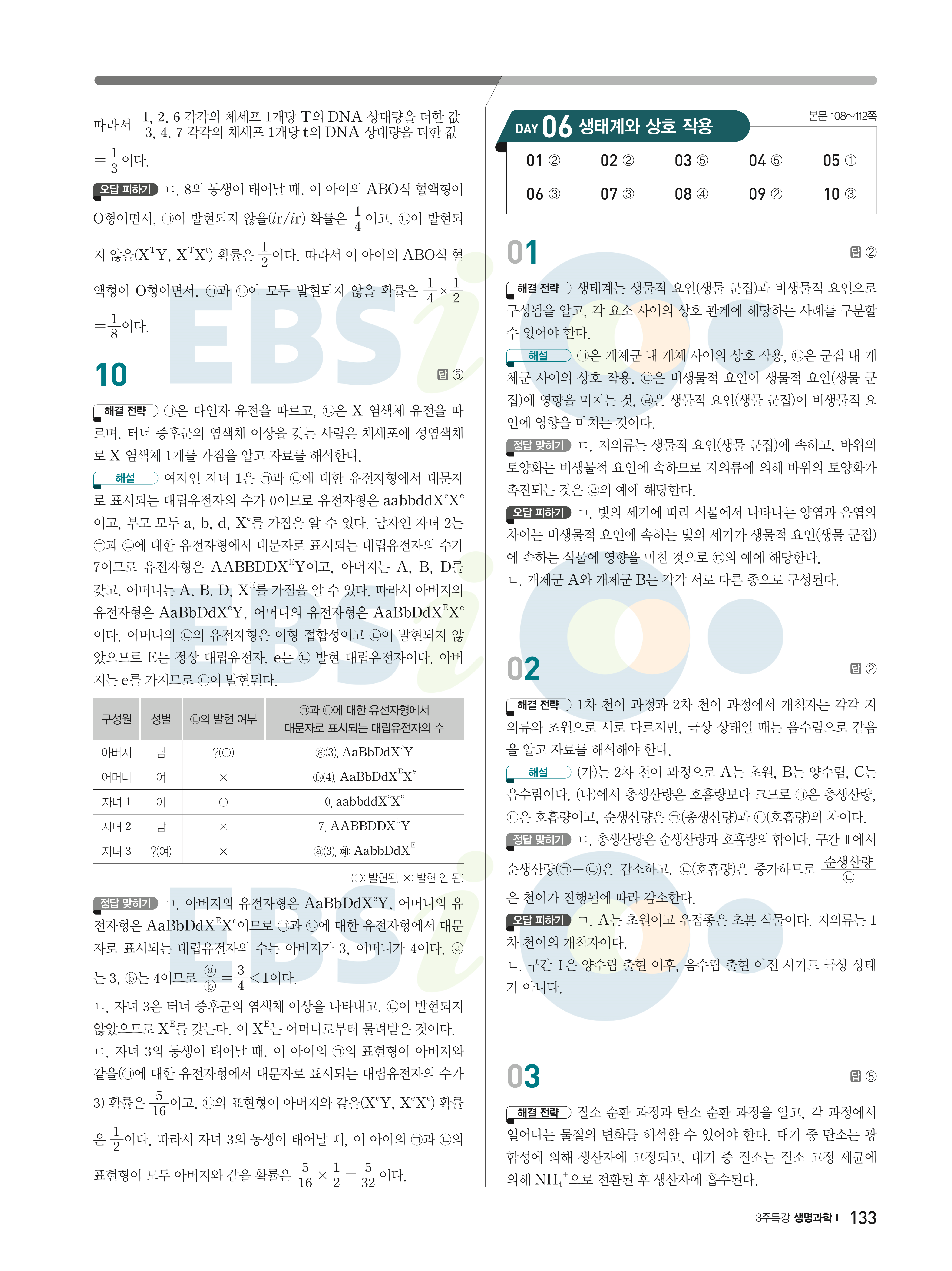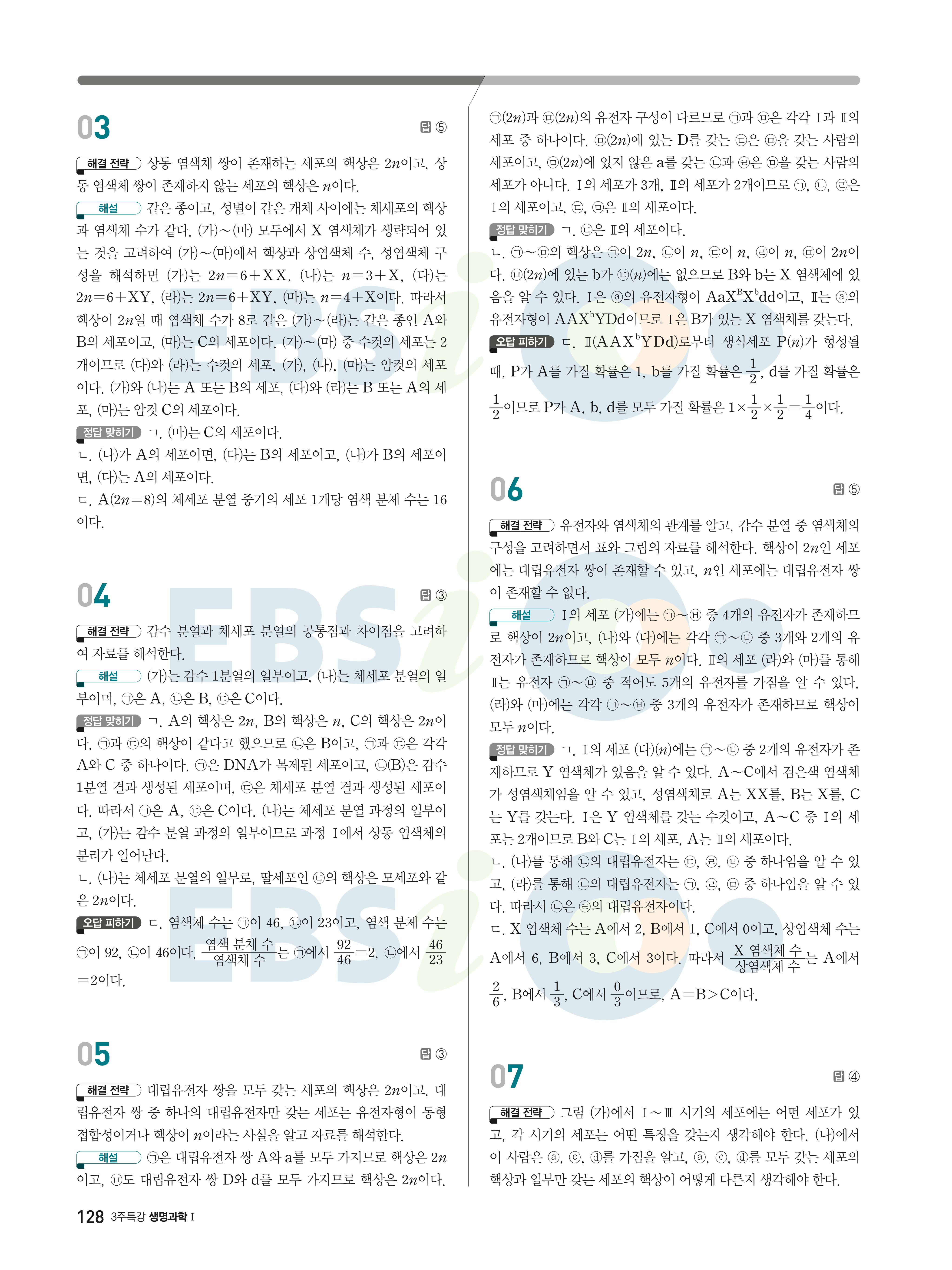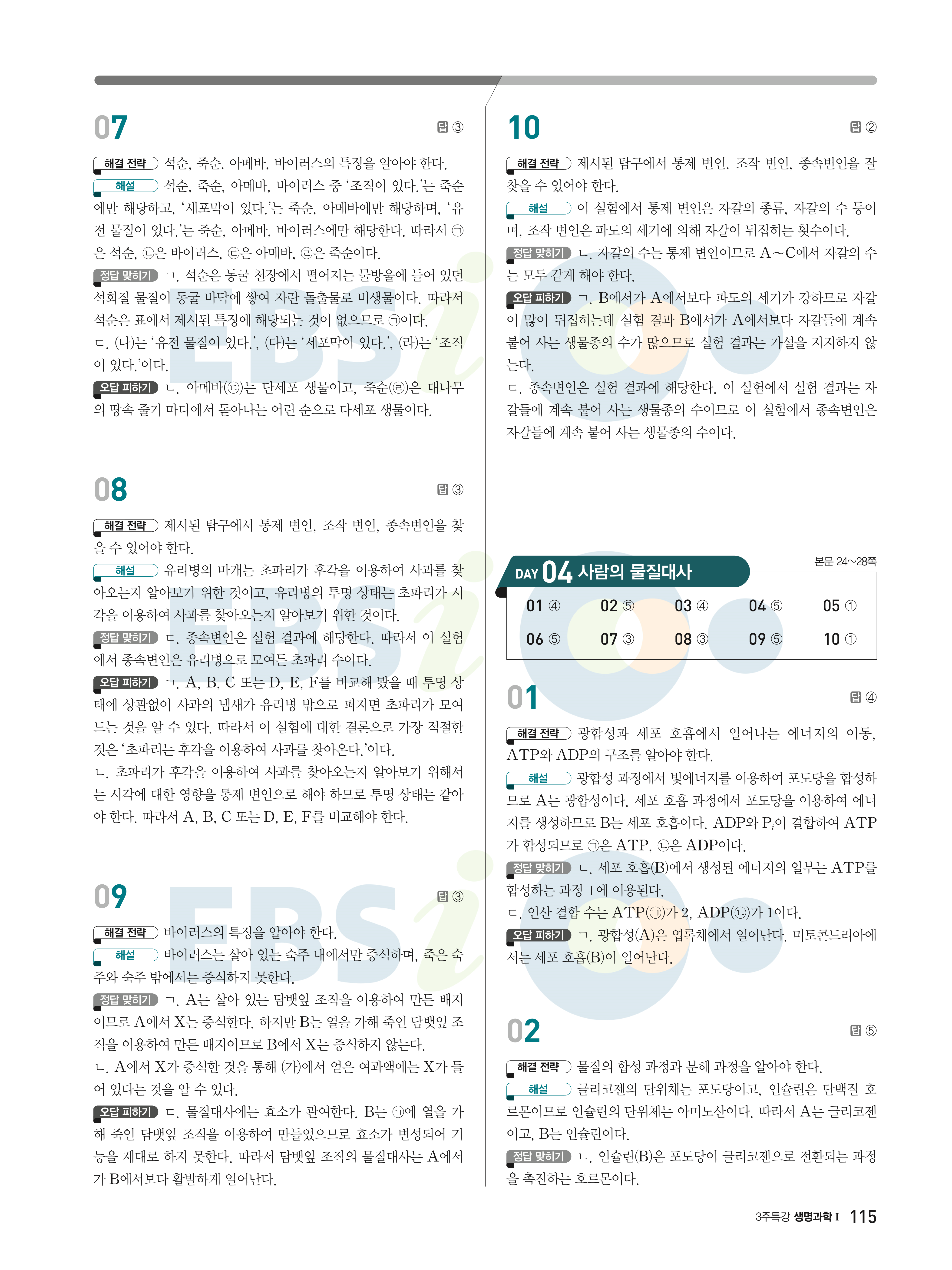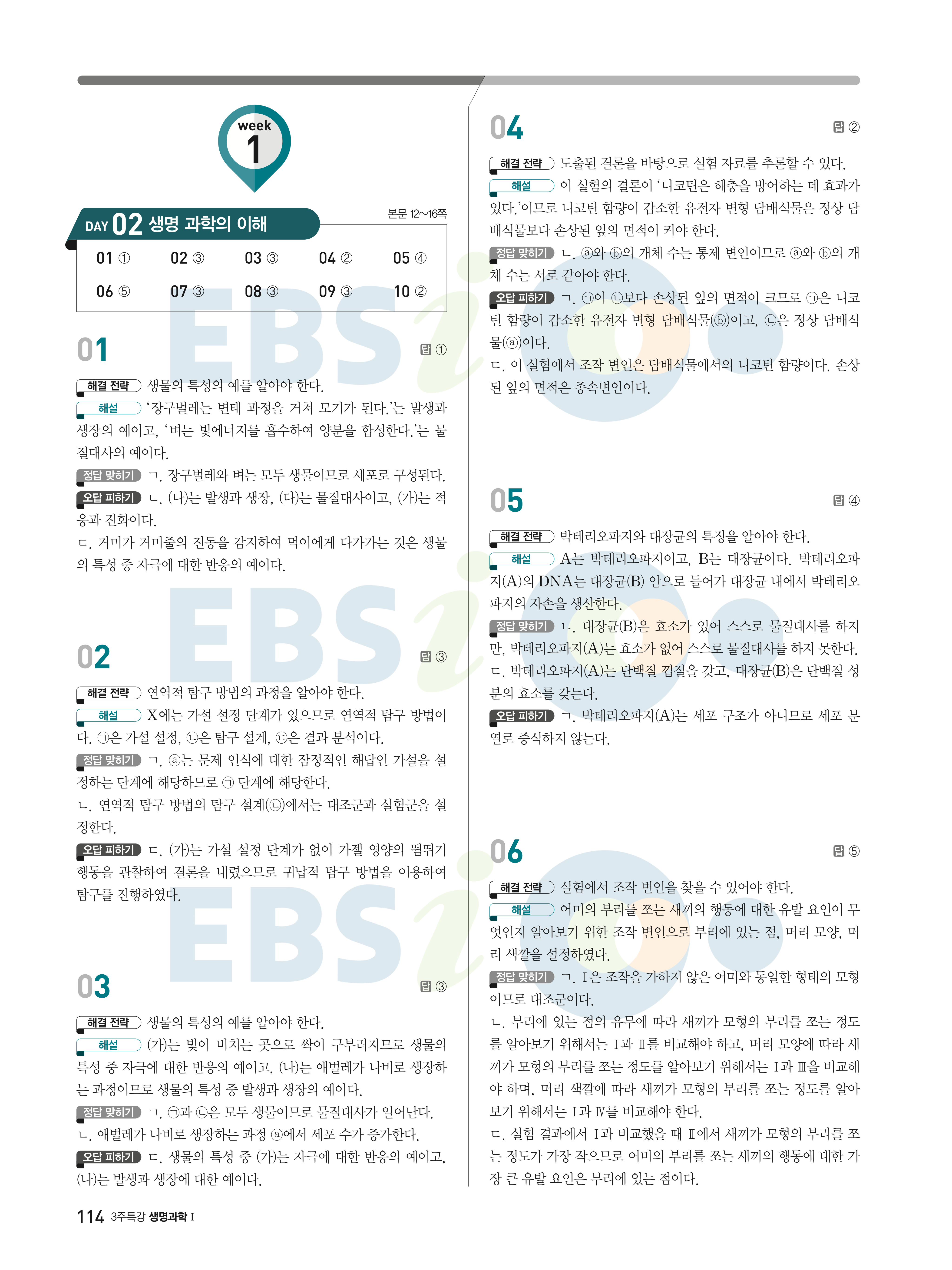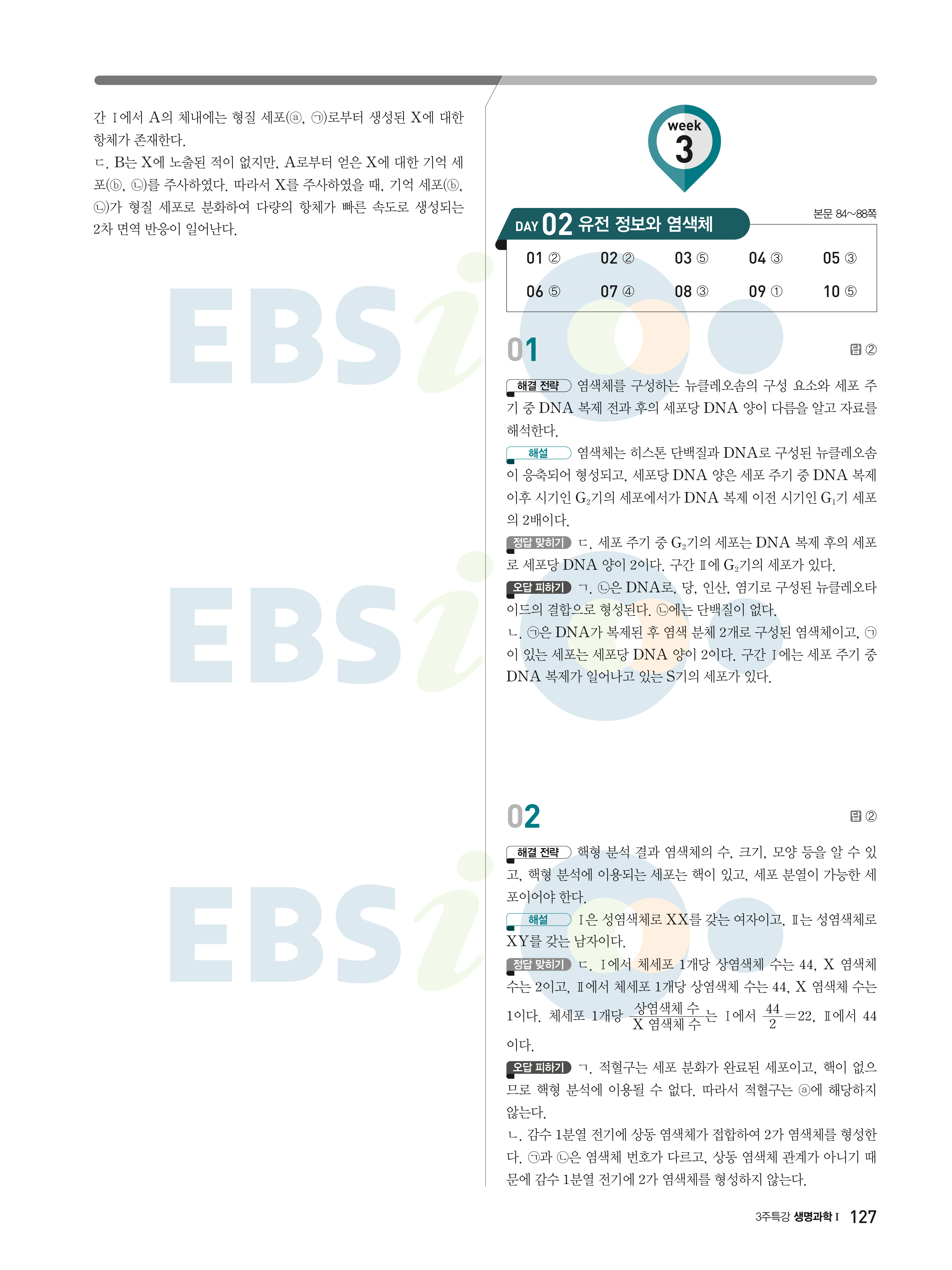 2022 EBS 수능연계완성 3주 특강 고난도·신유형 과학탐구영역 생명과학1 답지 해설 바로보는 사진답지 빠른답지 모바일최적화