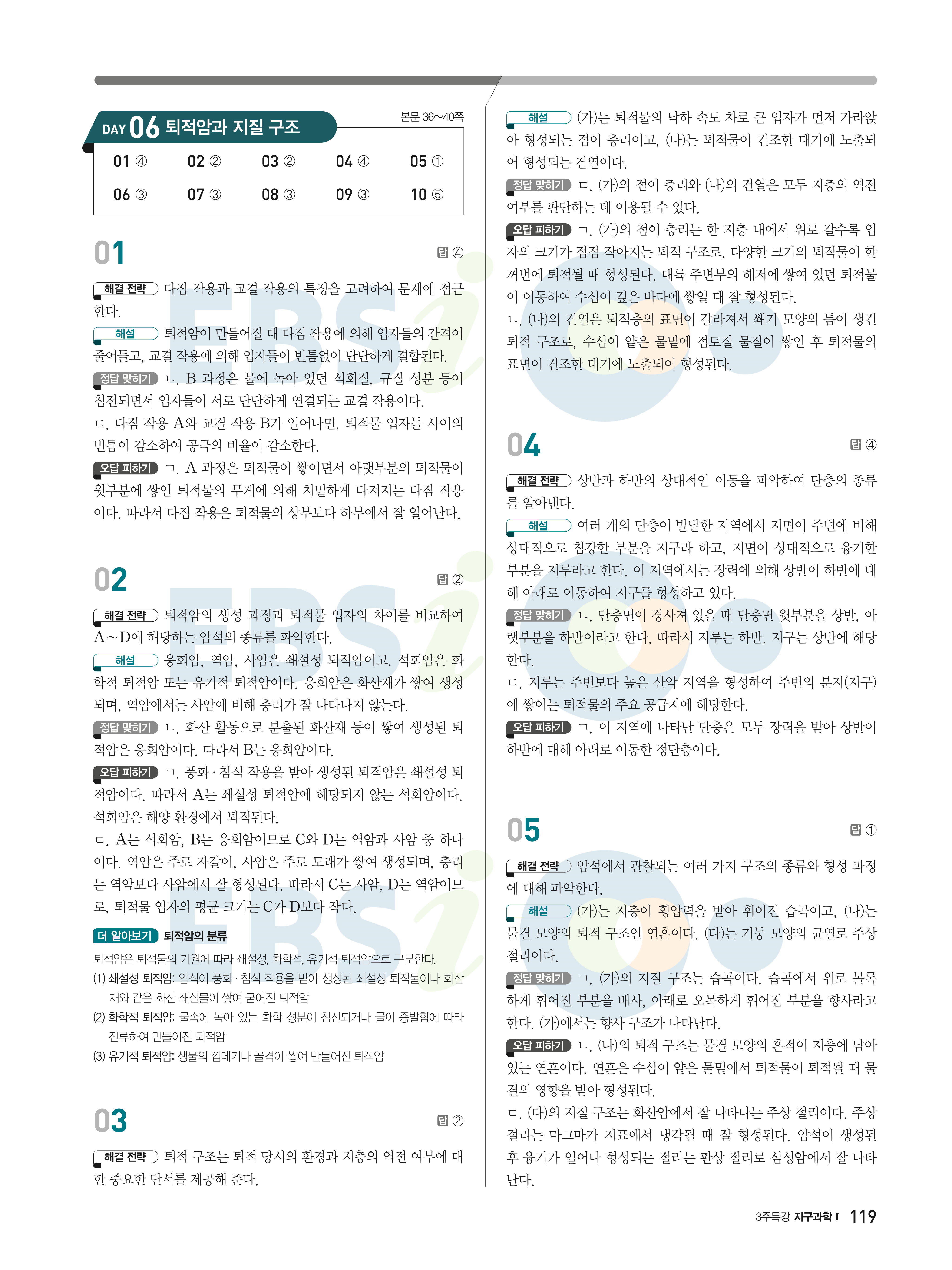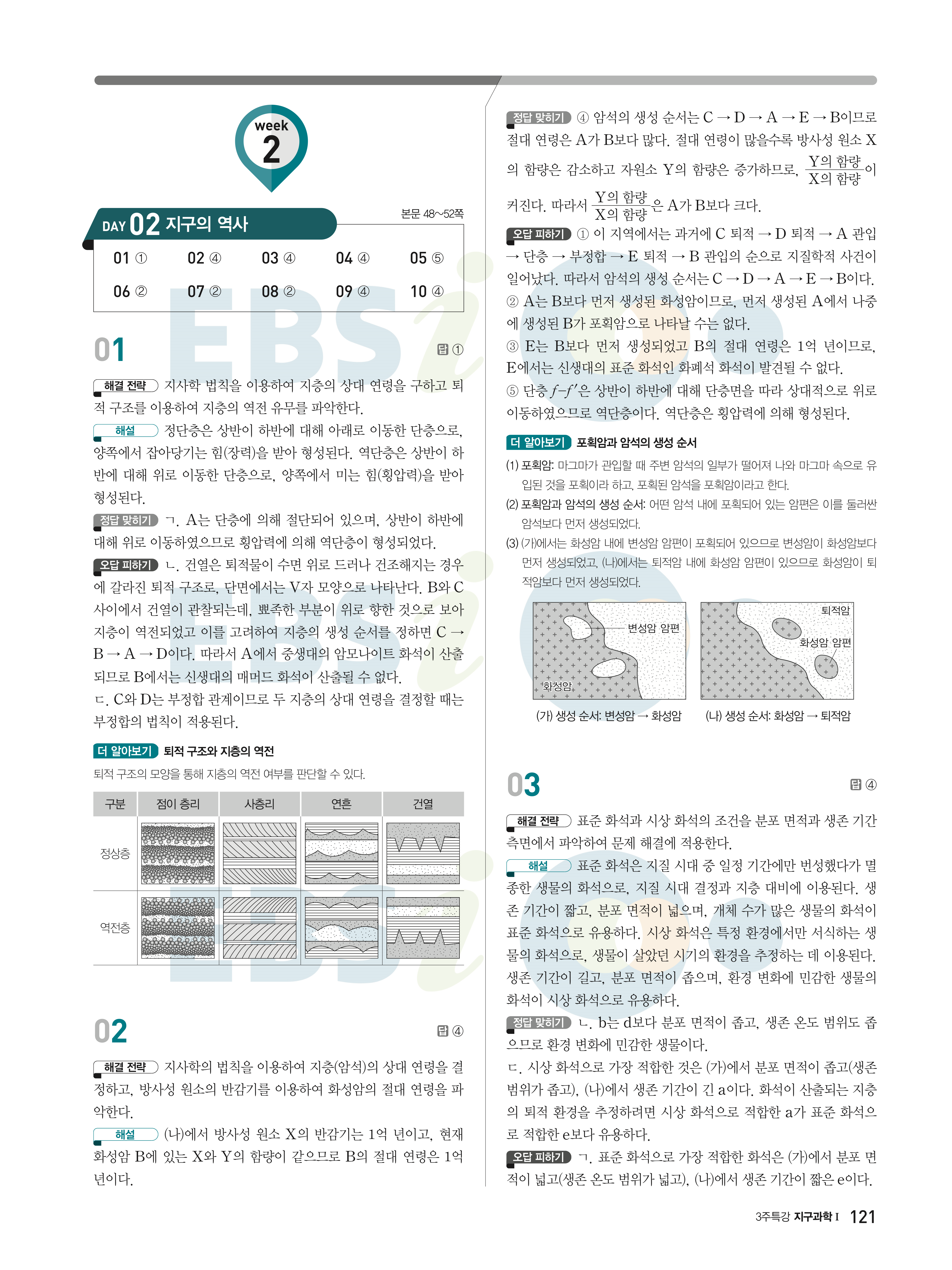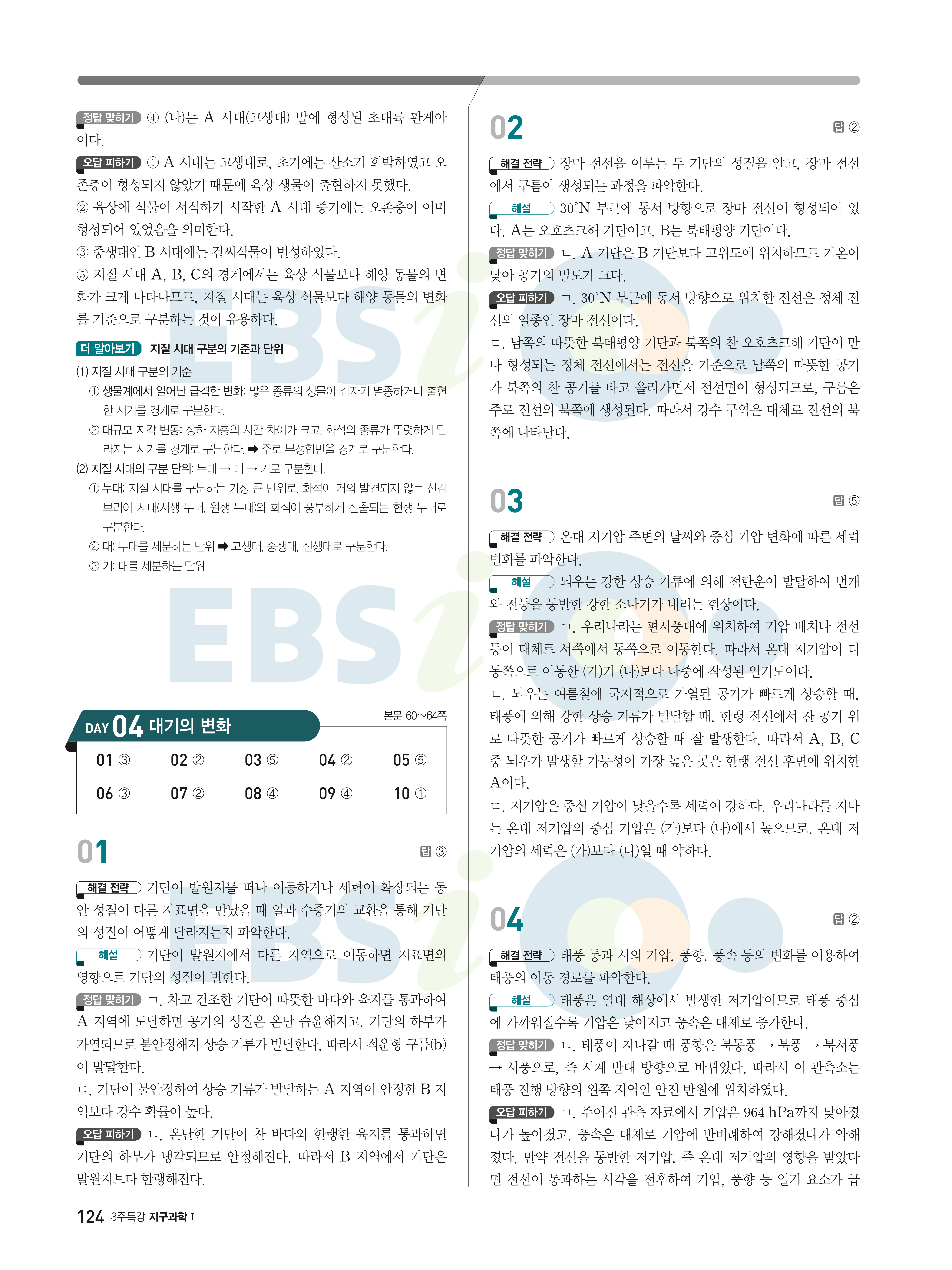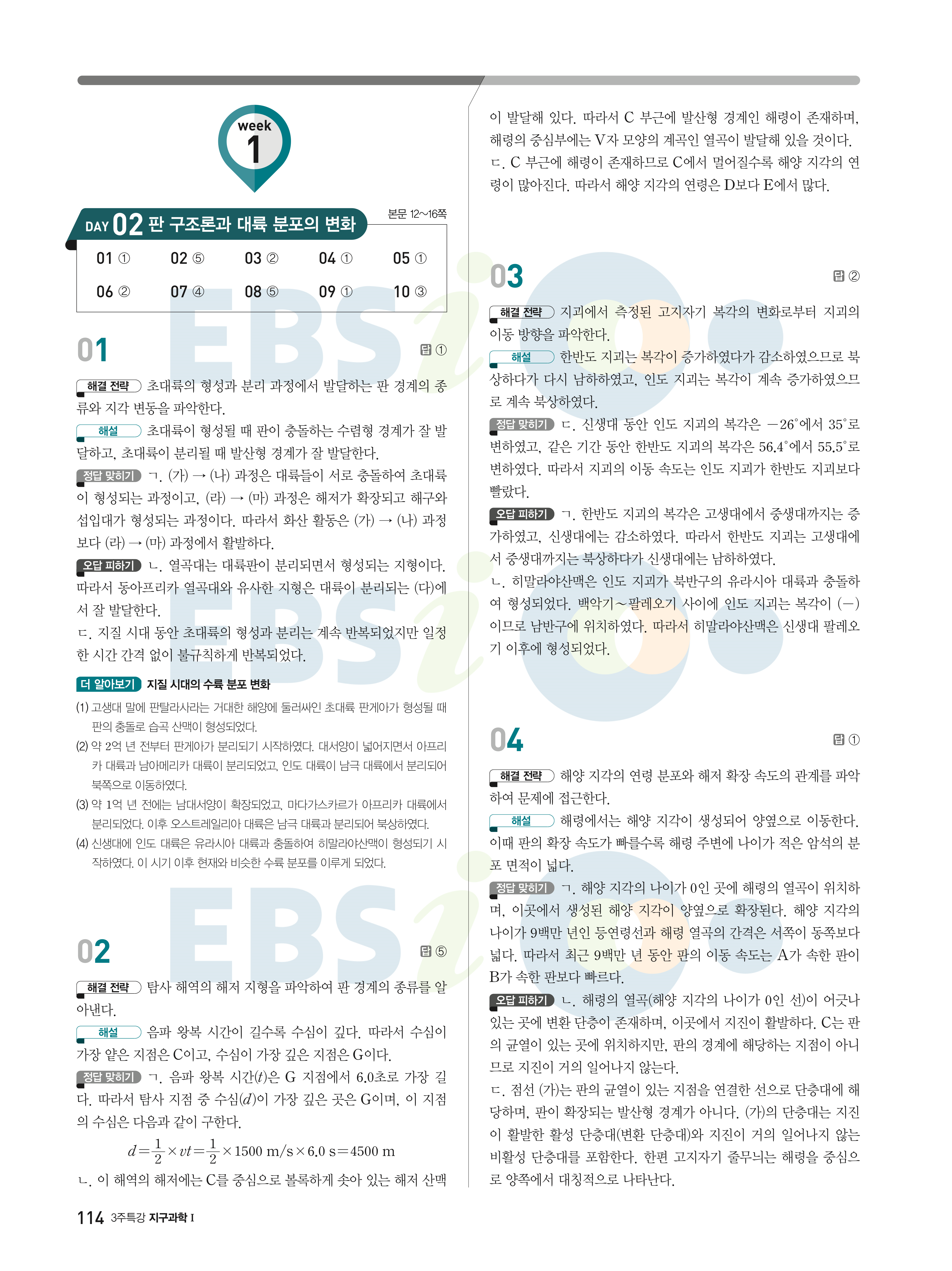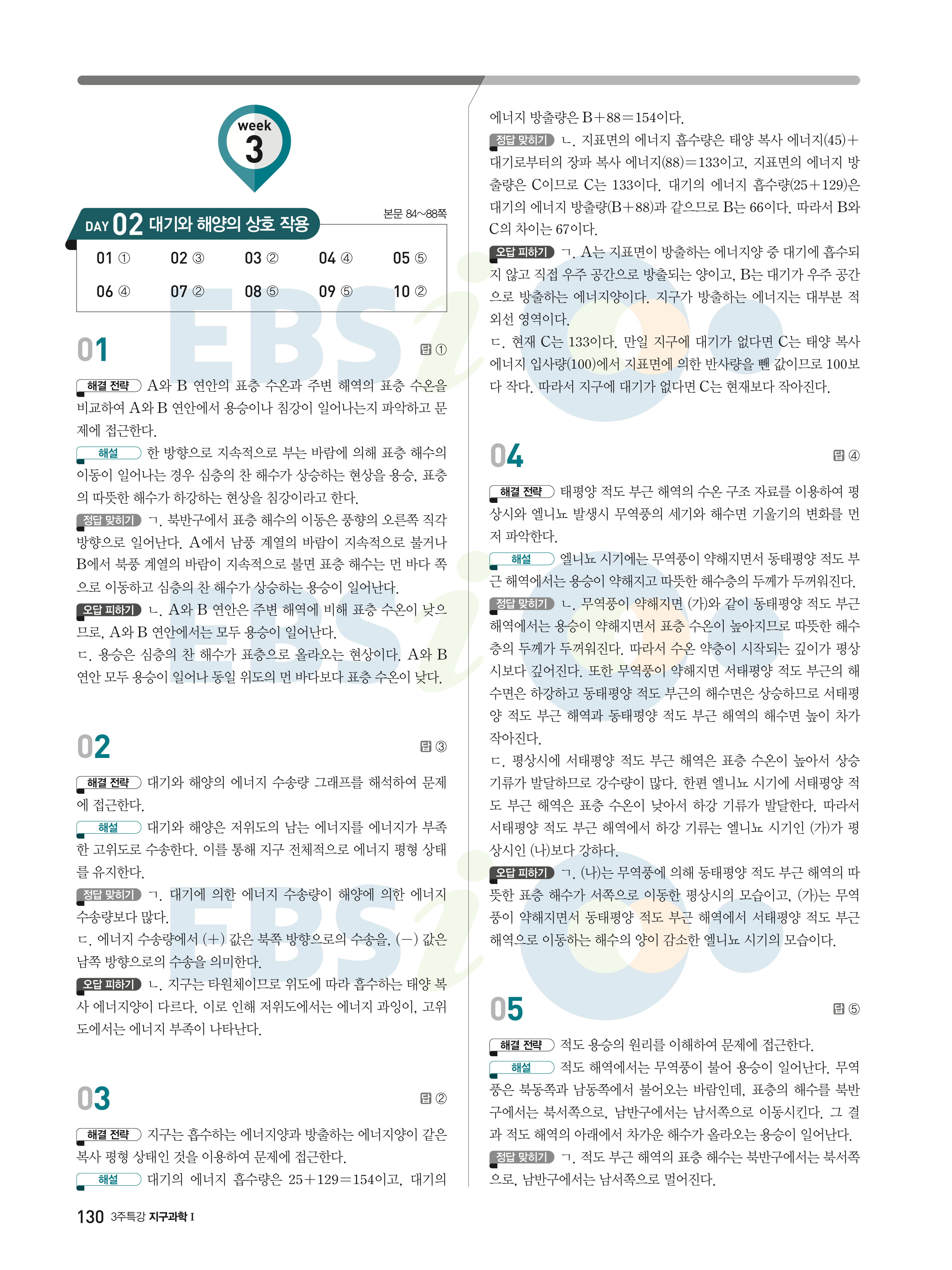 2022 EBS 수능연계완성 3주 특강 고난도·신유형 과학탐구영역 지구과학1 답지 해설 바로보는 사진답지 빠른답지 모바일최적화