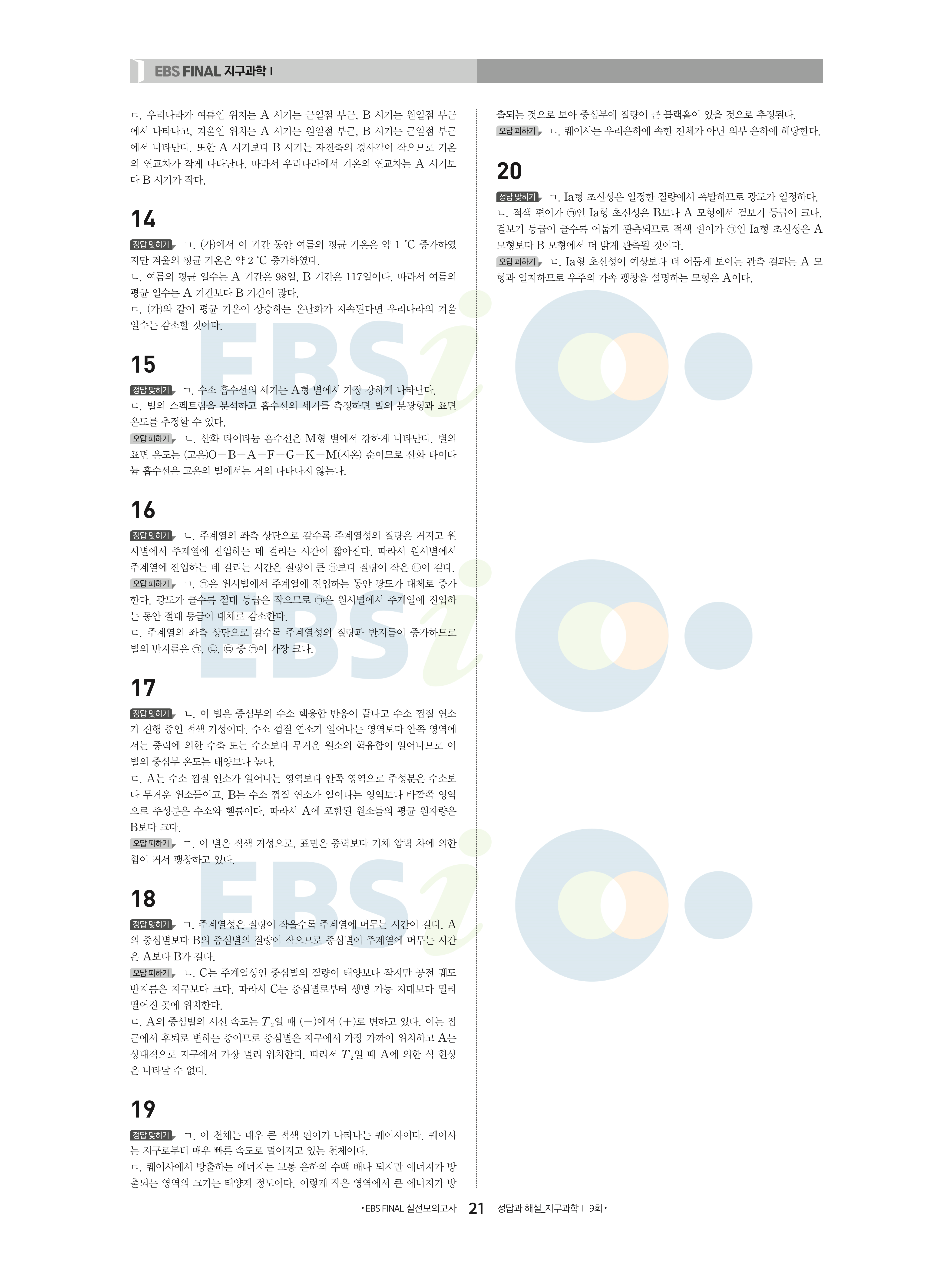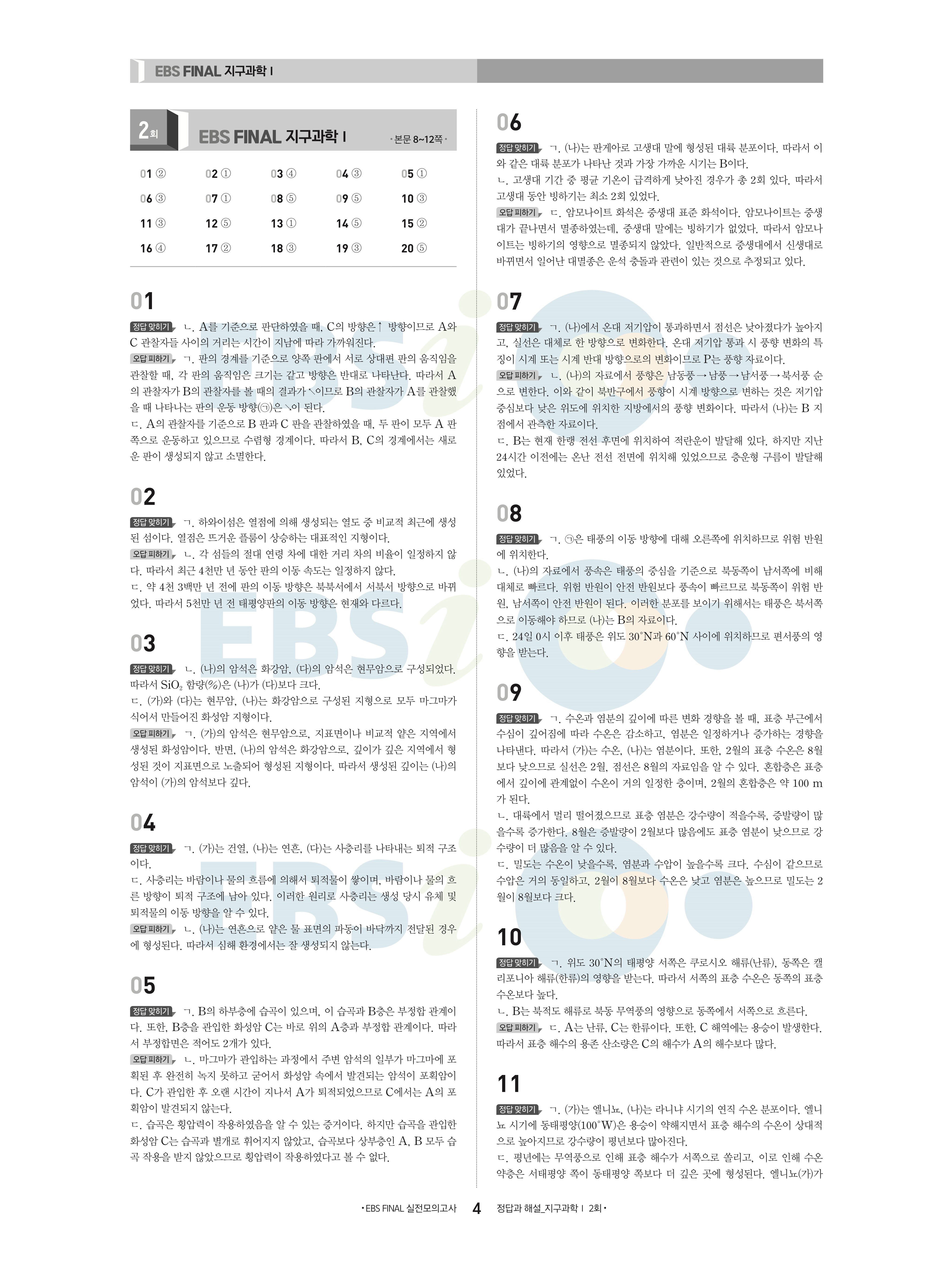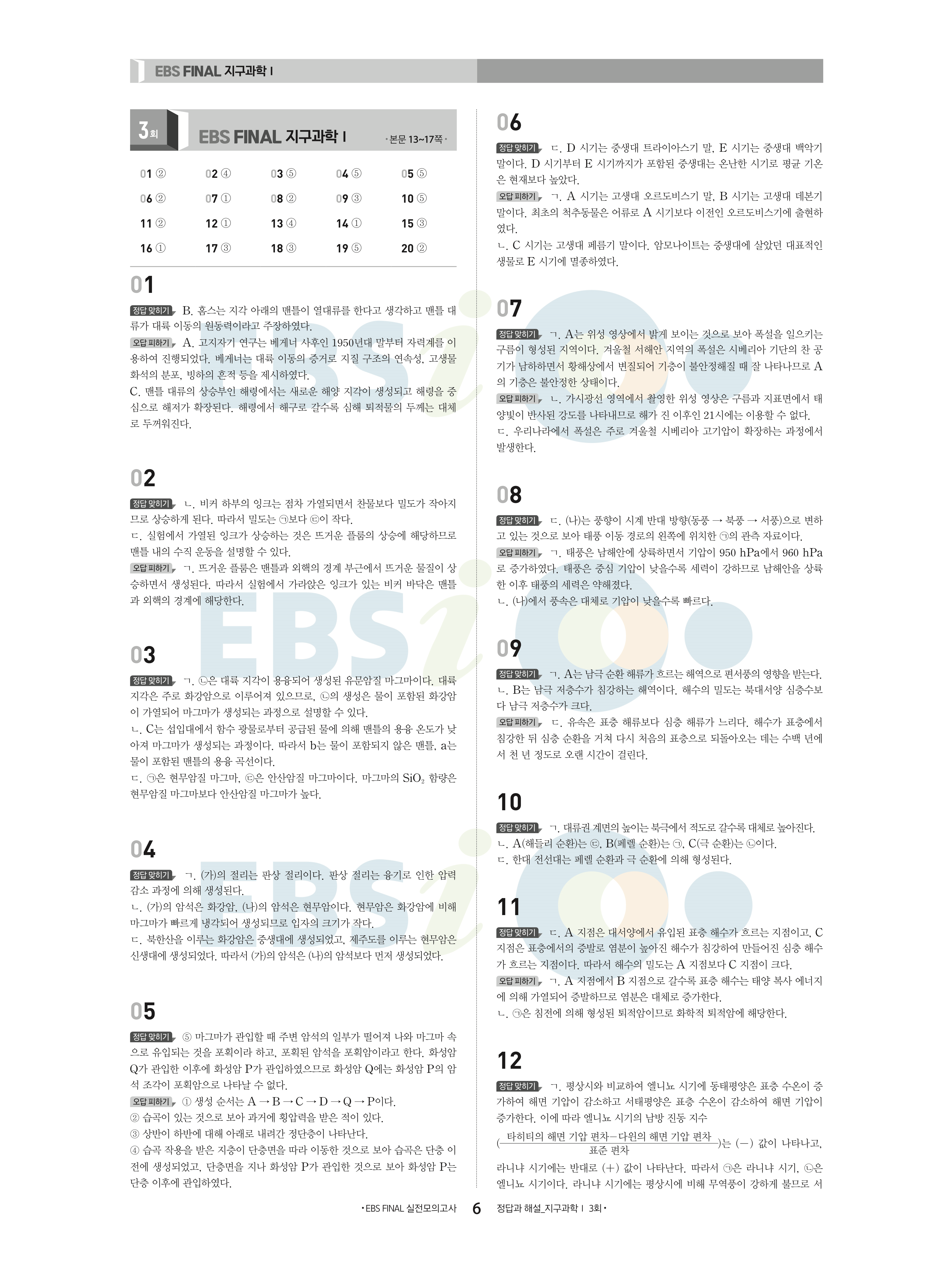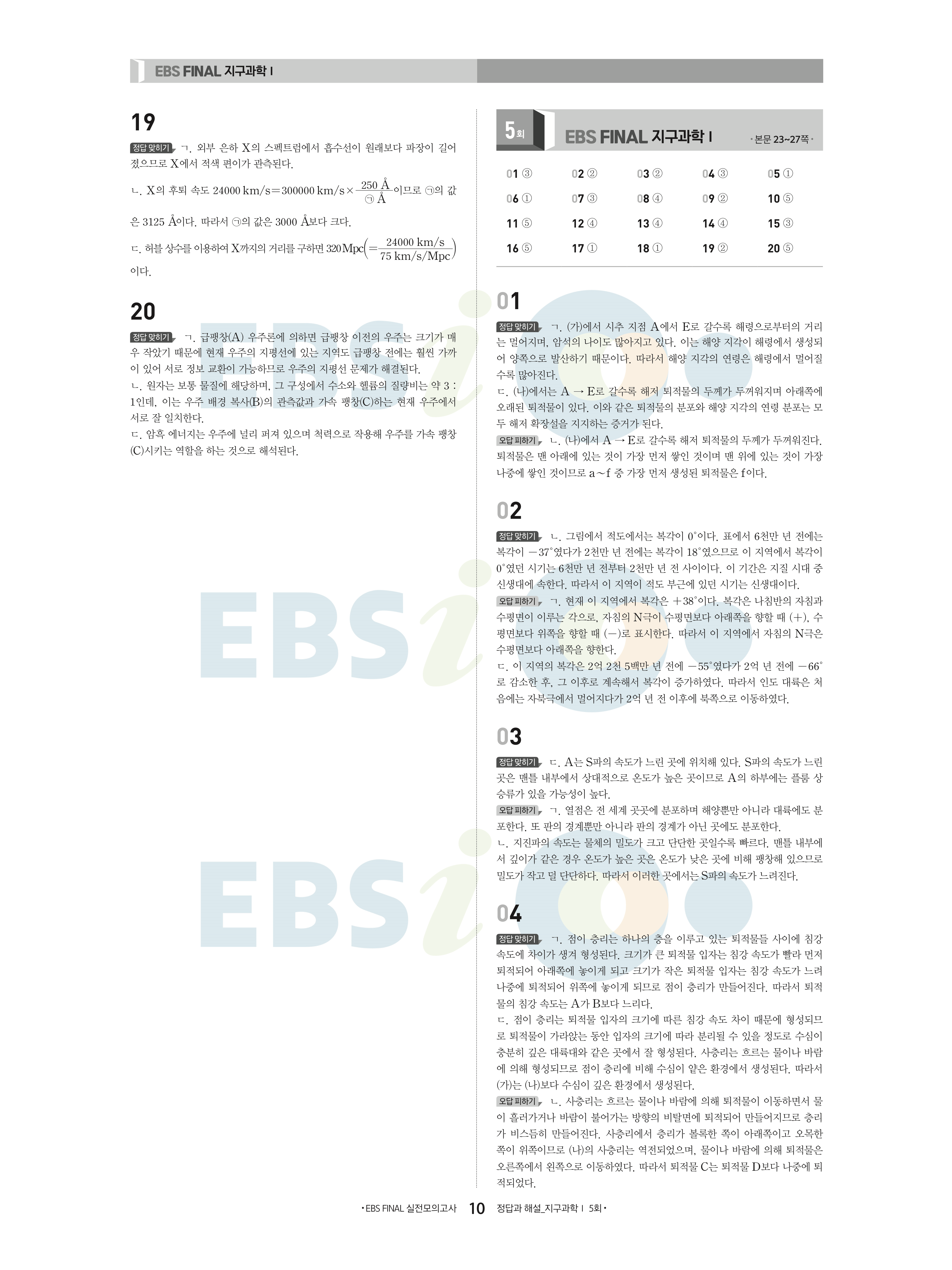 2022 EBS 파이널 실전모의고사 지구과학1 답지 해설 사진답지 모바일최적화