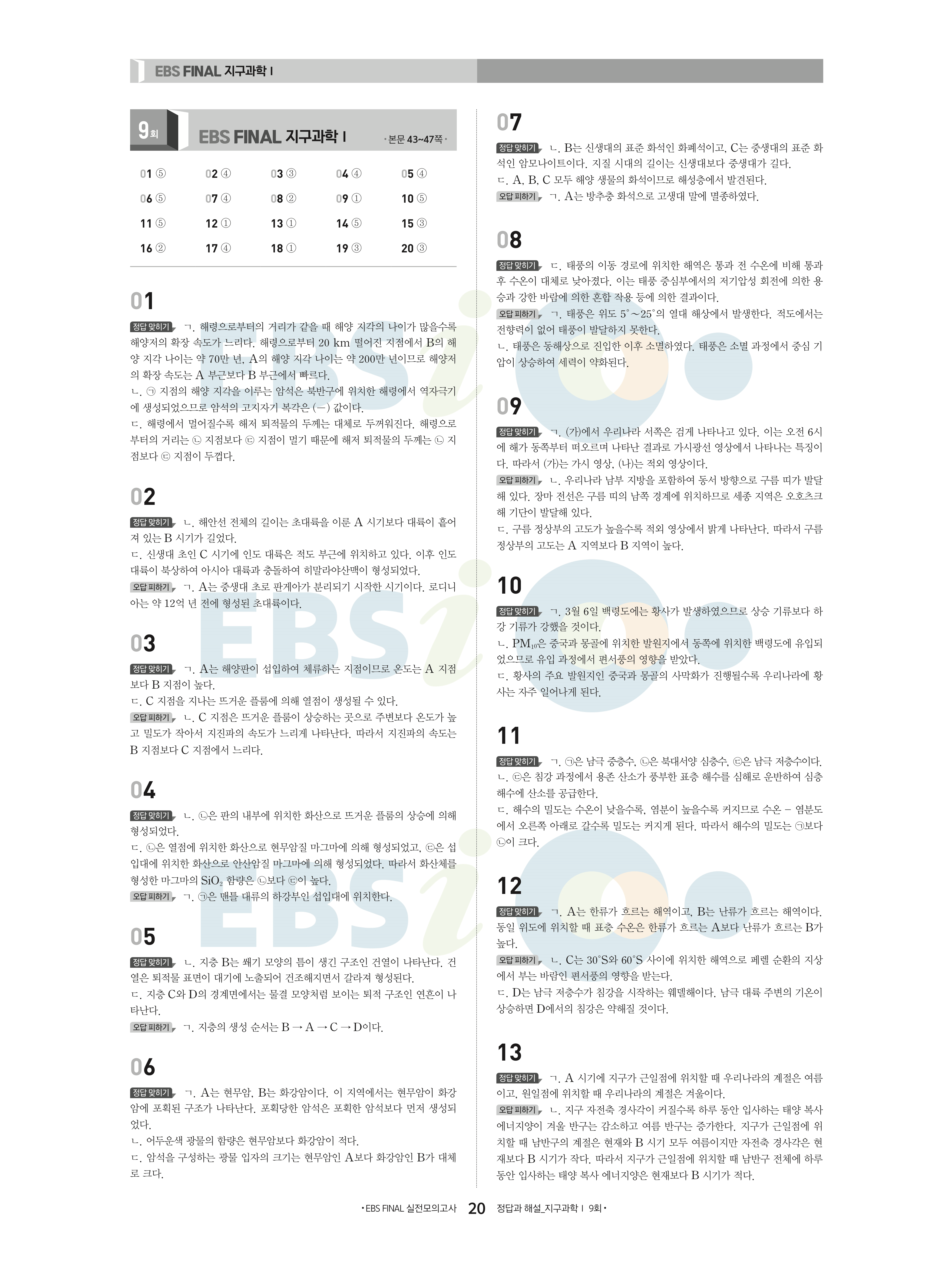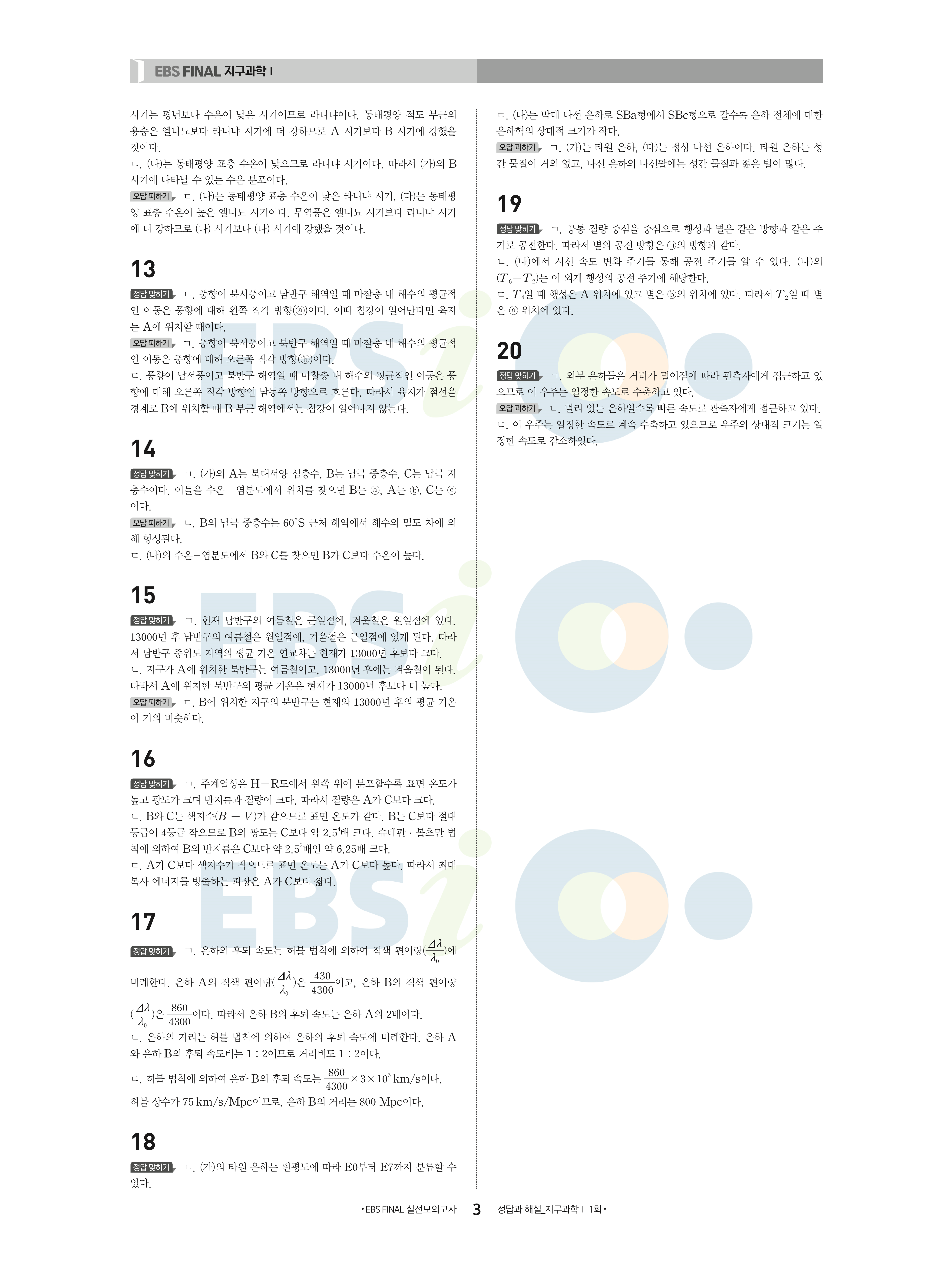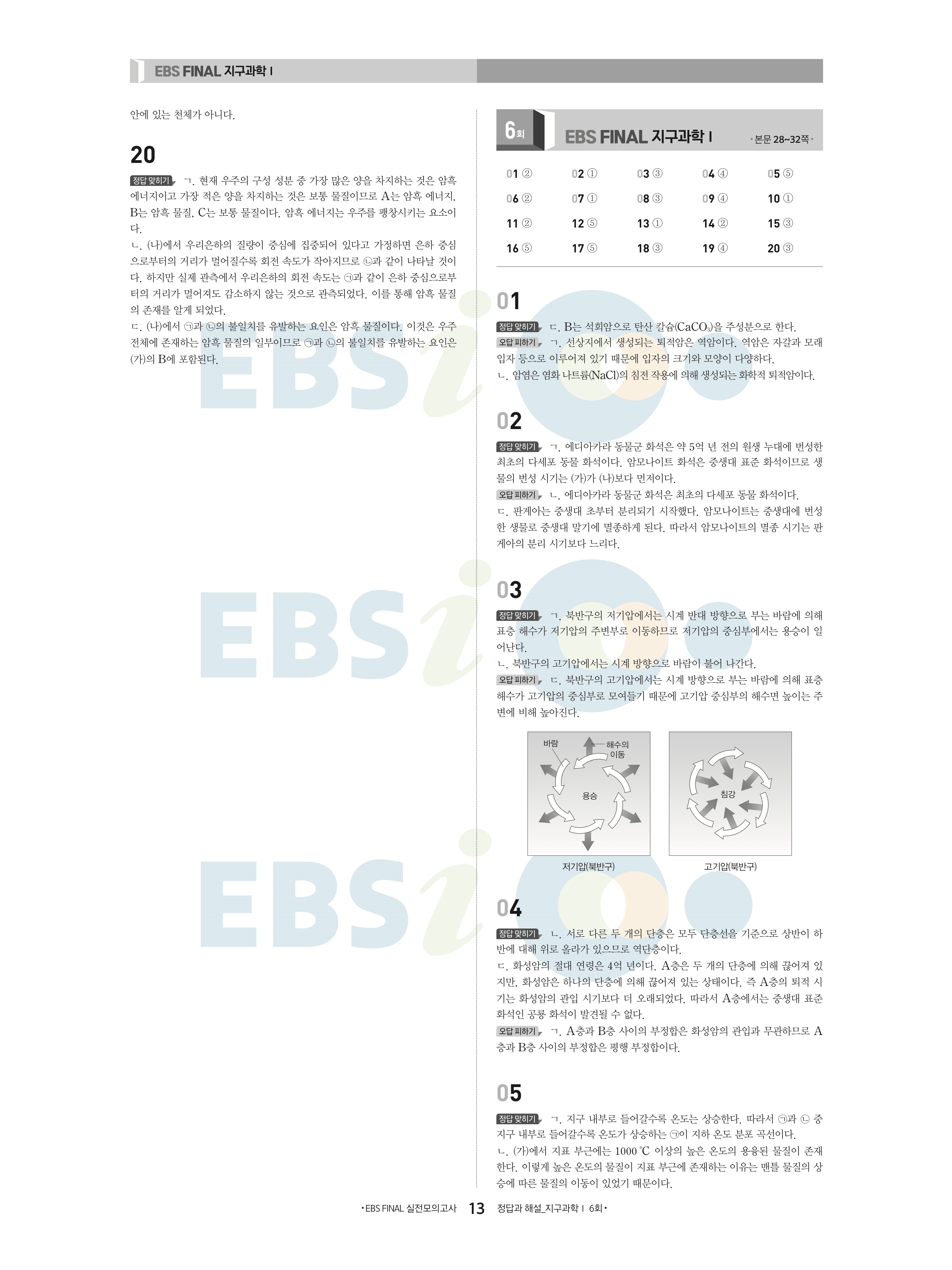 2022 EBS 파이널 실전모의고사 지구과학1 답지 해설 사진답지 모바일최적화