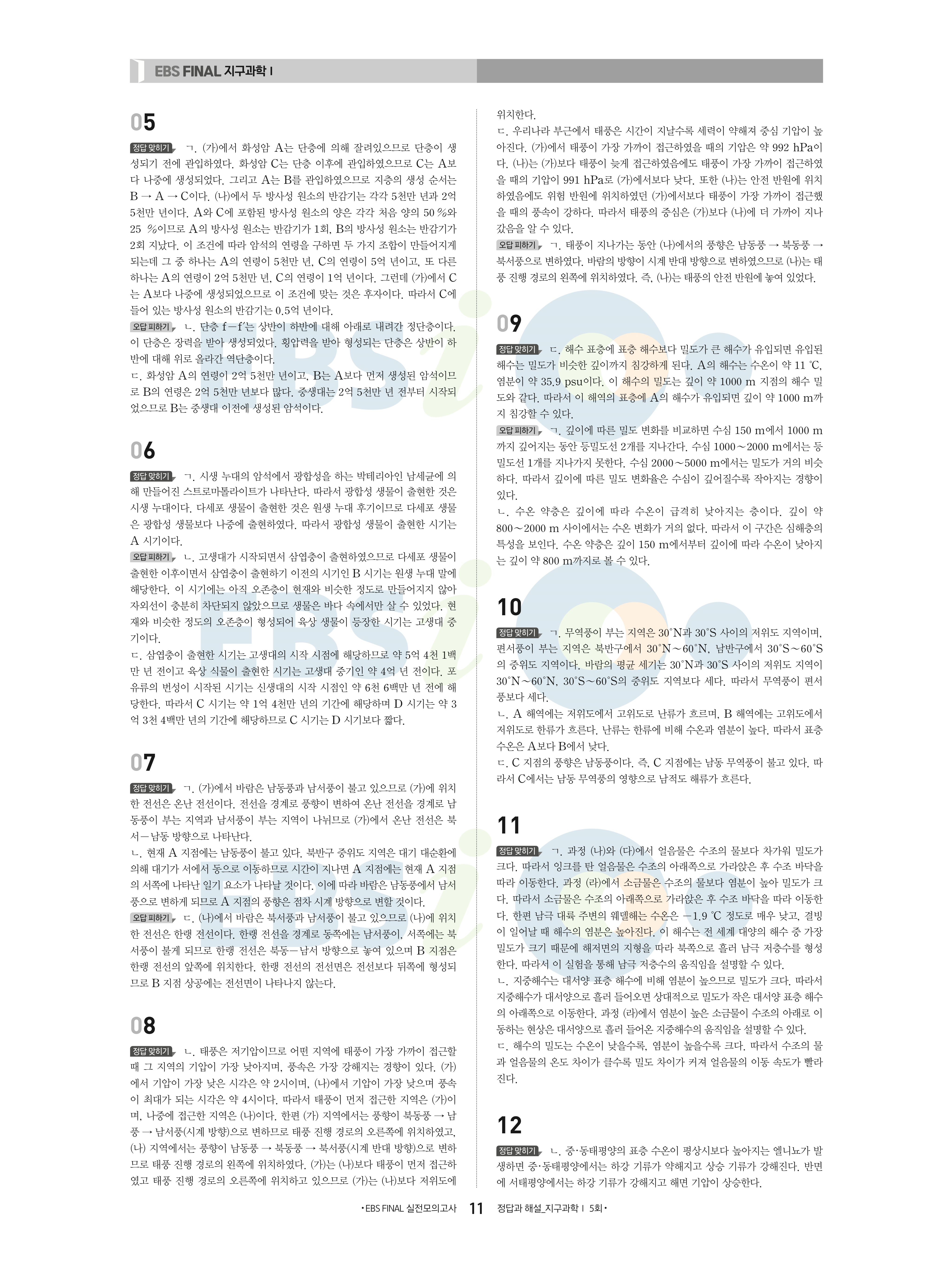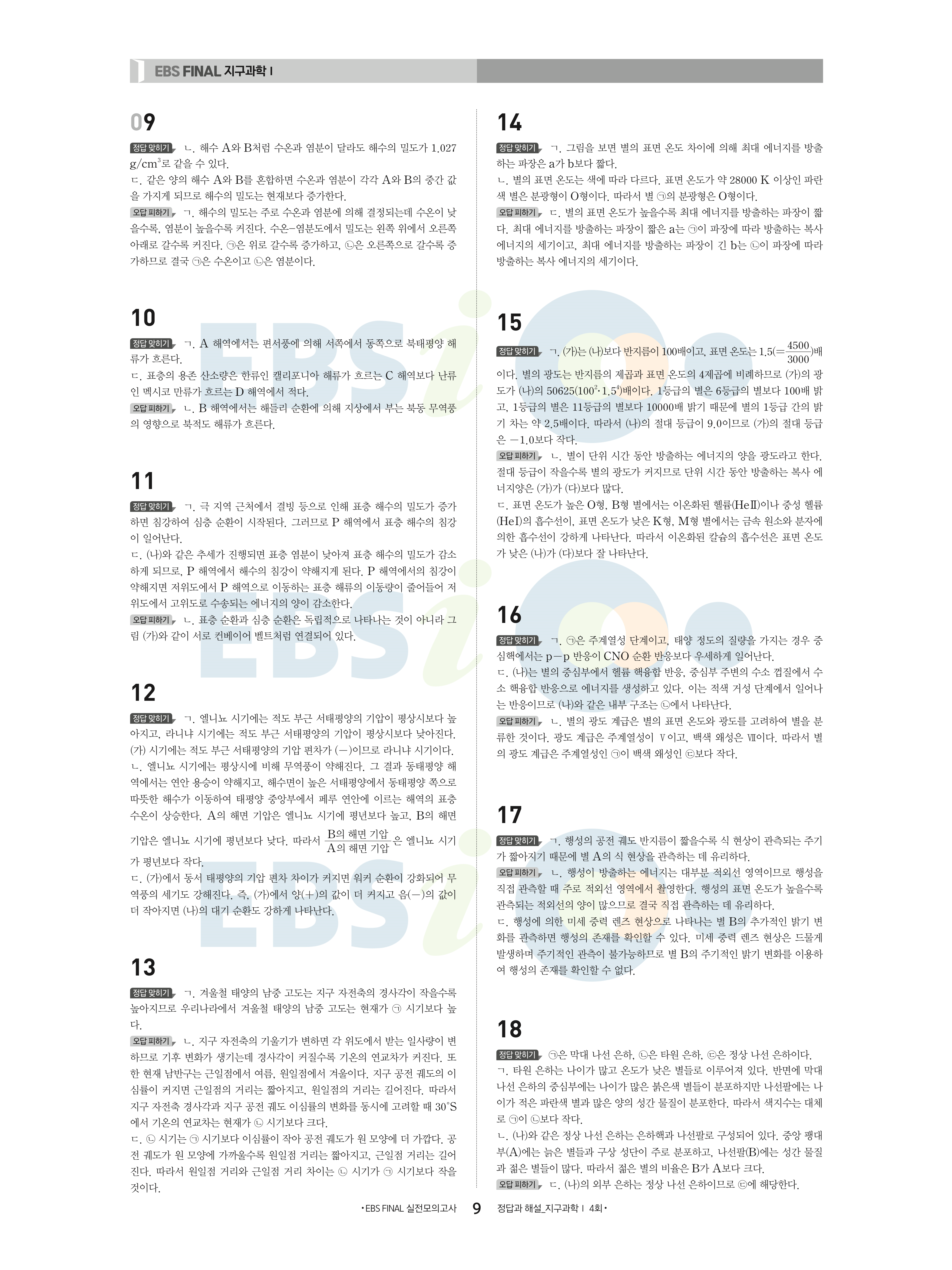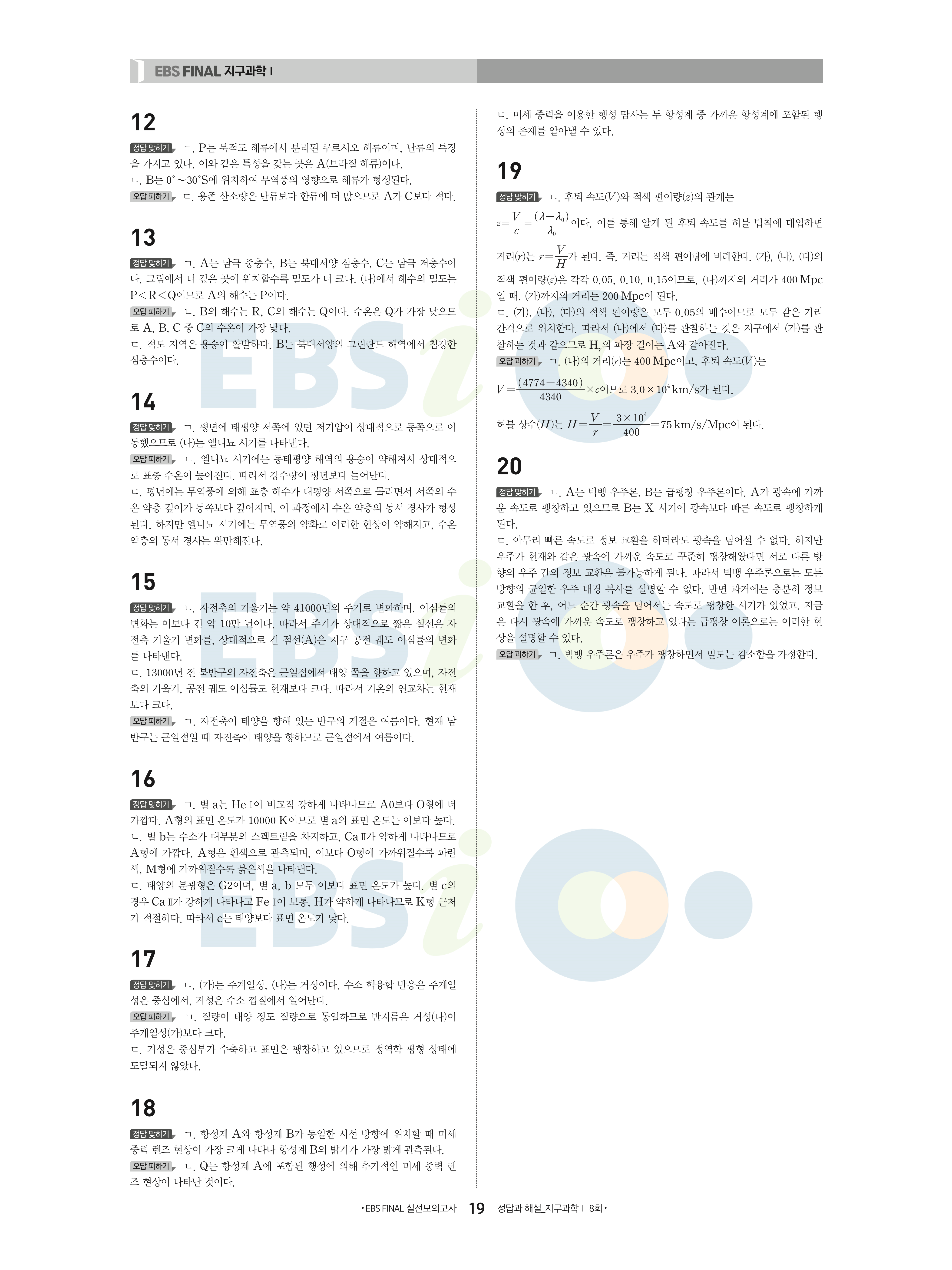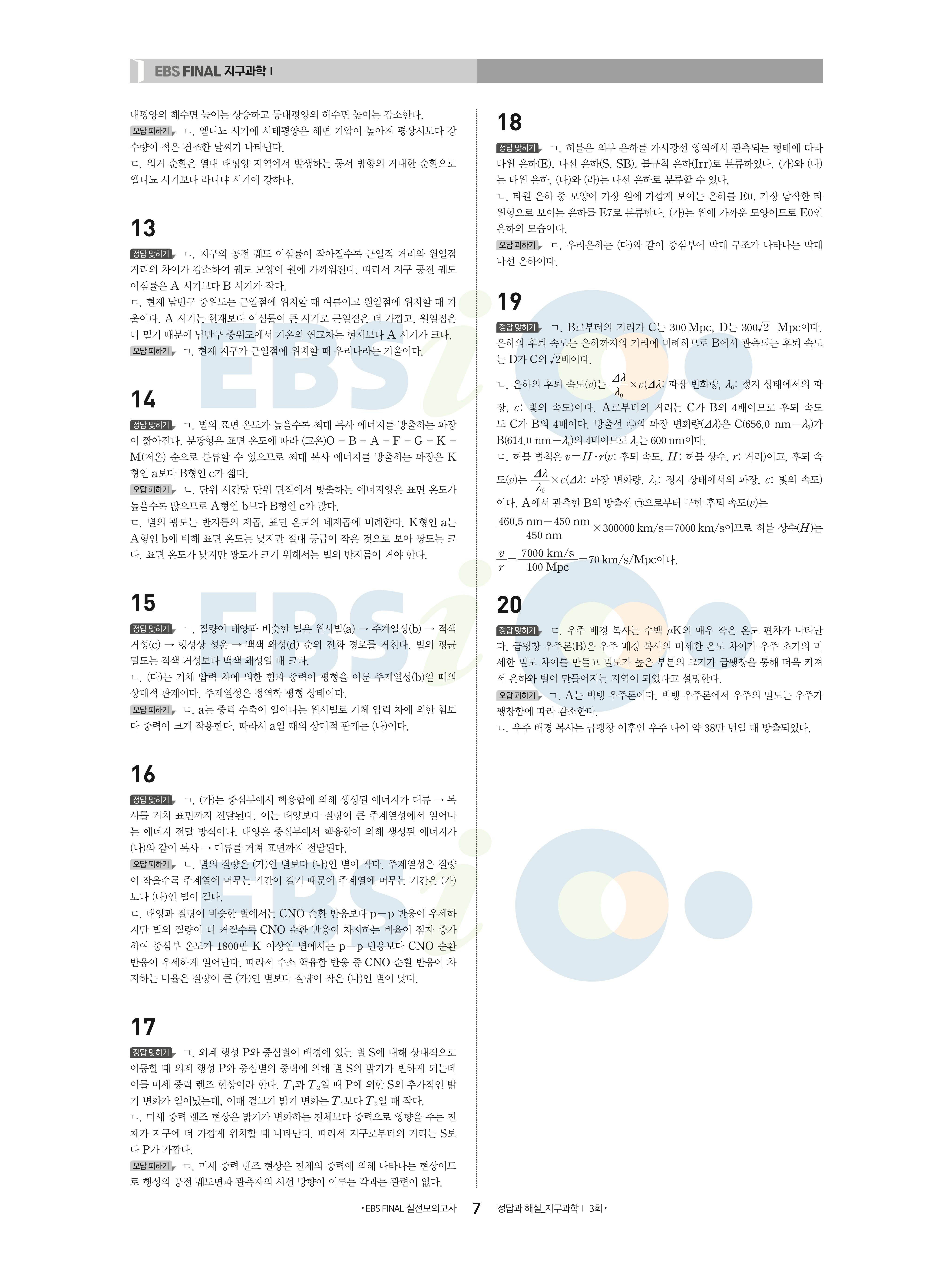 2022 EBS 파이널 실전모의고사 지구과학1 답지 해설 사진답지 모바일최적화