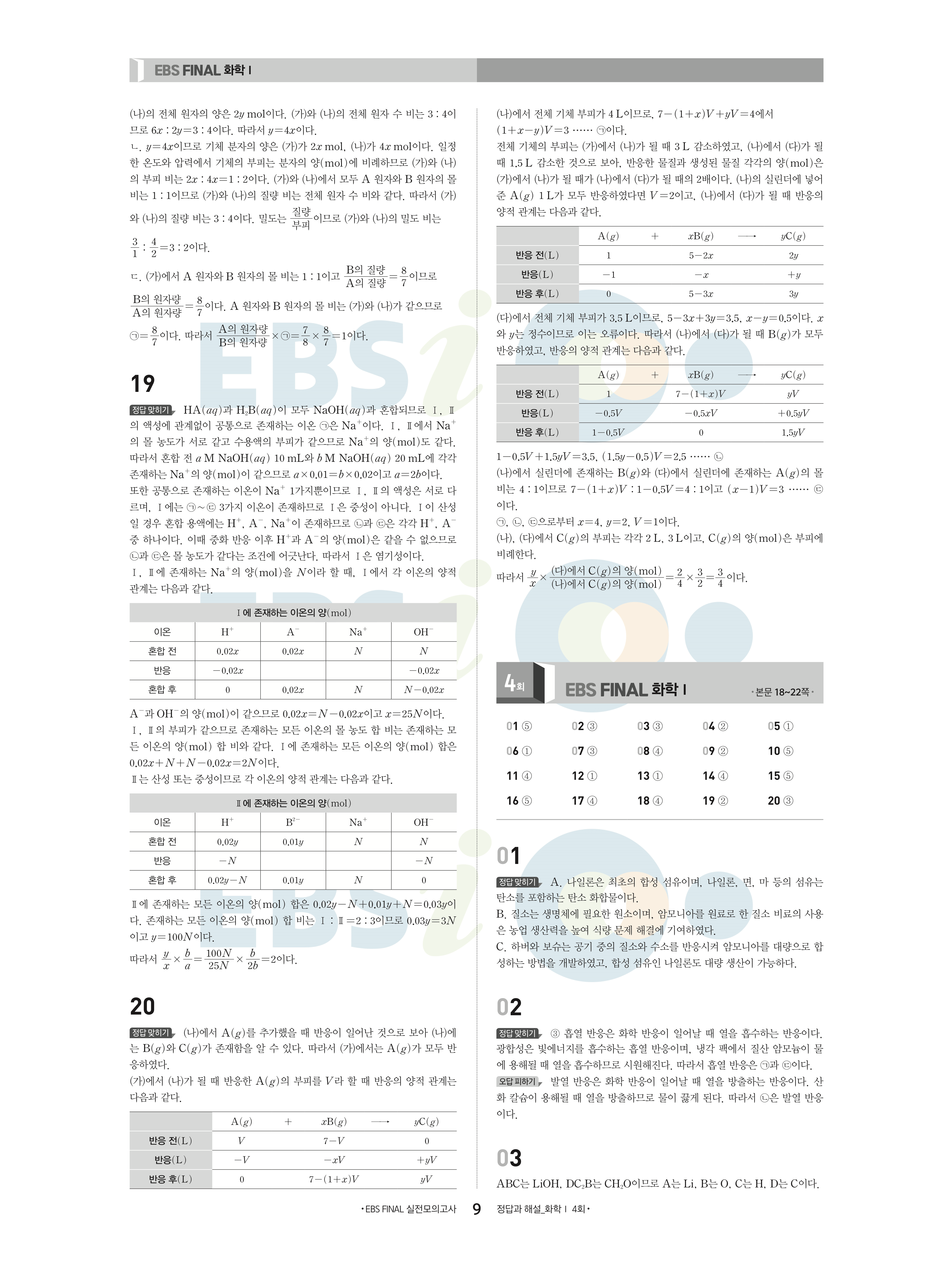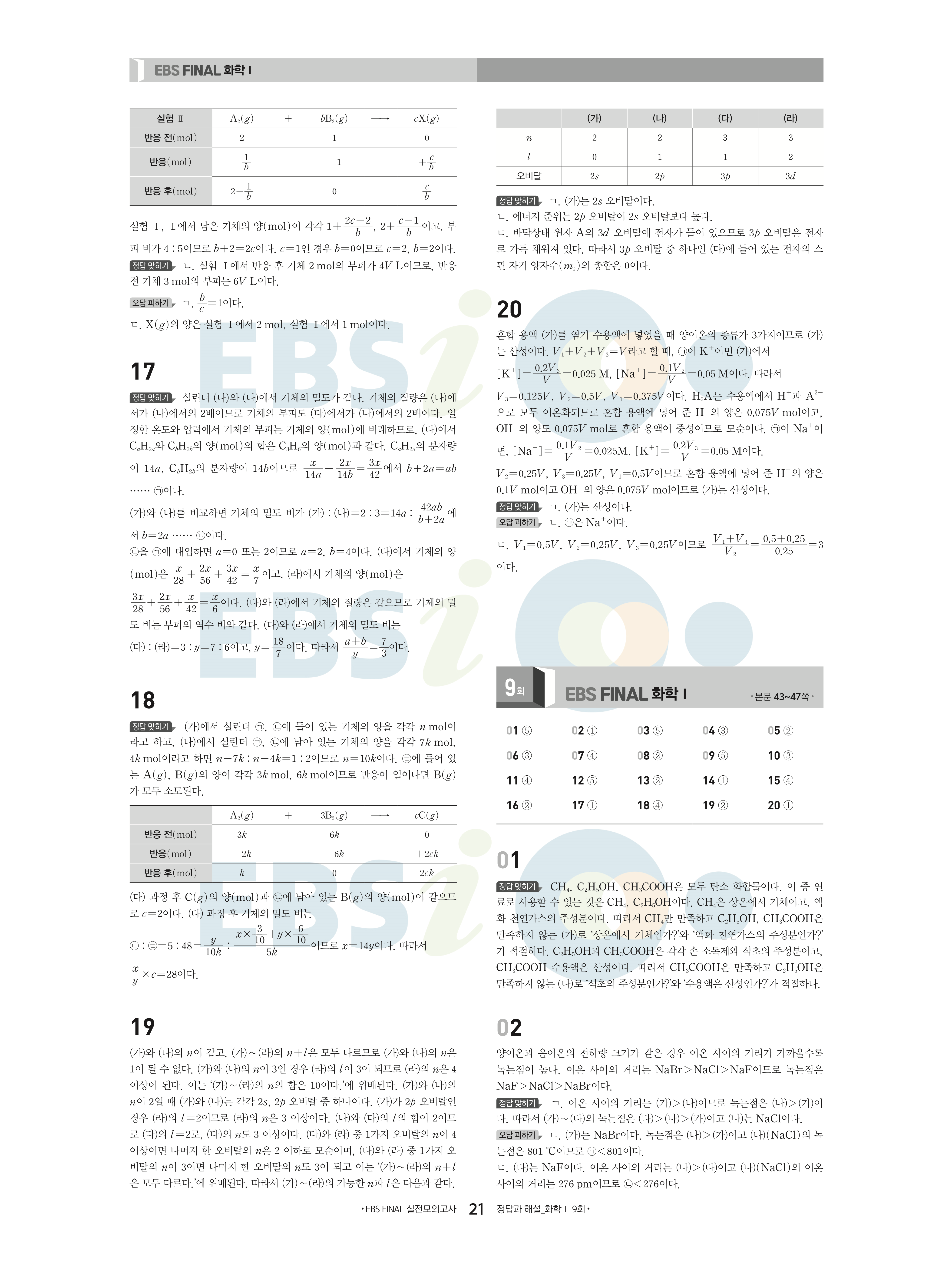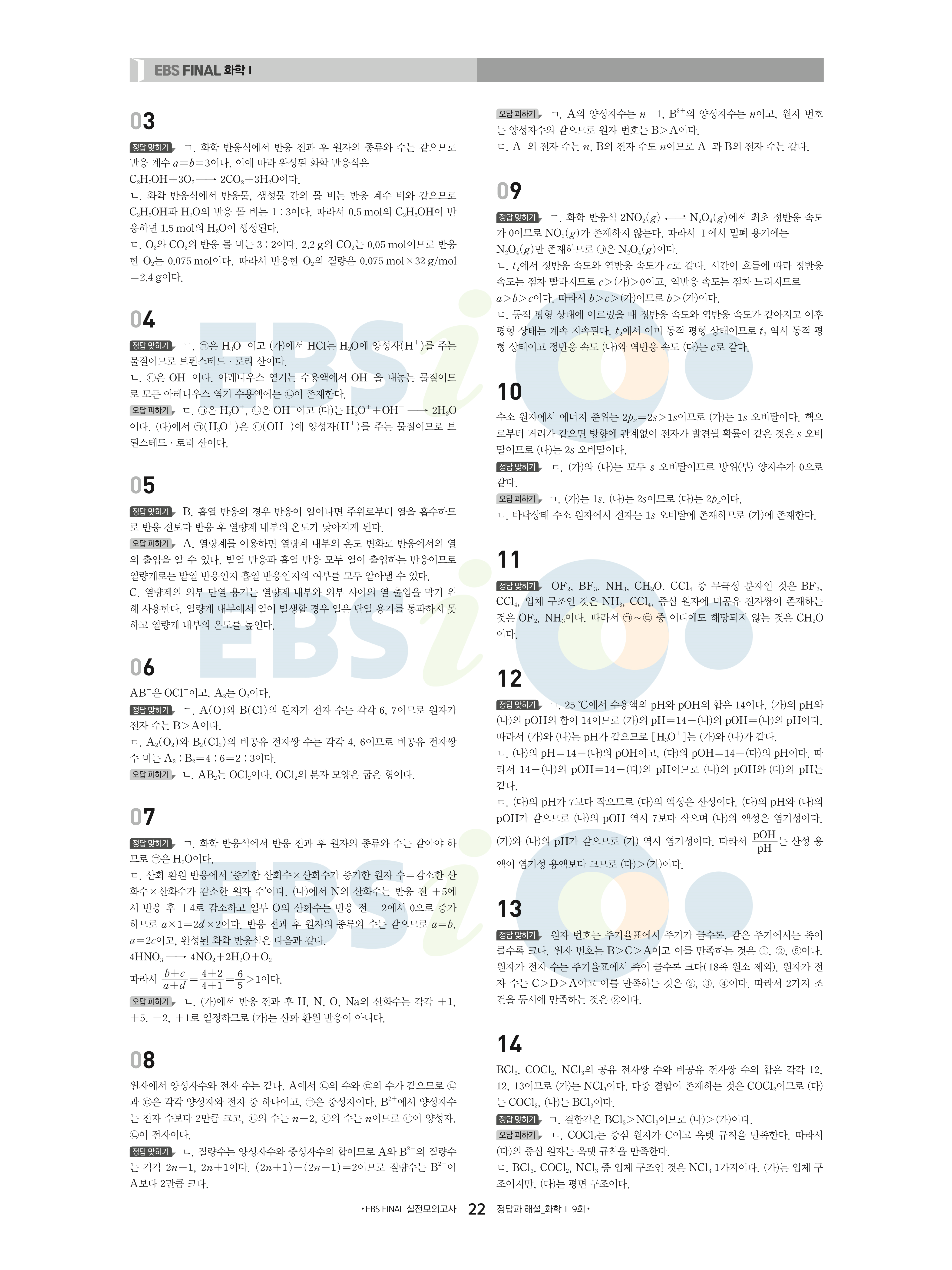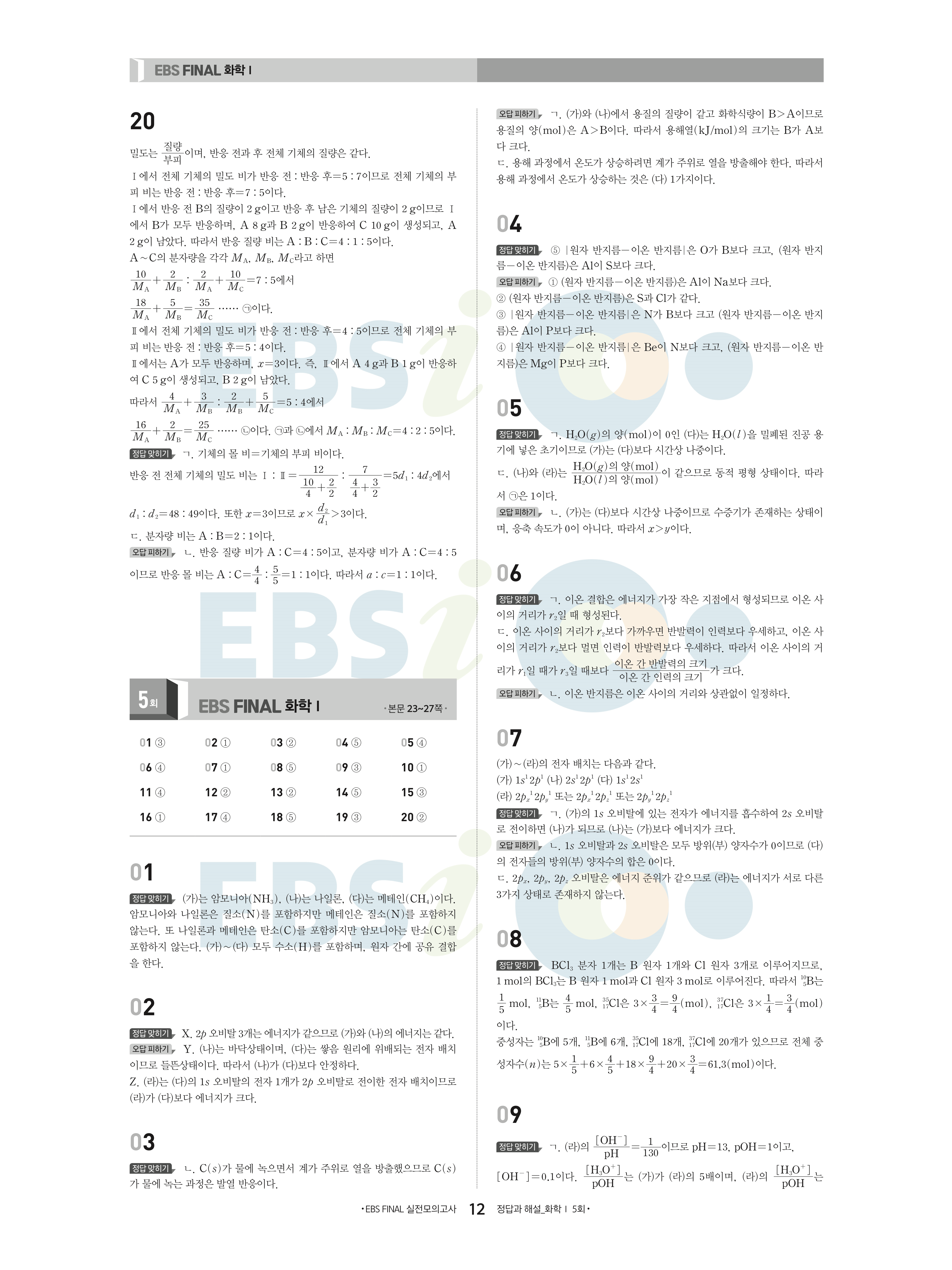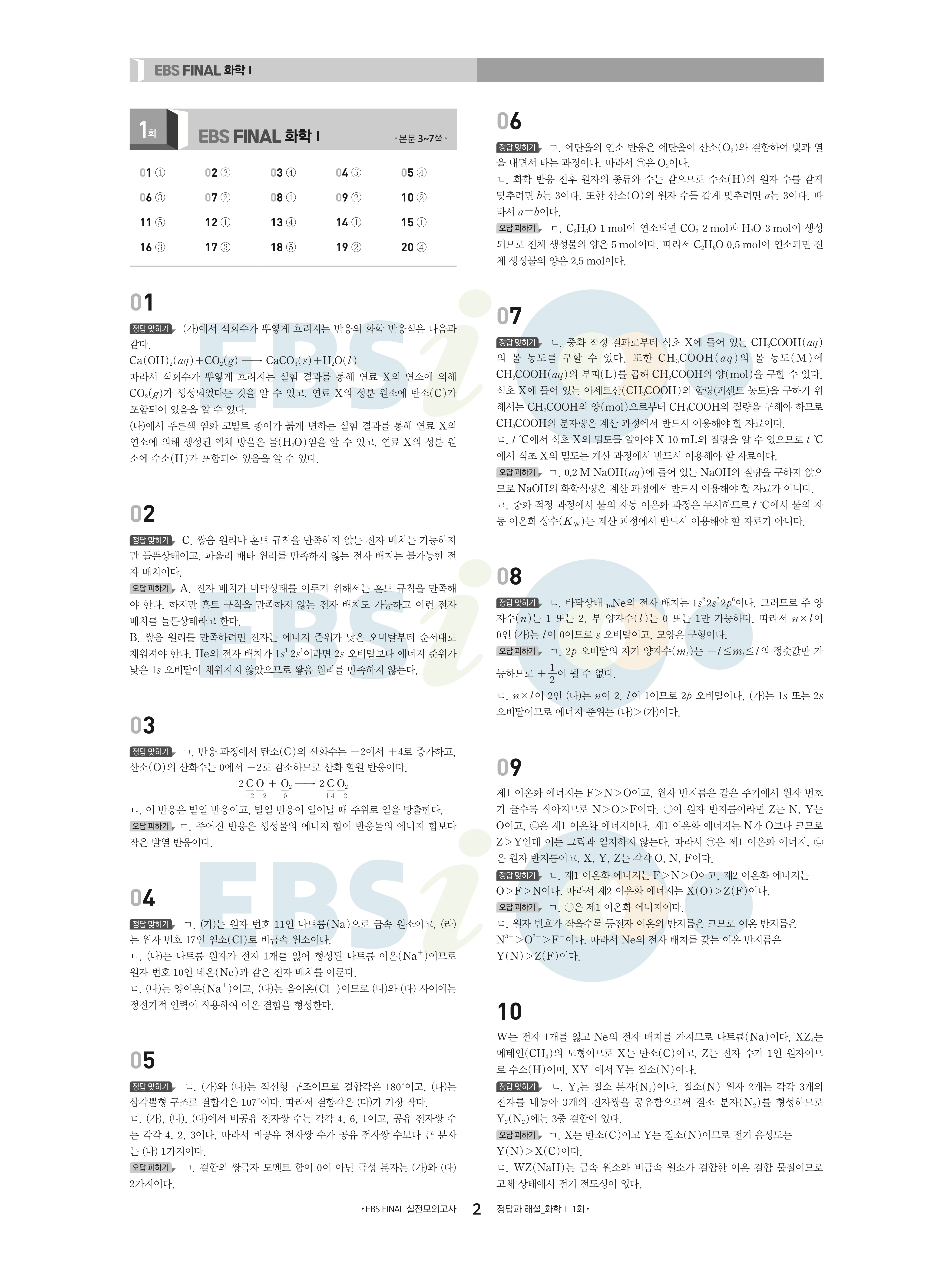 2022 EBS 파이널 실전모의고사 화학1 답지 해설 사진답지 모바일최적화