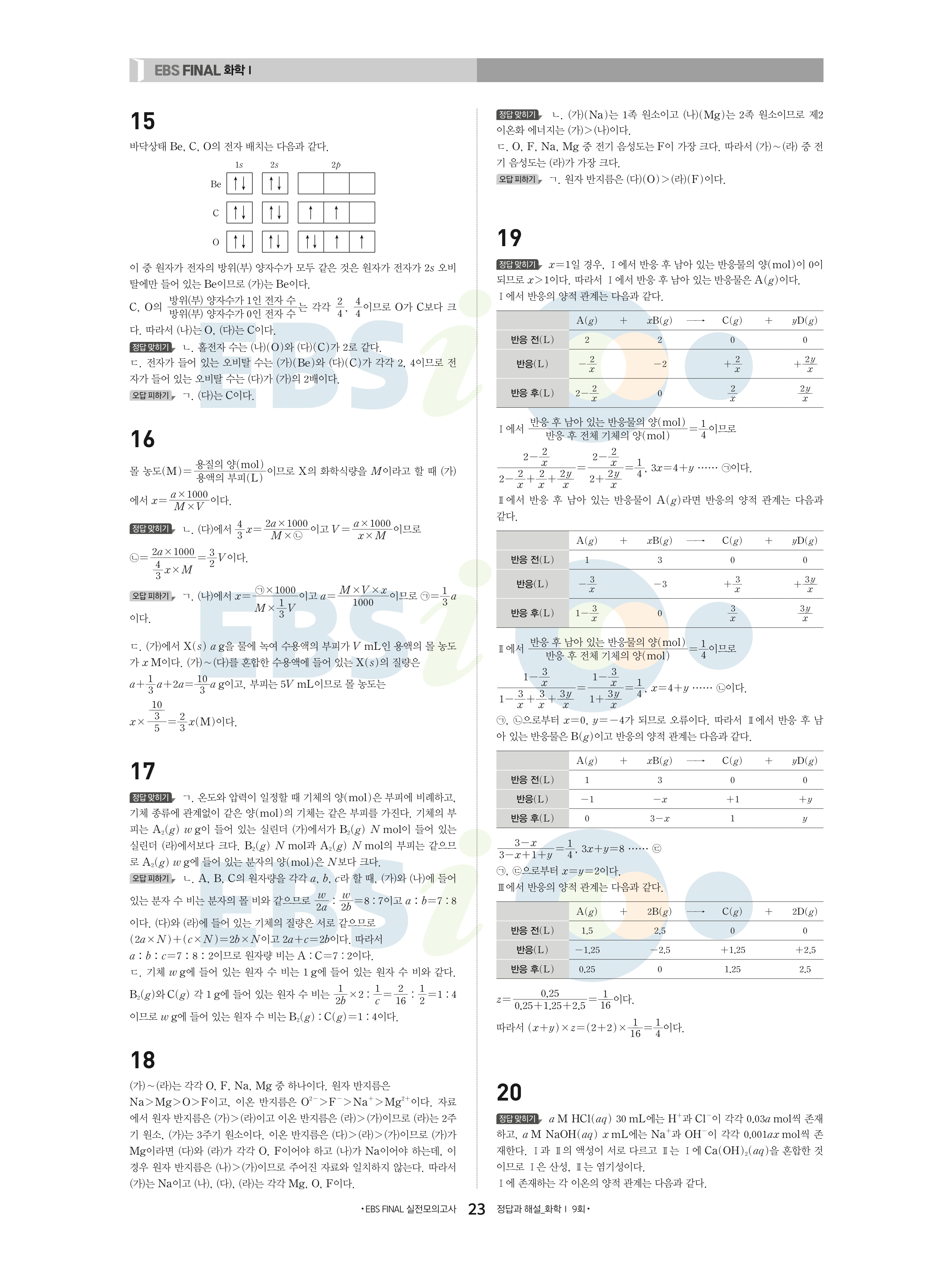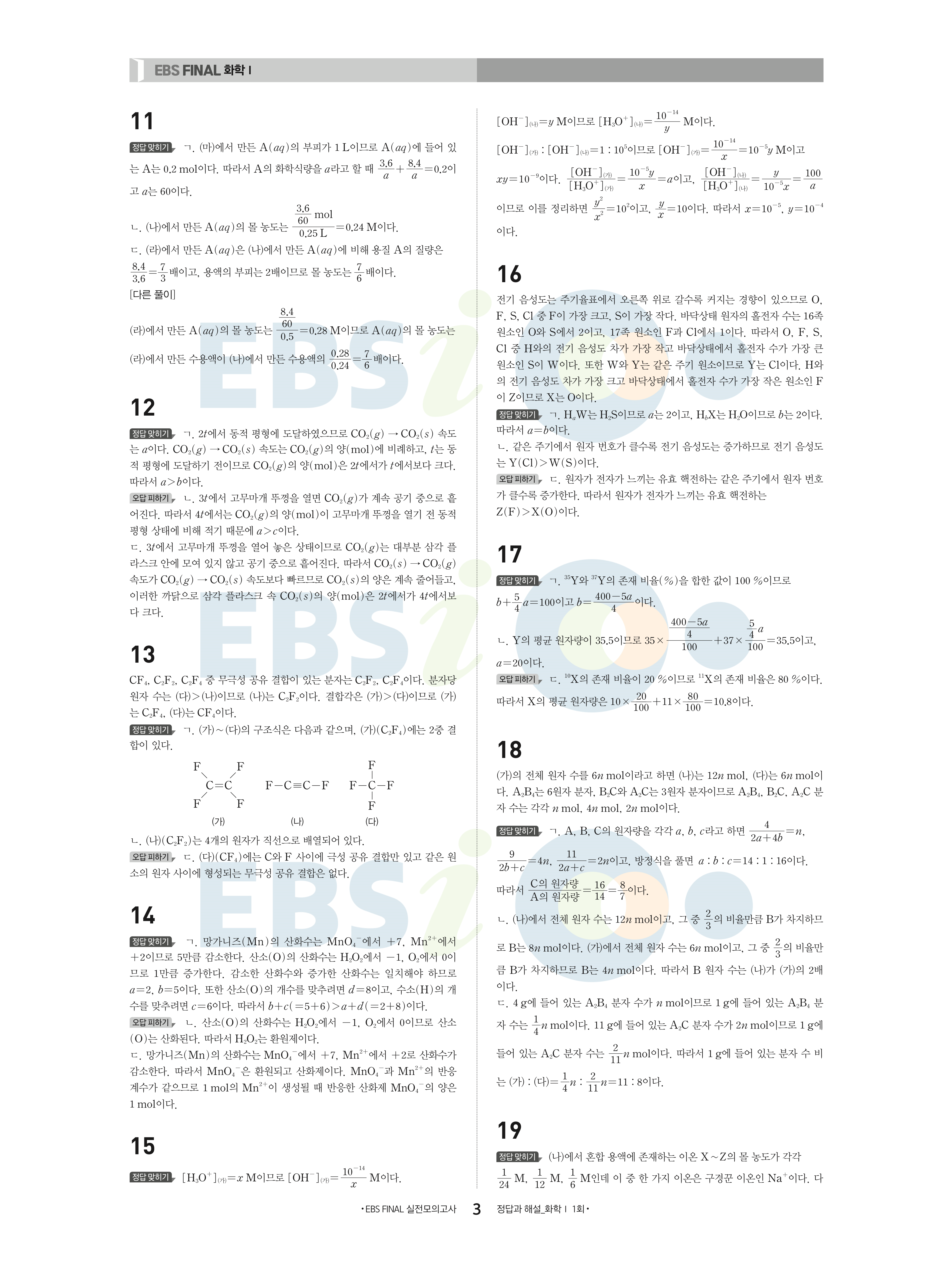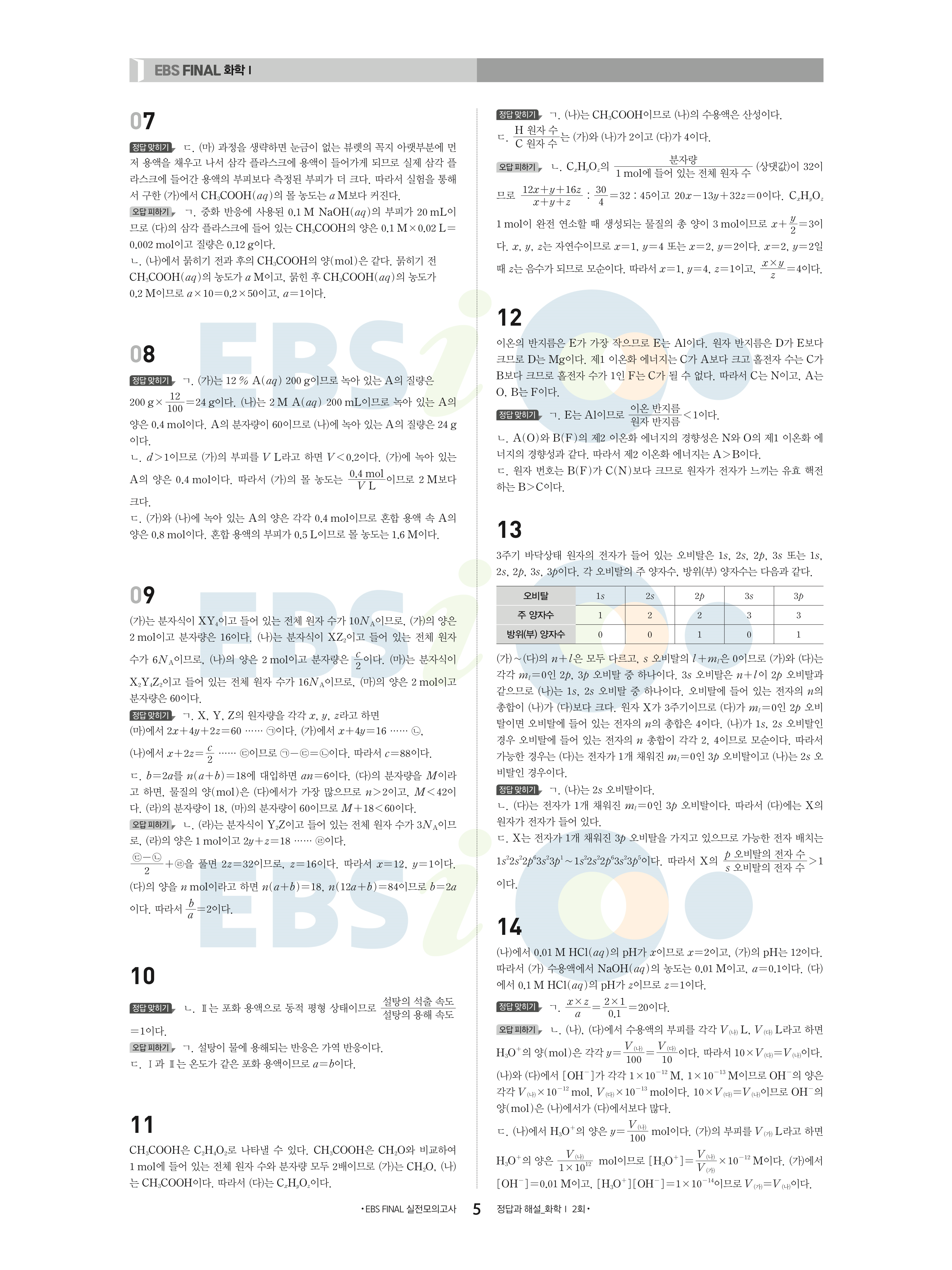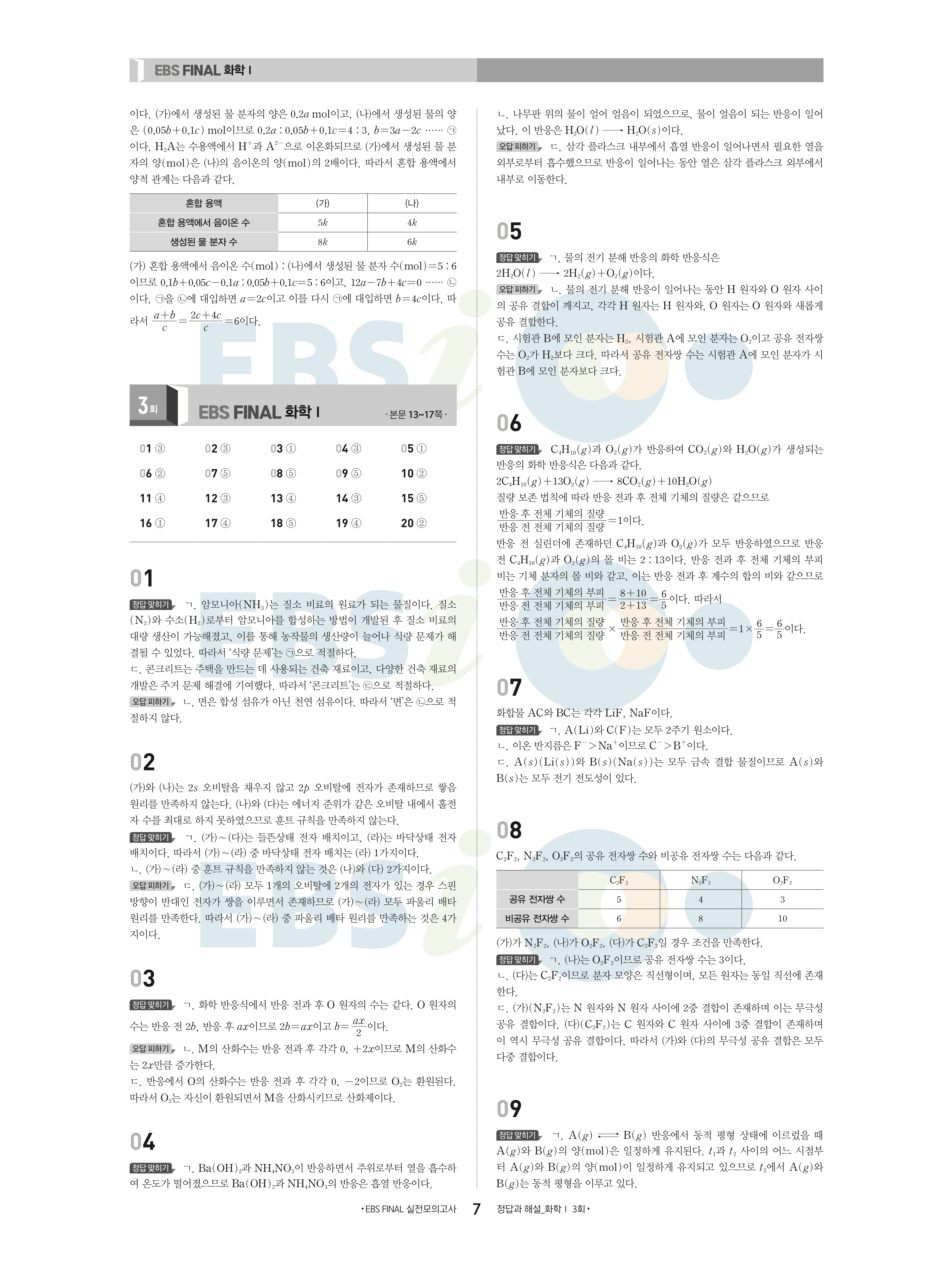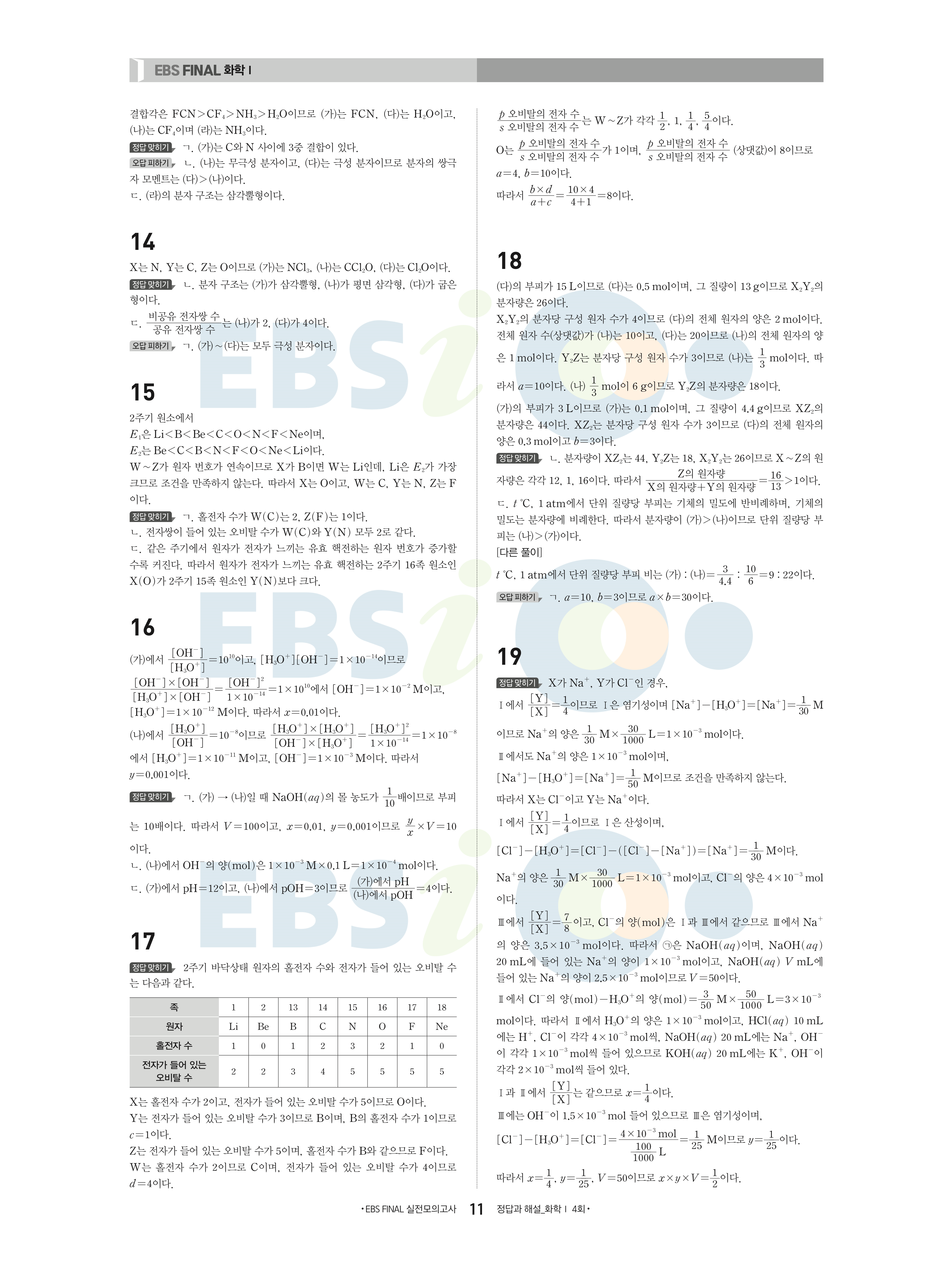 2022 EBS 파이널 실전모의고사 화학1 답지 해설 사진답지 모바일최적화