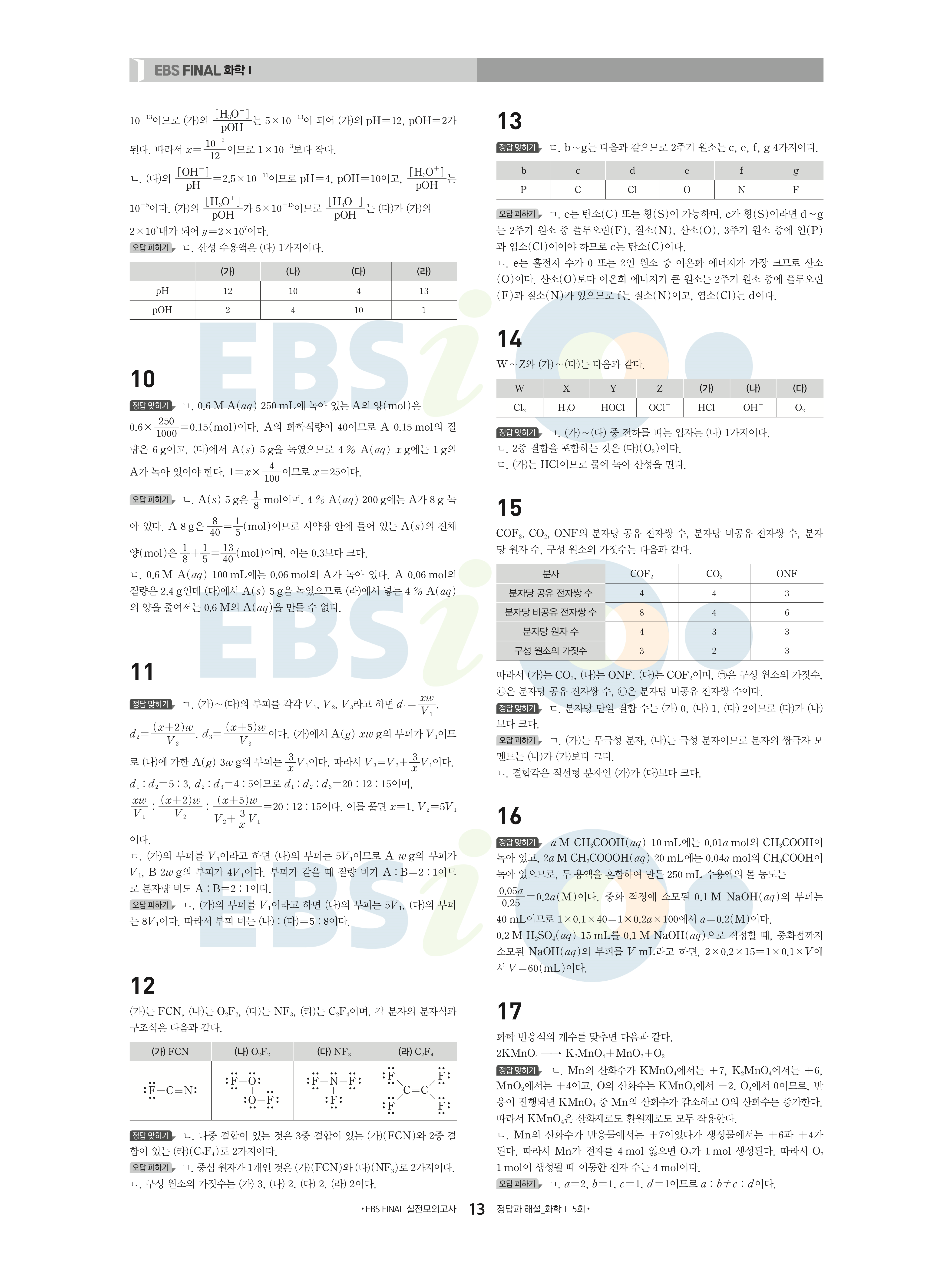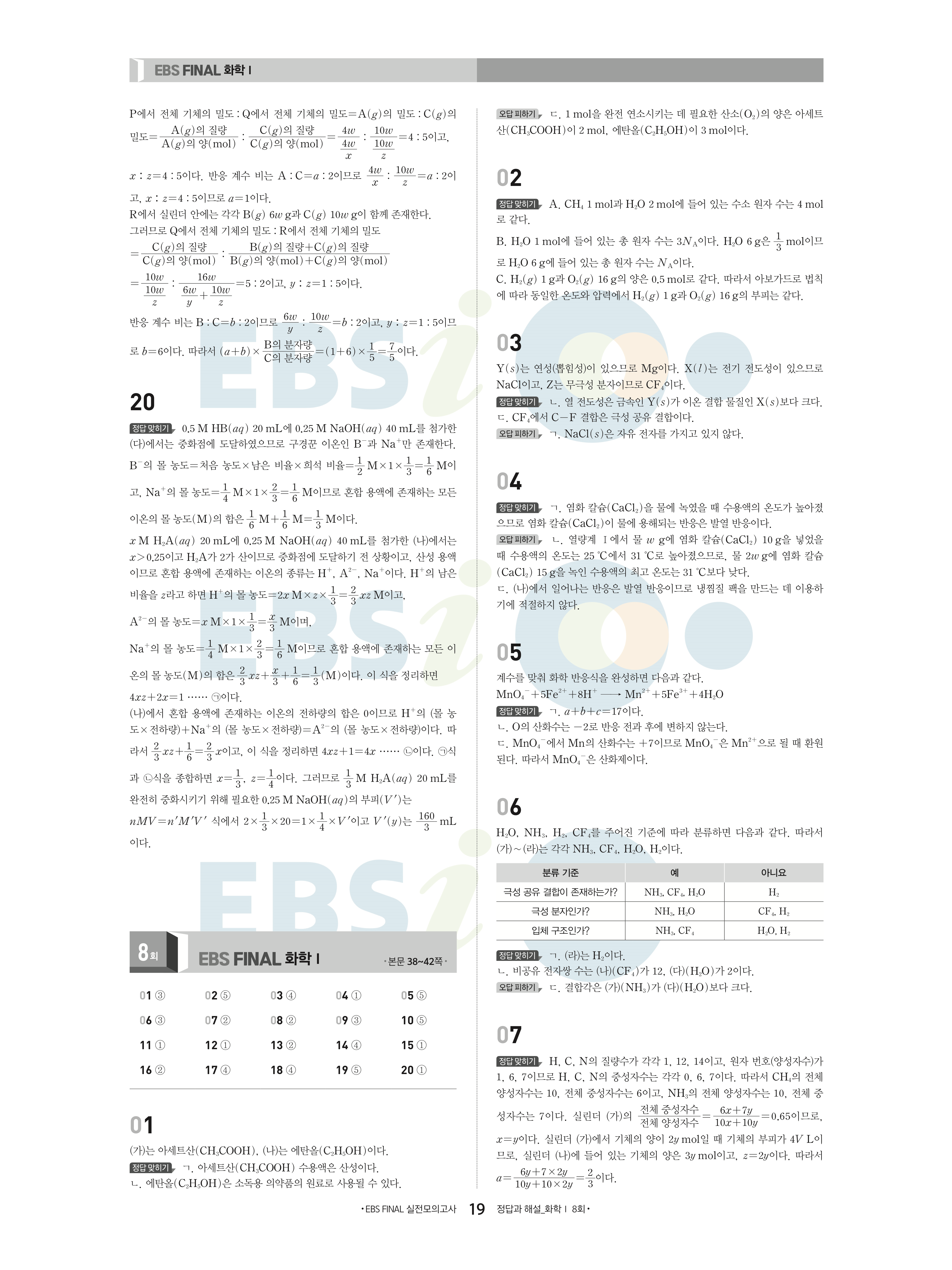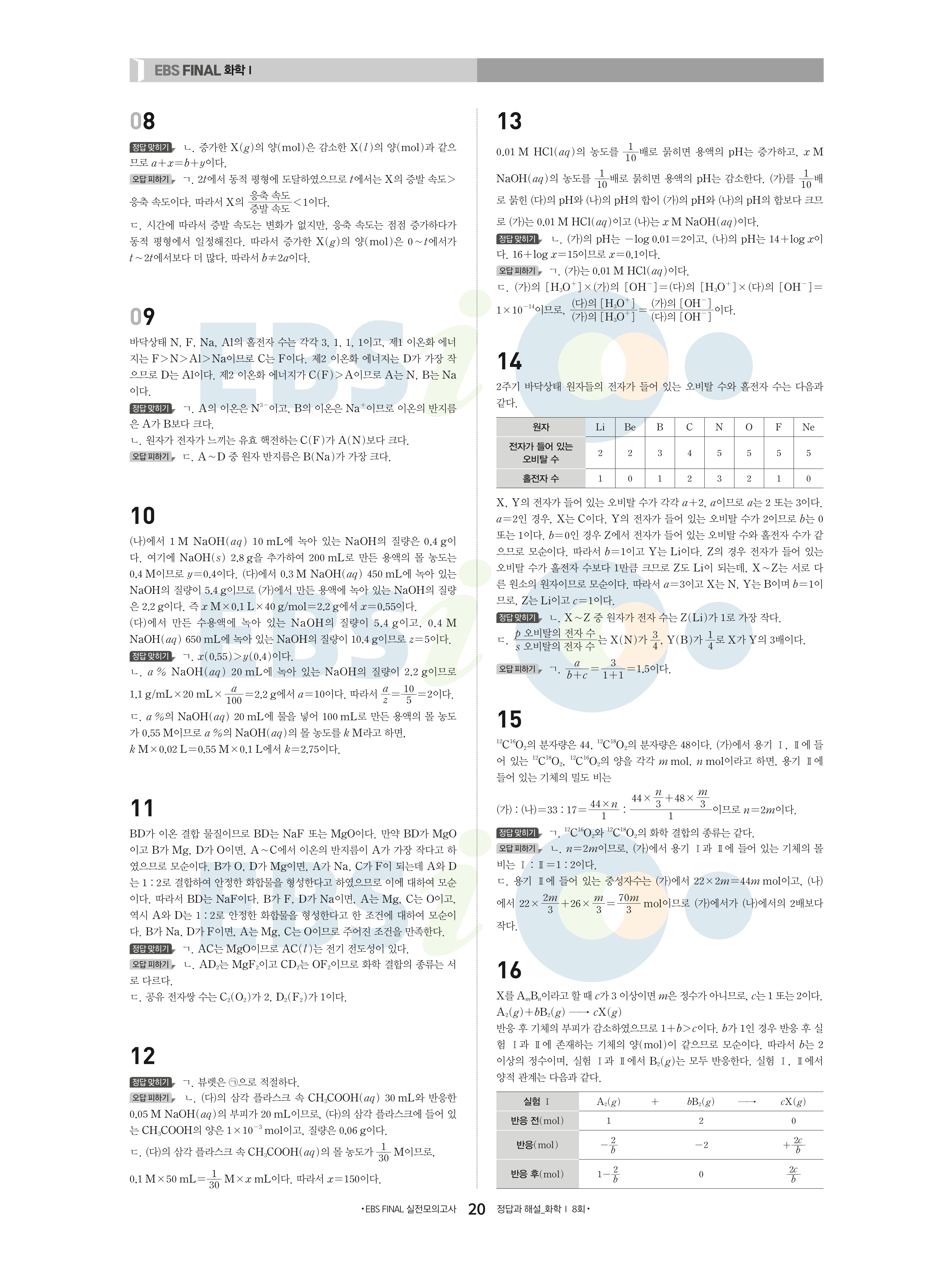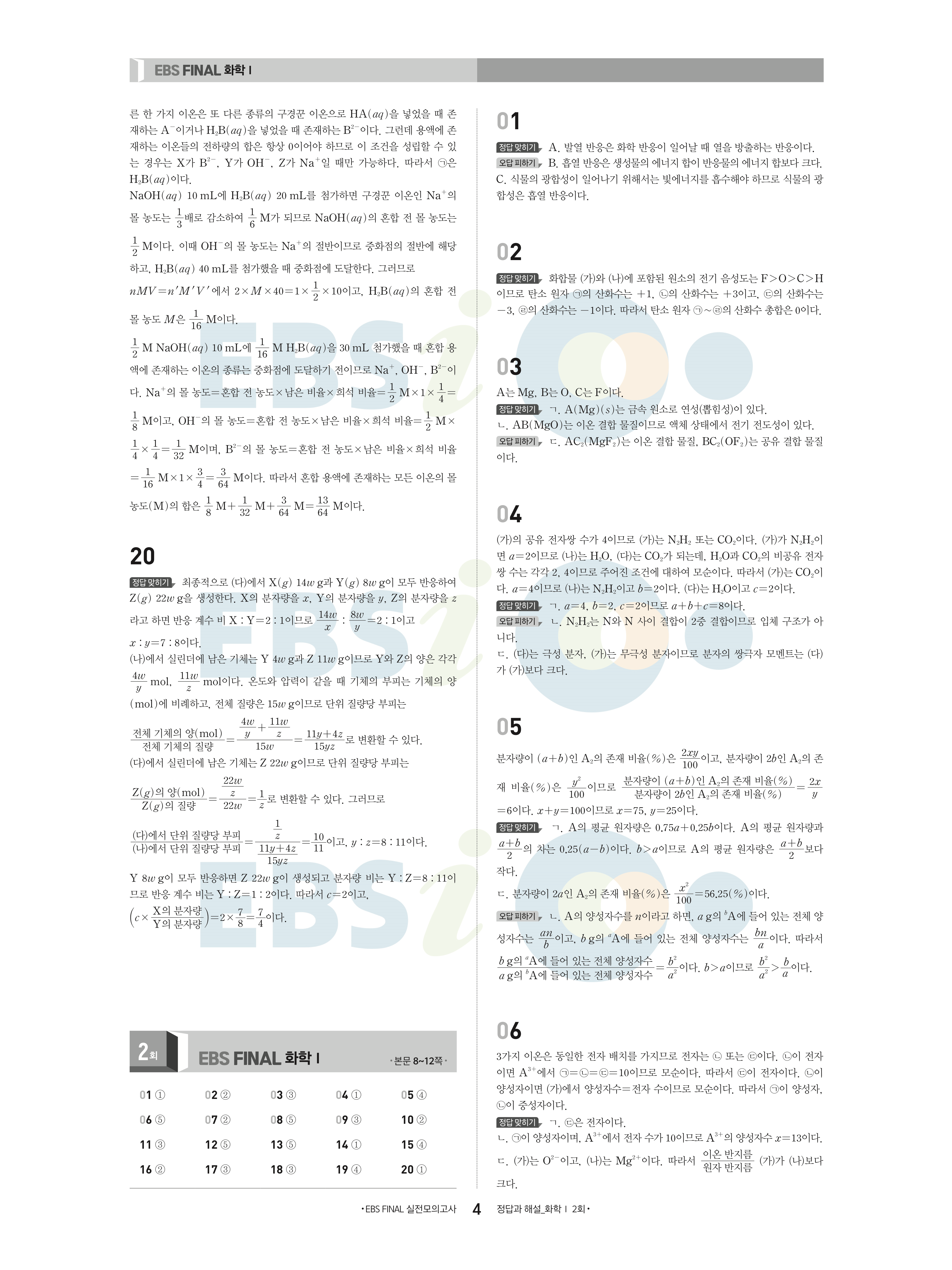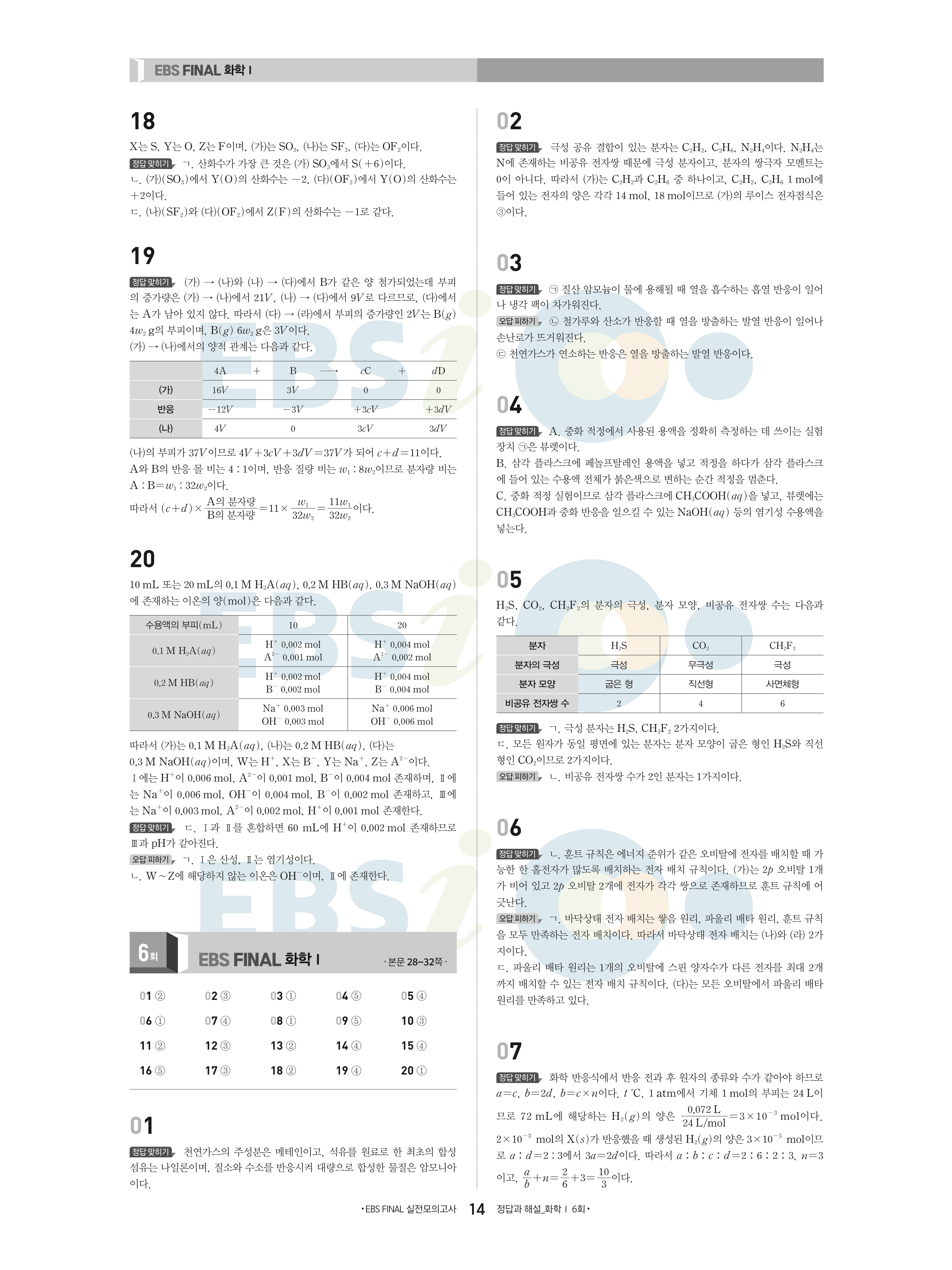 2022 EBS 파이널 실전모의고사 화학1 답지 해설 사진답지 모바일최적화