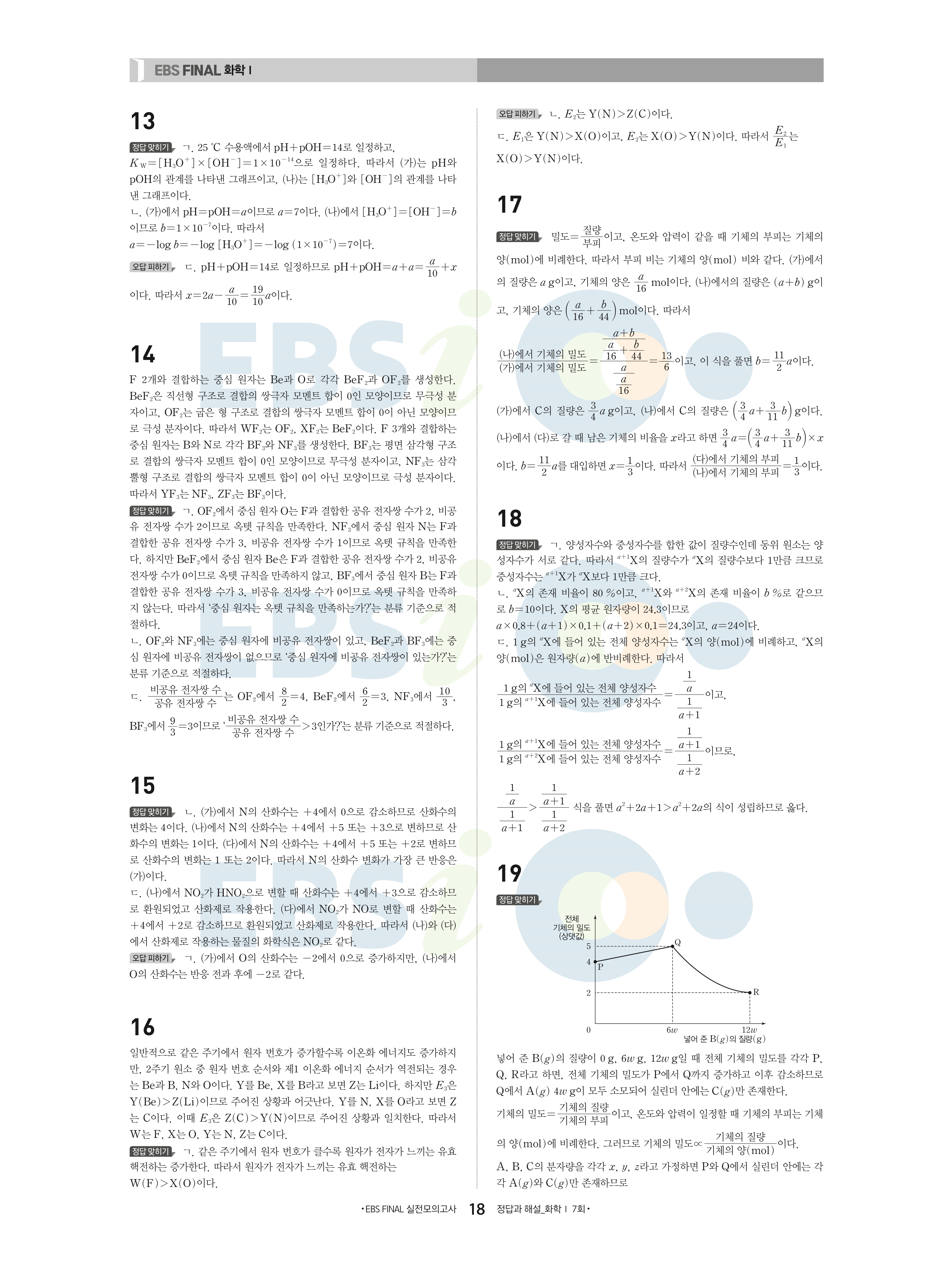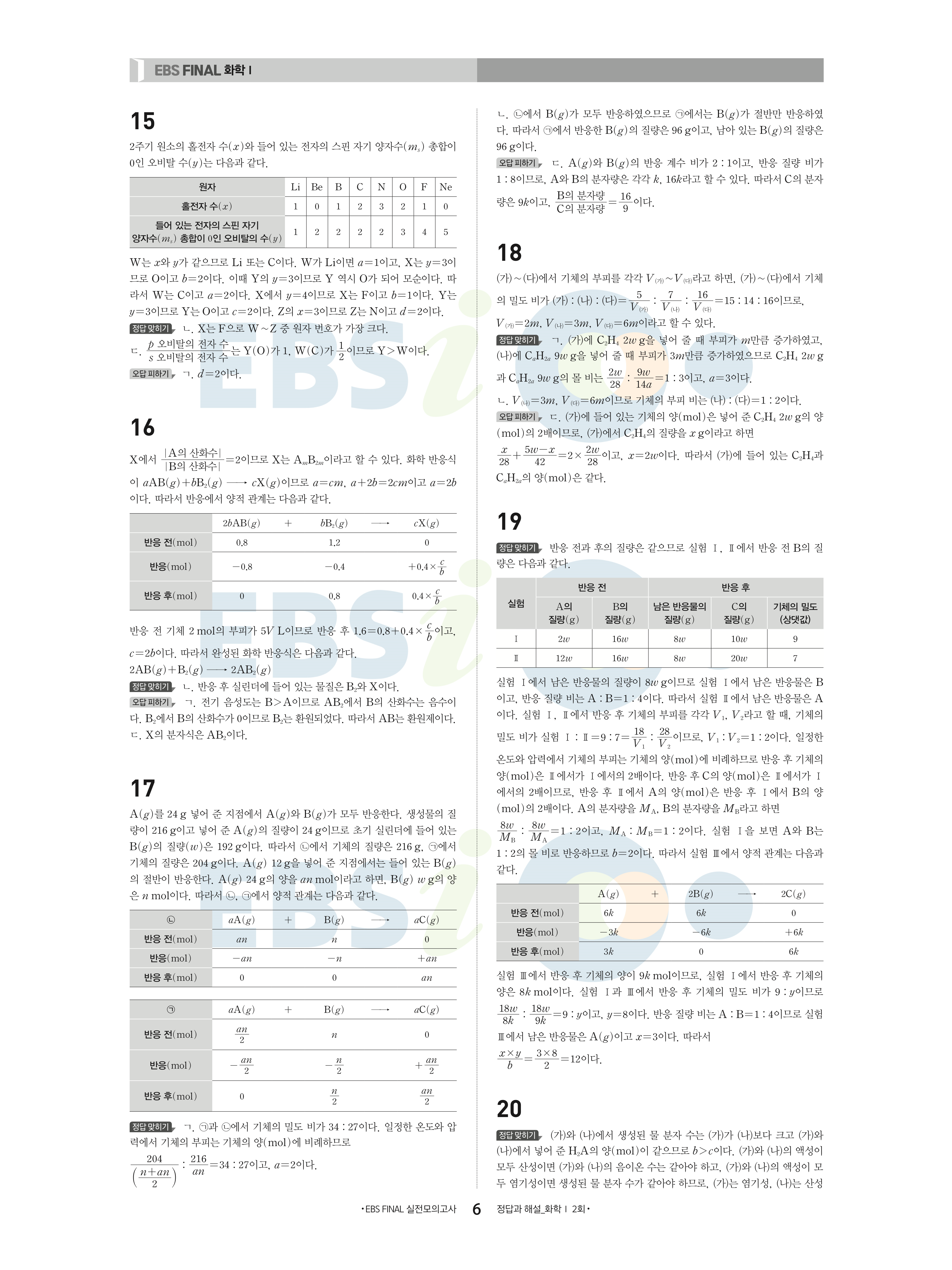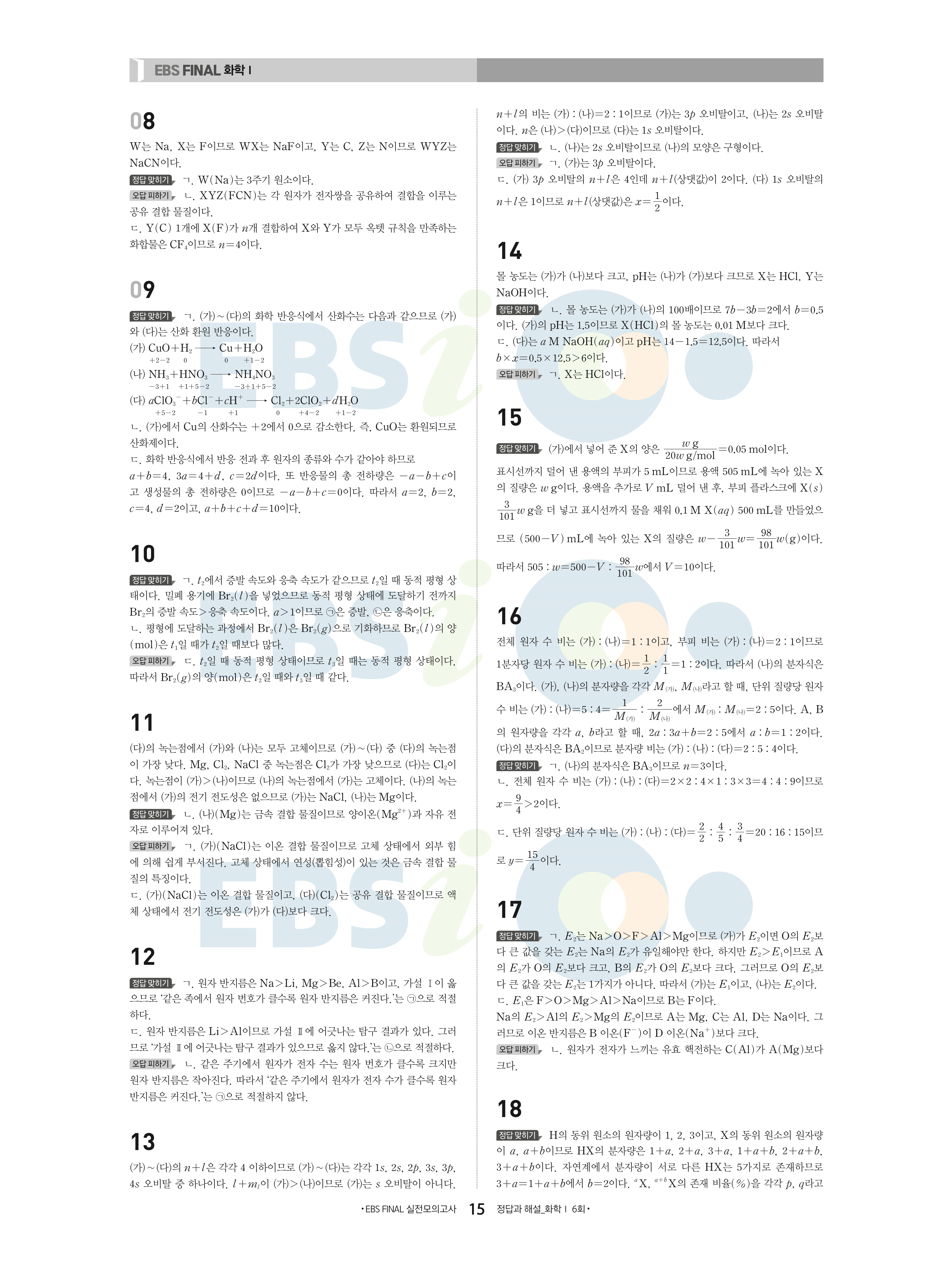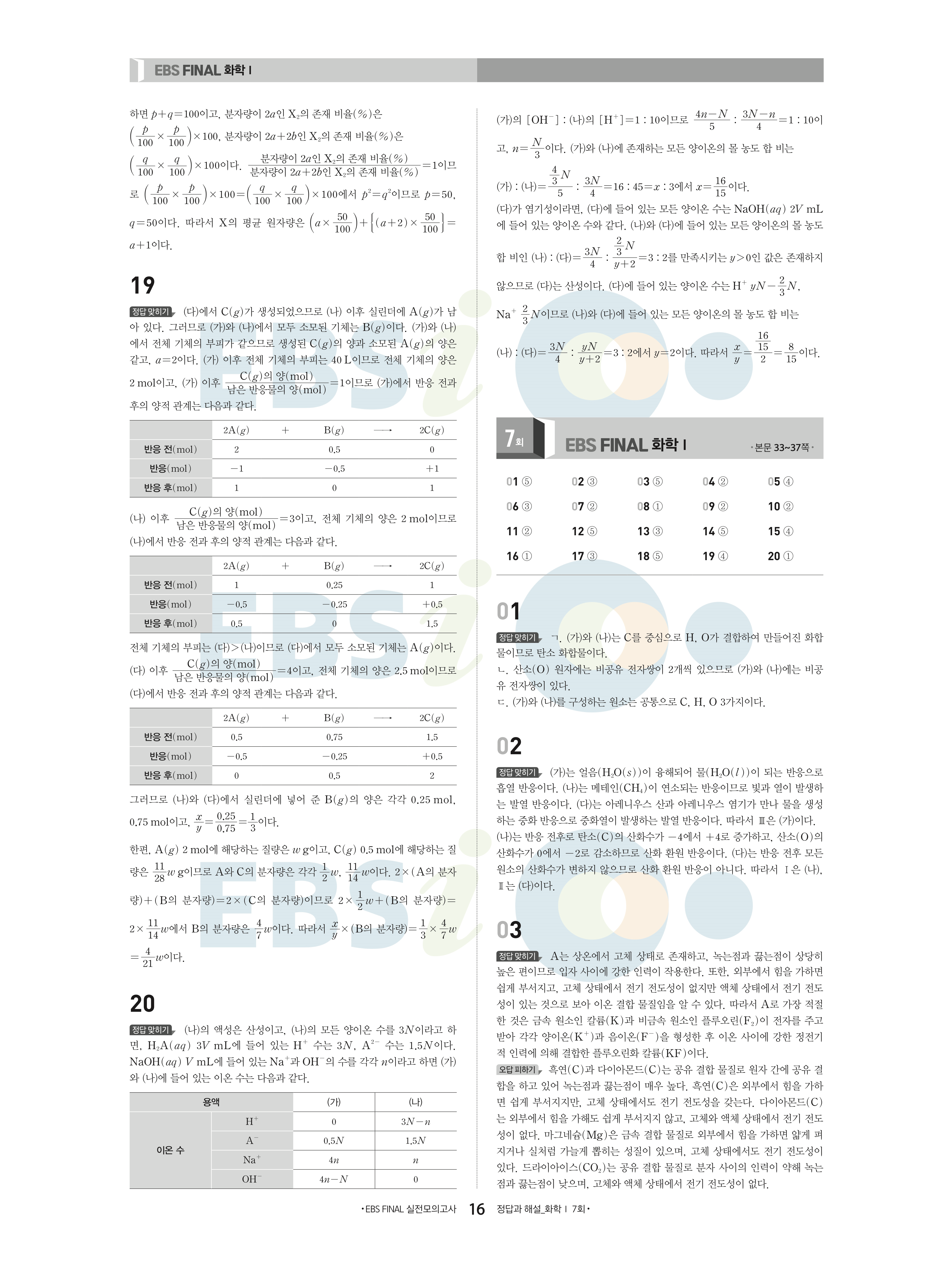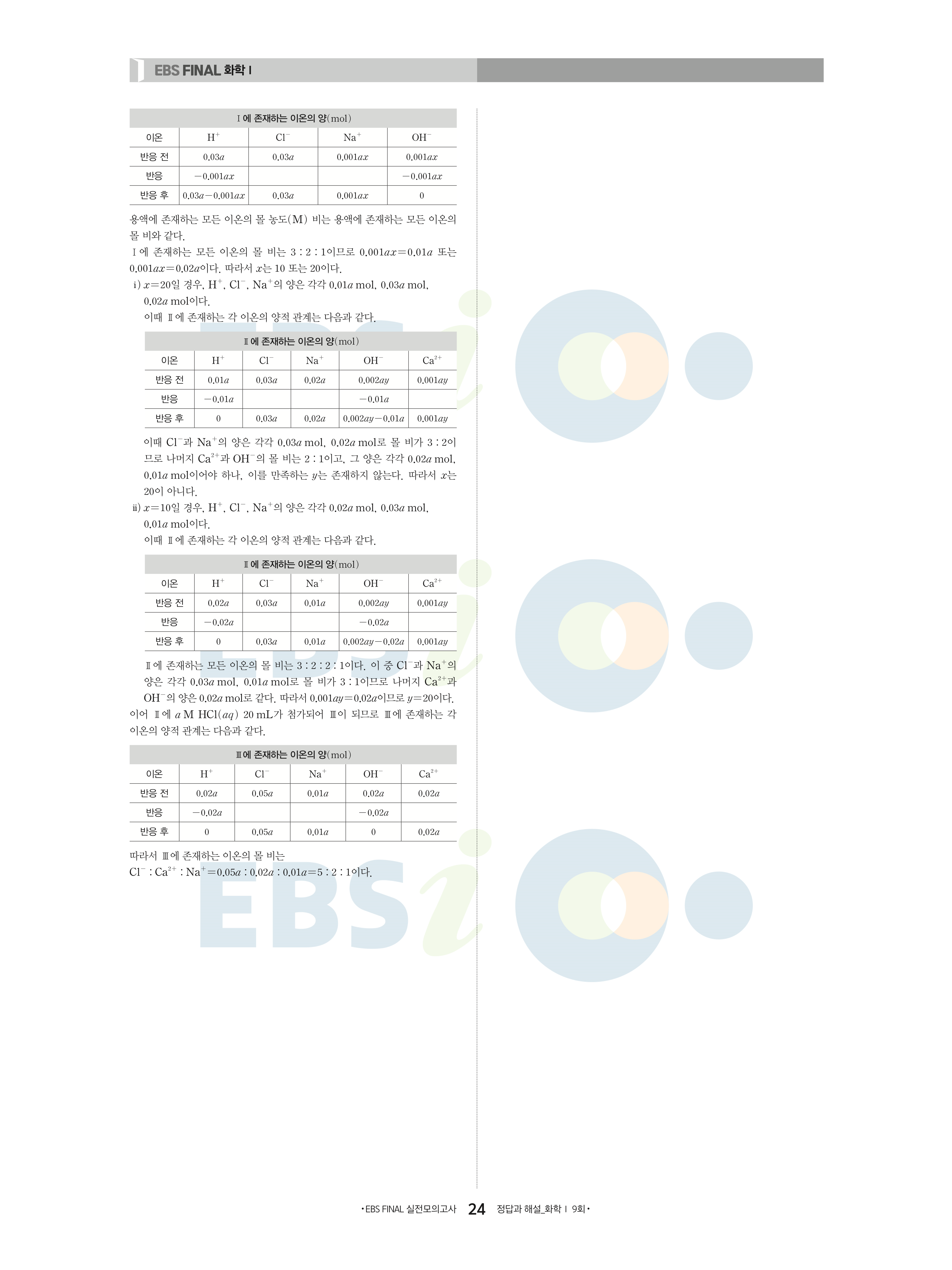 2022 EBS 파이널 실전모의고사 화학1 답지 해설 사진답지 모바일최적화