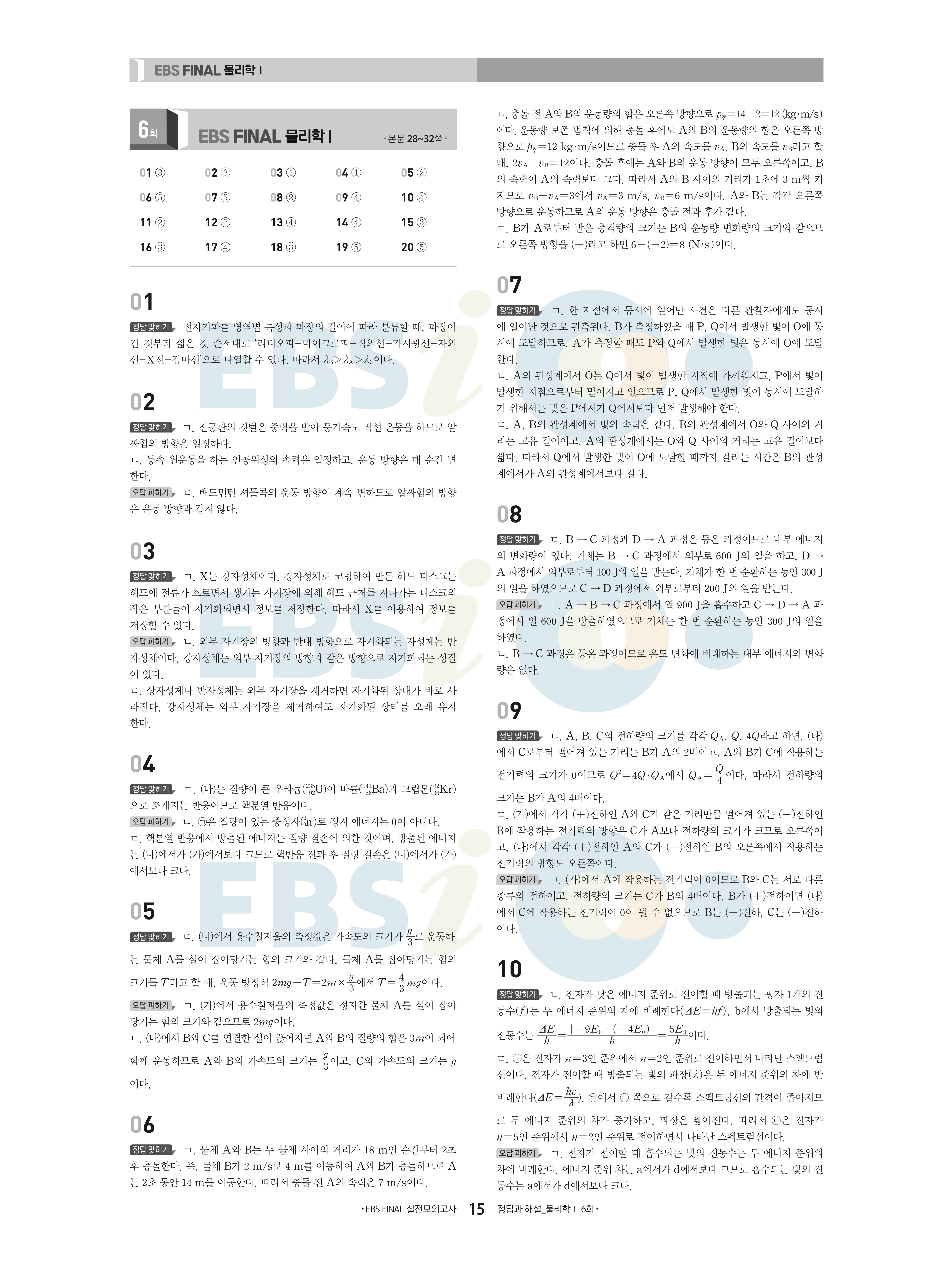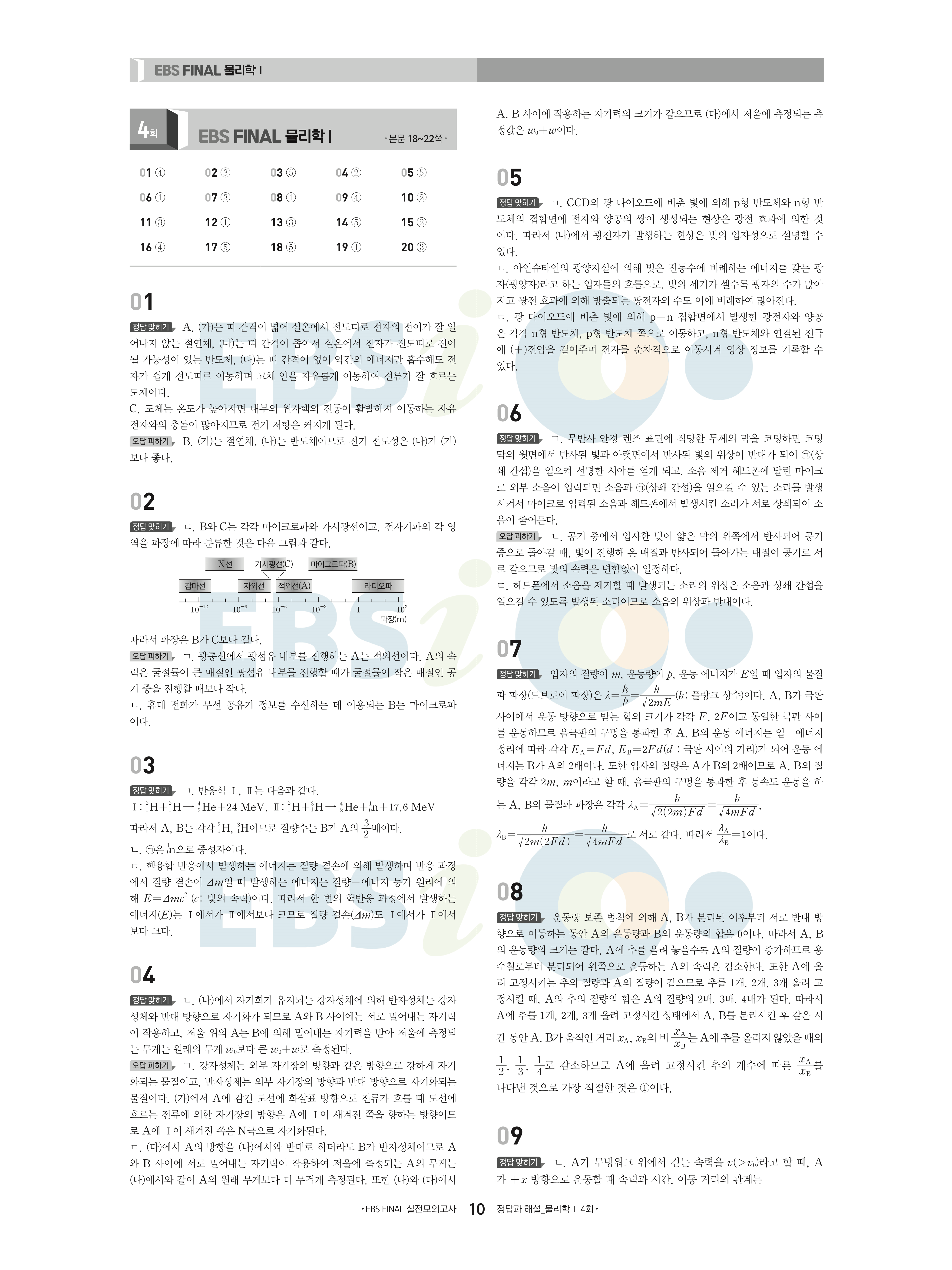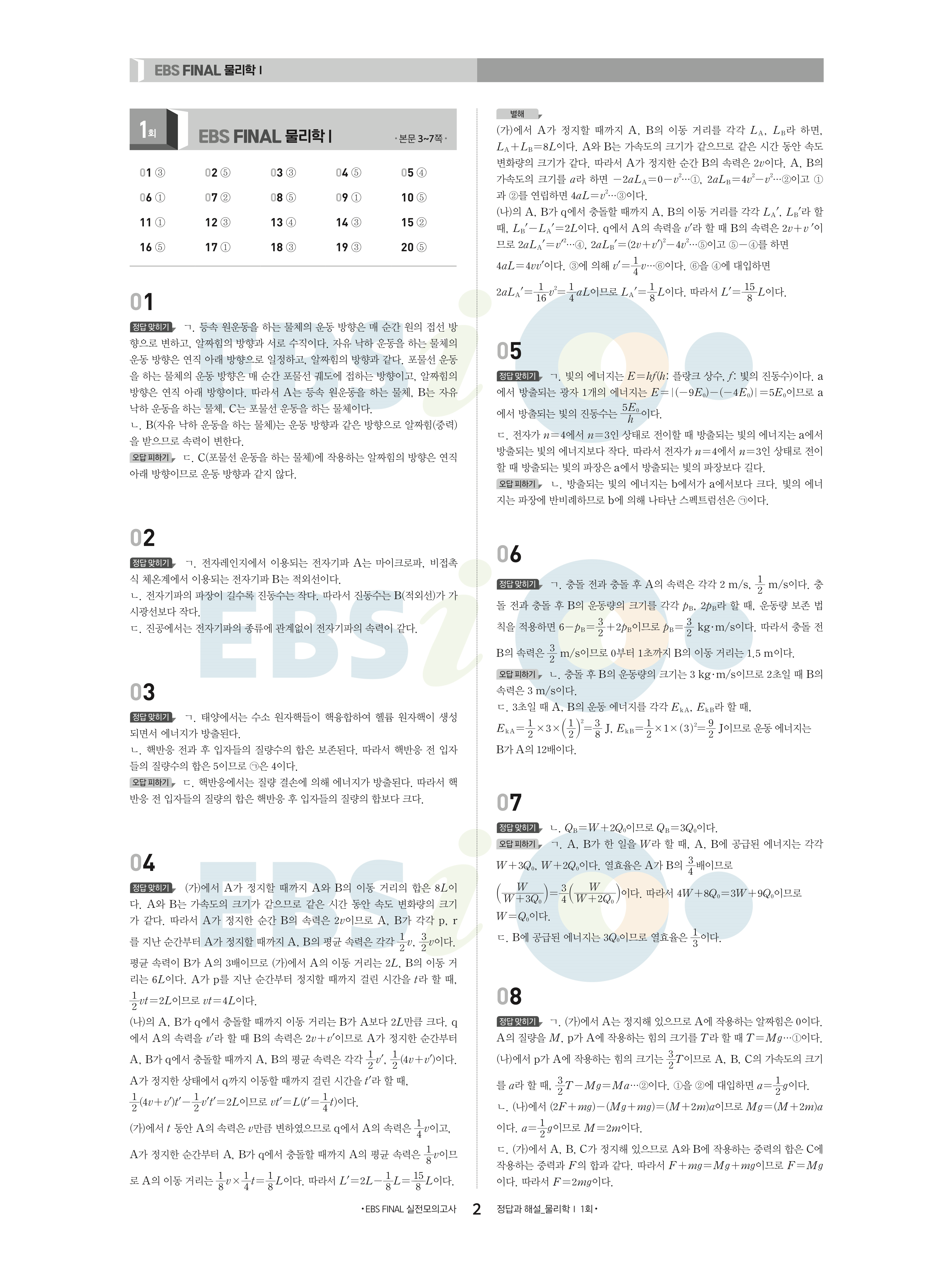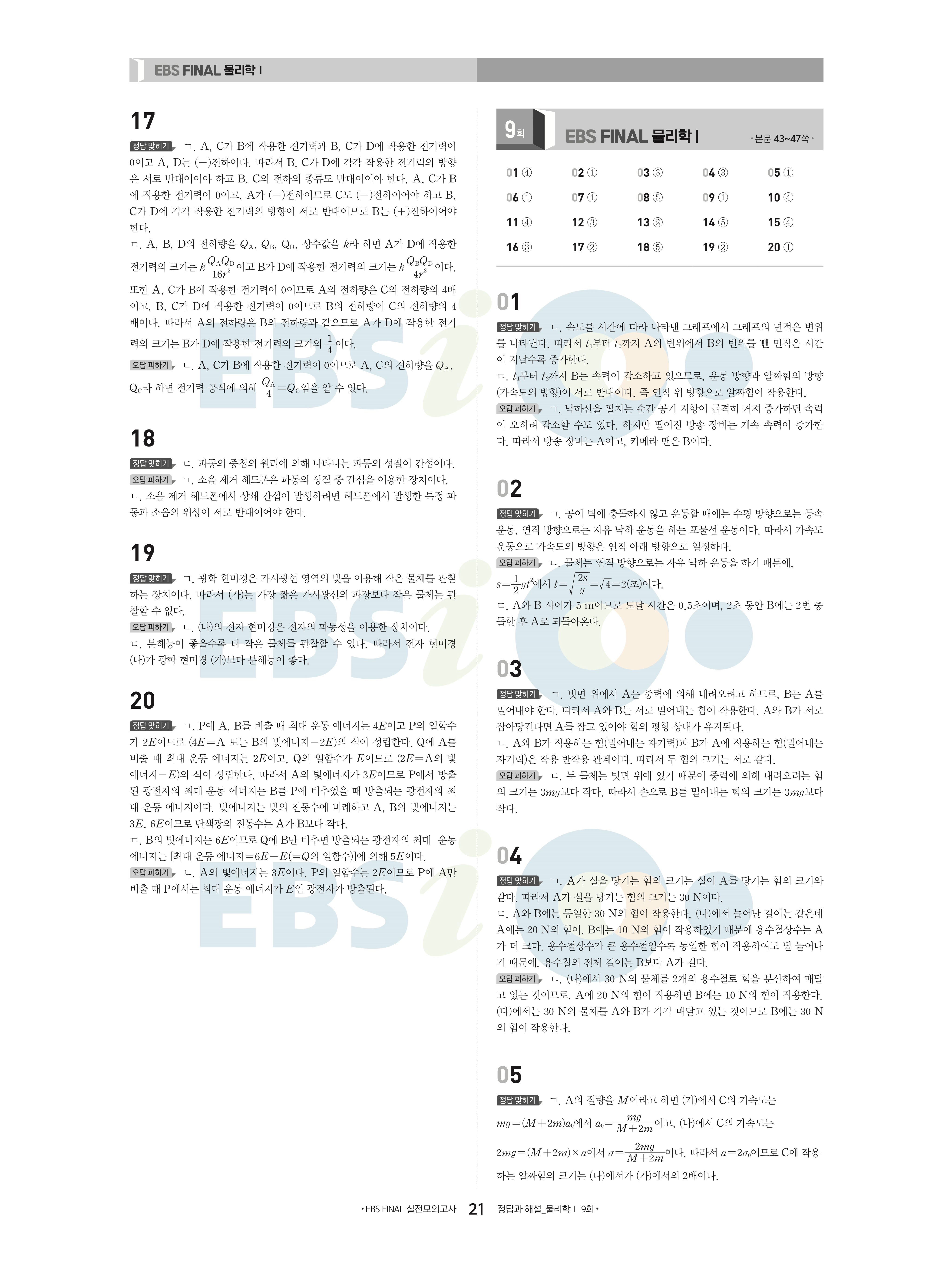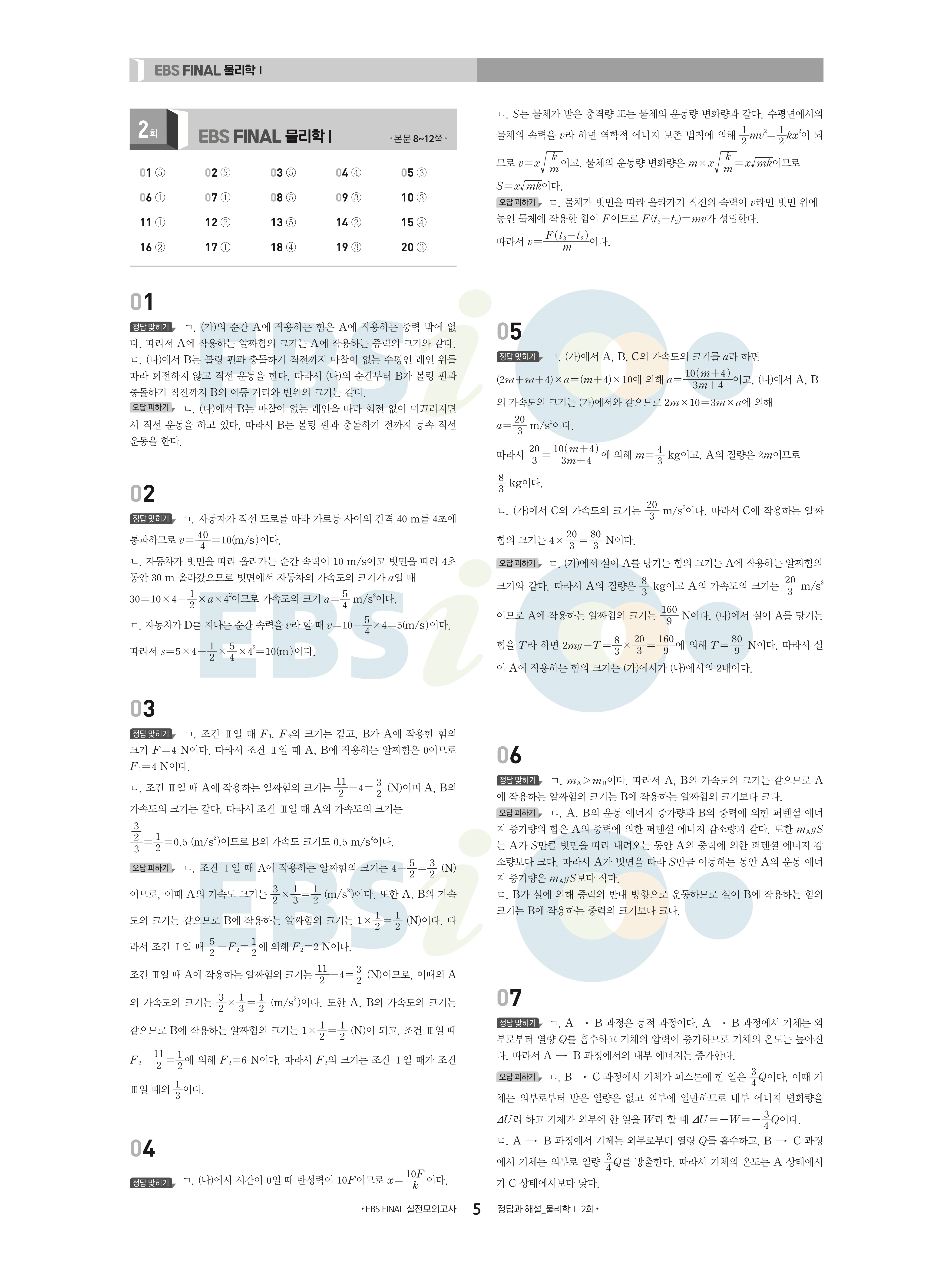 2022 EBS 파이널 실전모의고사 물리학1 답지 해설 사진답지 모바일최적화