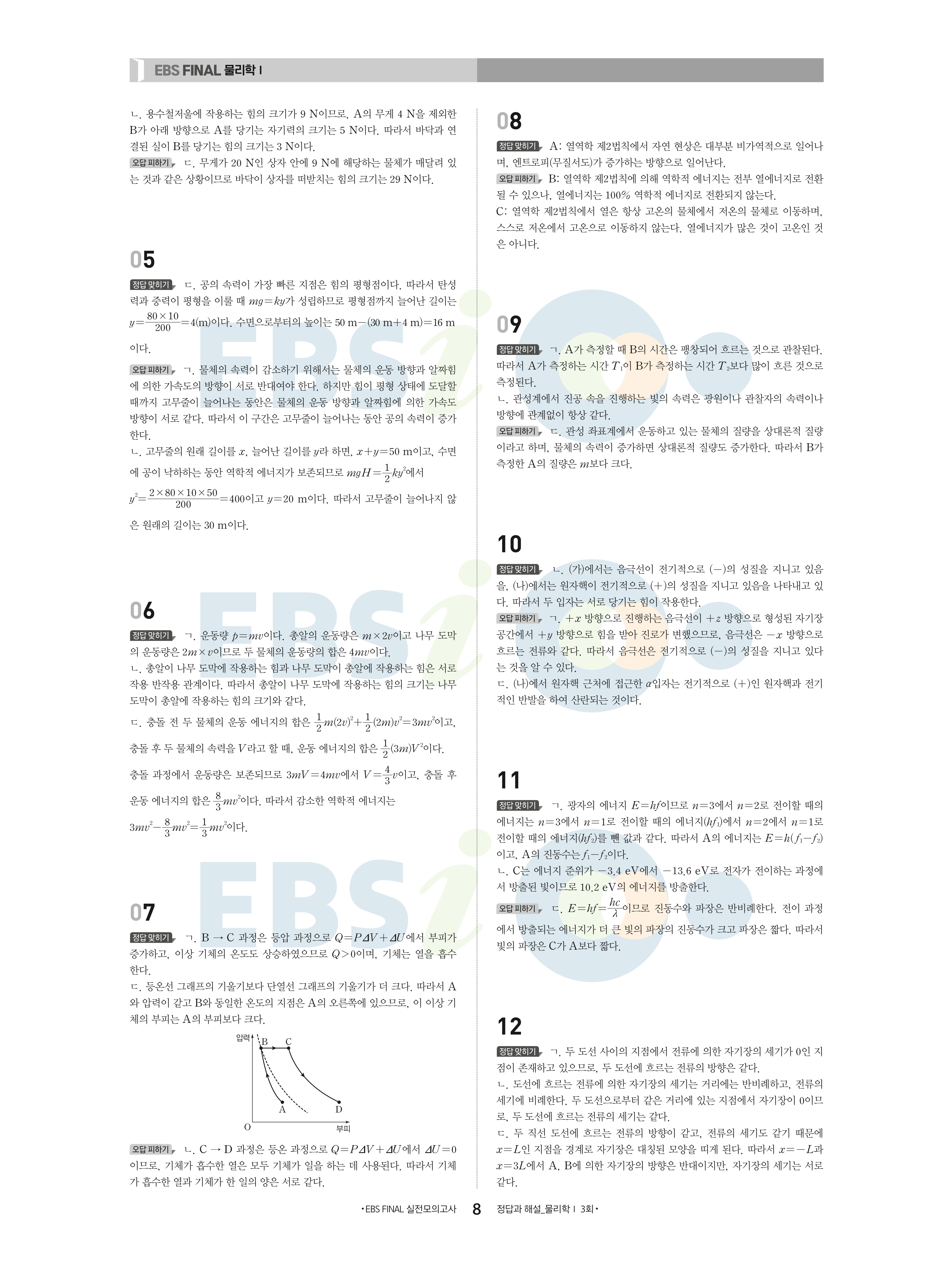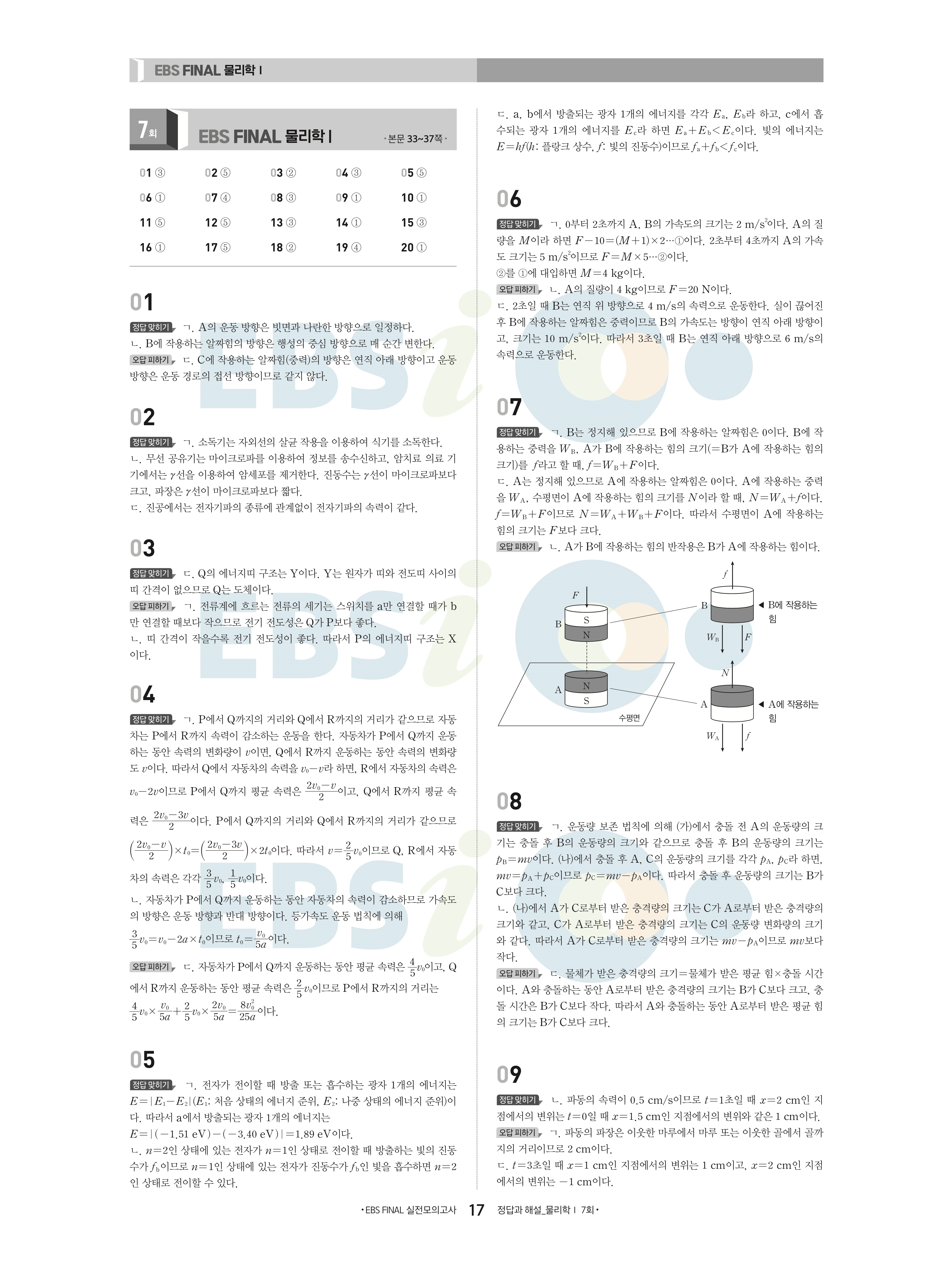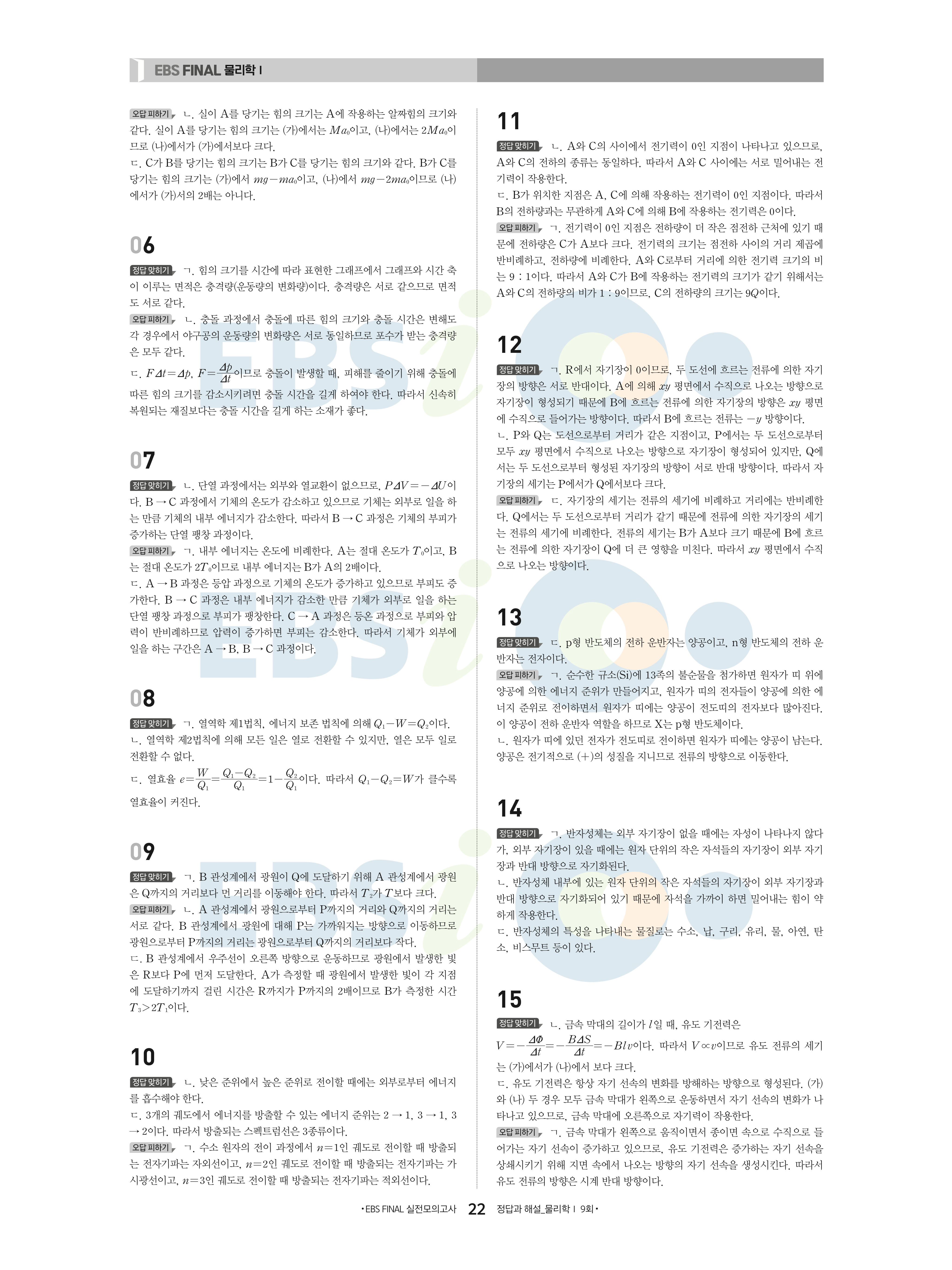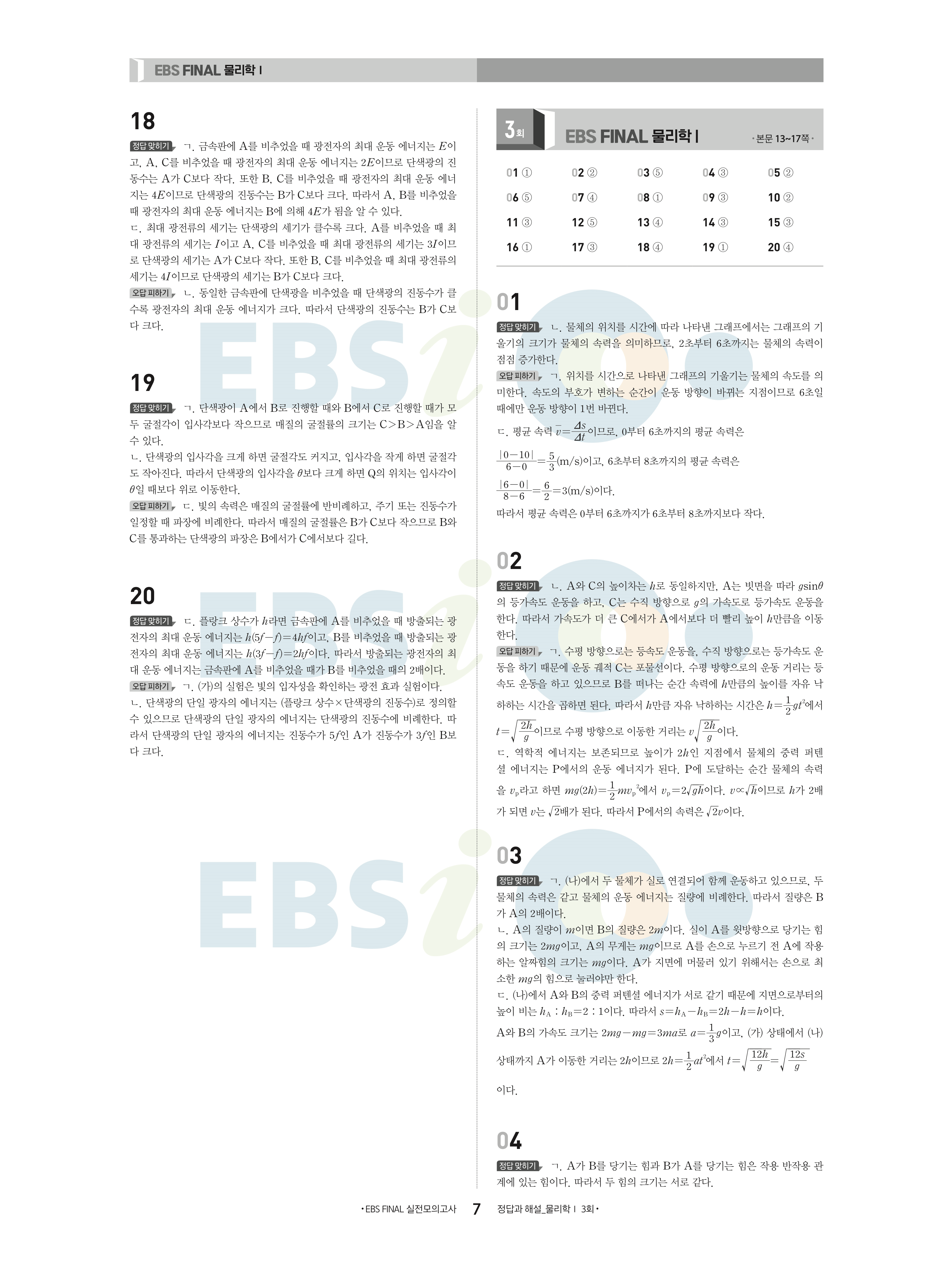 2022 EBS 파이널 실전모의고사 물리학1 답지 해설 사진답지 모바일최적화