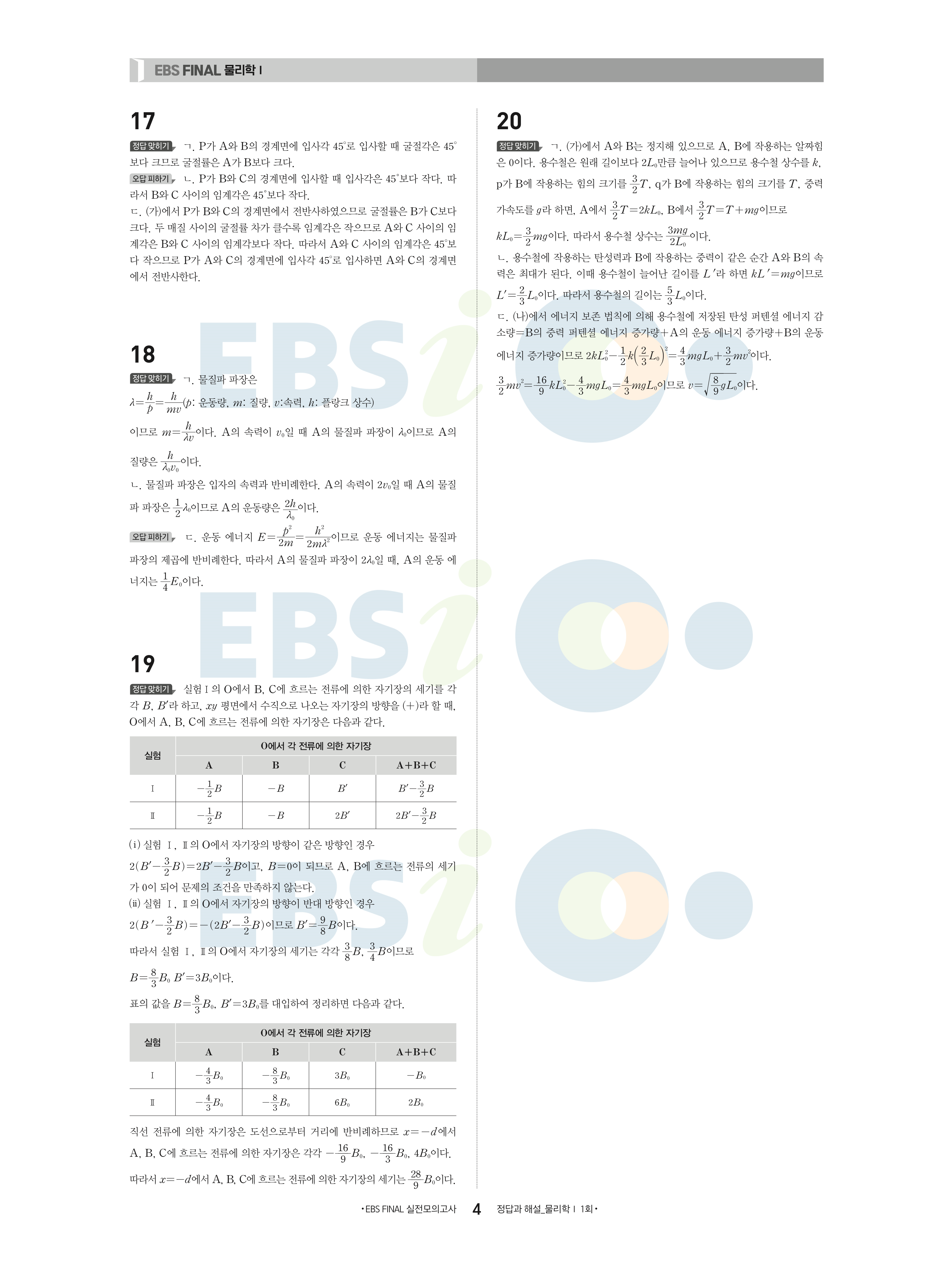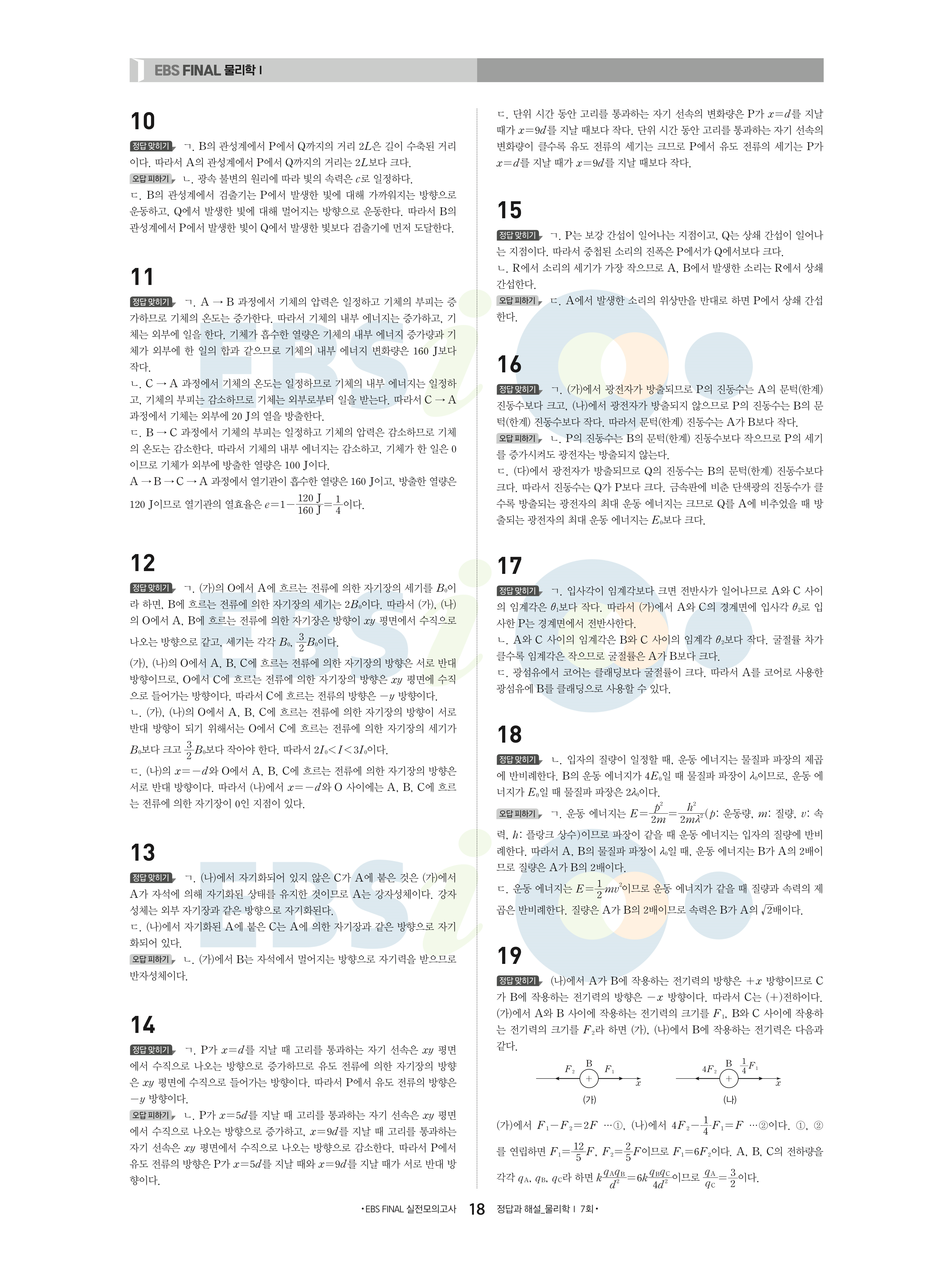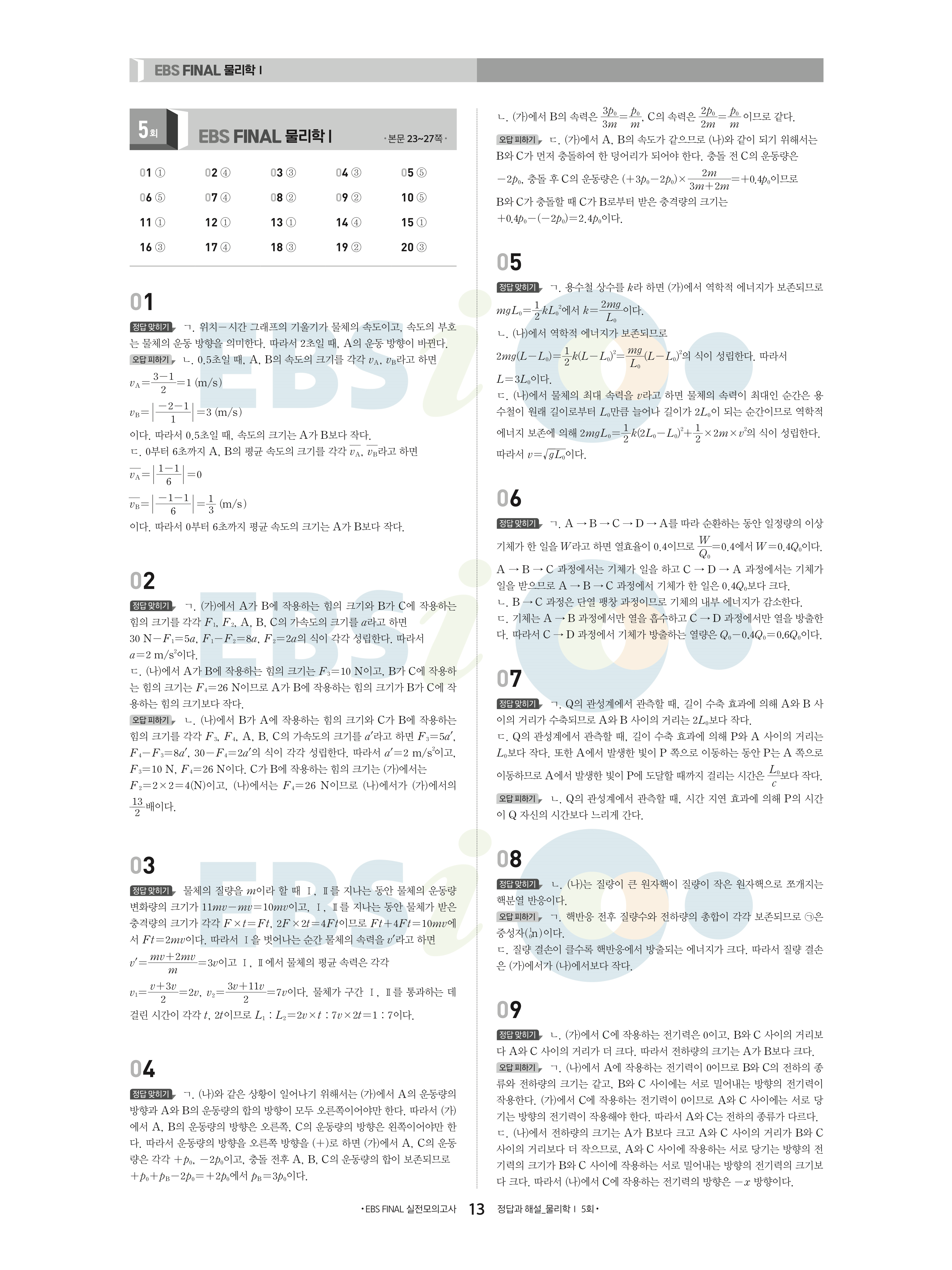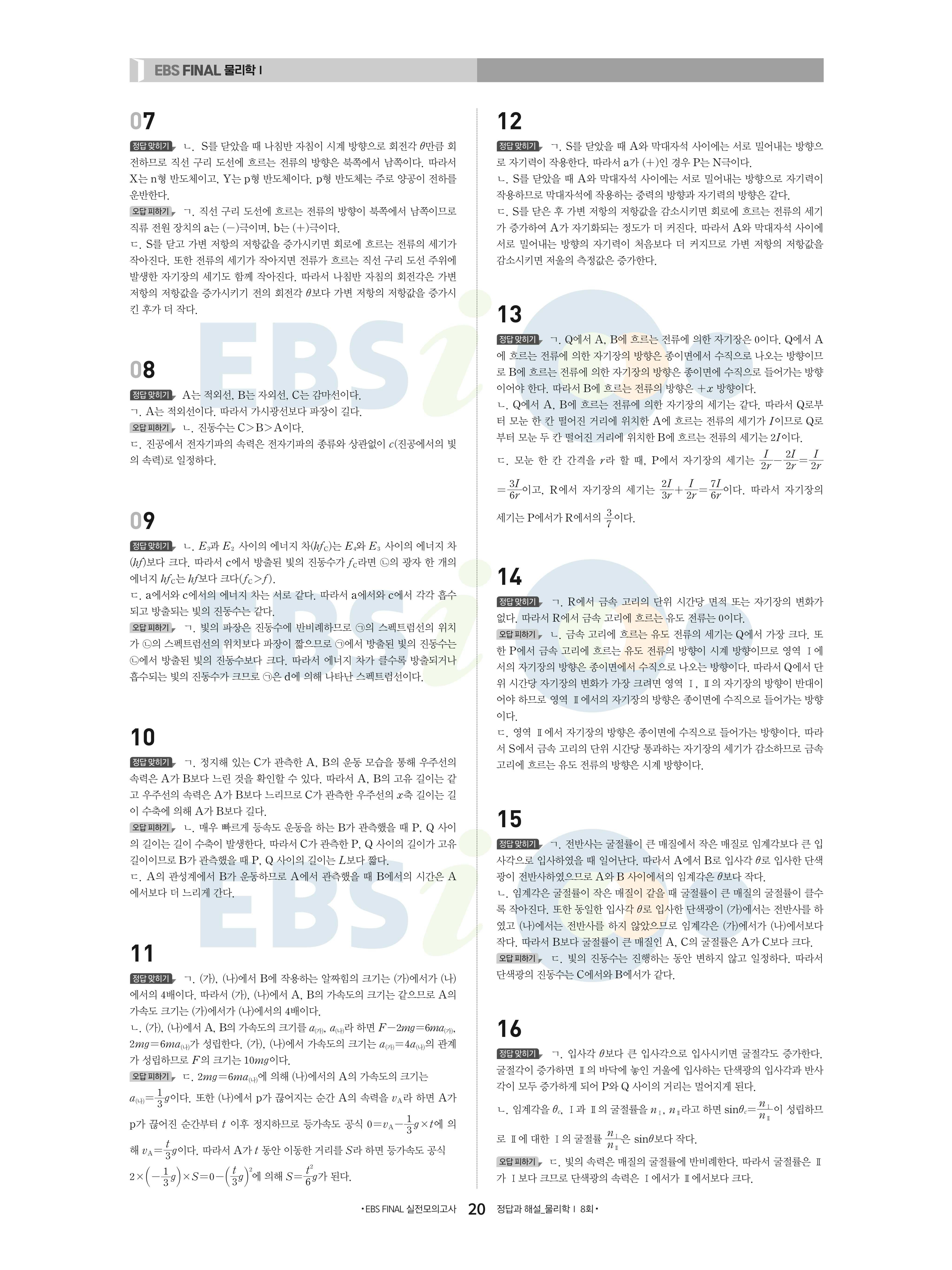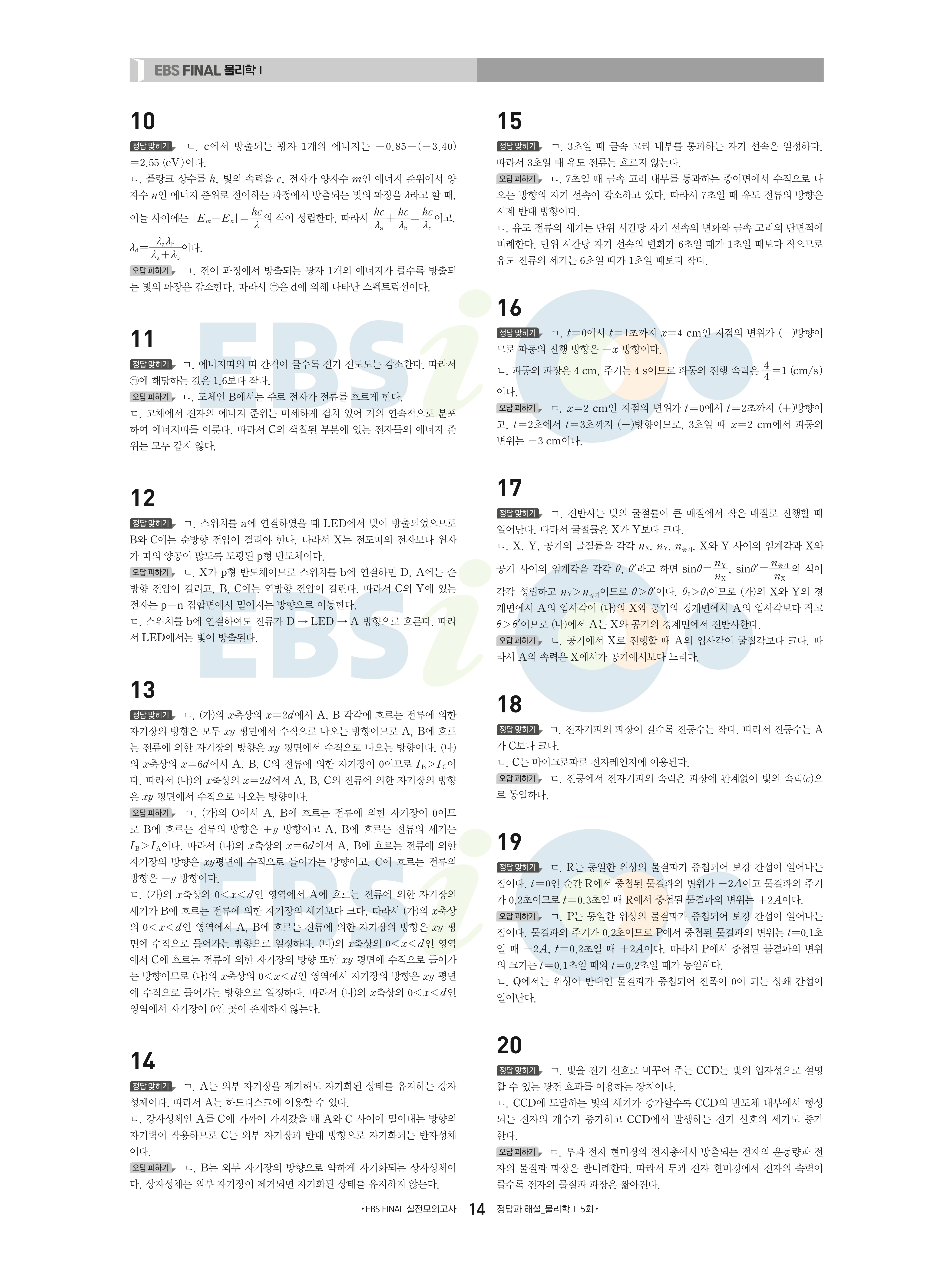 2022 EBS 파이널 실전모의고사 물리학1 답지 해설 사진답지 모바일최적화