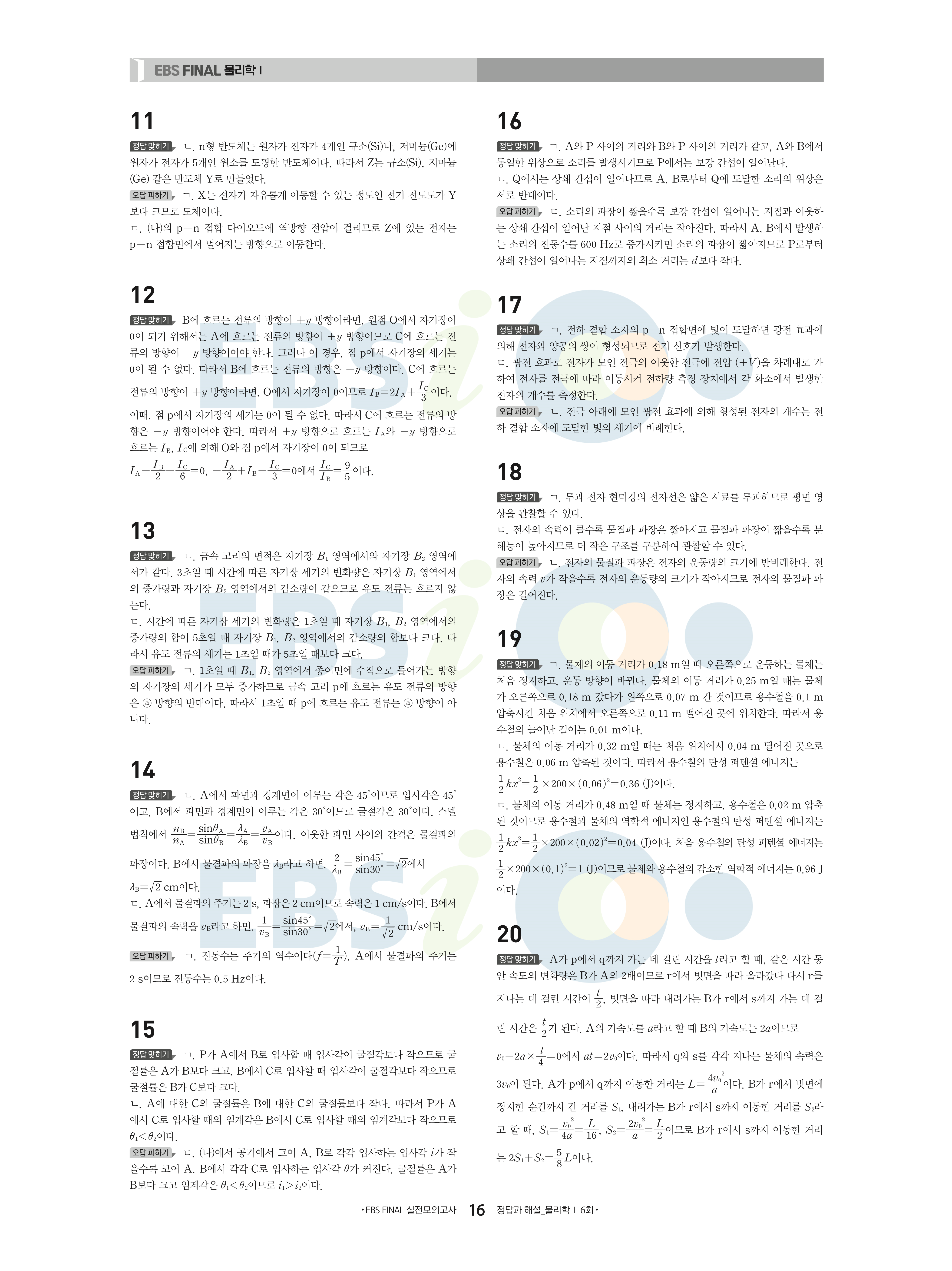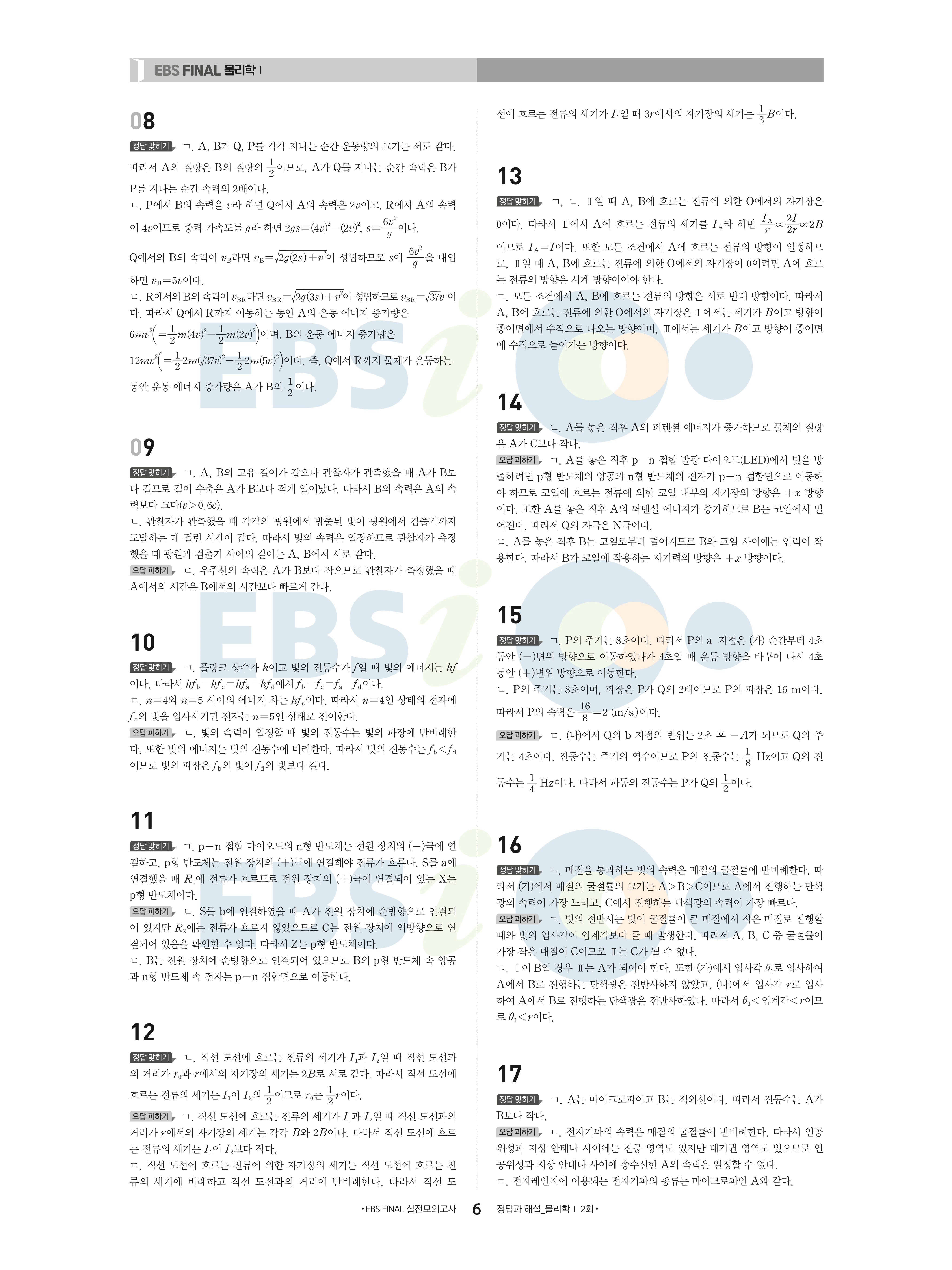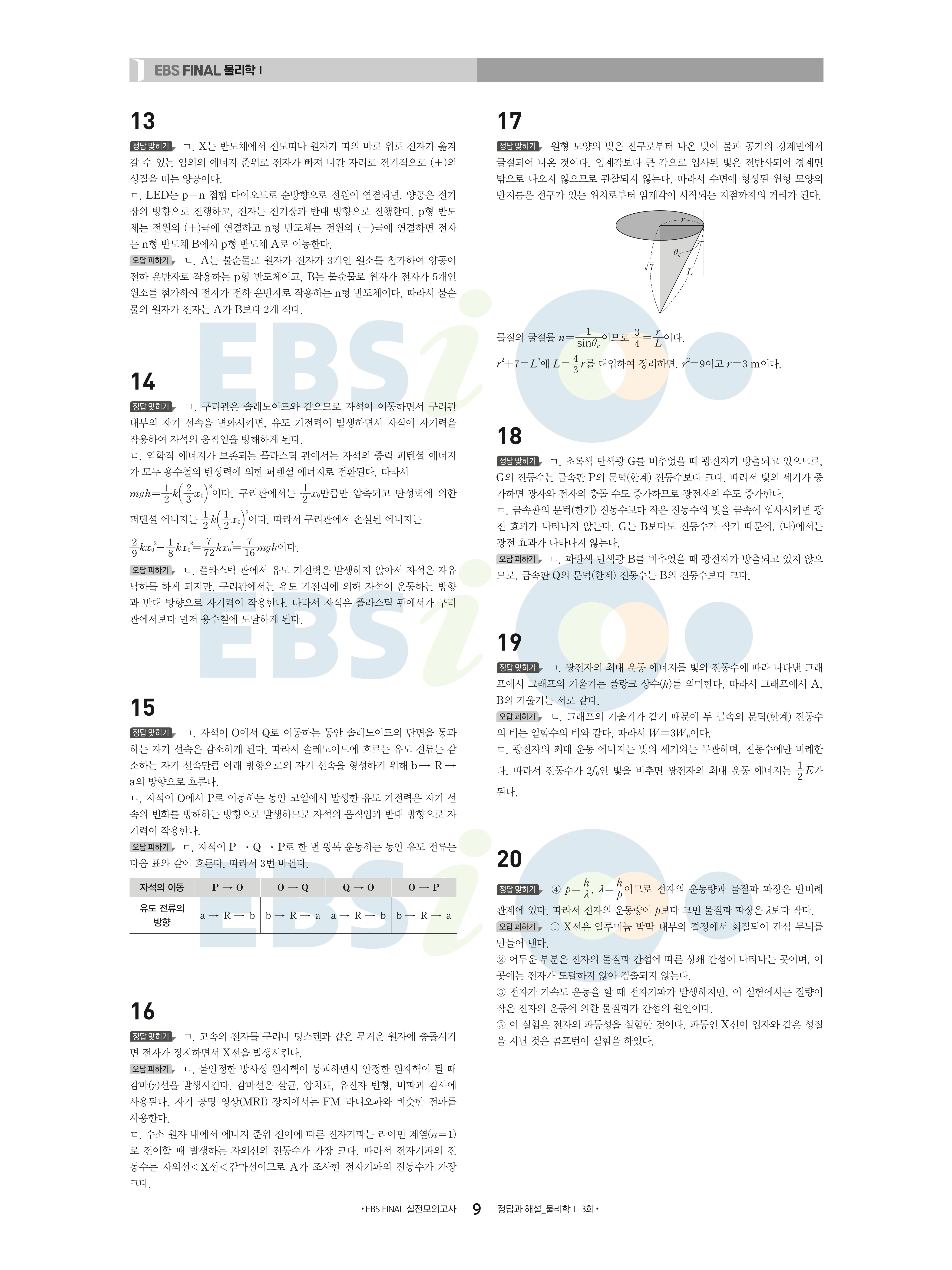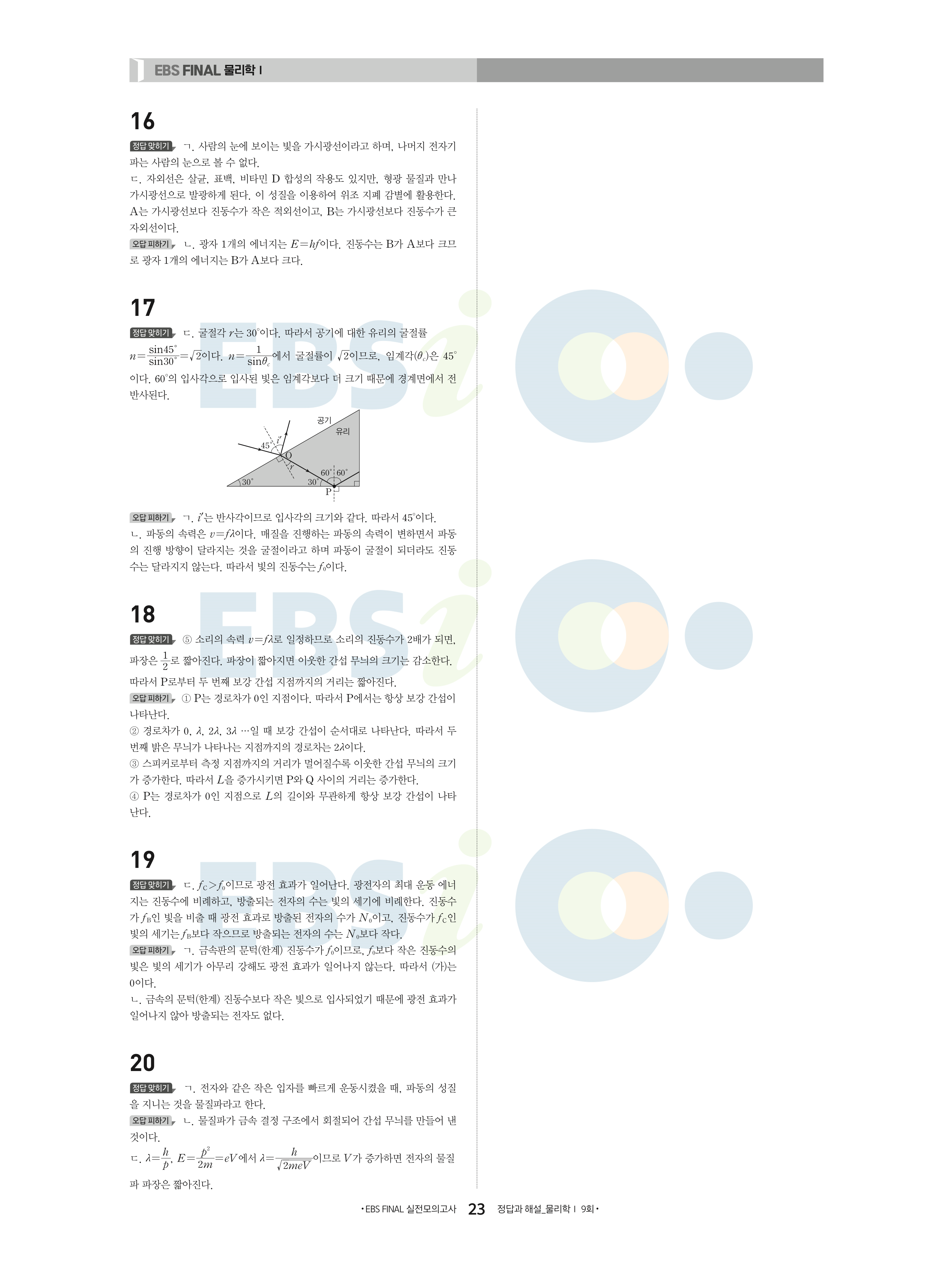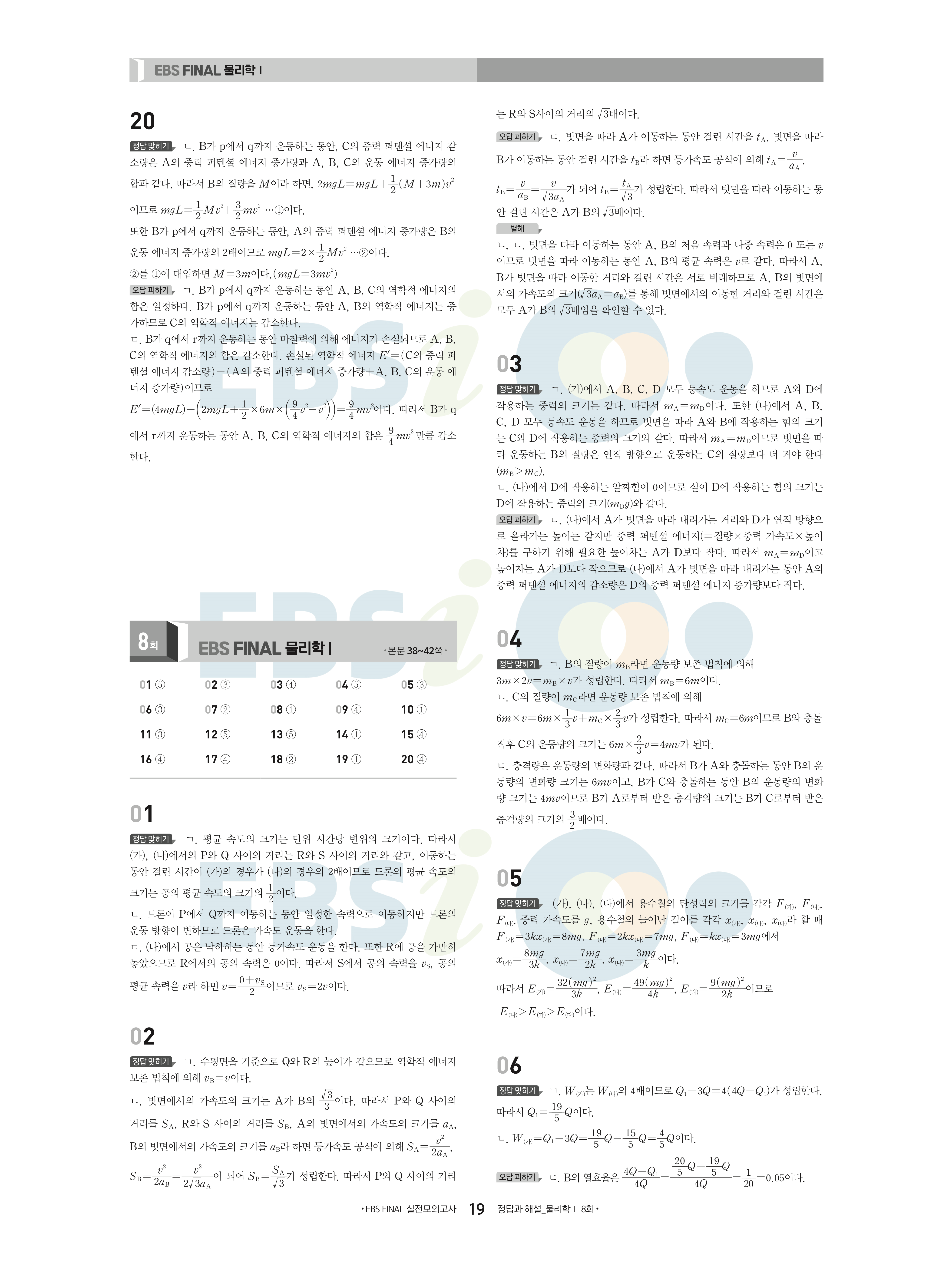 2022 EBS 파이널 실전모의고사 물리학1 답지 해설 사진답지 모바일최적화