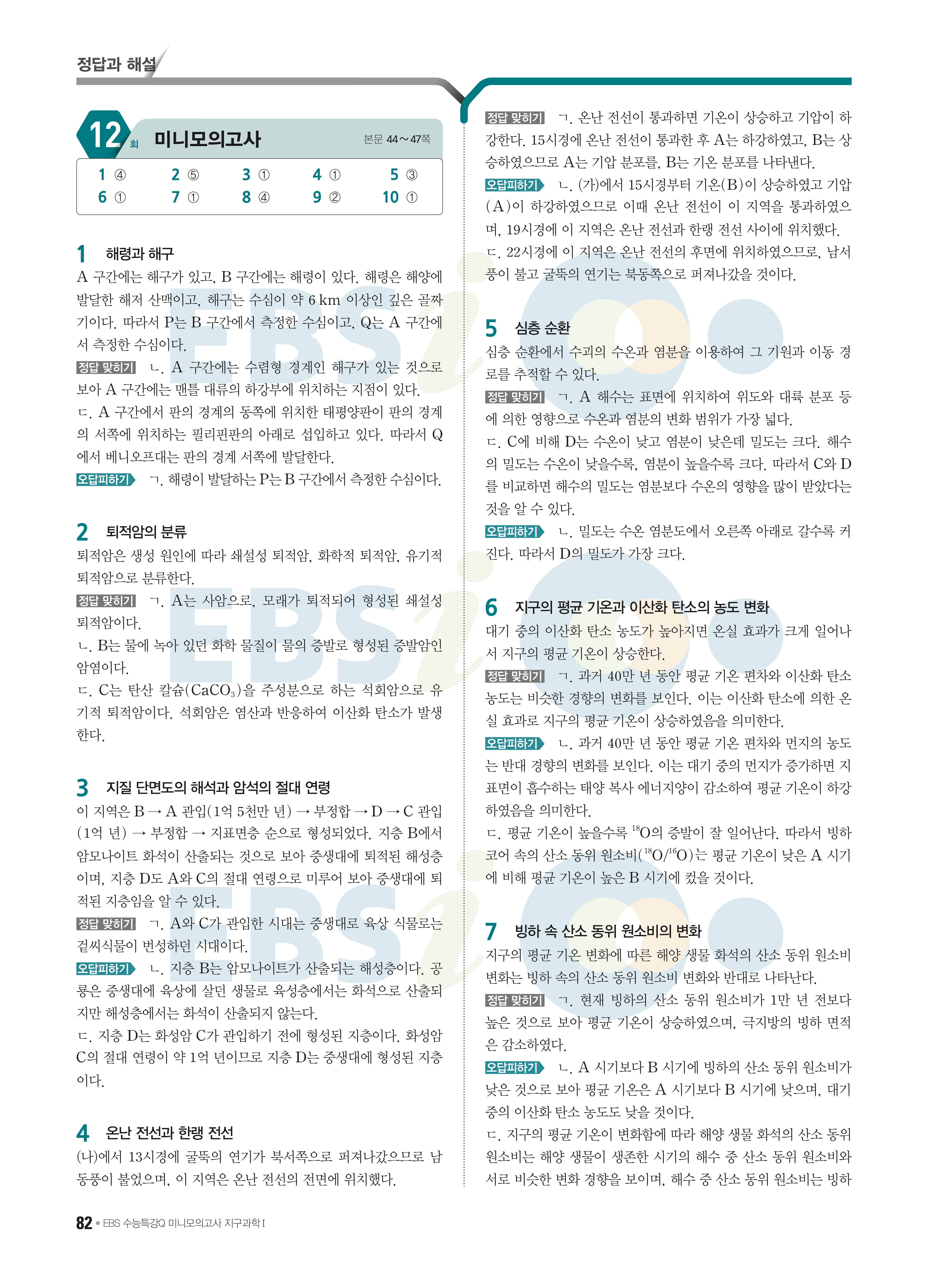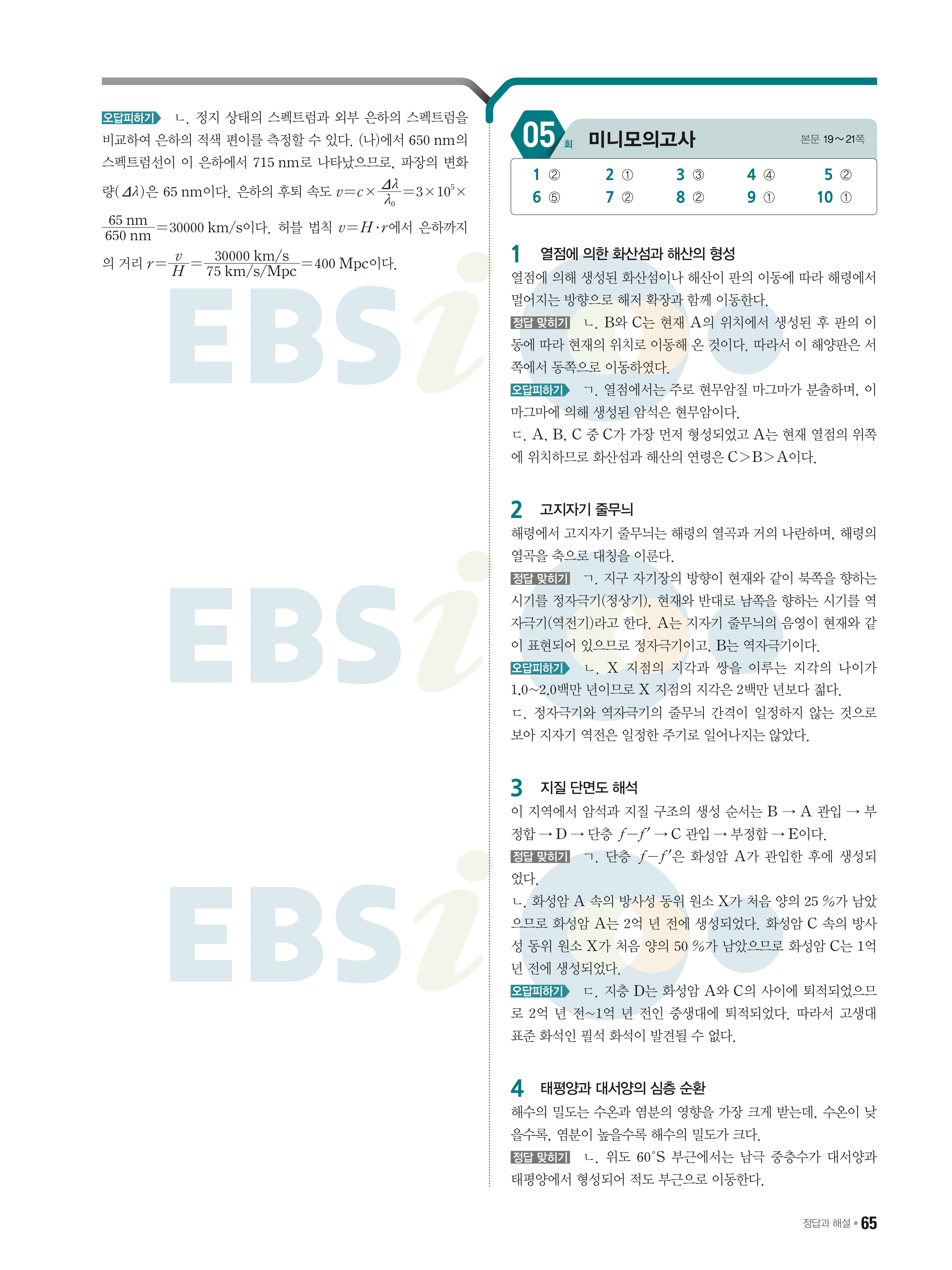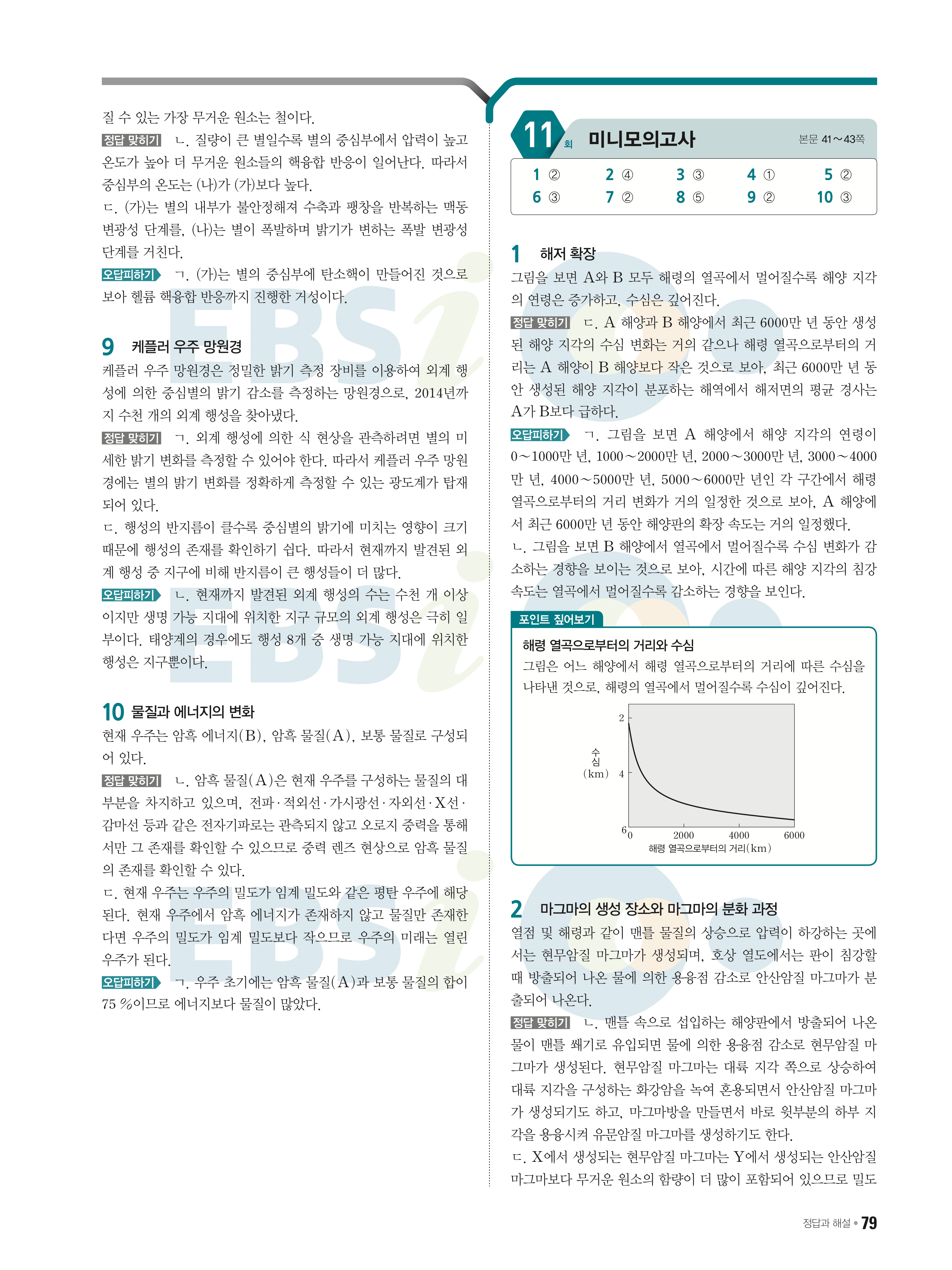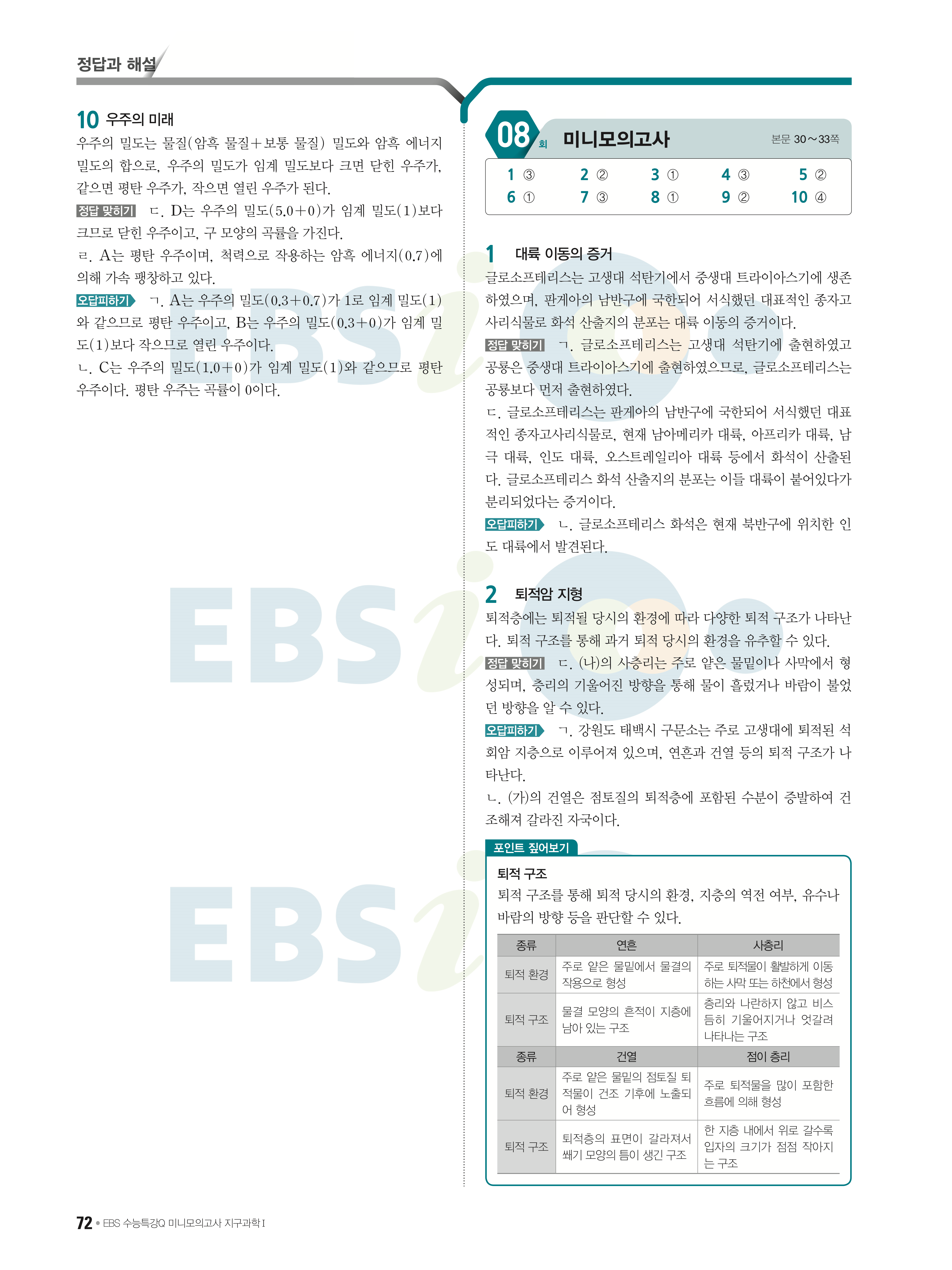 2022 EBS 수능특강큐 미니모의고사 지구과학1 답지 해설 사진답지 모바일최적화