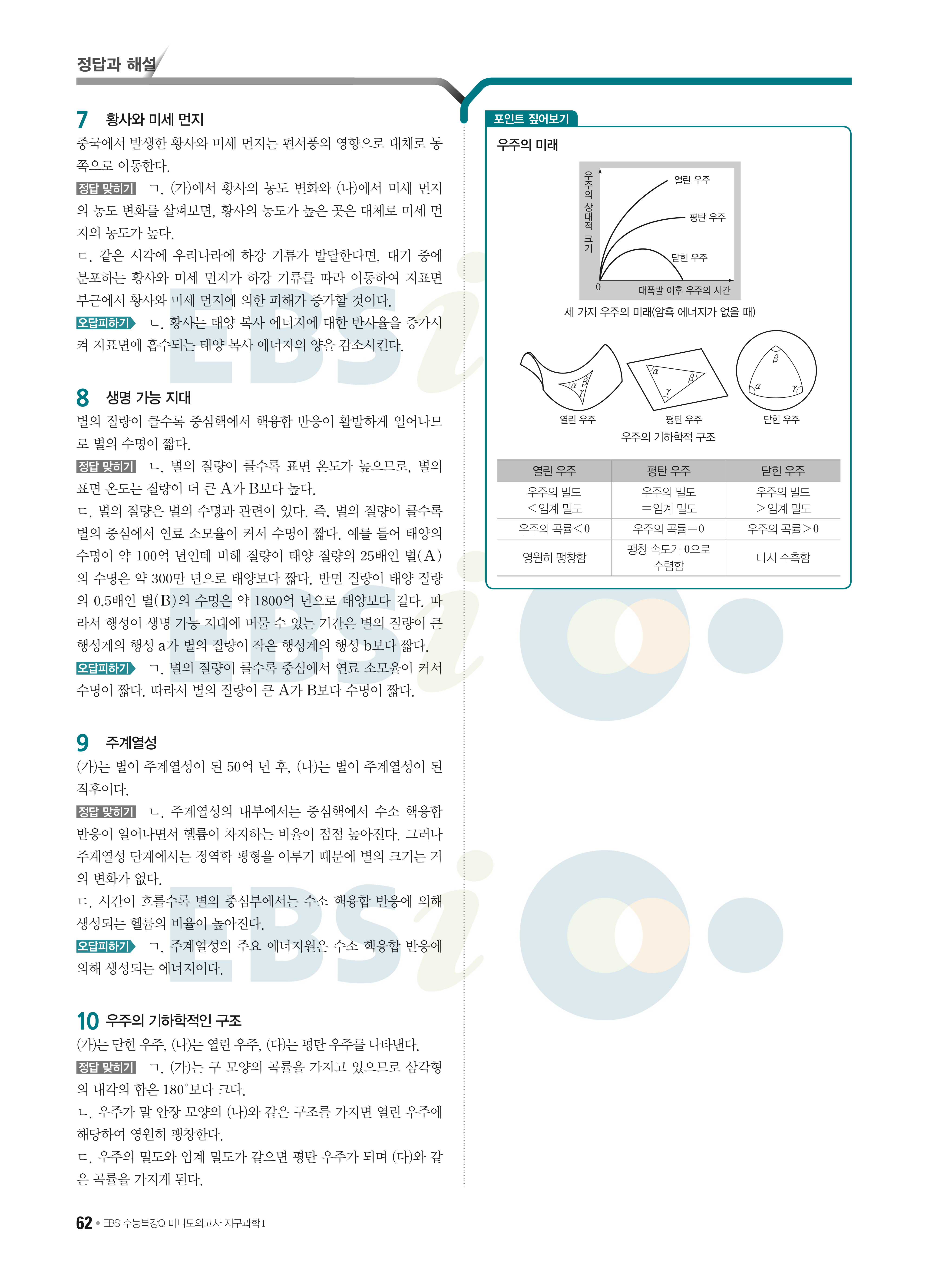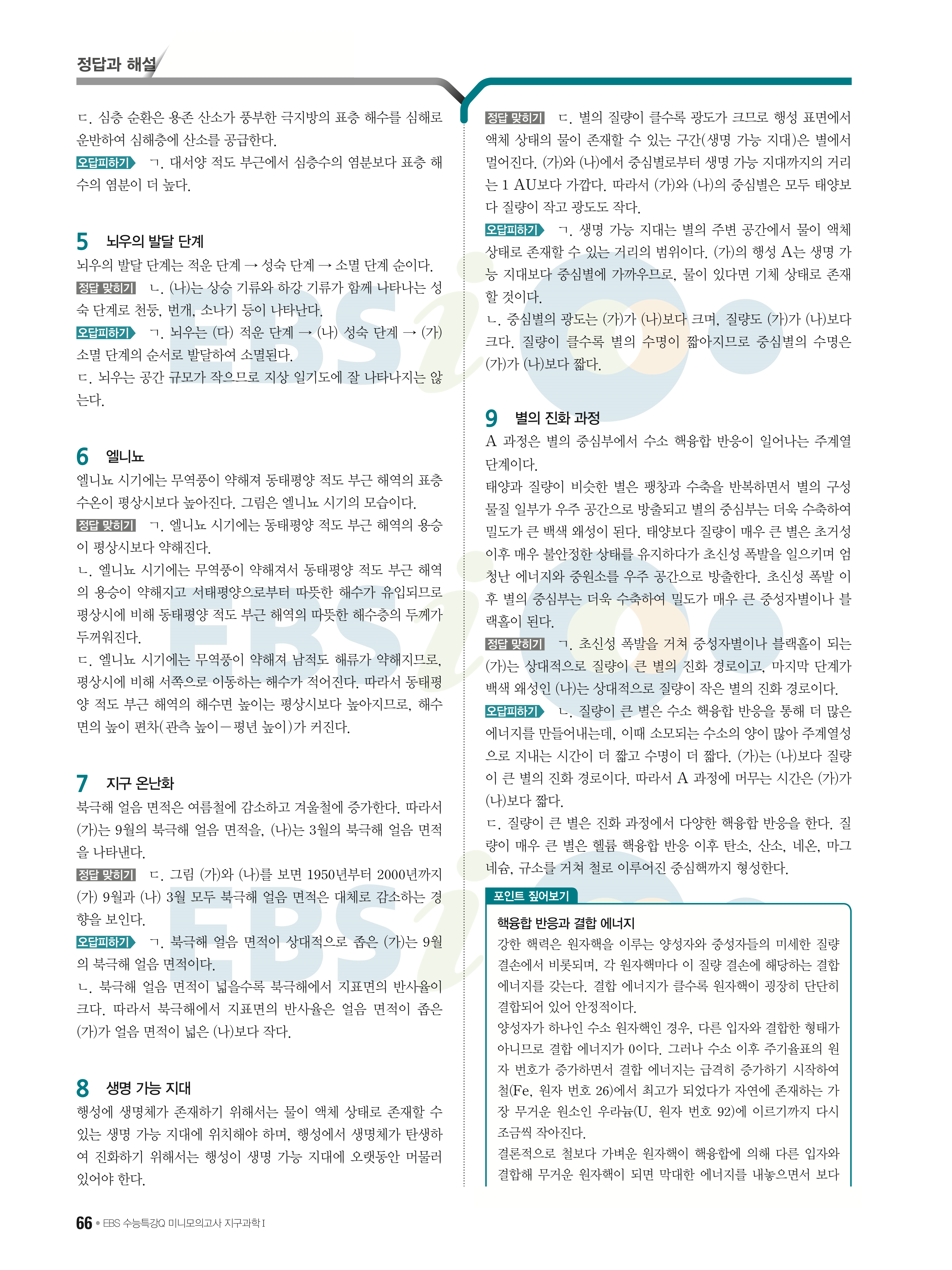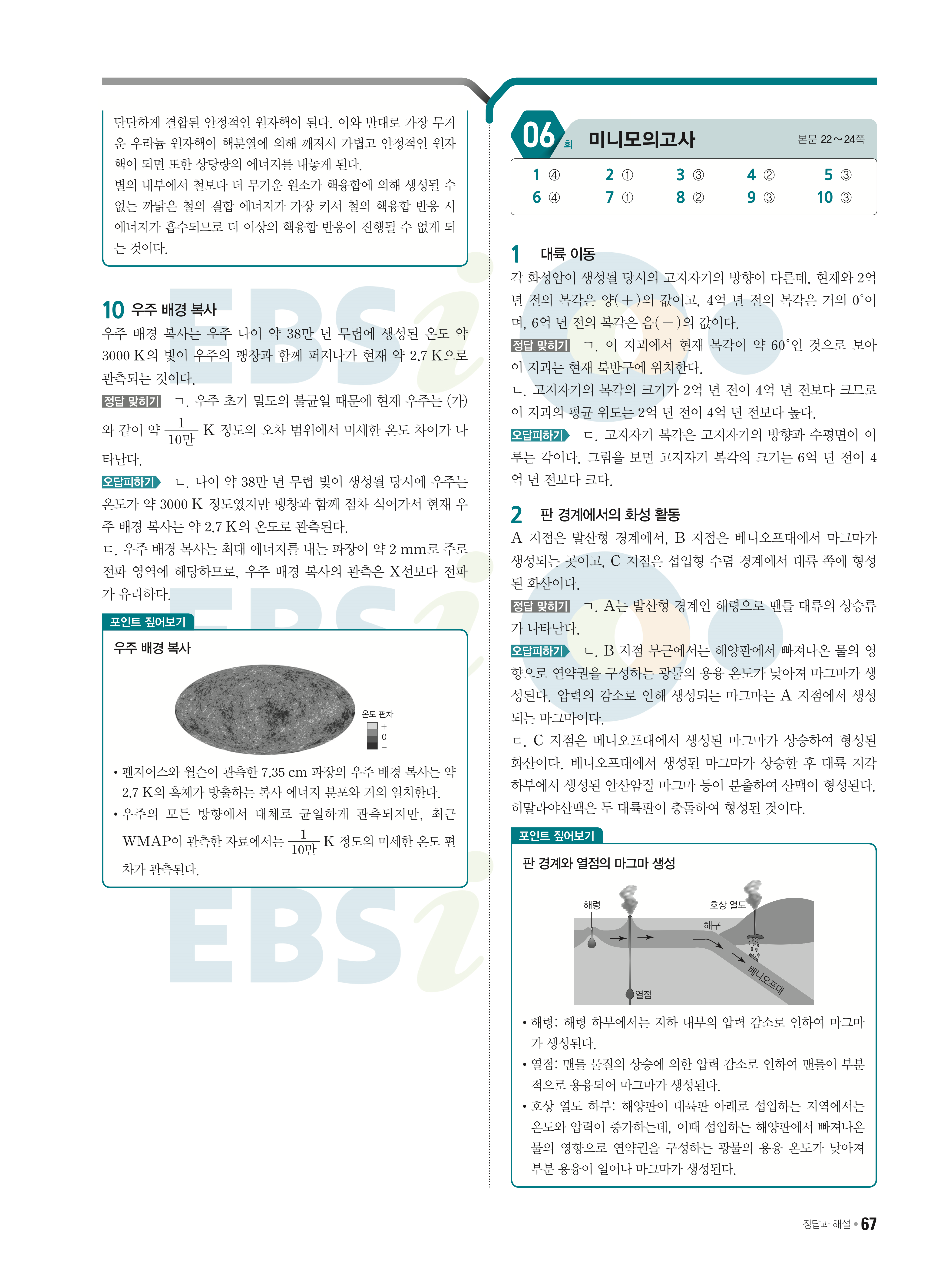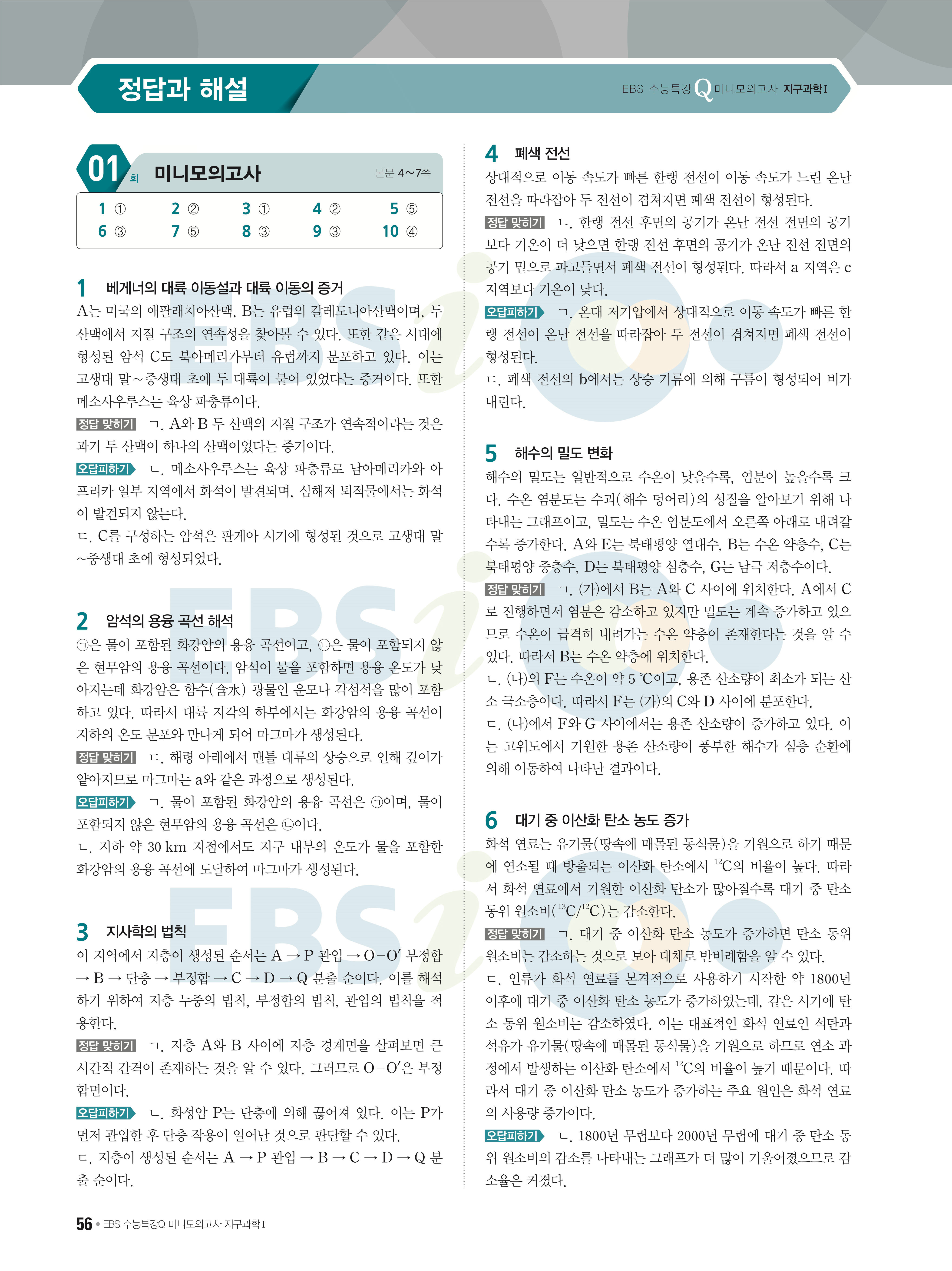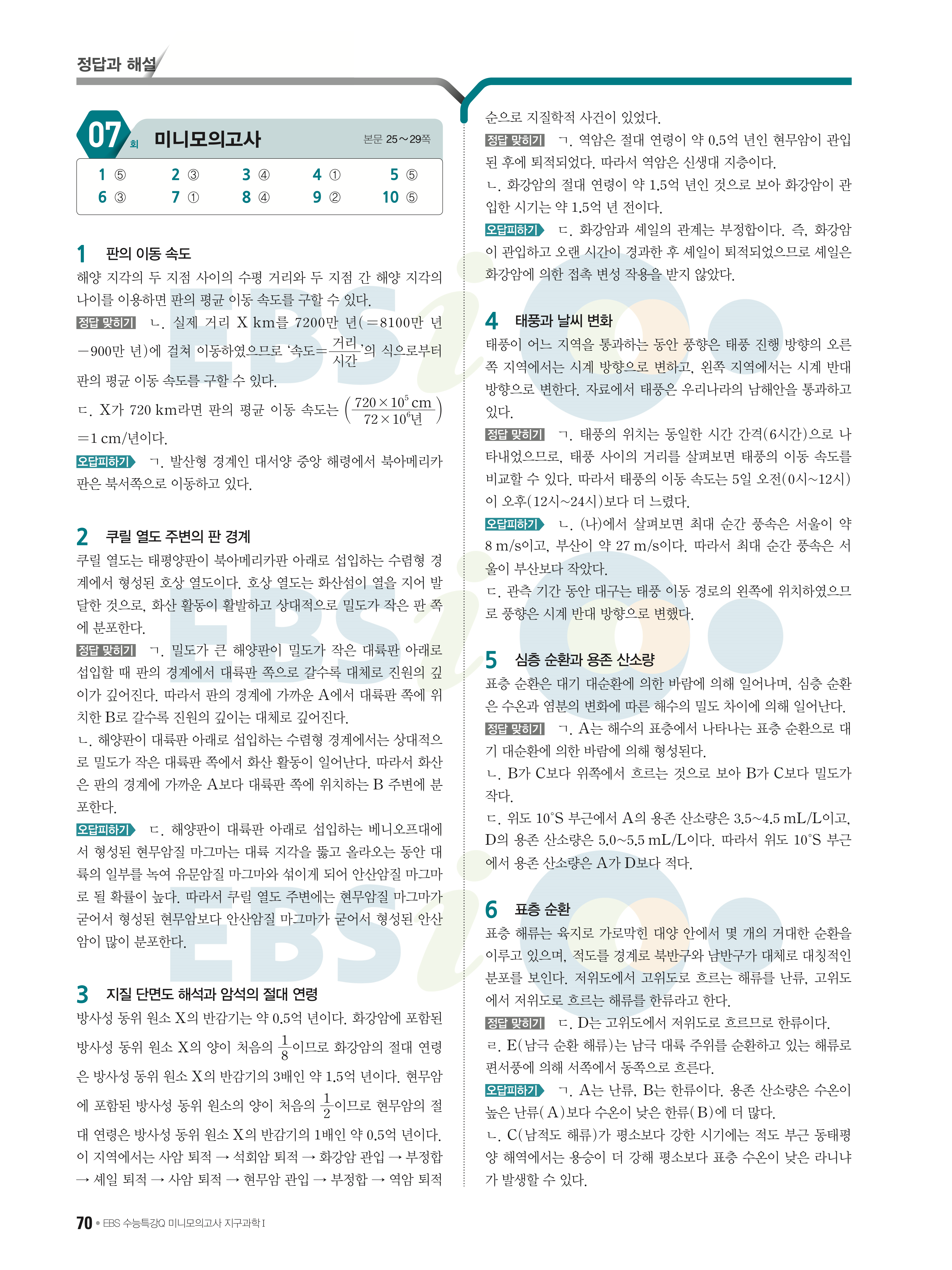 2022 EBS 수능특강큐 미니모의고사 지구과학1 답지 해설 사진답지 모바일최적화