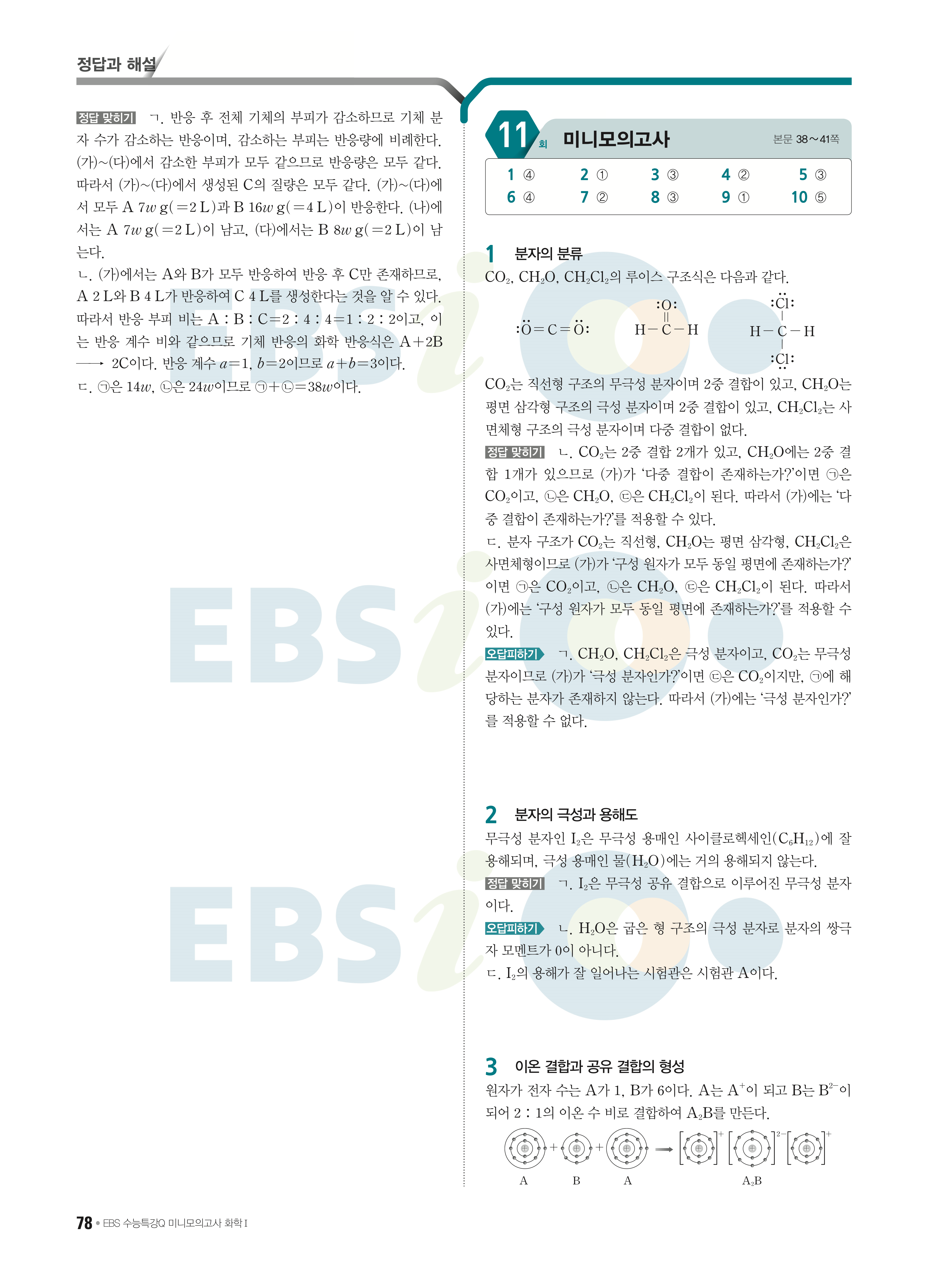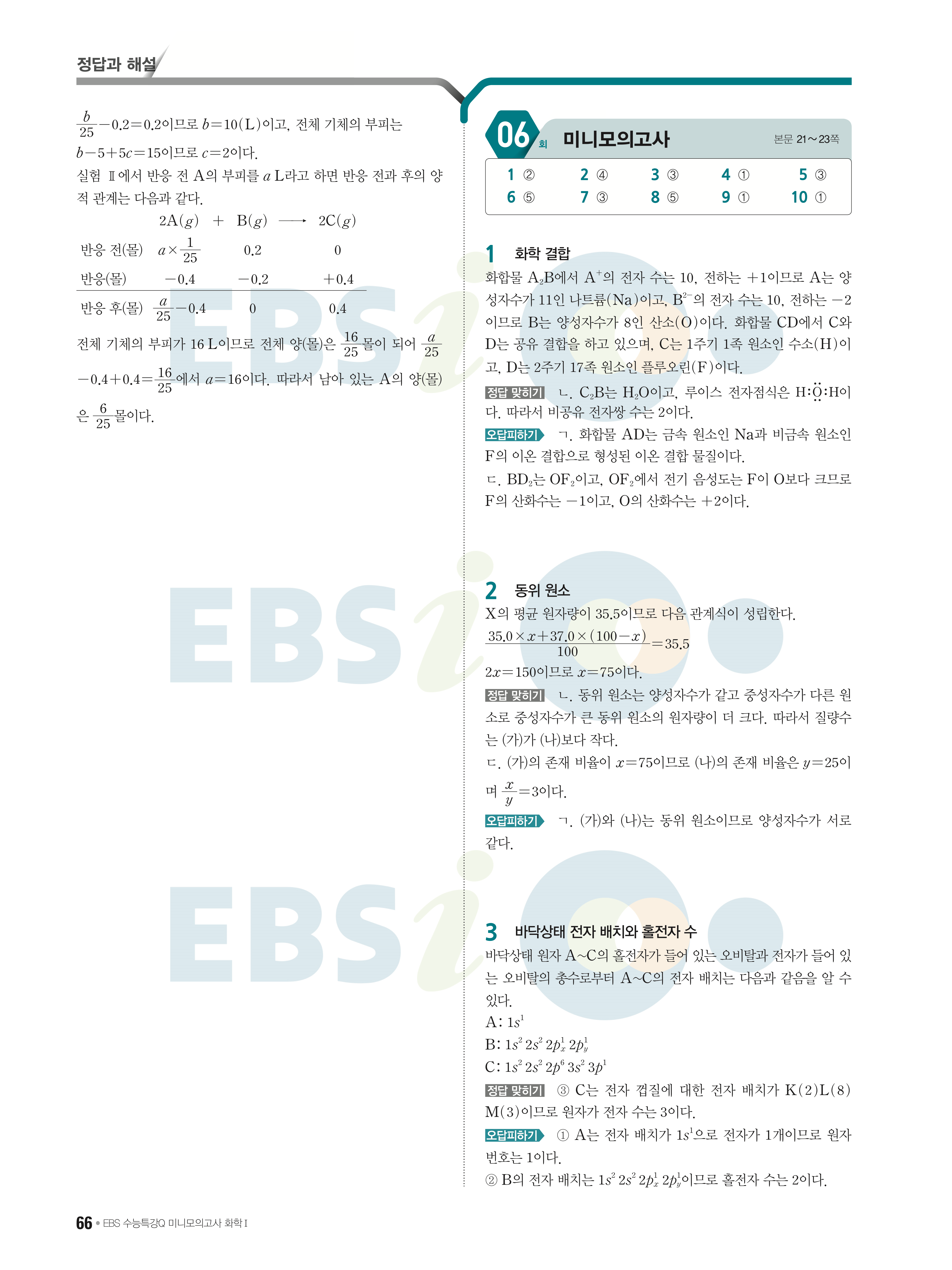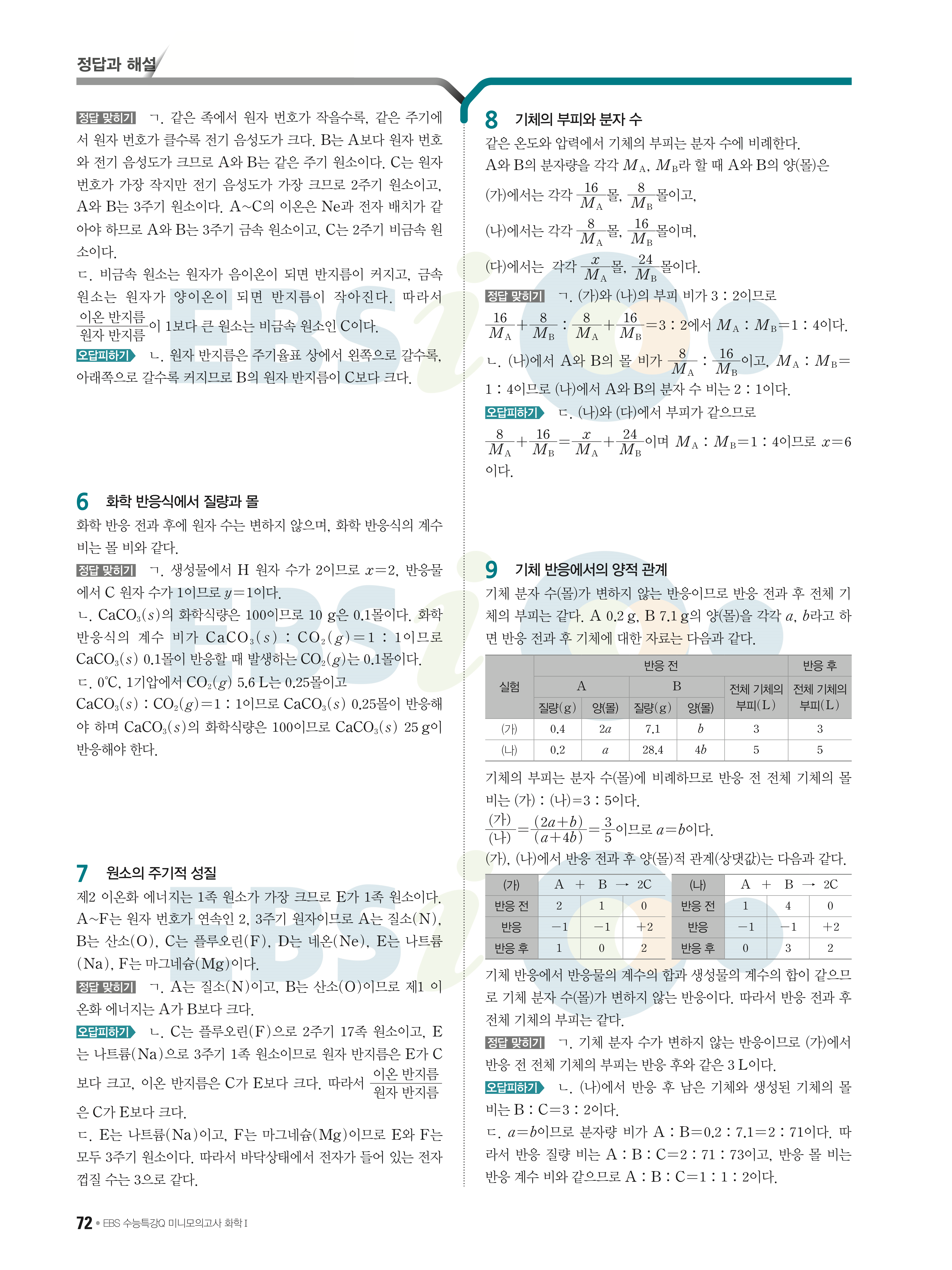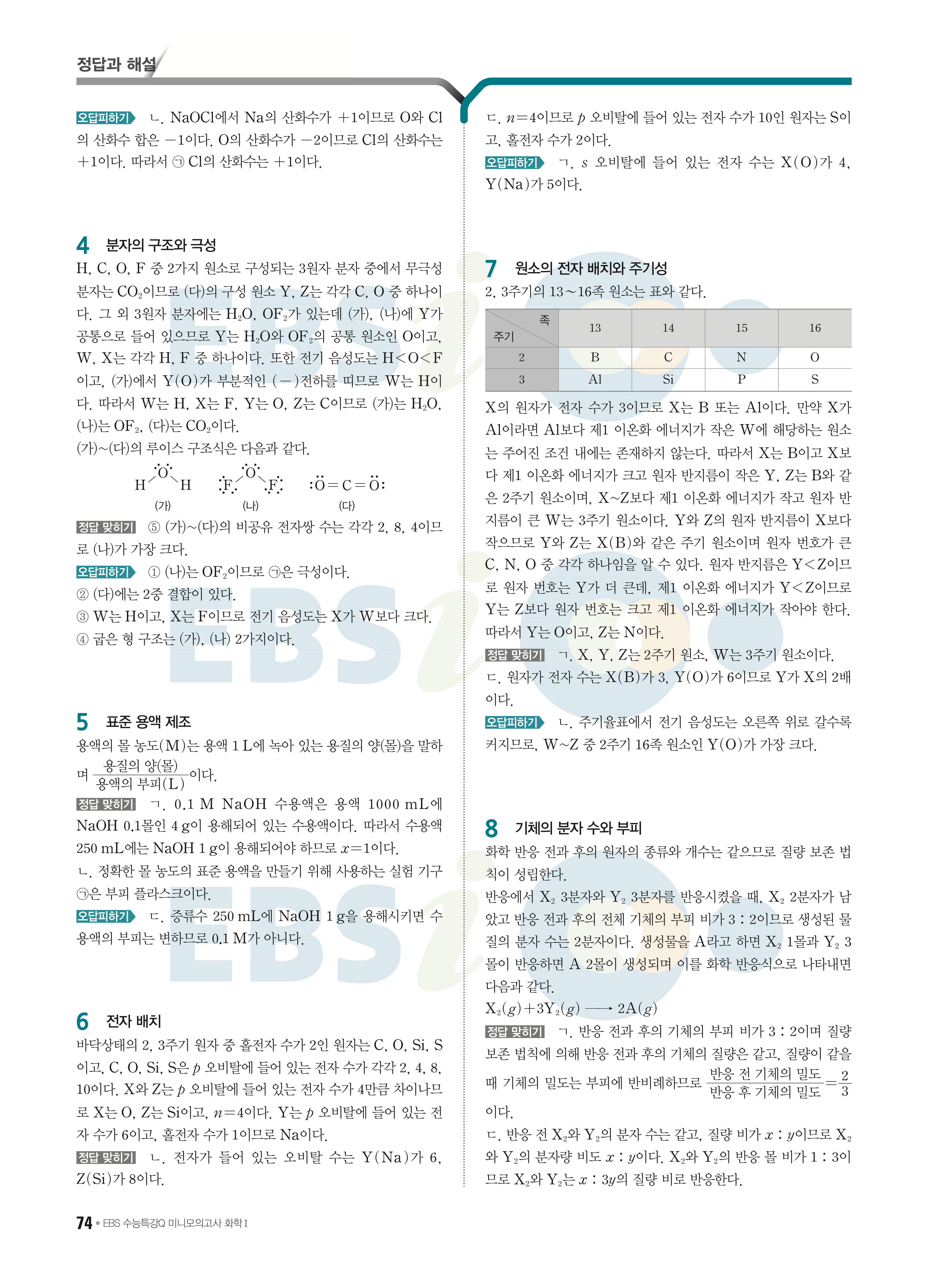2022 EBS 수능특강큐 미니모의고사 화학1 답지 해설 사진답지 모바일최적화