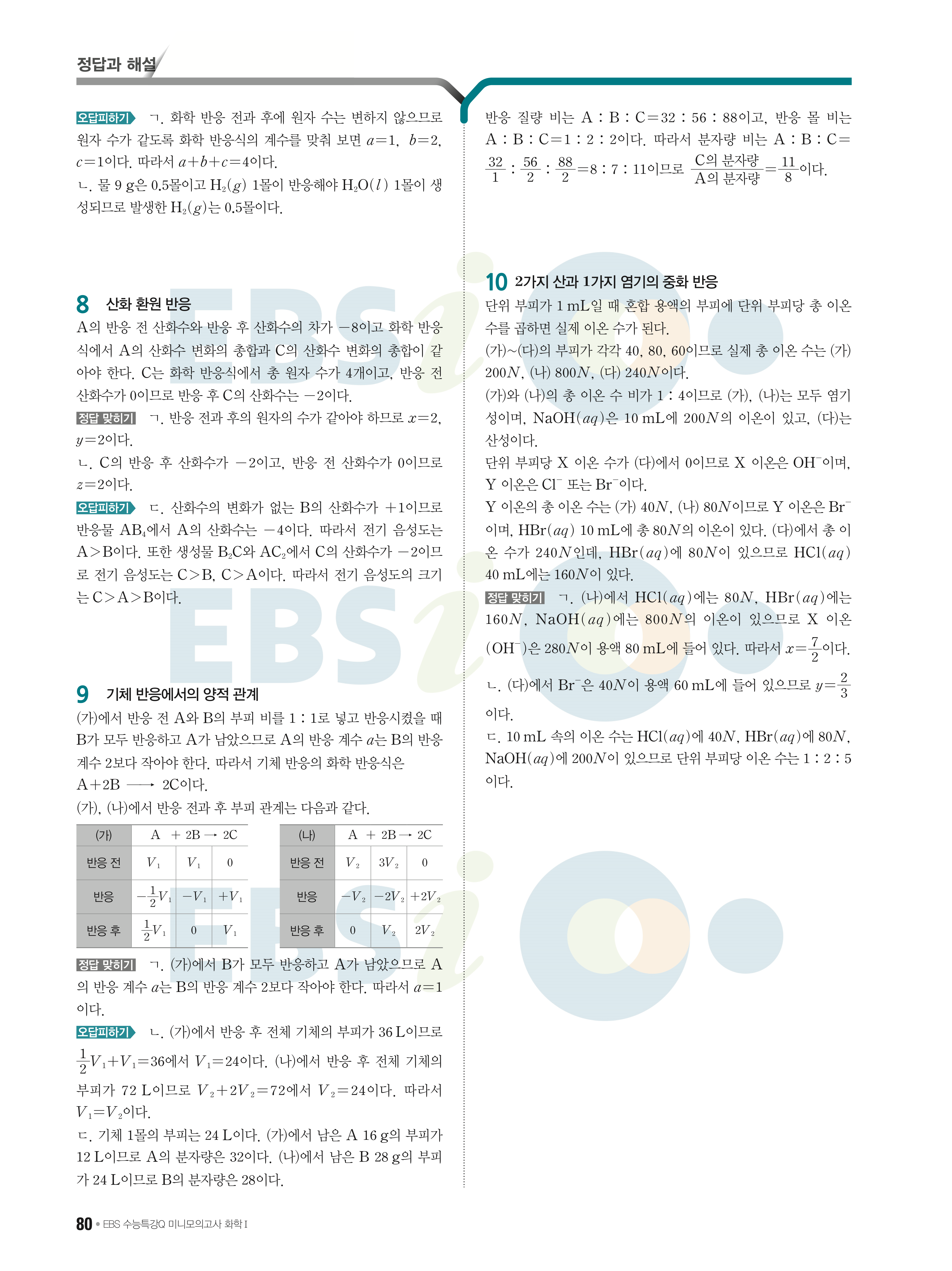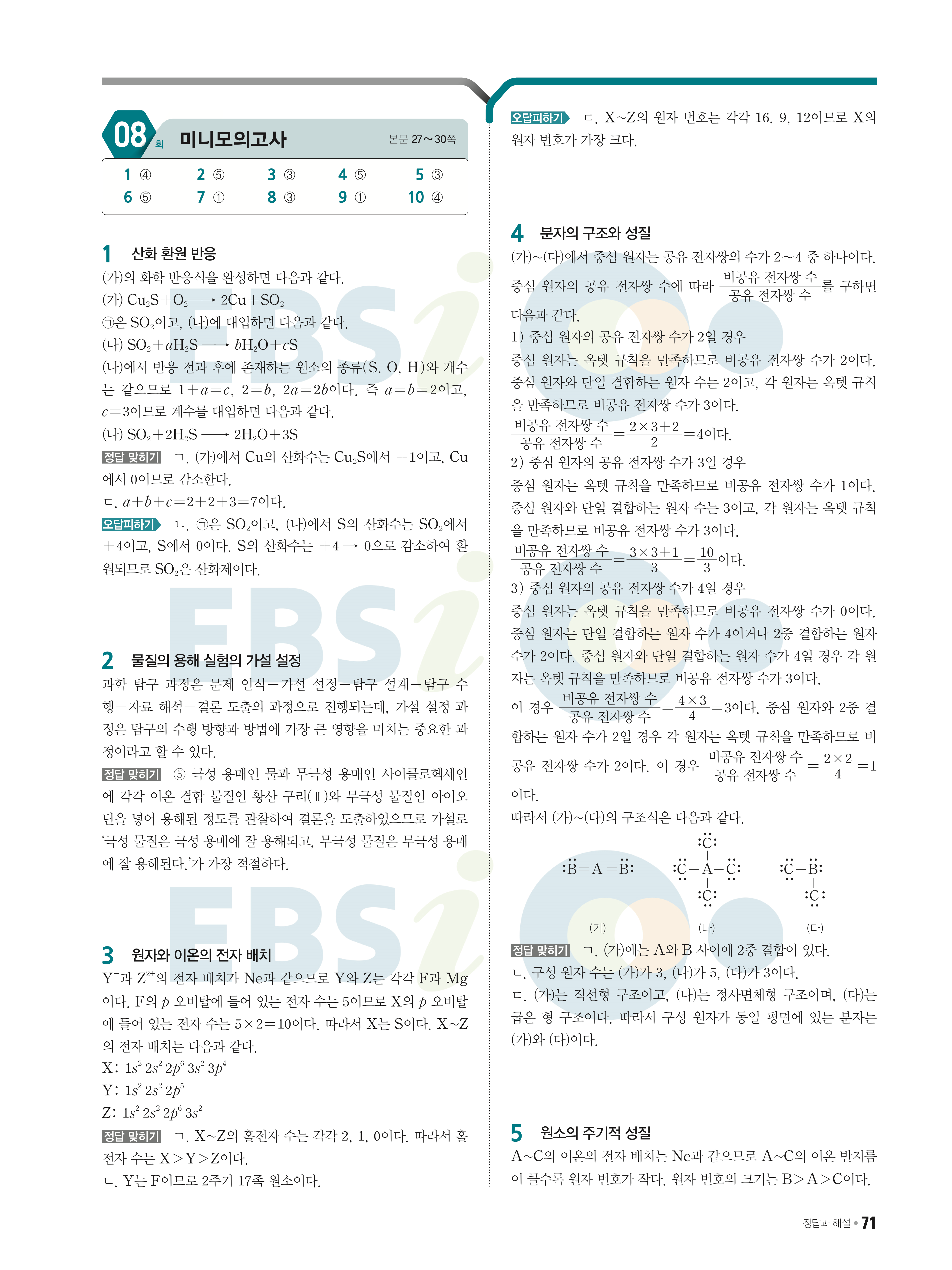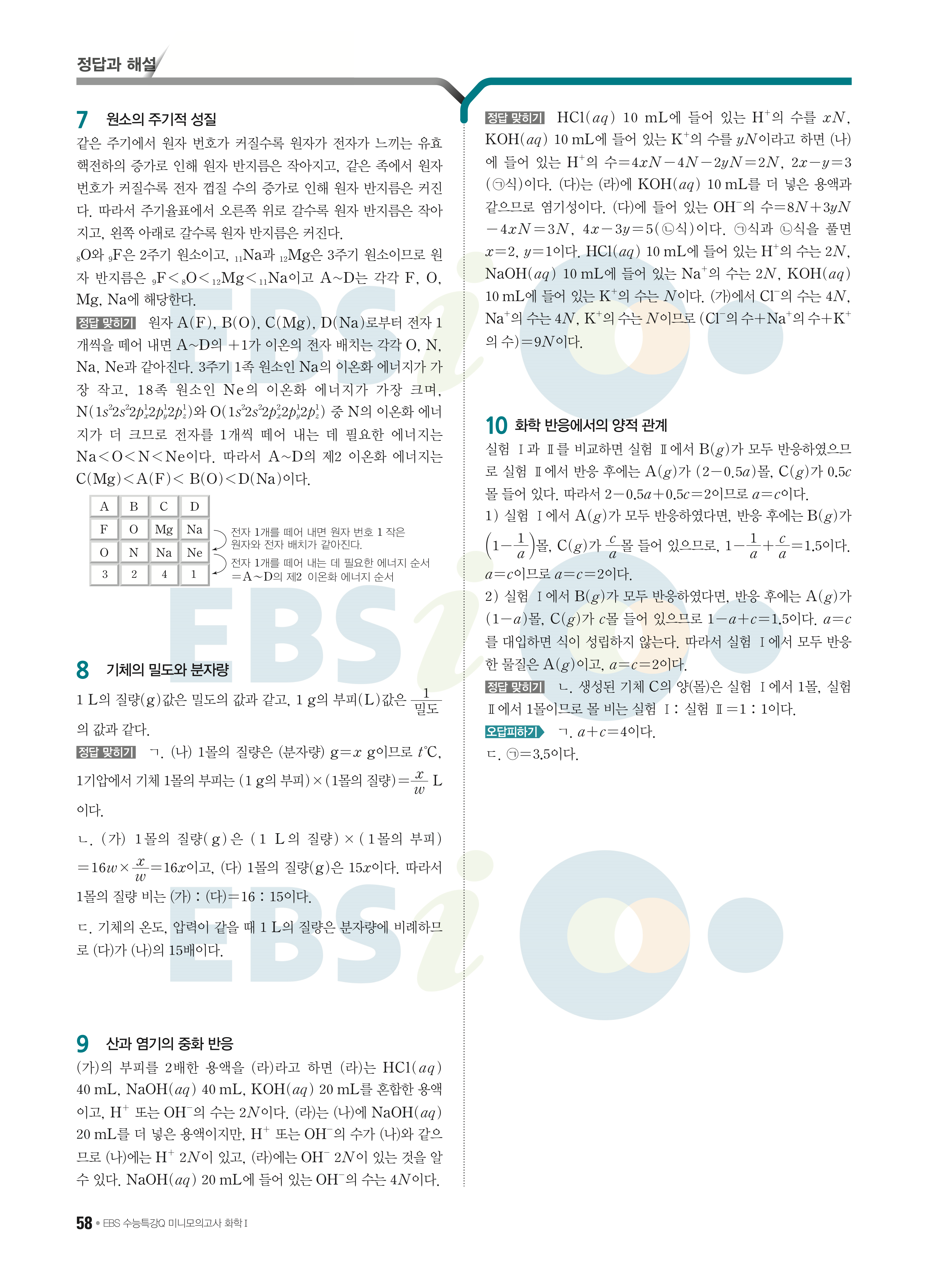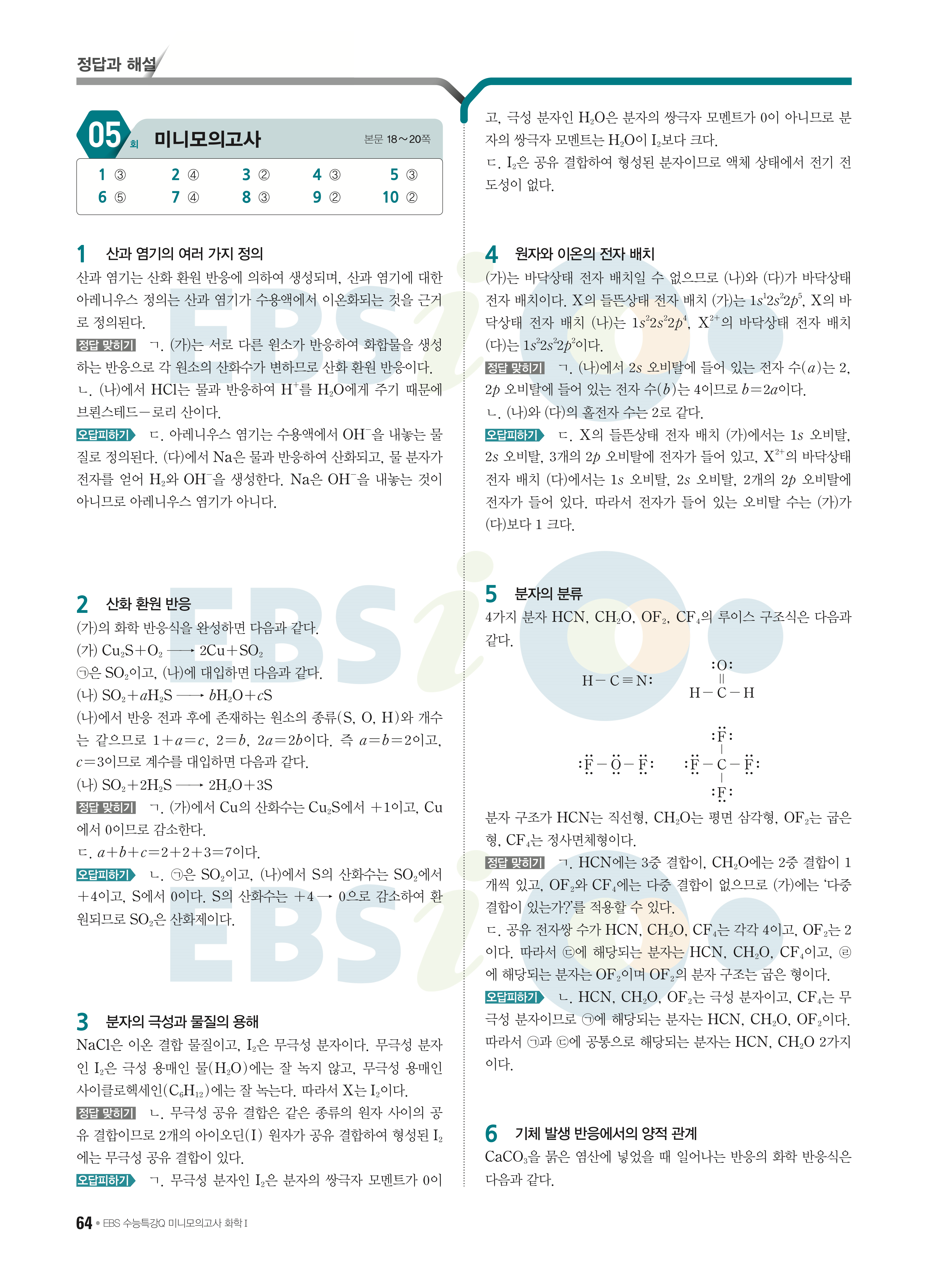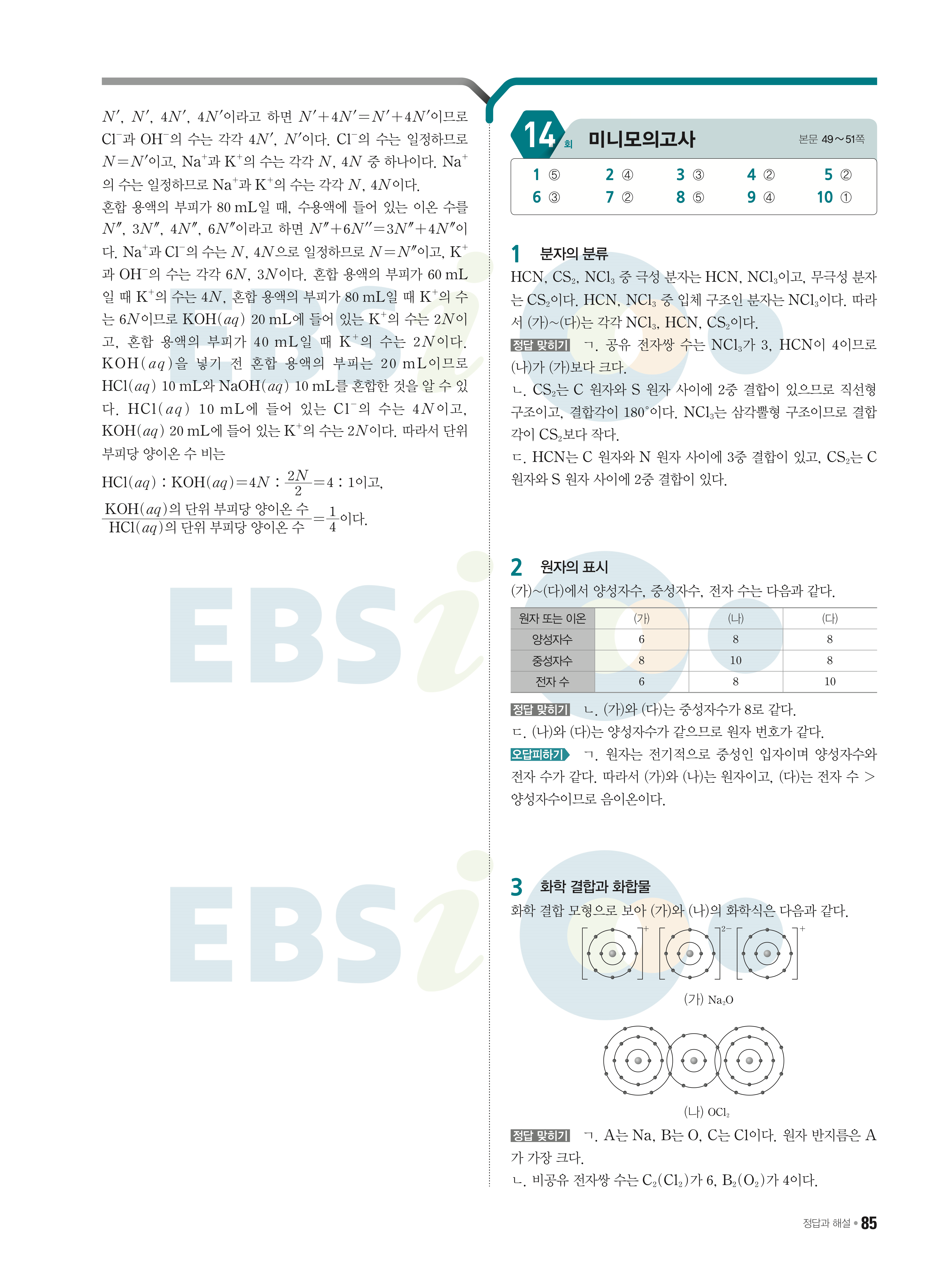 2022 EBS 수능특강큐 미니모의고사 화학1 답지 해설 사진답지 모바일최적화