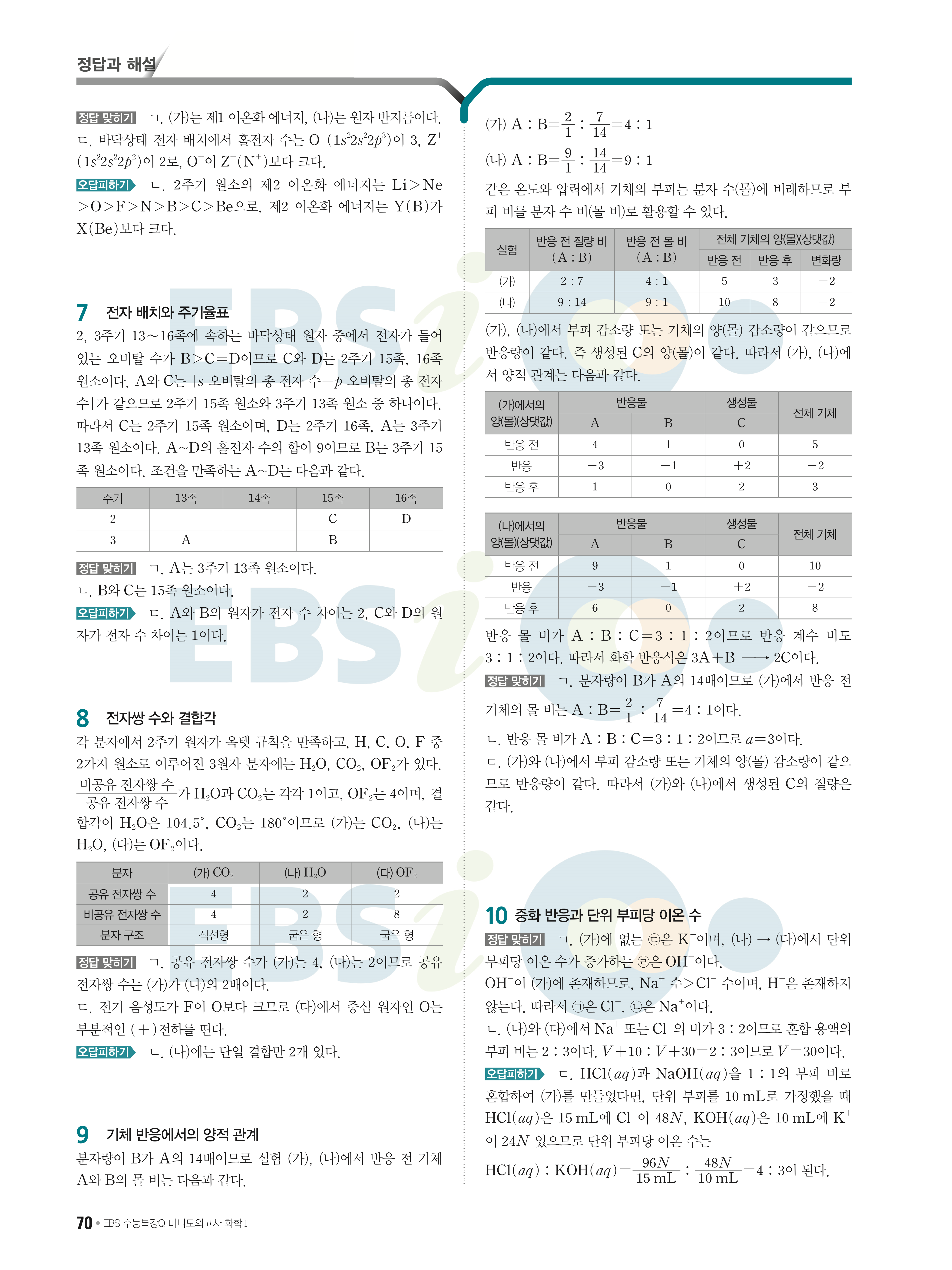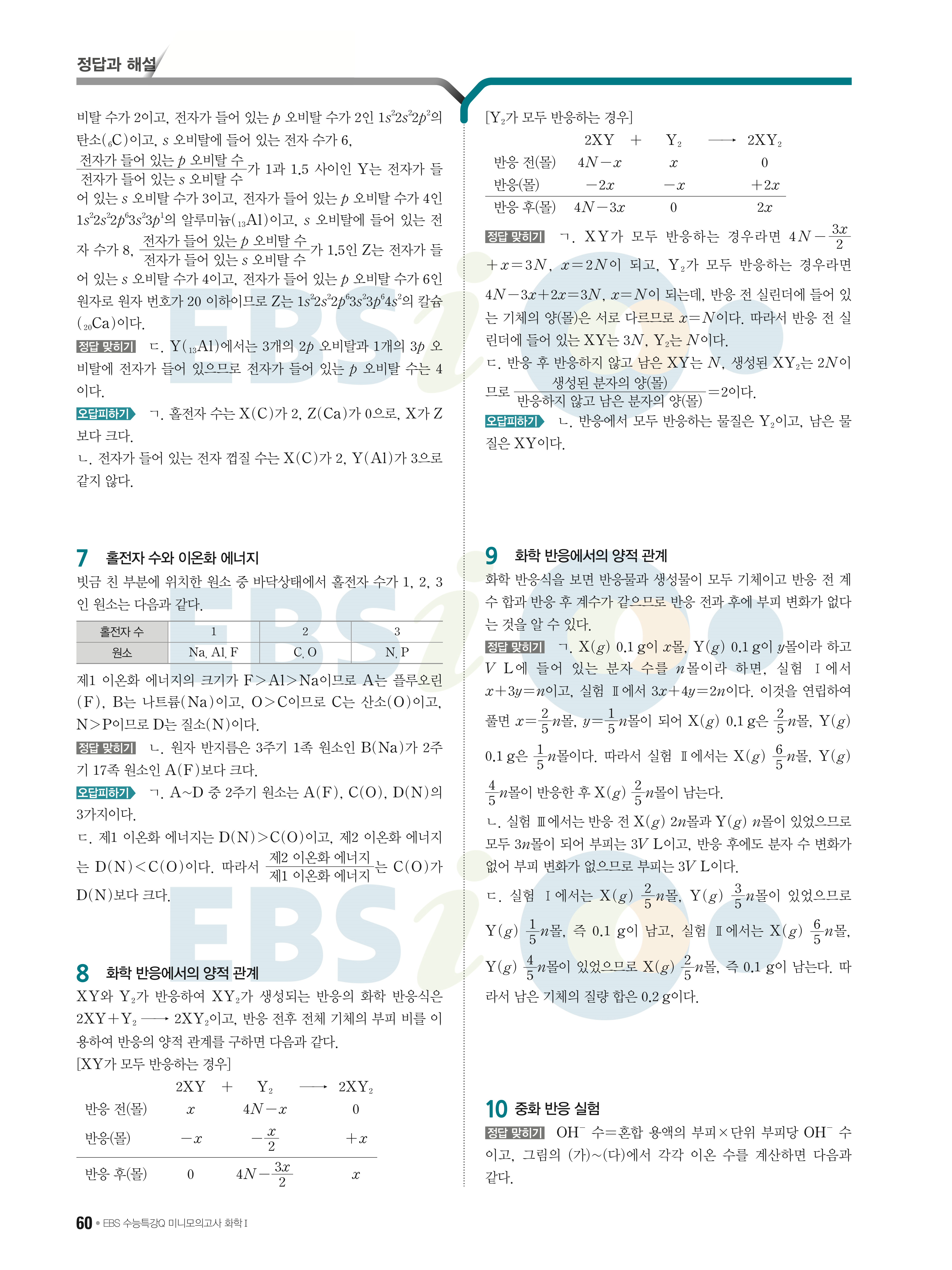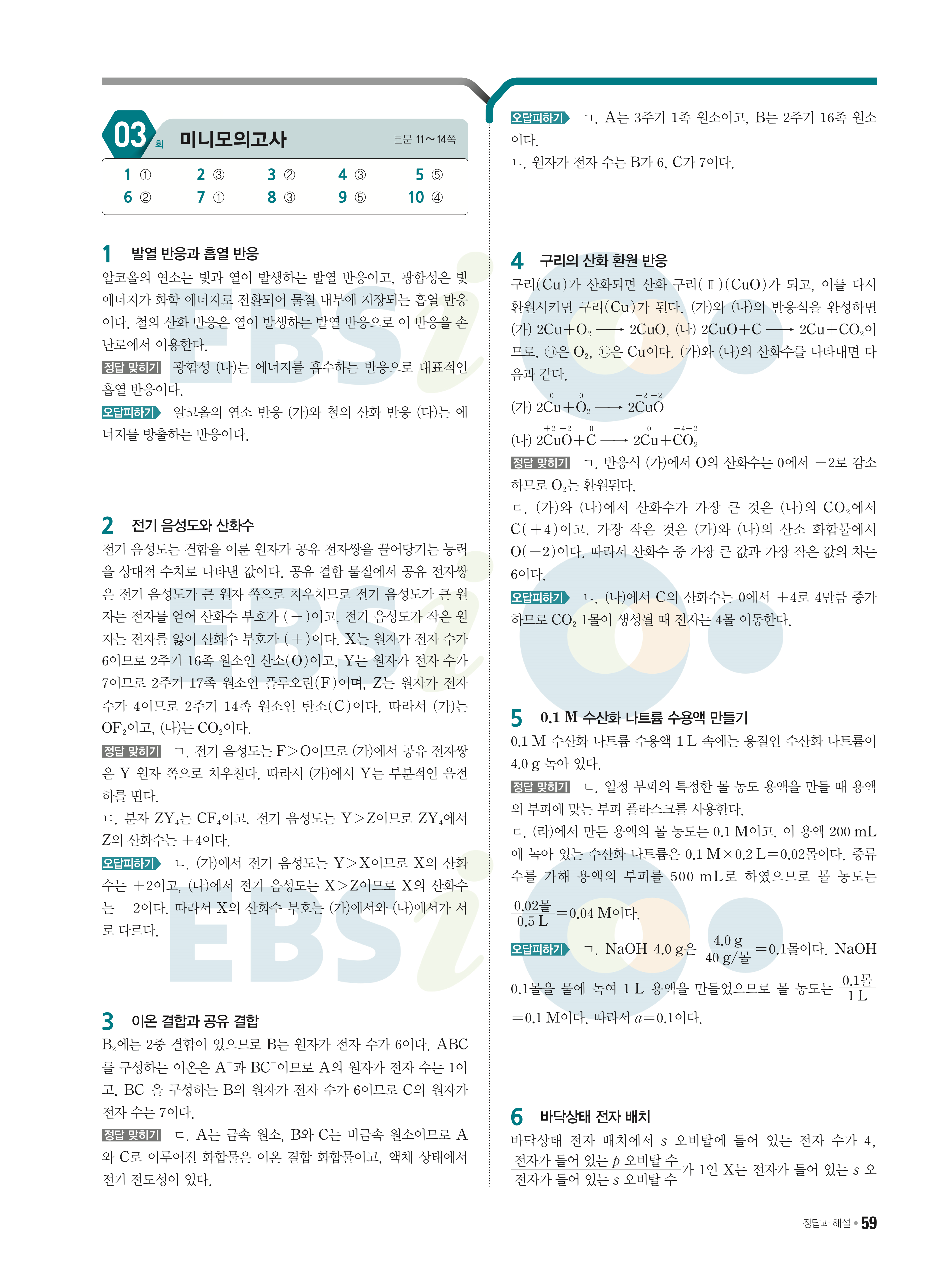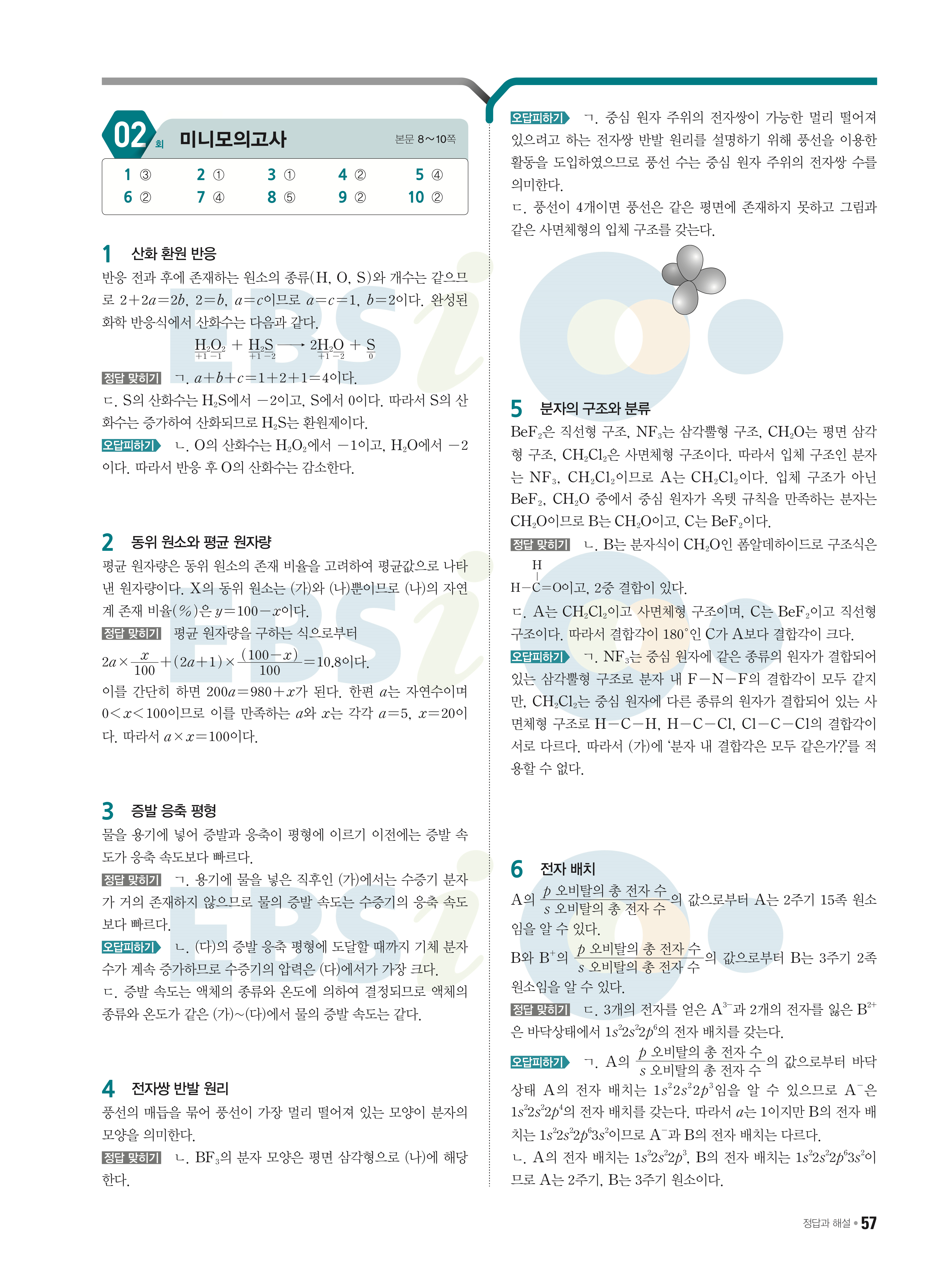 2022 EBS 수능특강큐 미니모의고사 화학1 답지 해설 사진답지 모바일최적화