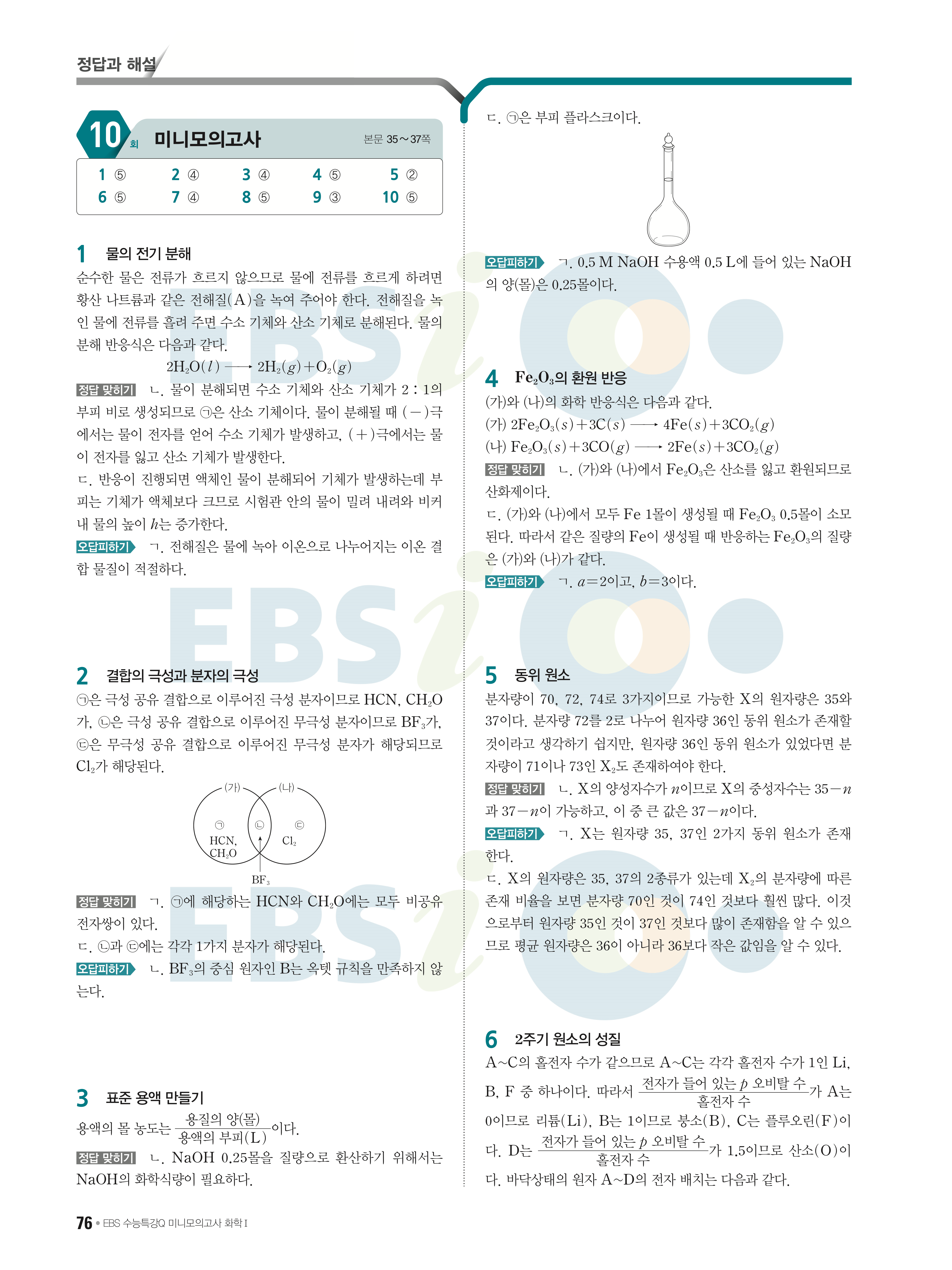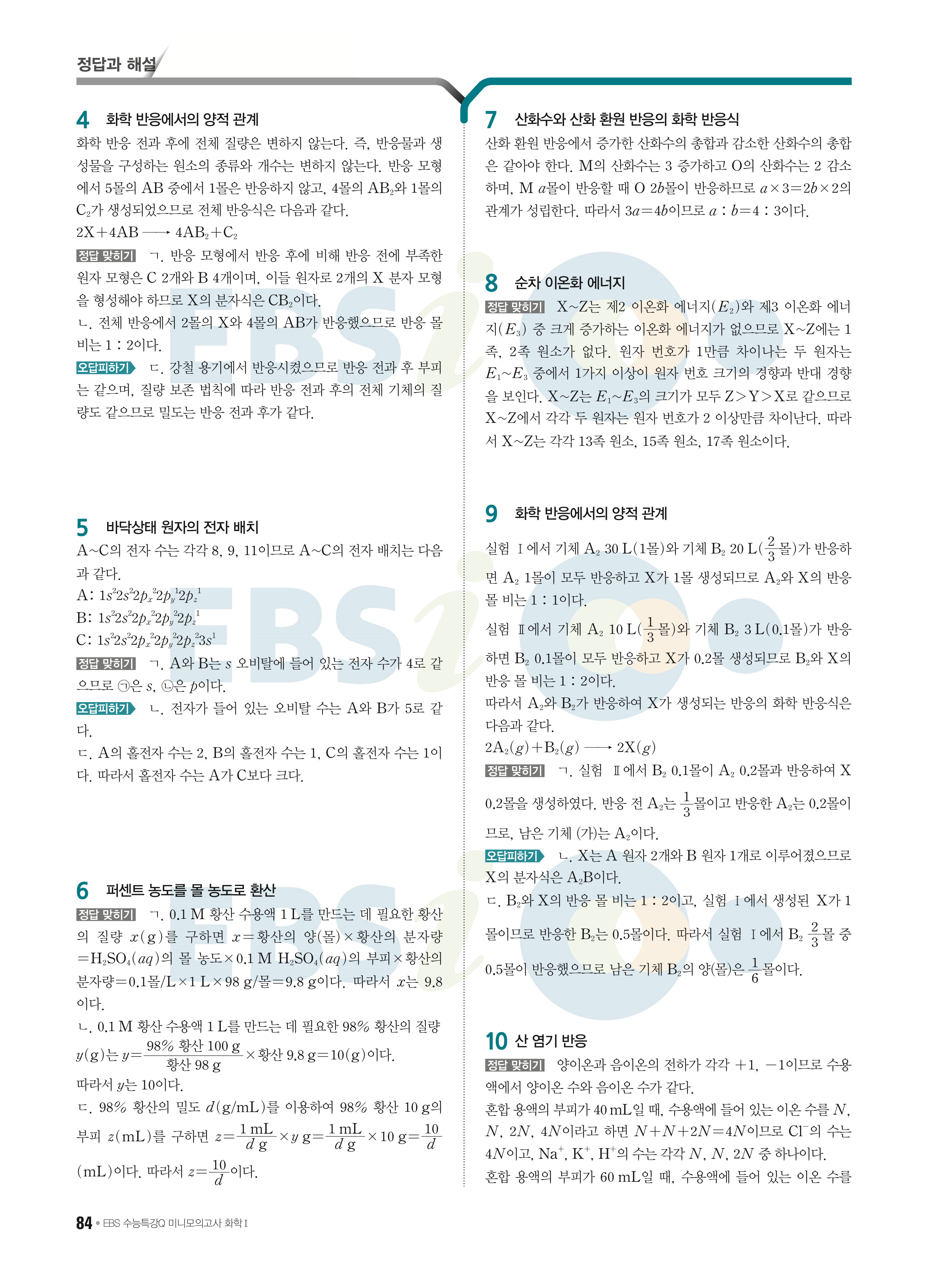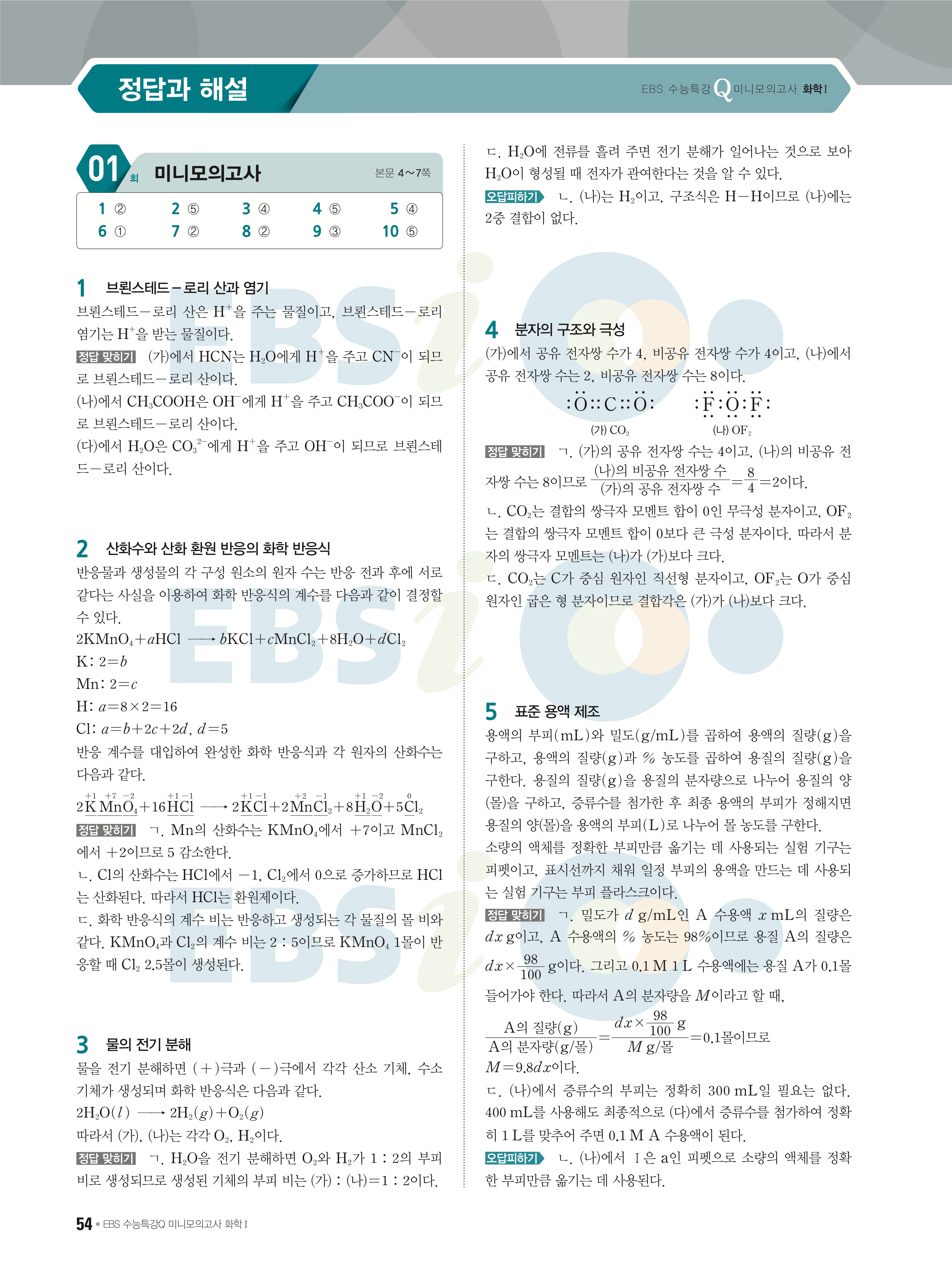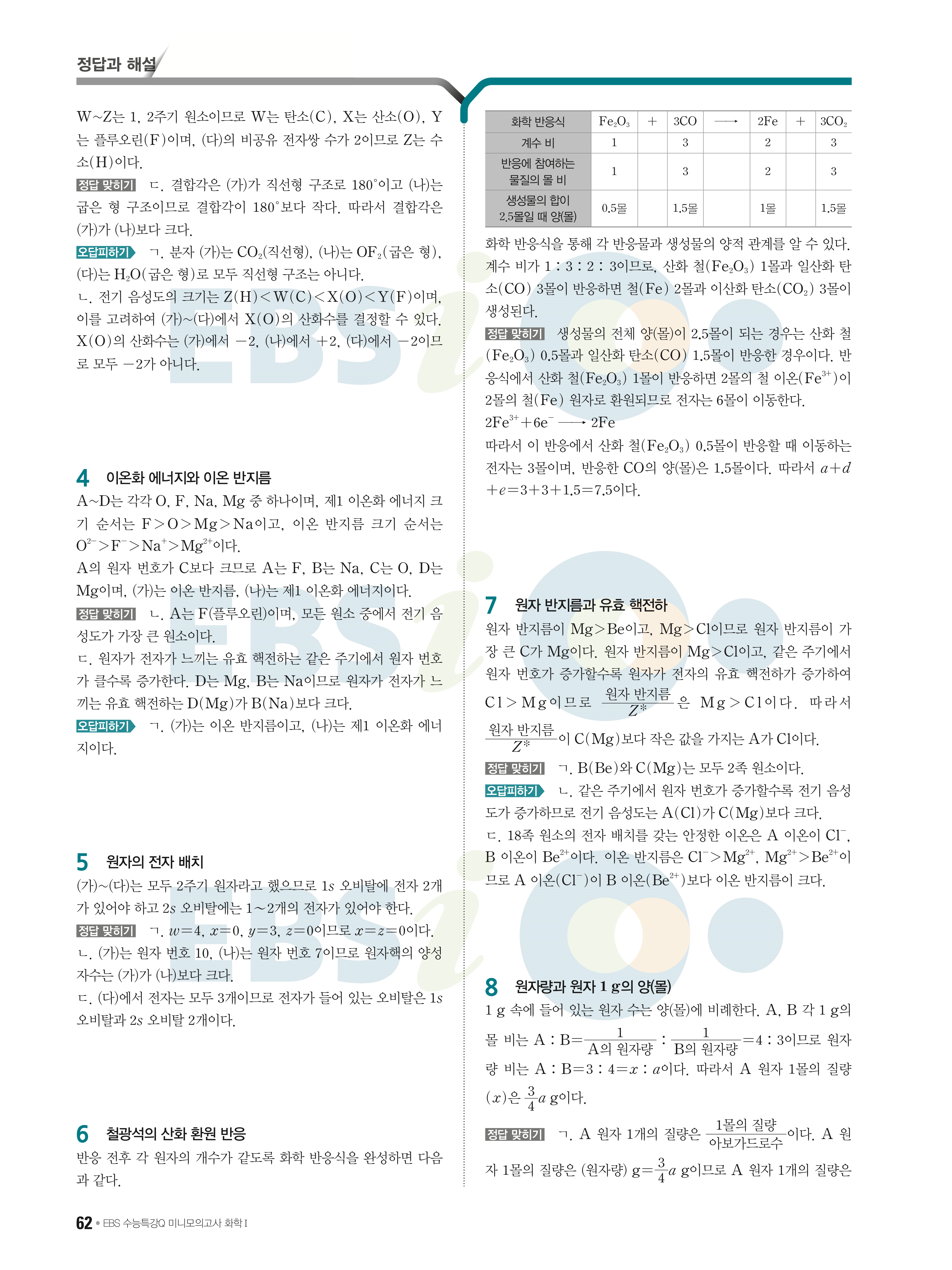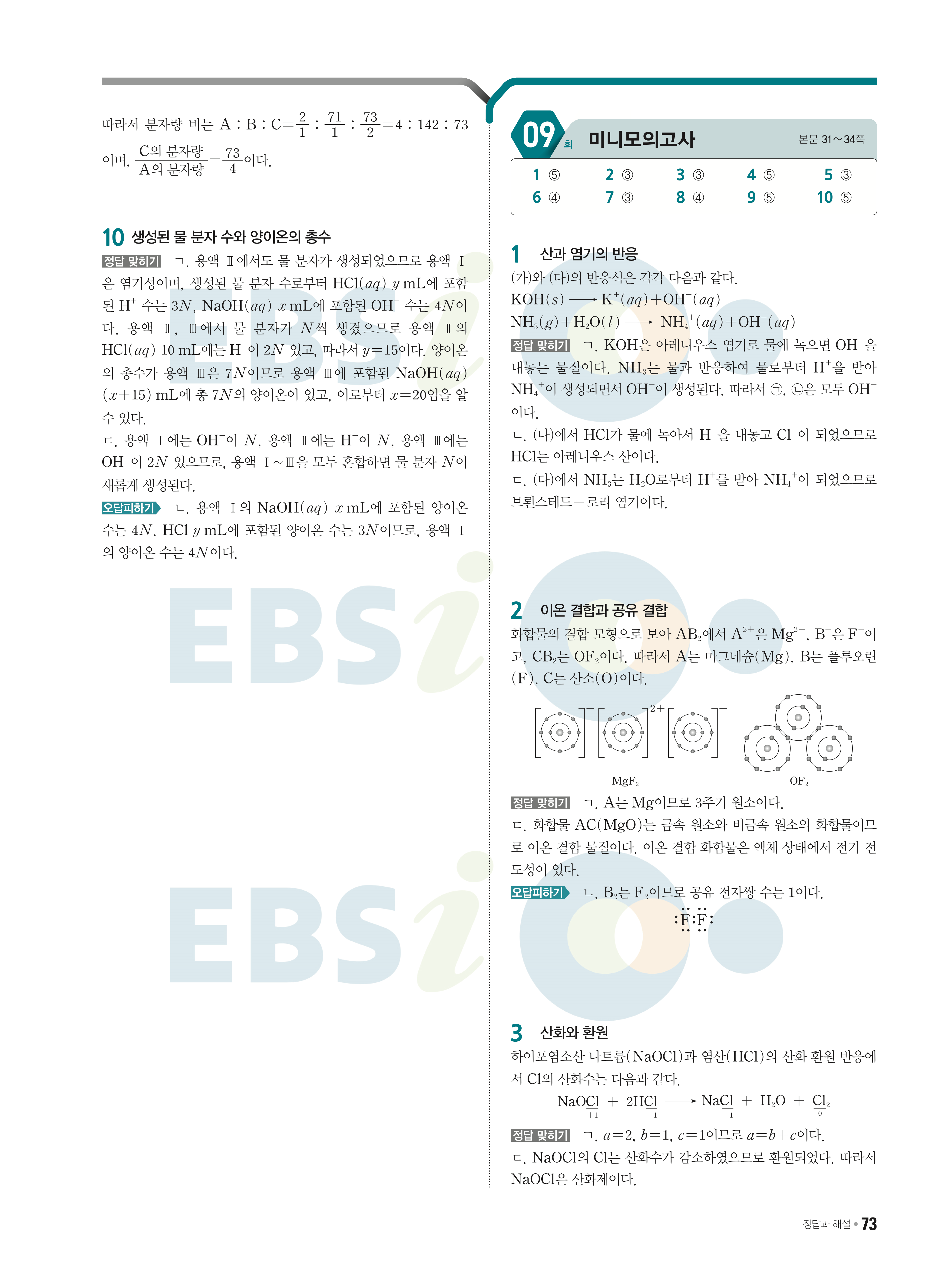 2022 EBS 수능특강큐 미니모의고사 화학1 답지 해설 사진답지 모바일최적화
