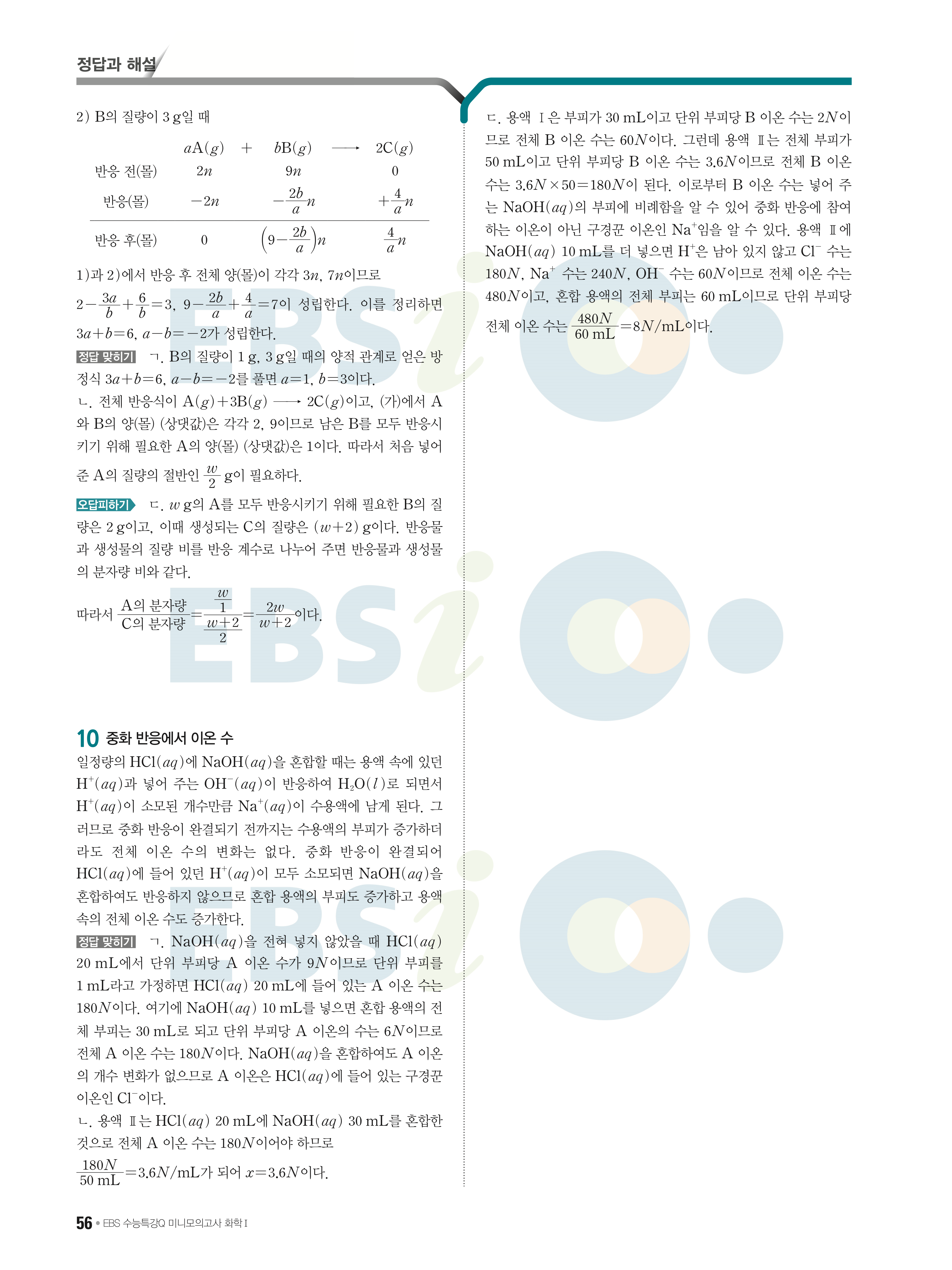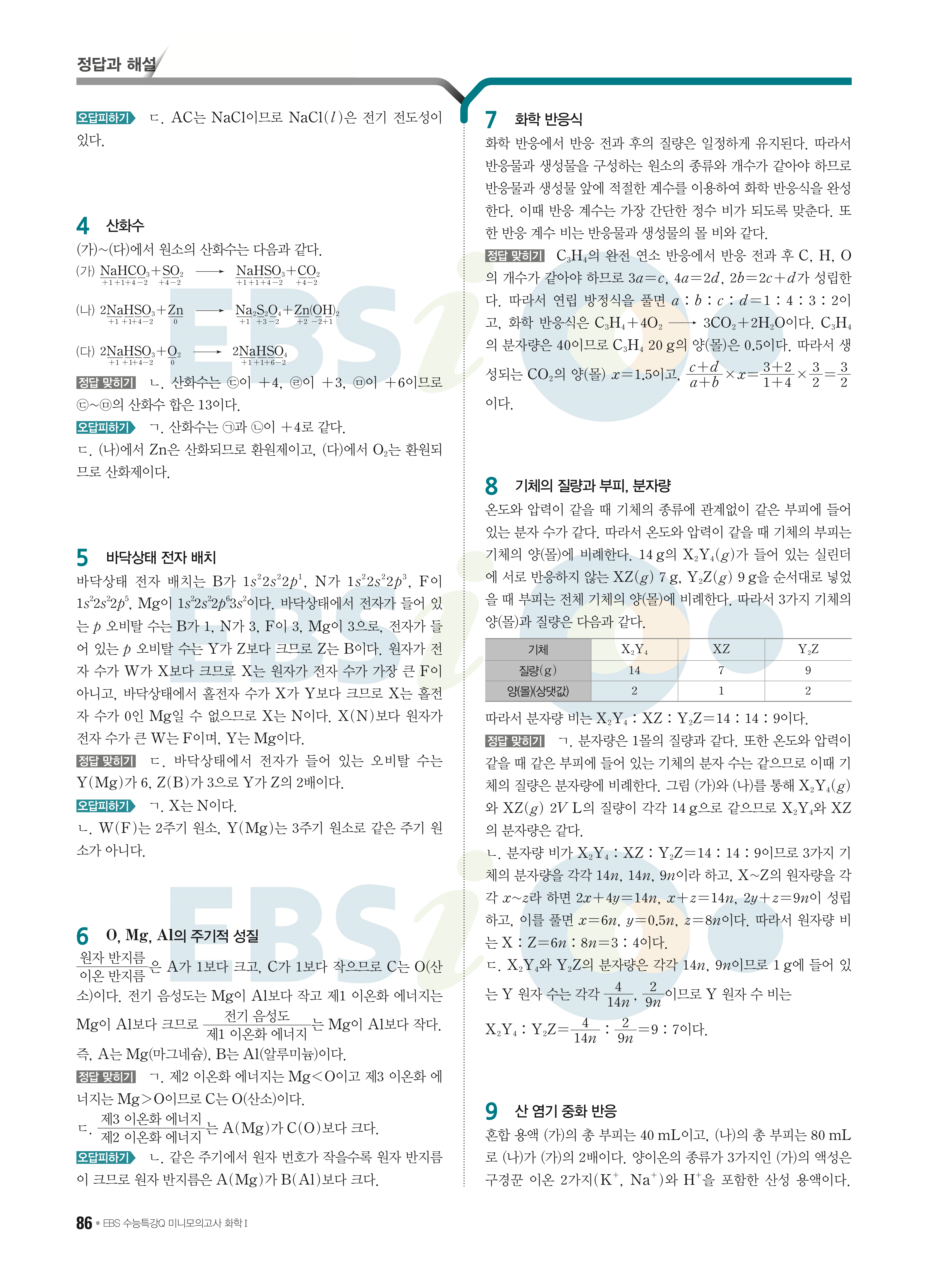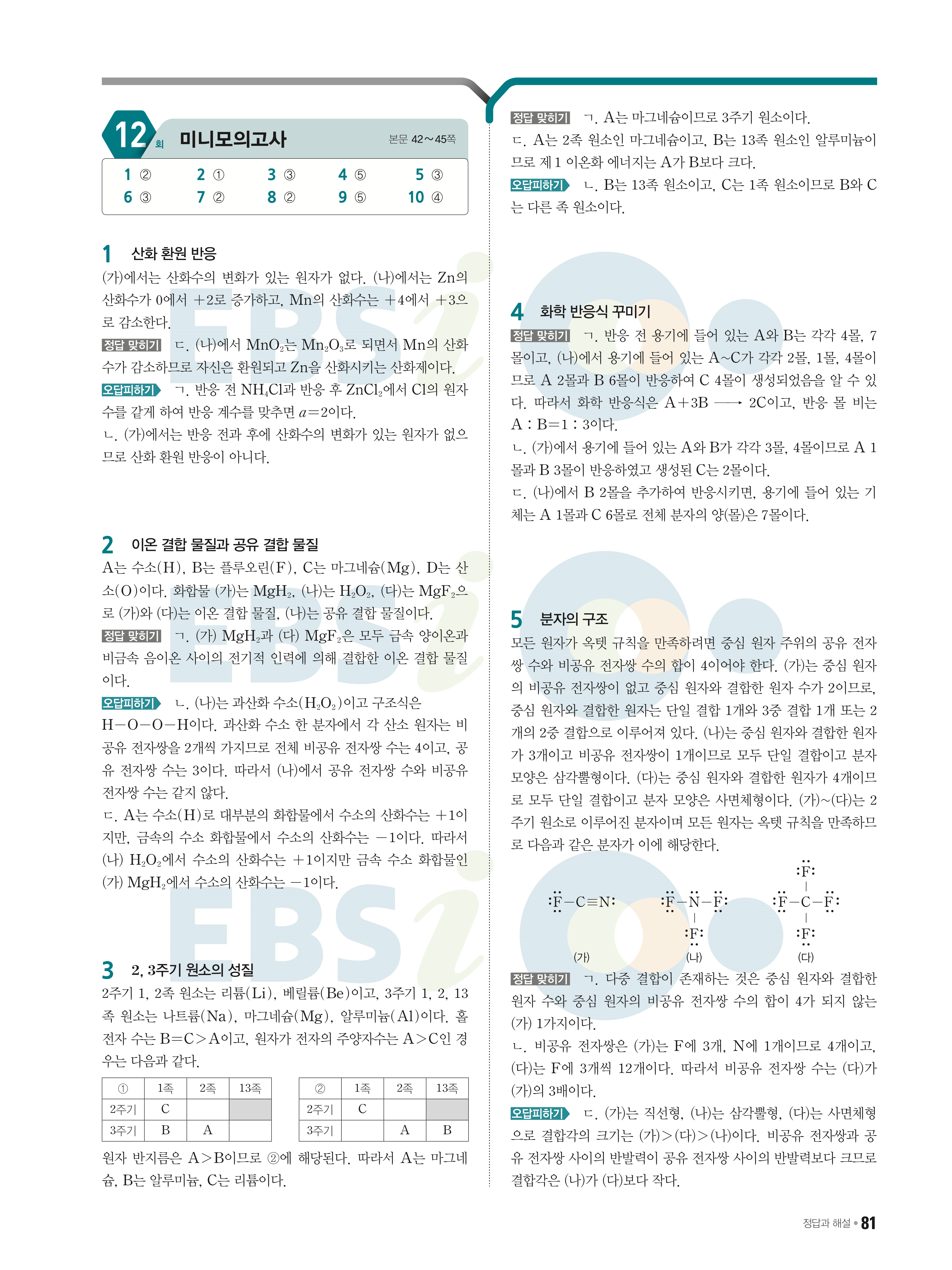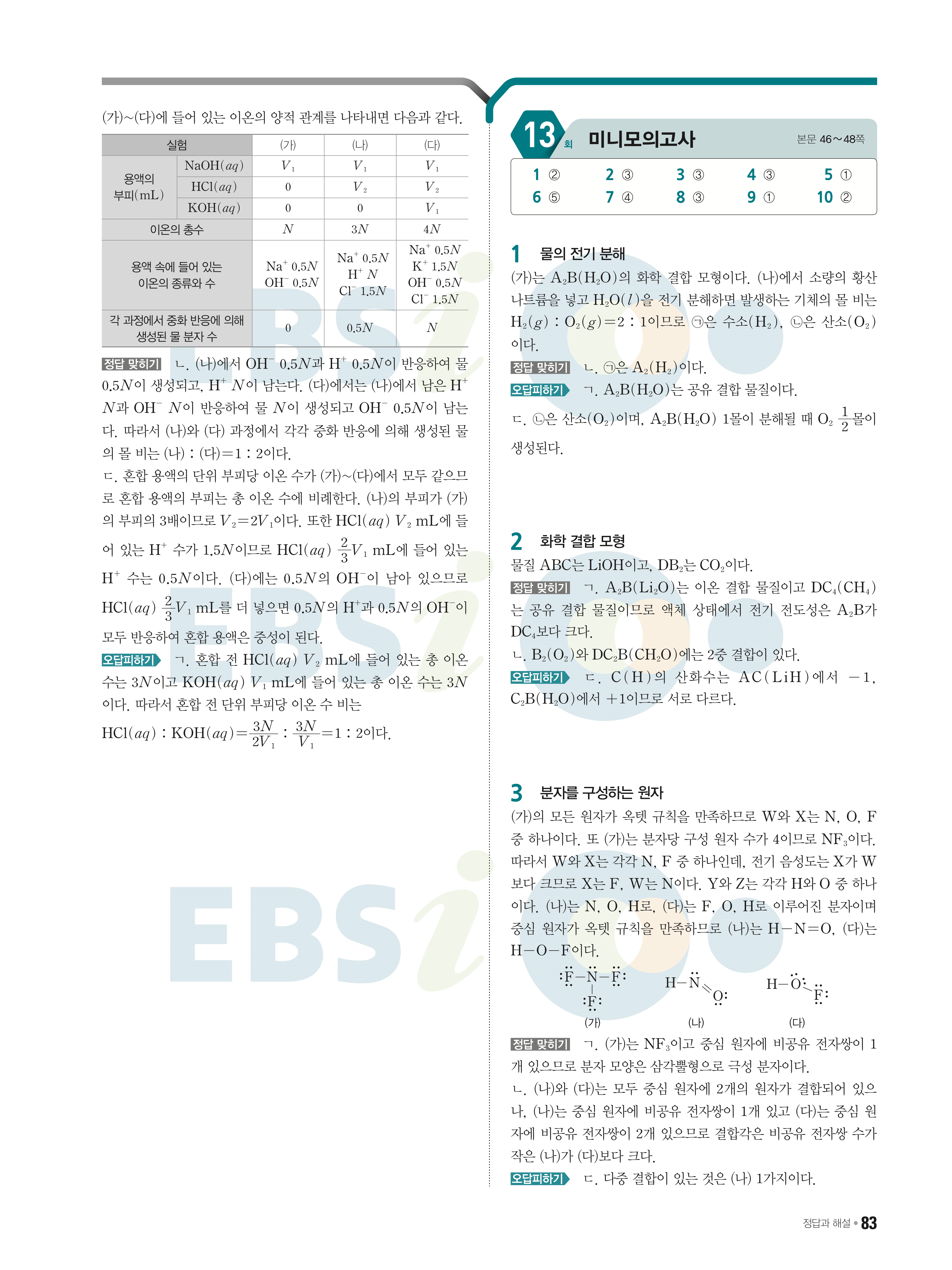 2022 EBS 수능특강큐 미니모의고사 화학1 답지 해설 사진답지 모바일최적화