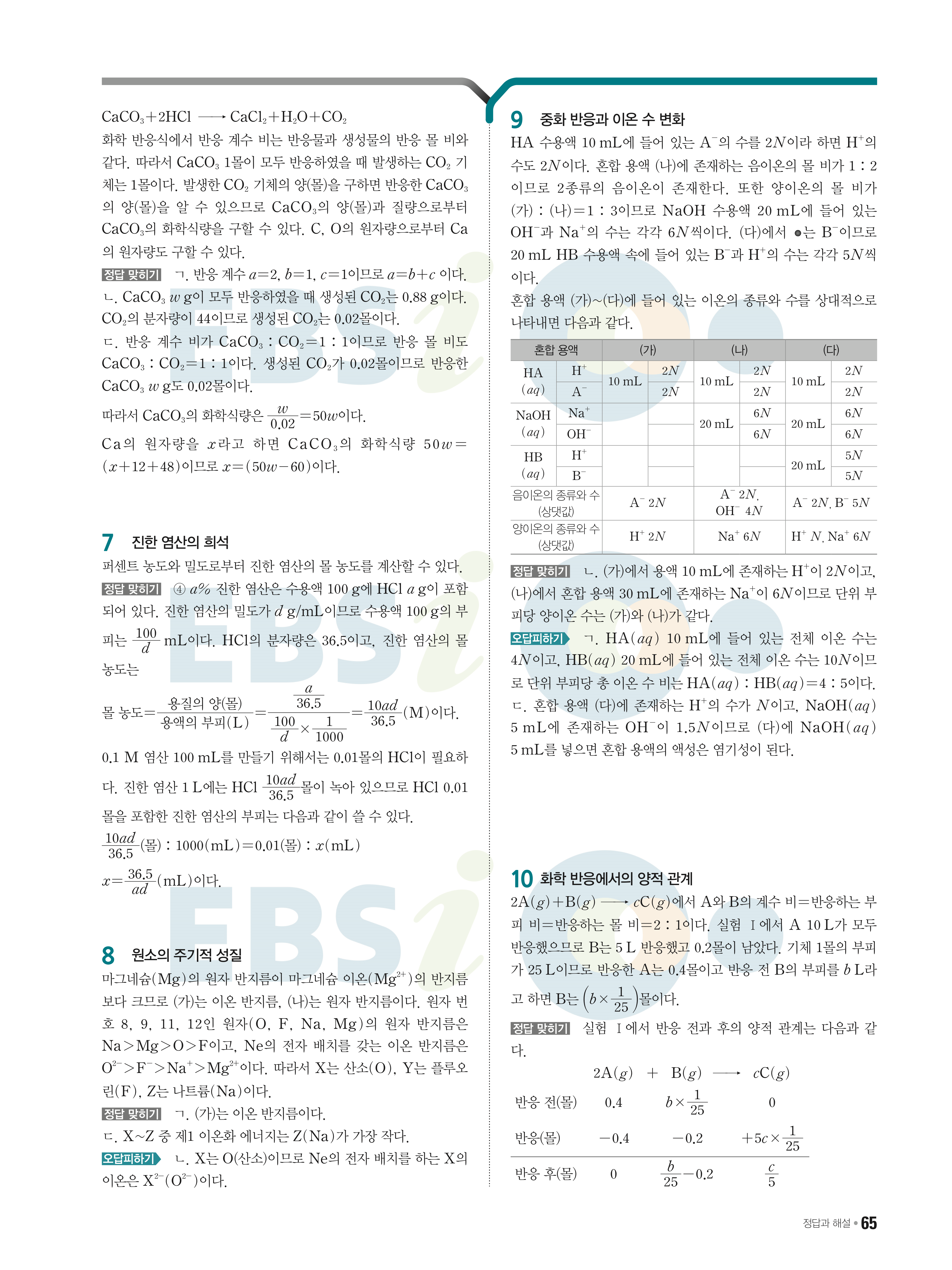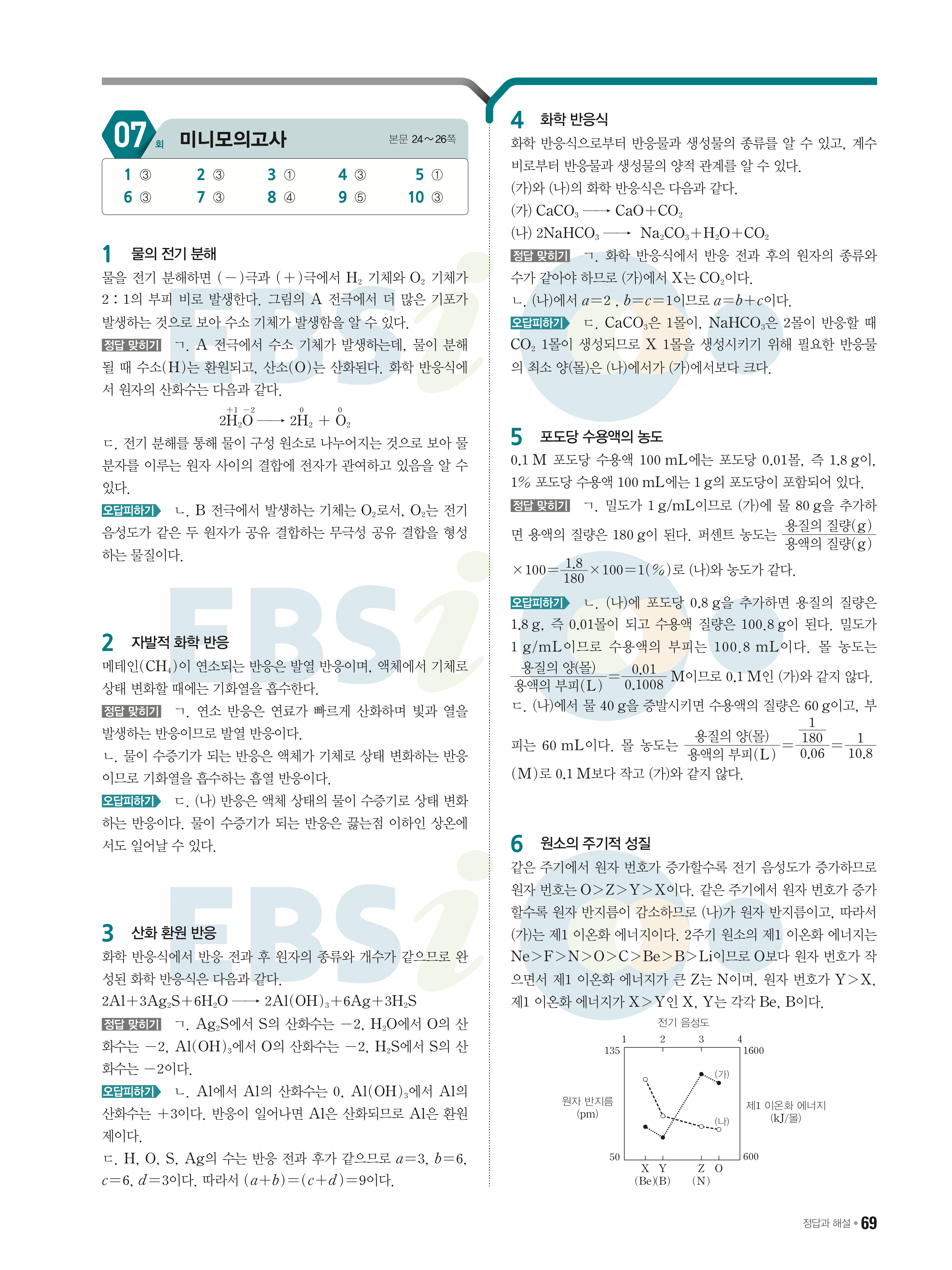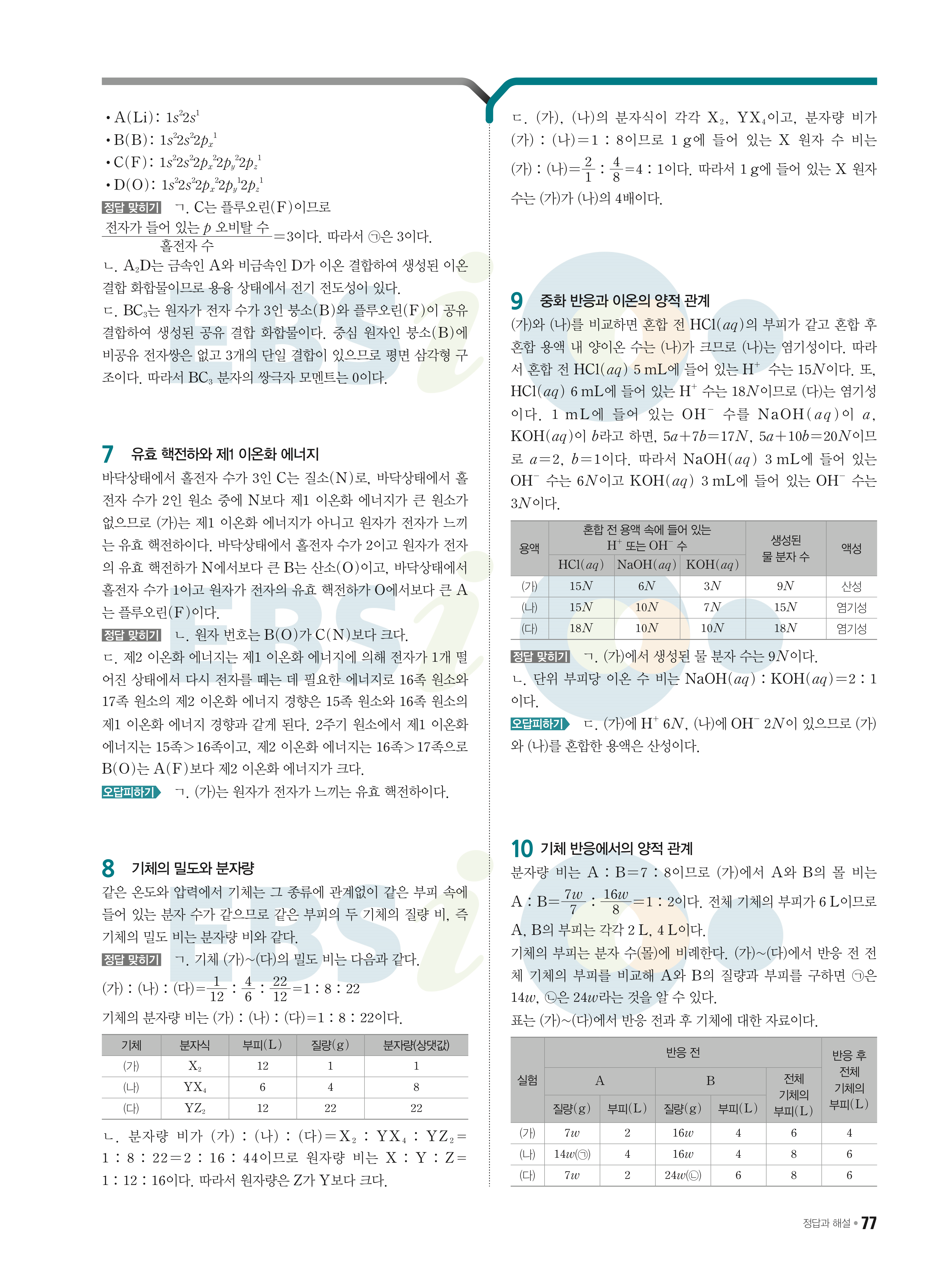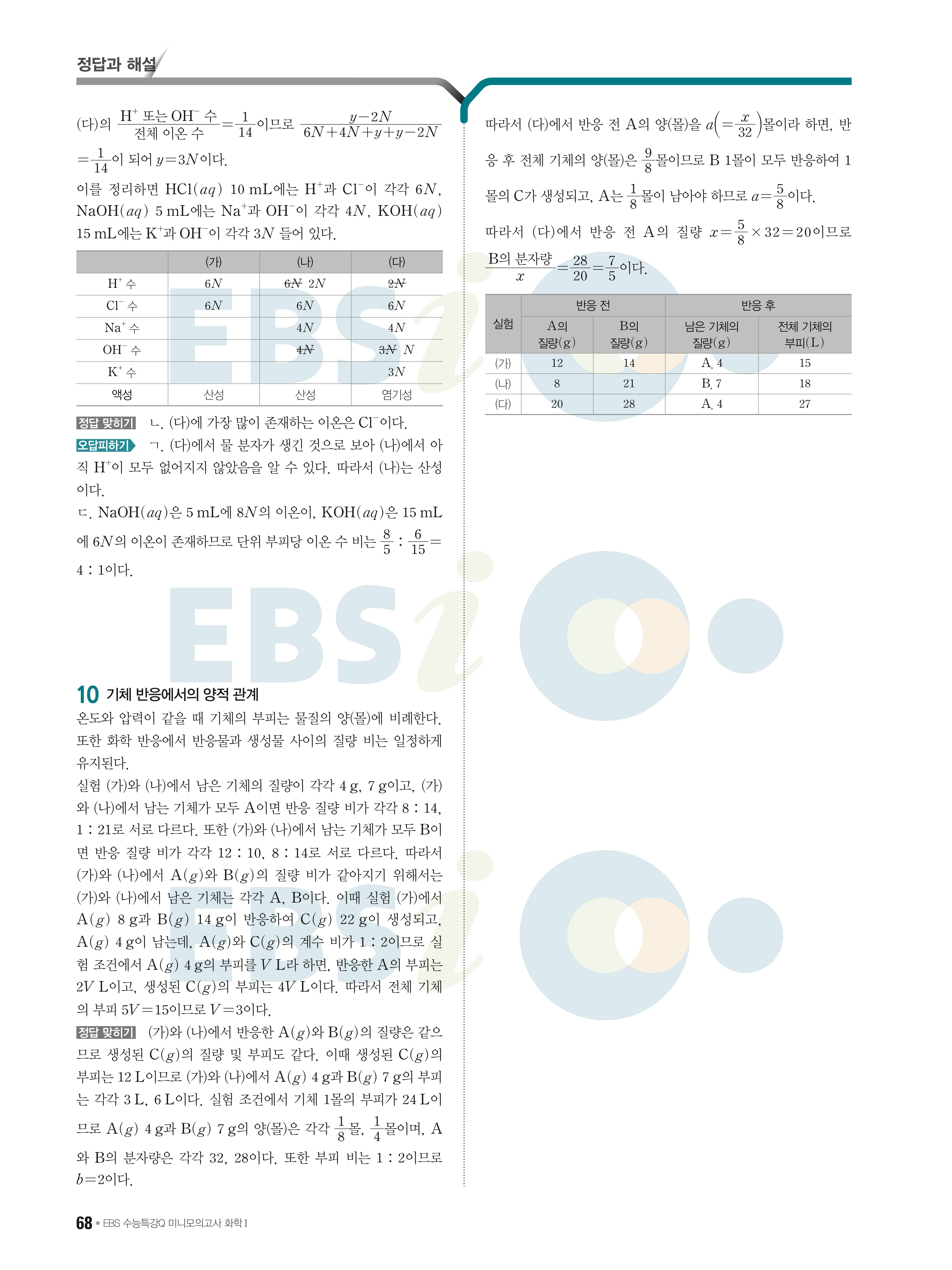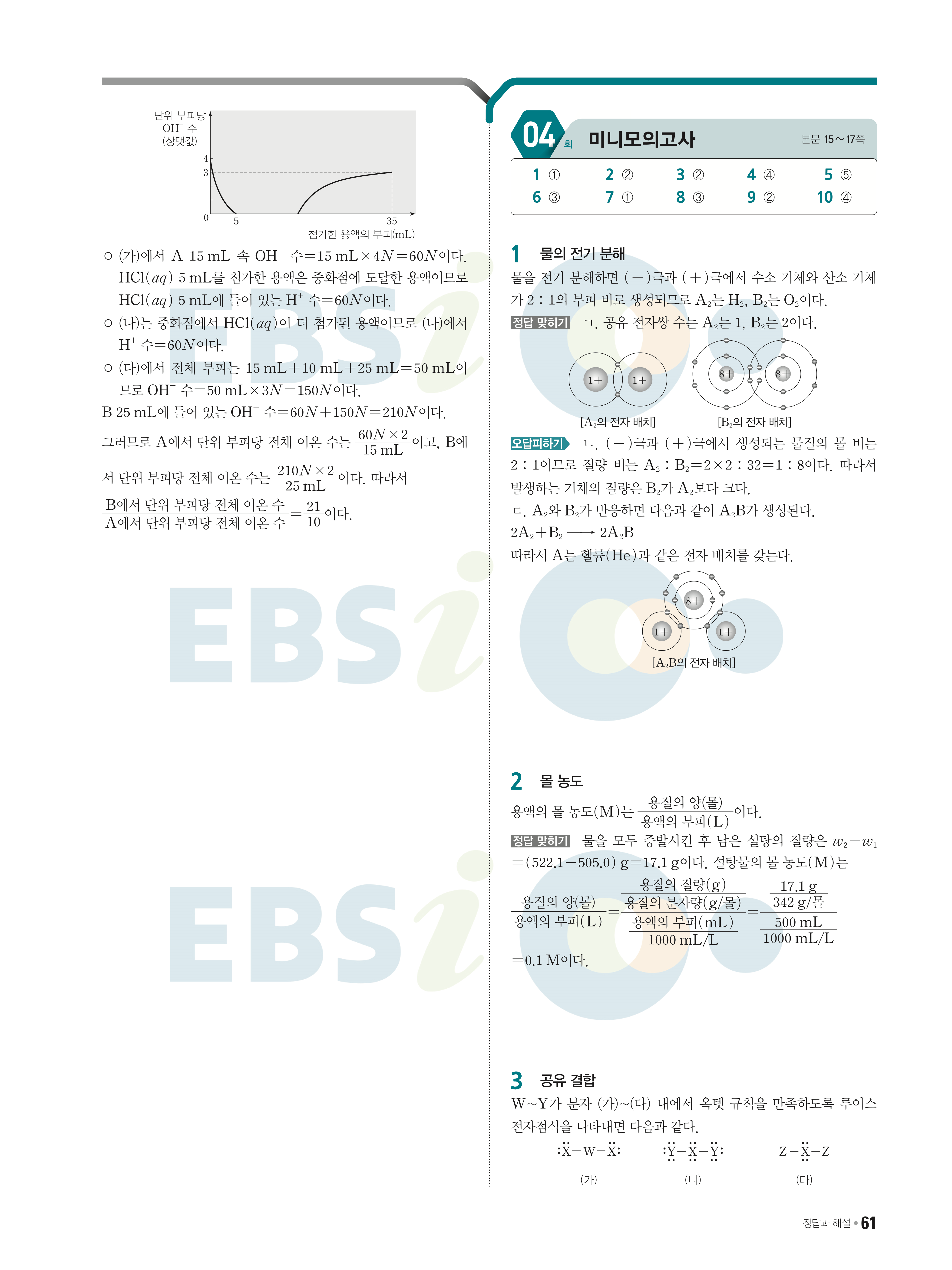 2022 EBS 수능특강큐 미니모의고사 화학1 답지 해설 사진답지 모바일최적화