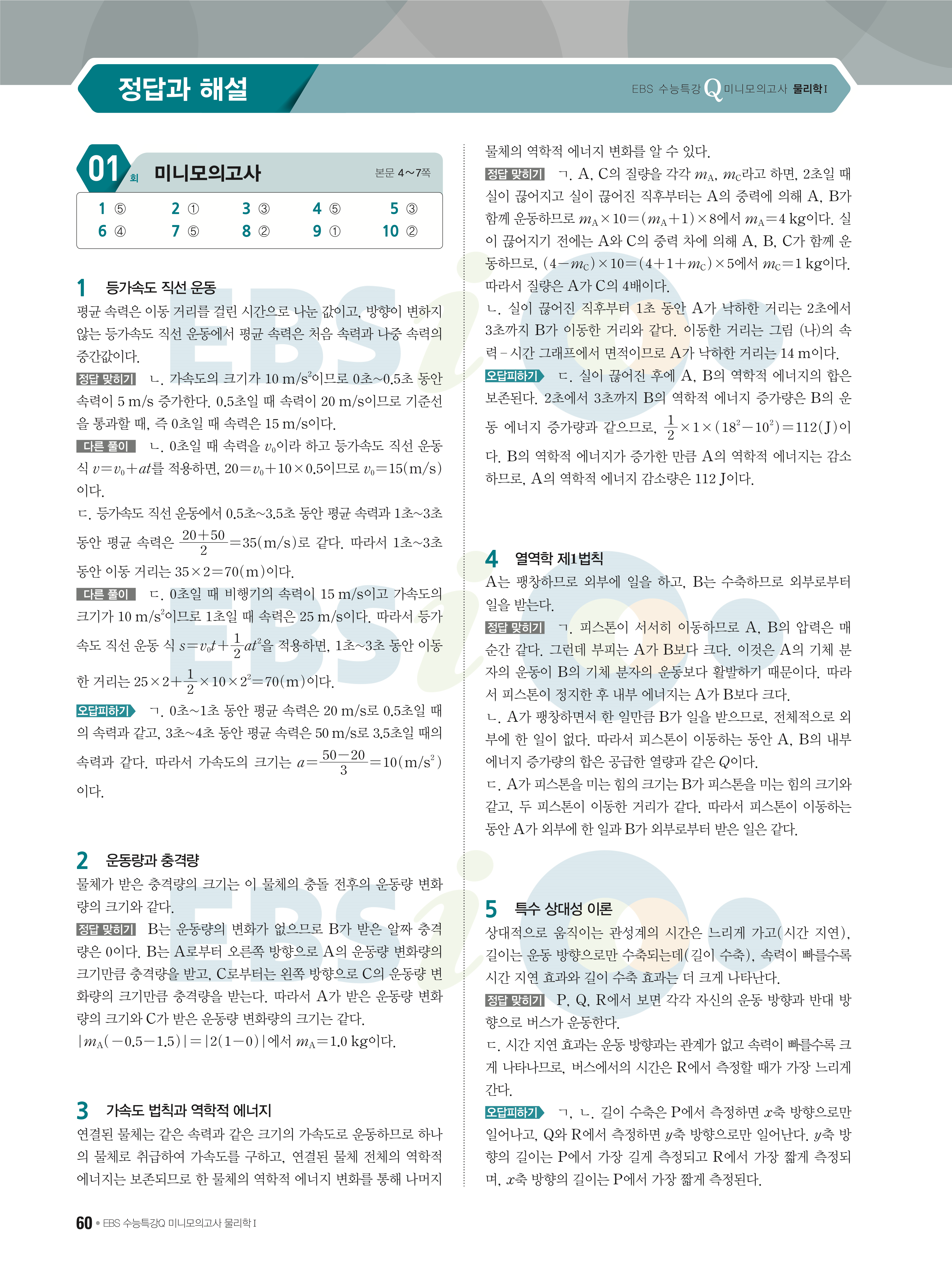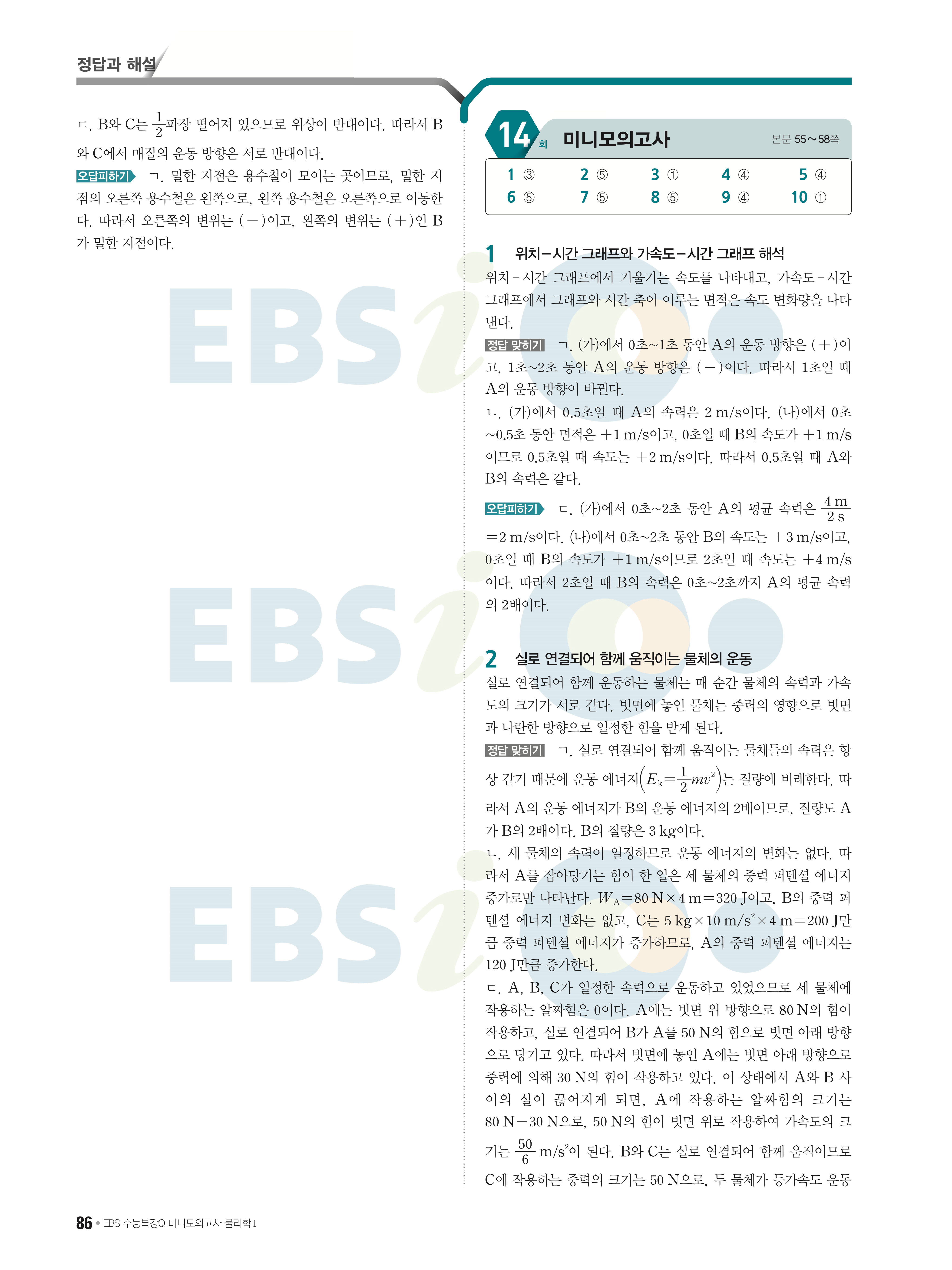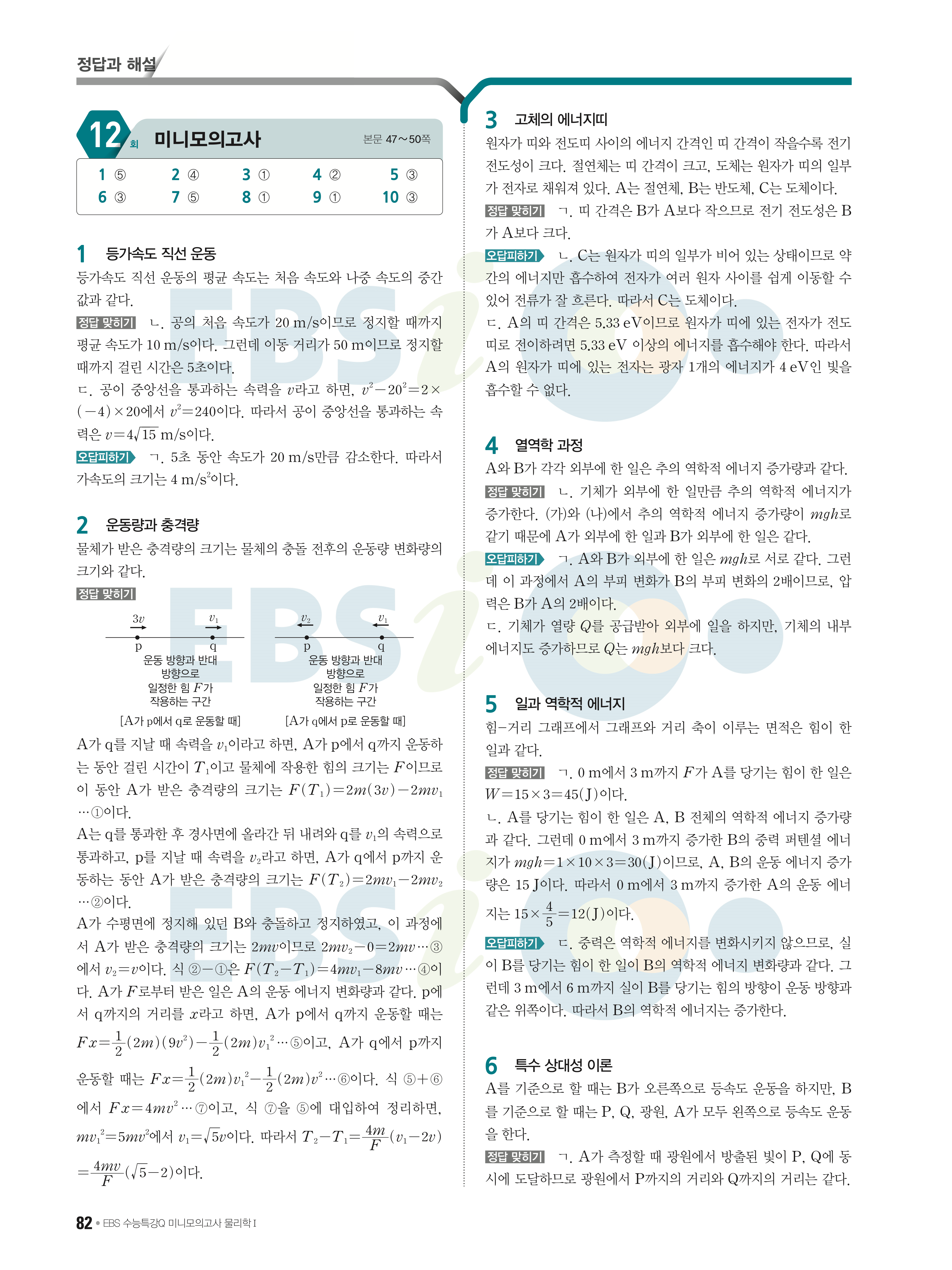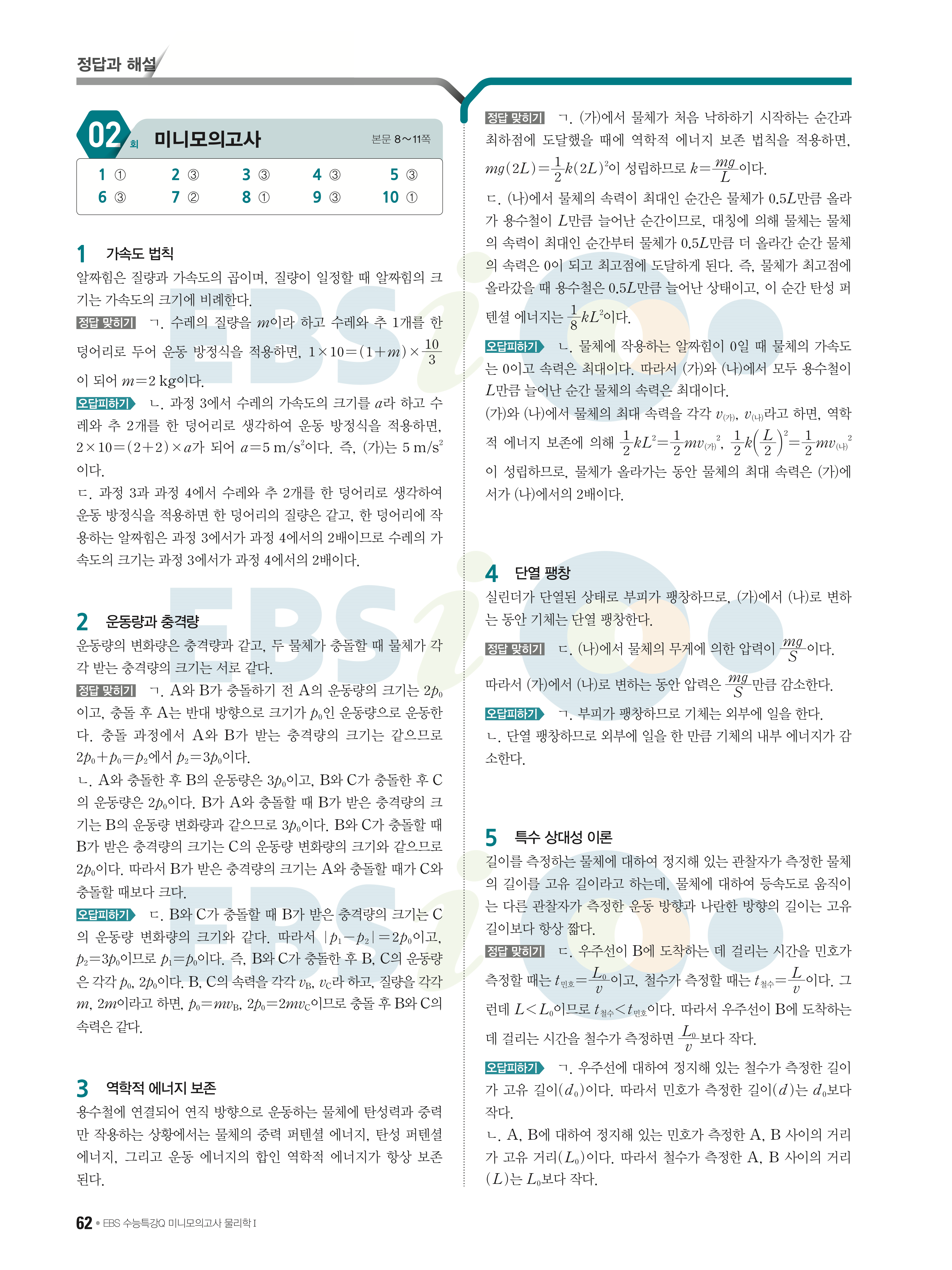 2022 EBS 수능특강큐 미니모의고사 물리학1 답지 해설 사진답지 모바일최적화