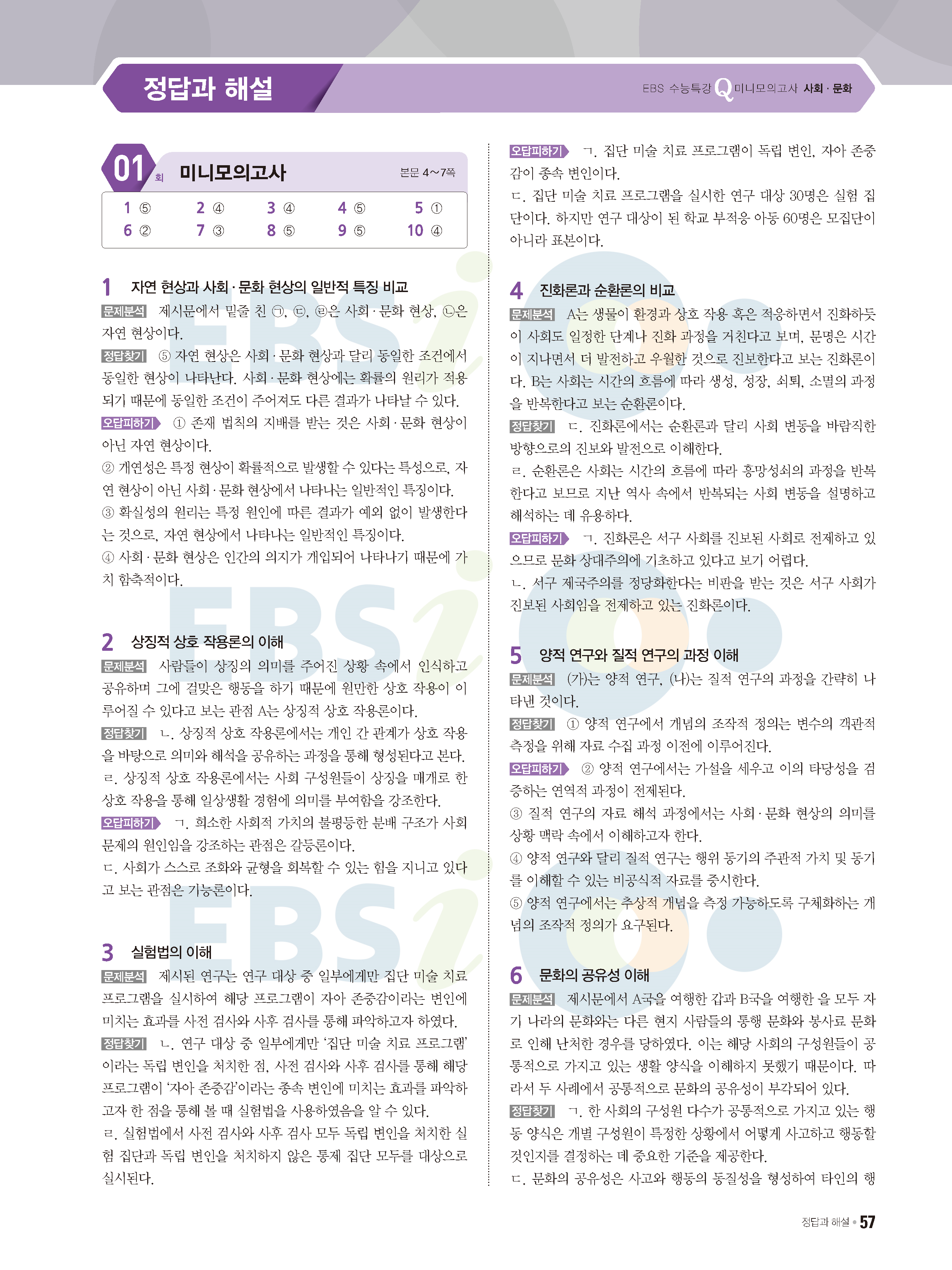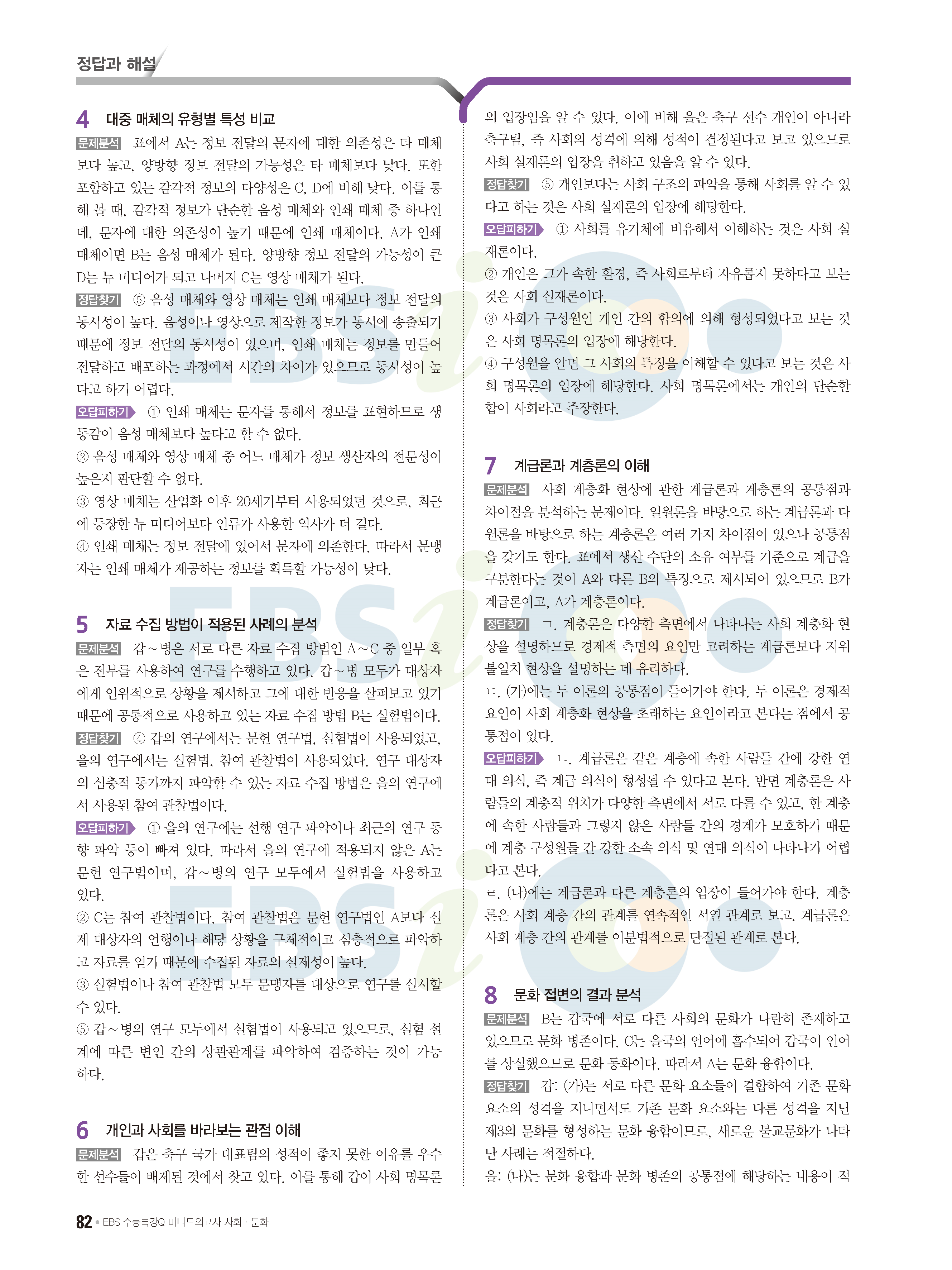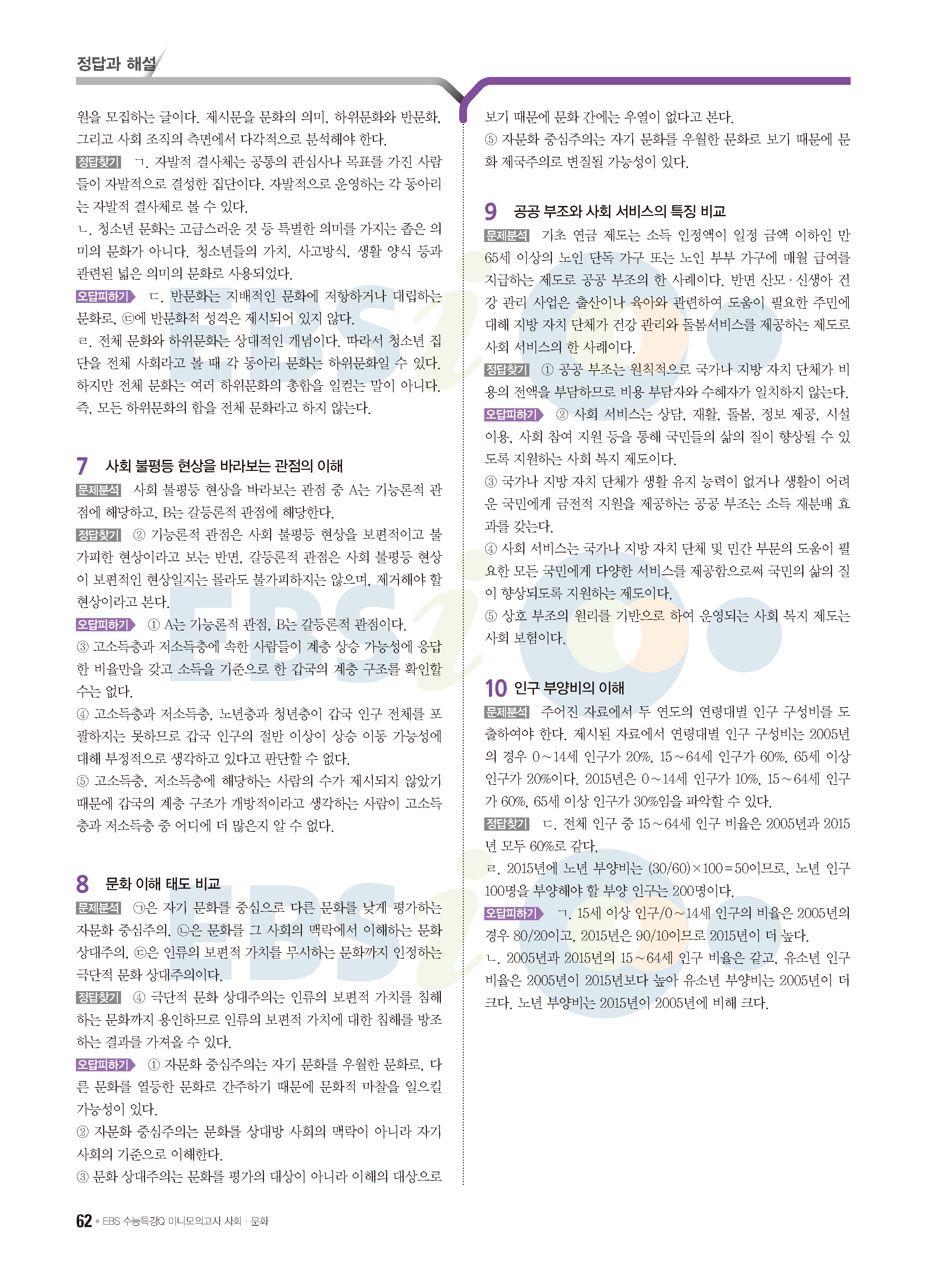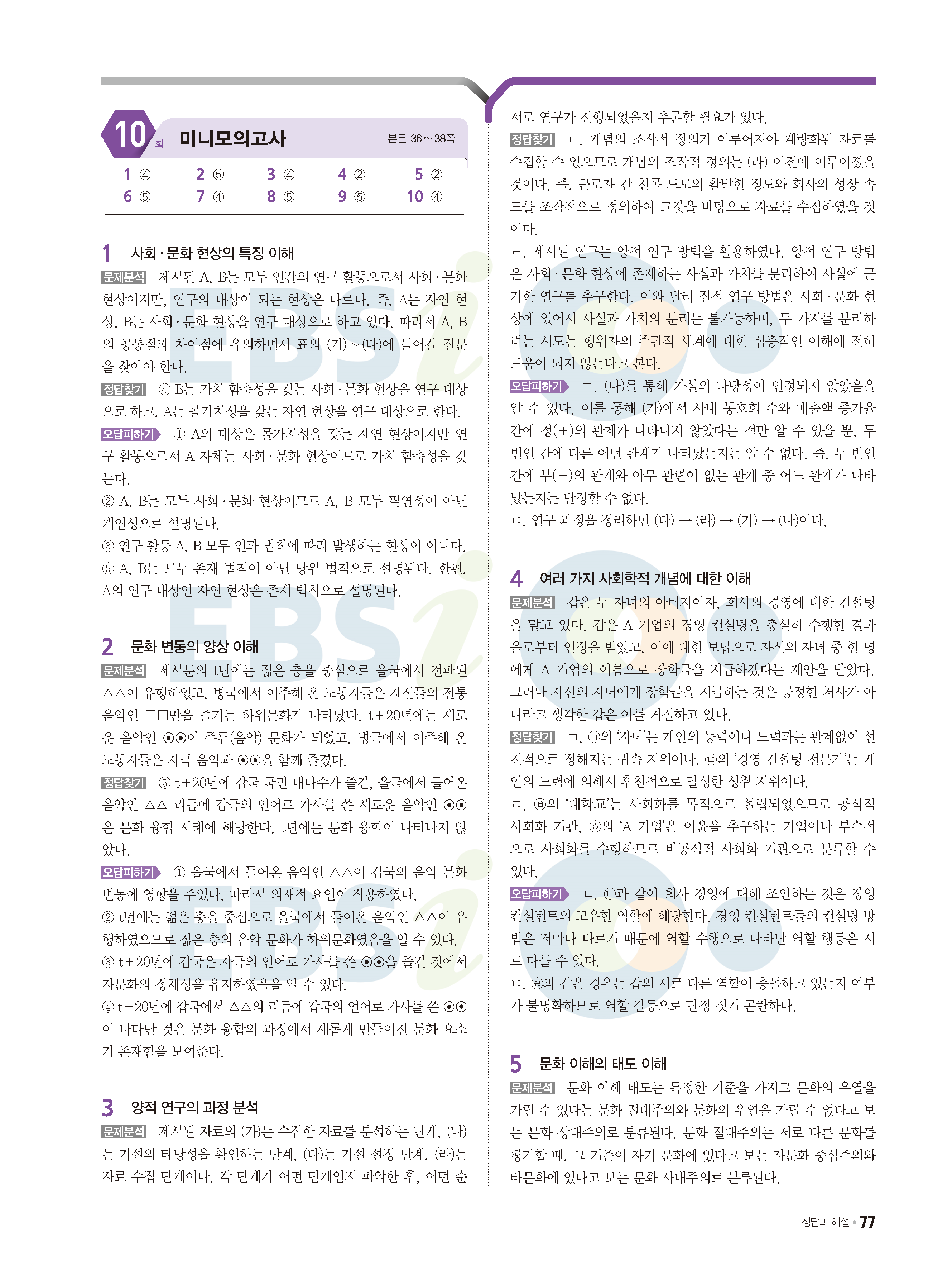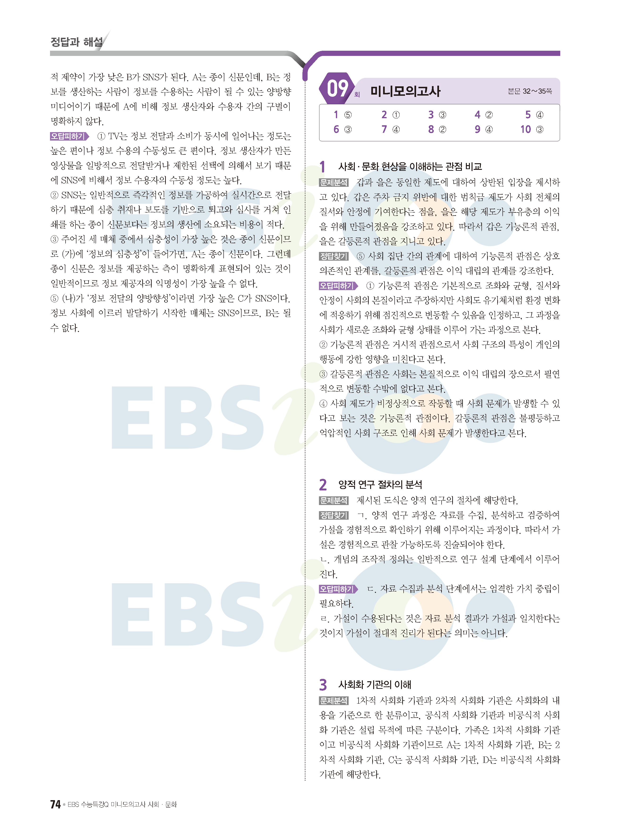 2022 EBS 수능특강큐 미니모의고사 사회문화 답지 해설 사진답지 모바일최적화