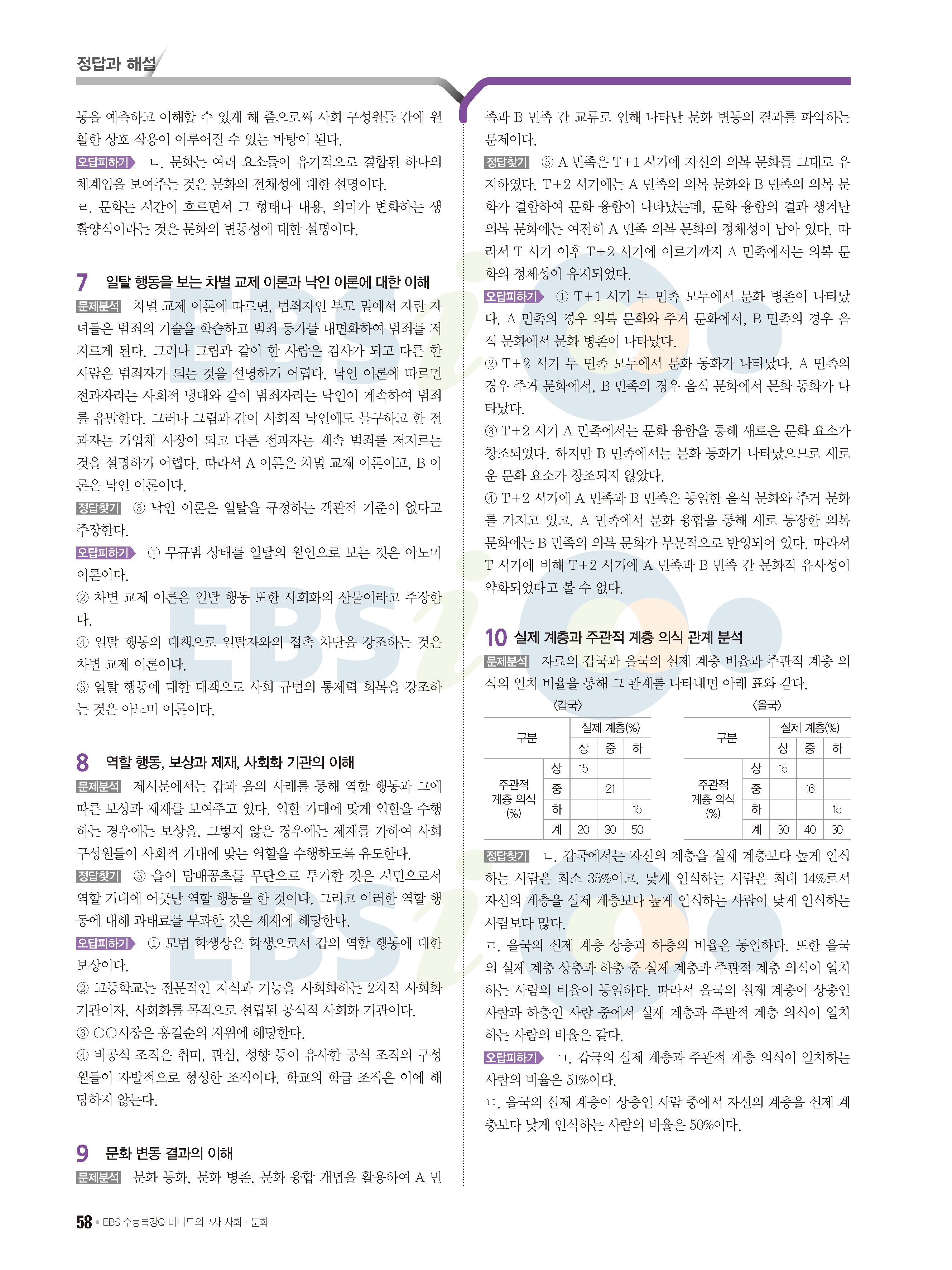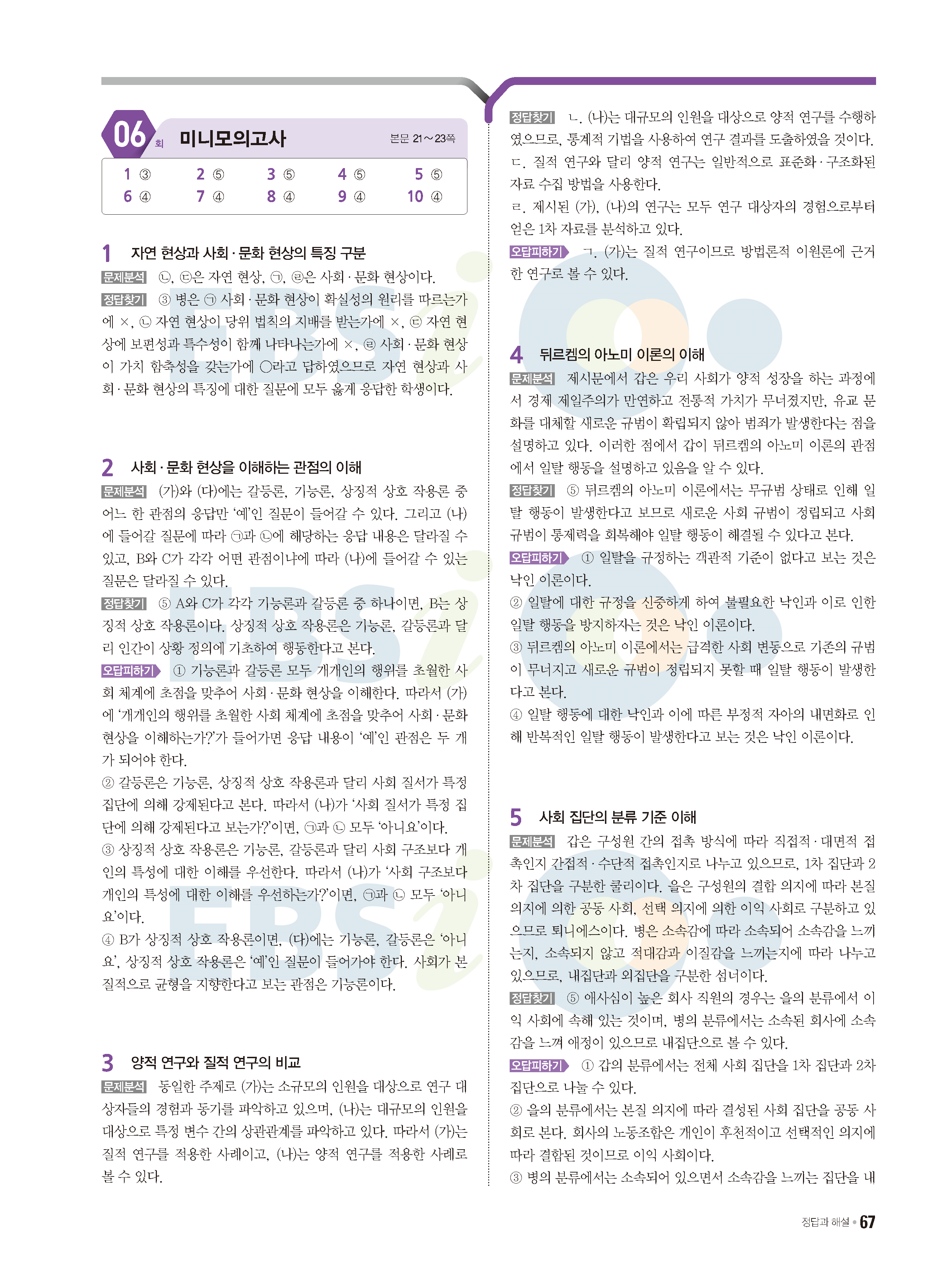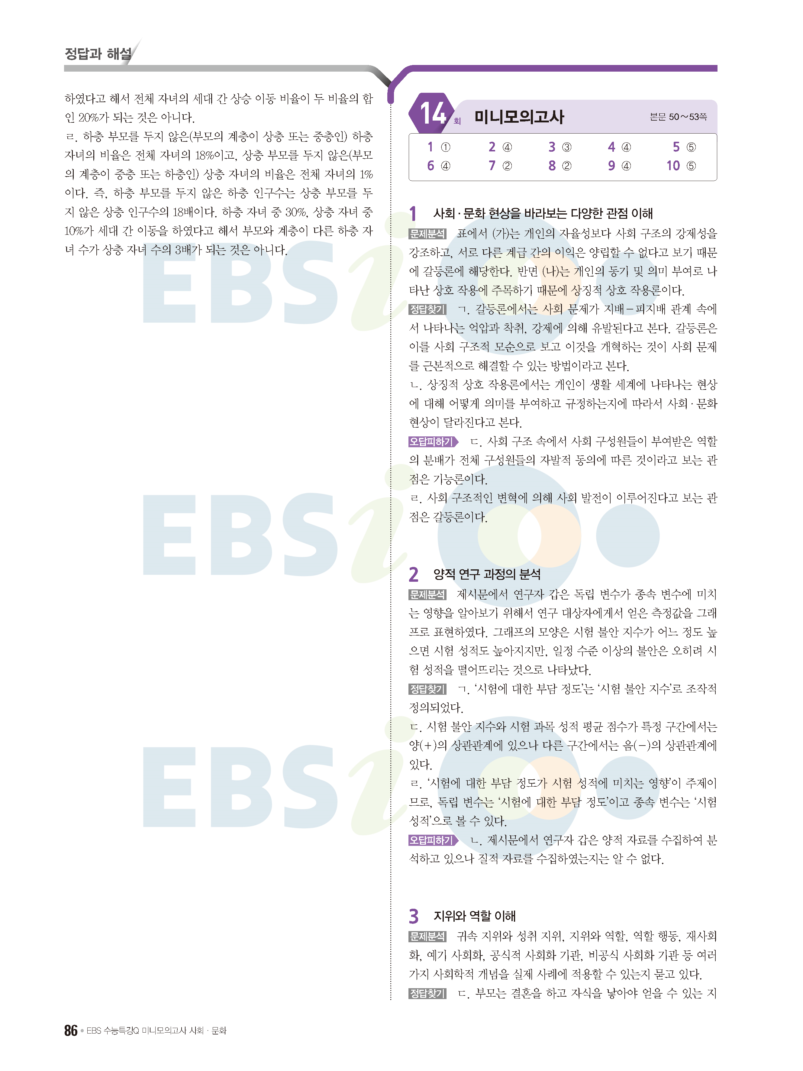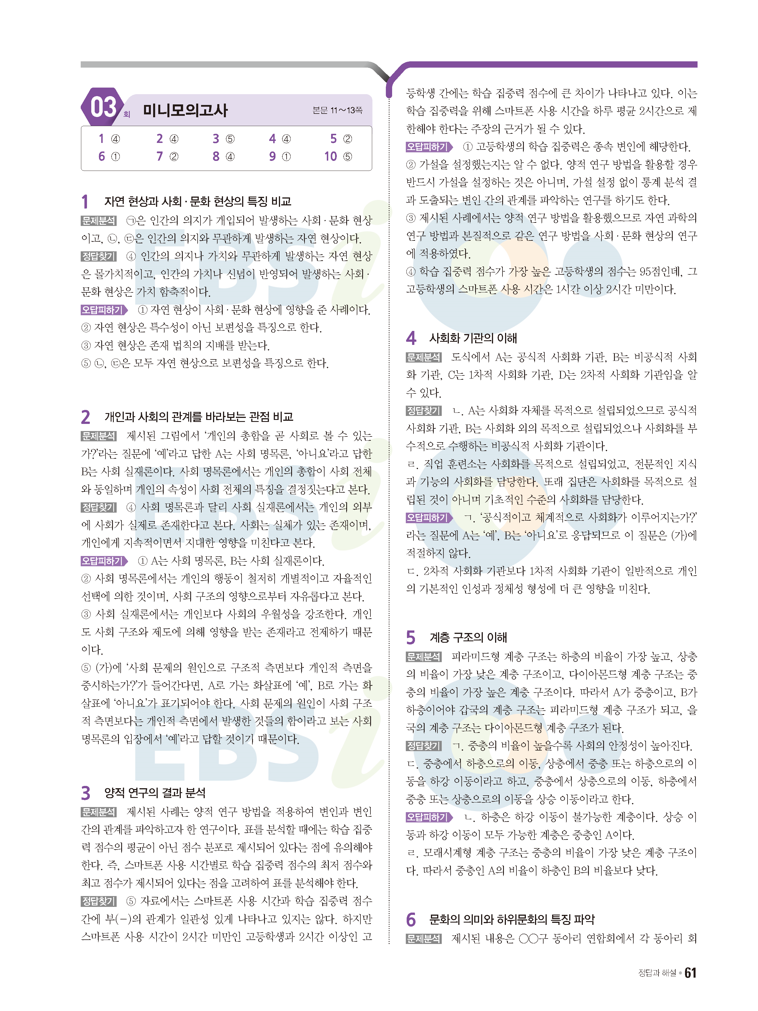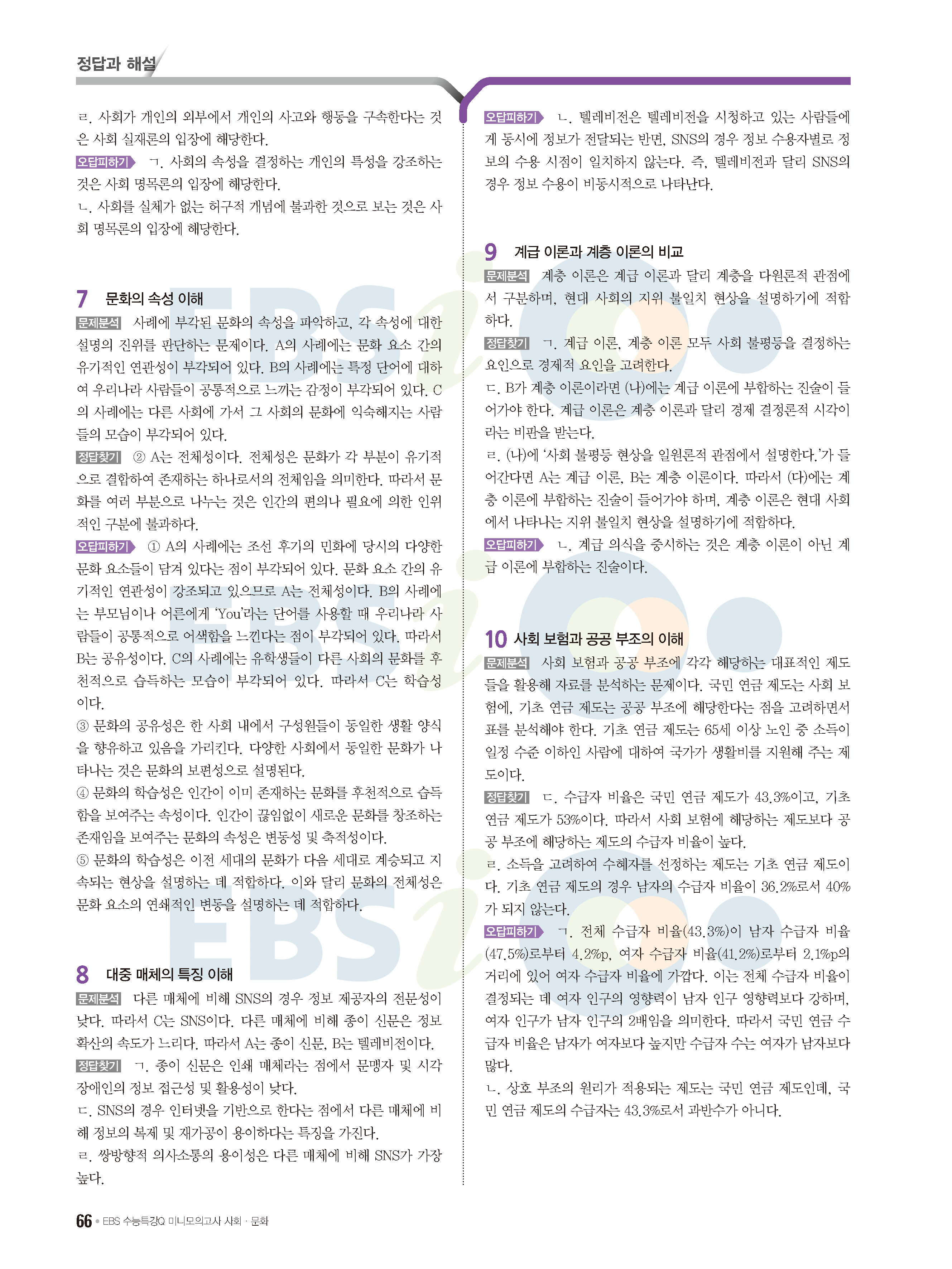 2022 EBS 수능특강큐 미니모의고사 사회문화 답지 해설 사진답지 모바일최적화