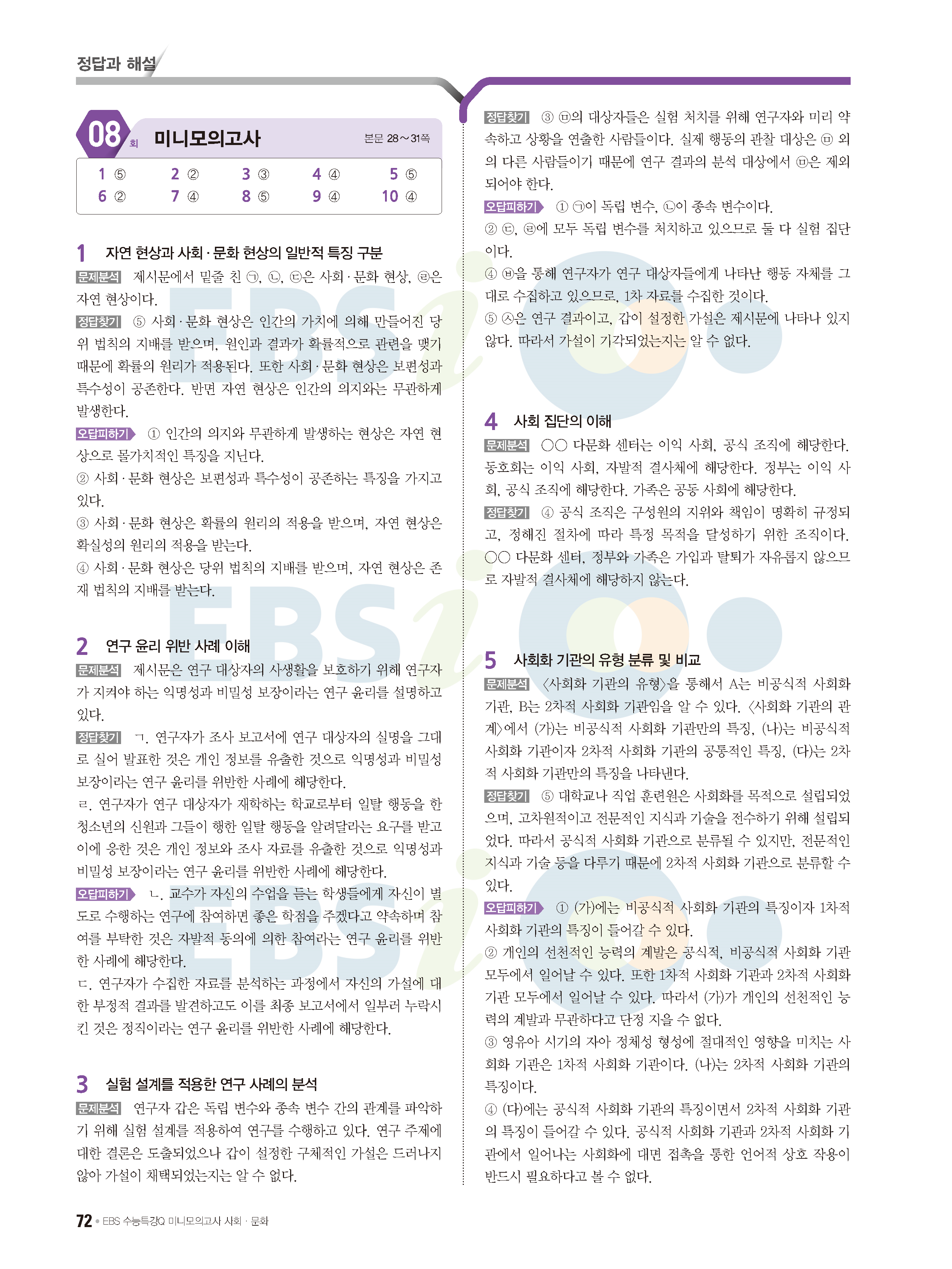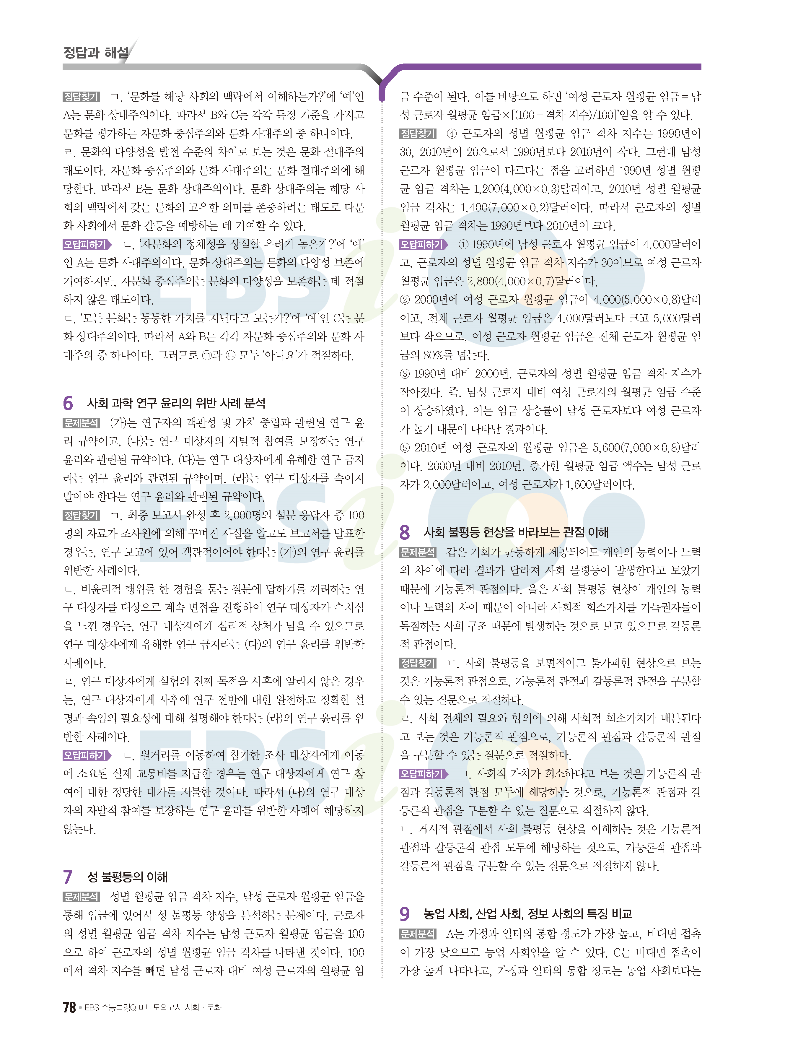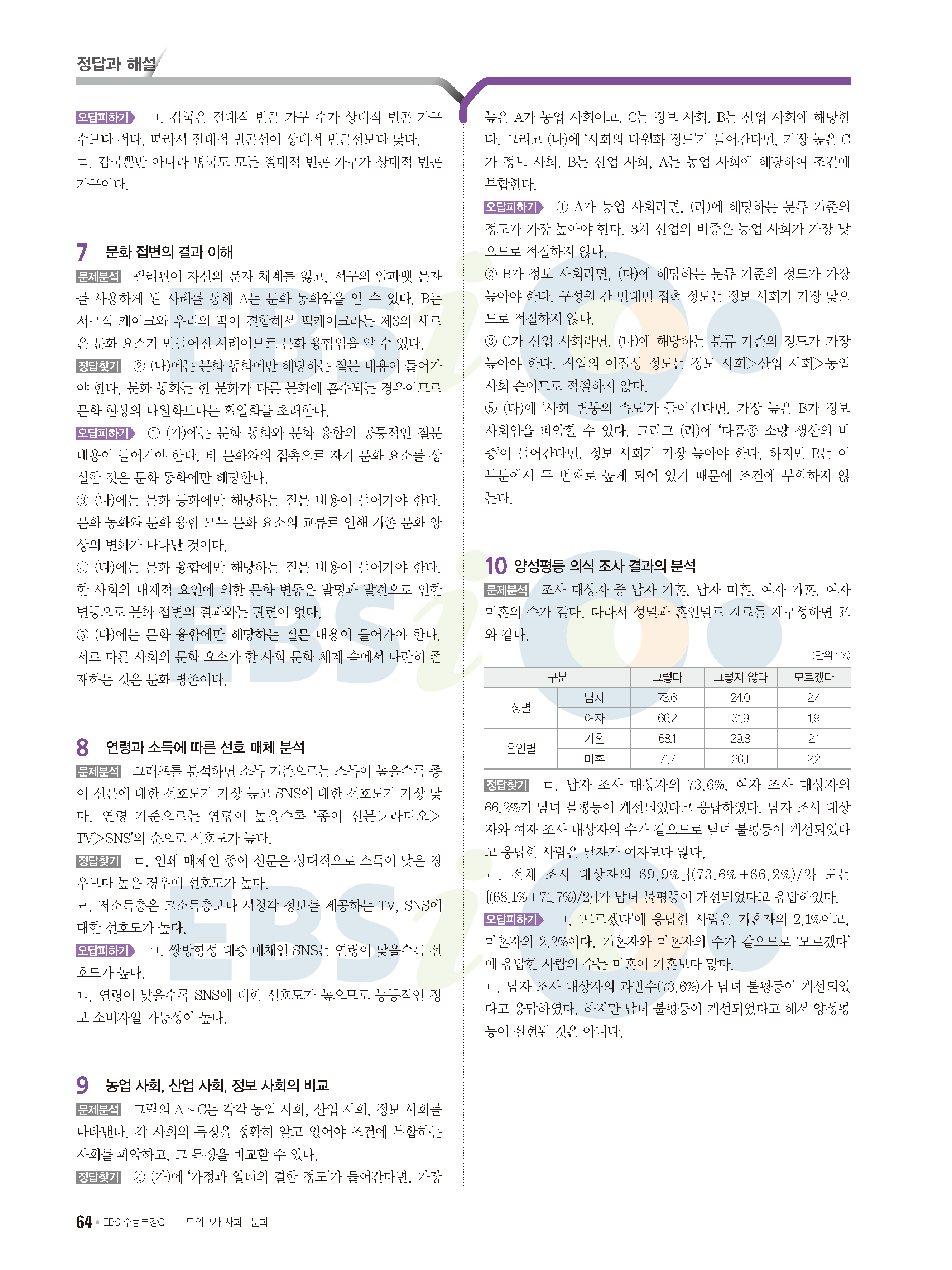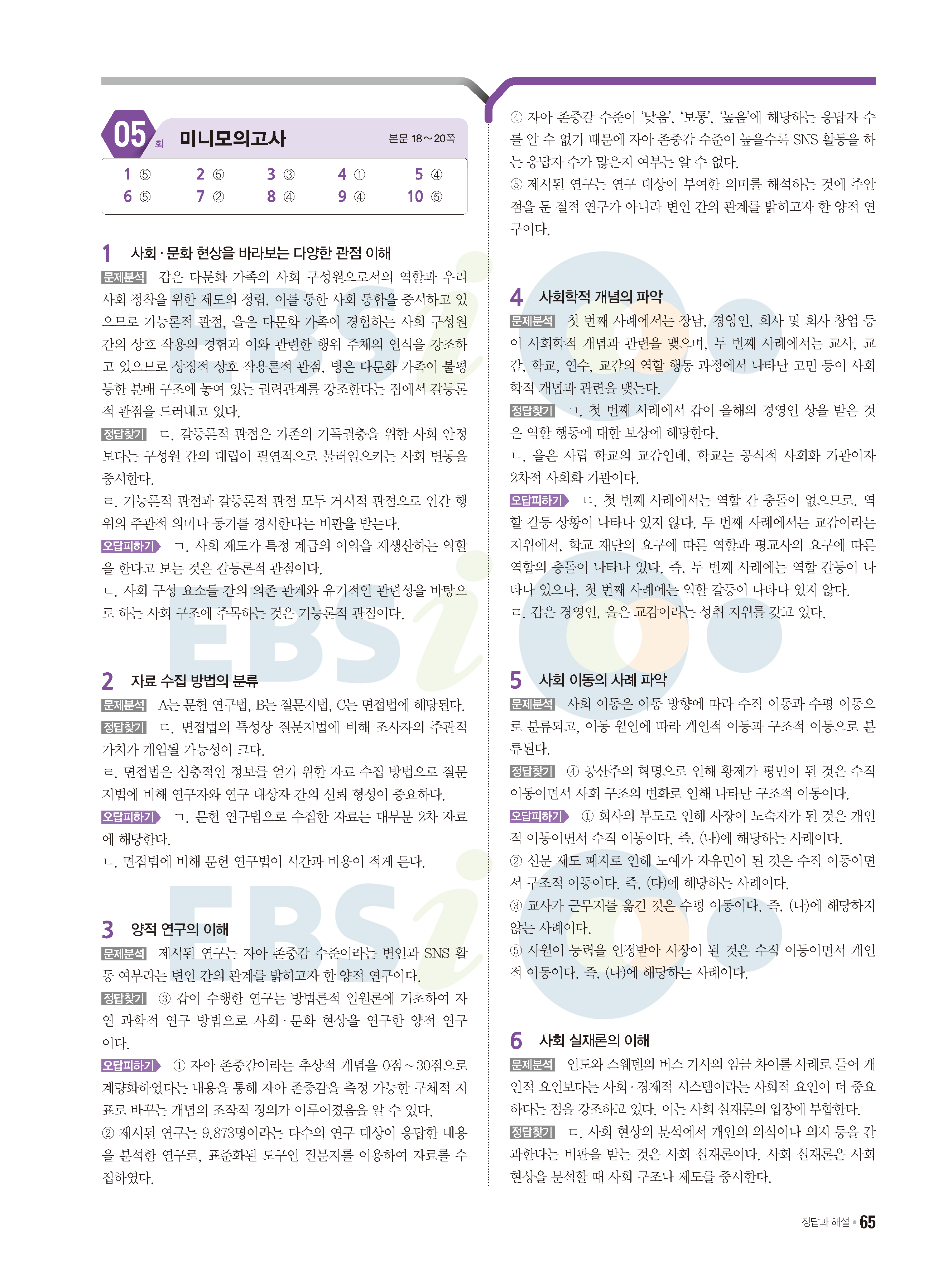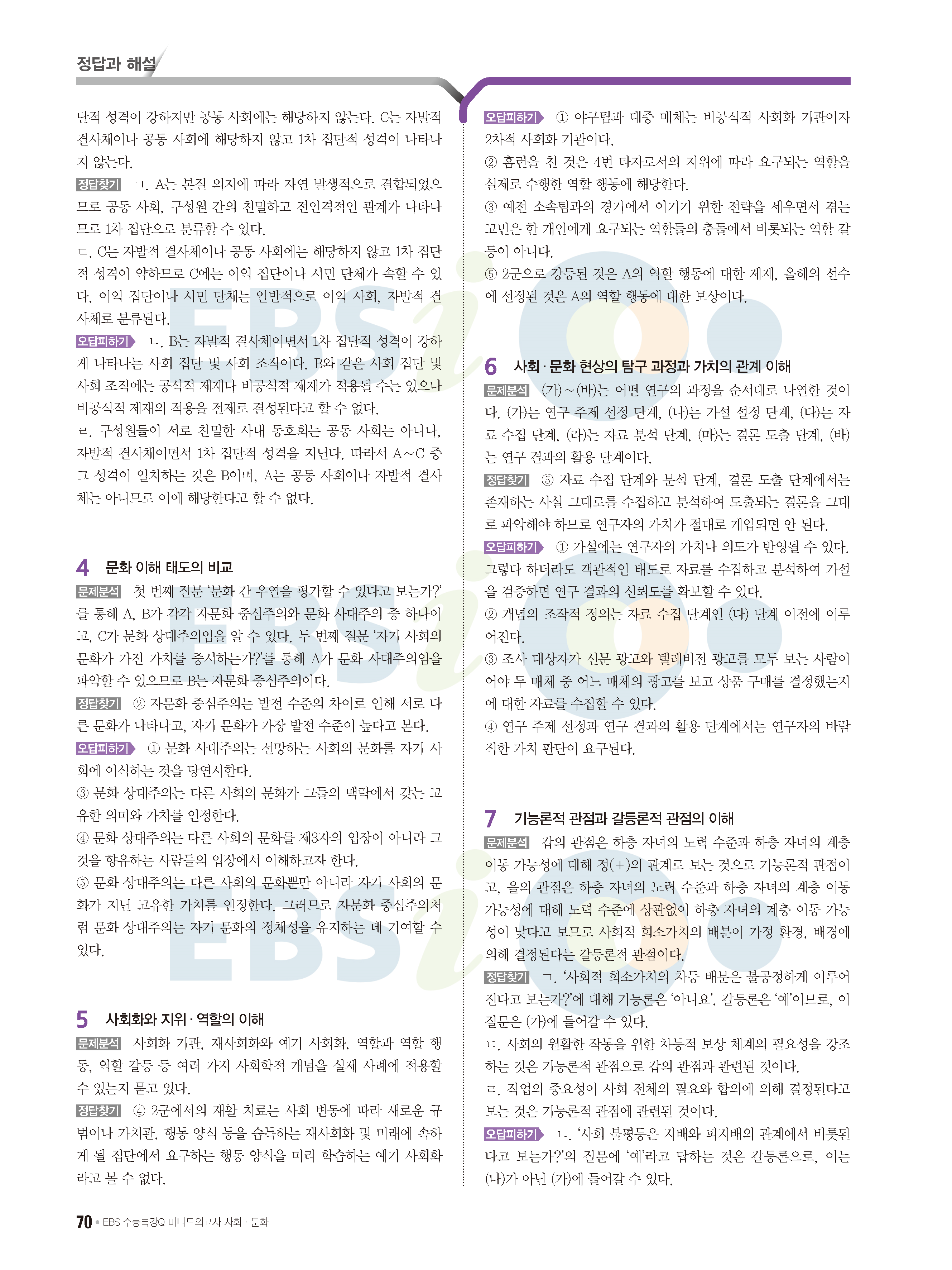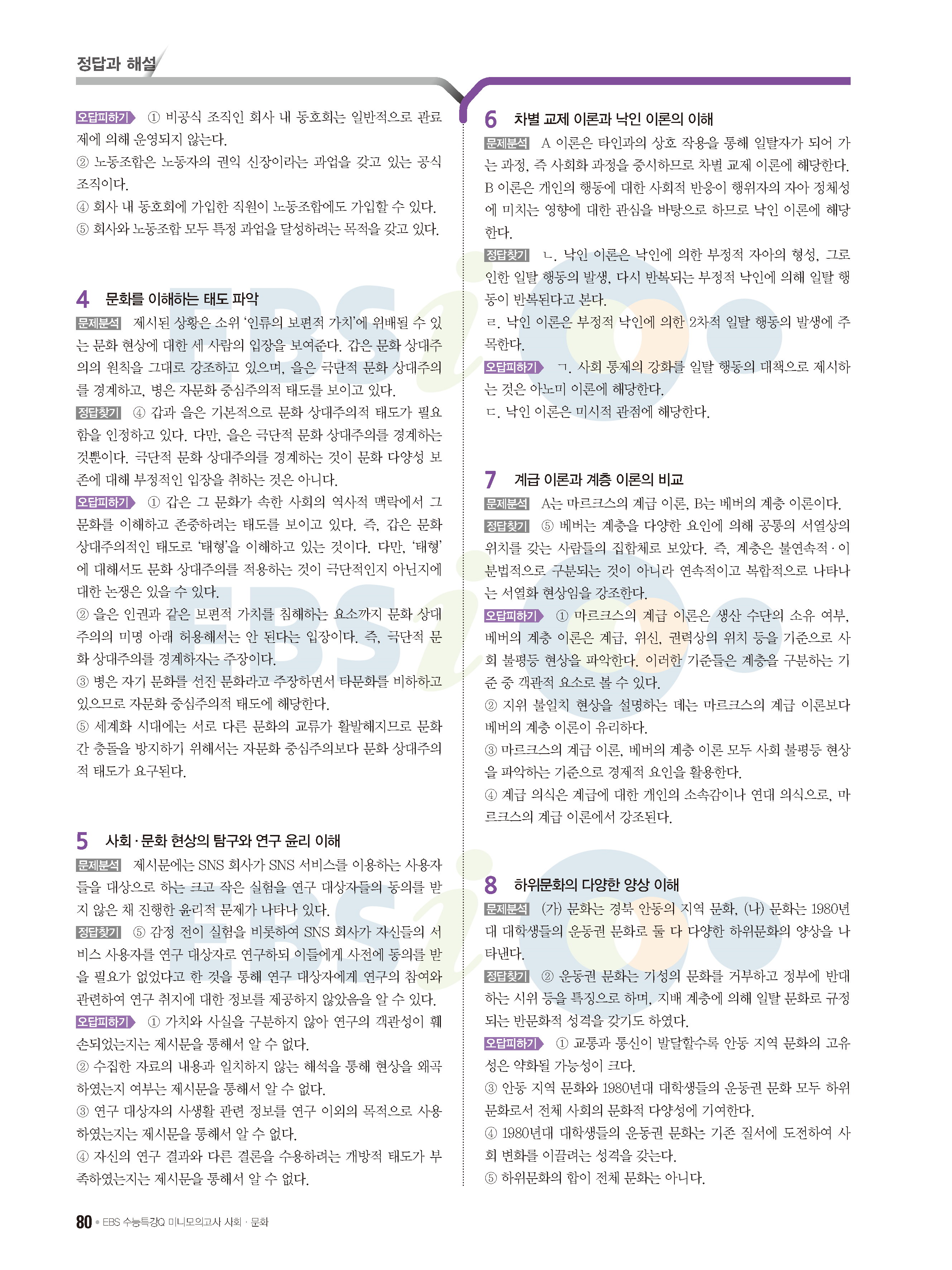 2022 EBS 수능특강큐 미니모의고사 사회문화 답지 해설 사진답지 모바일최적화