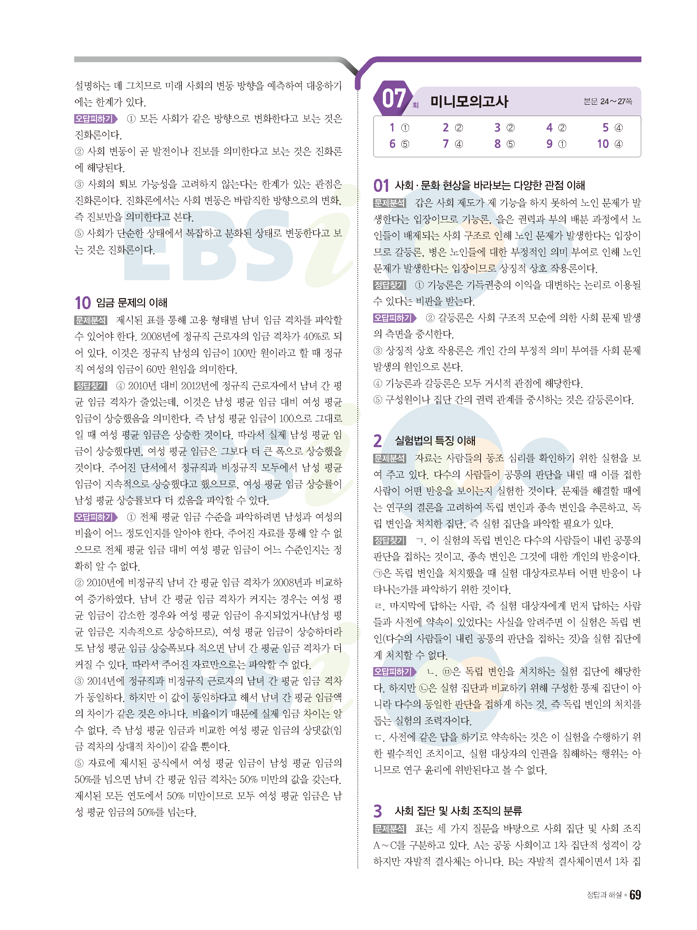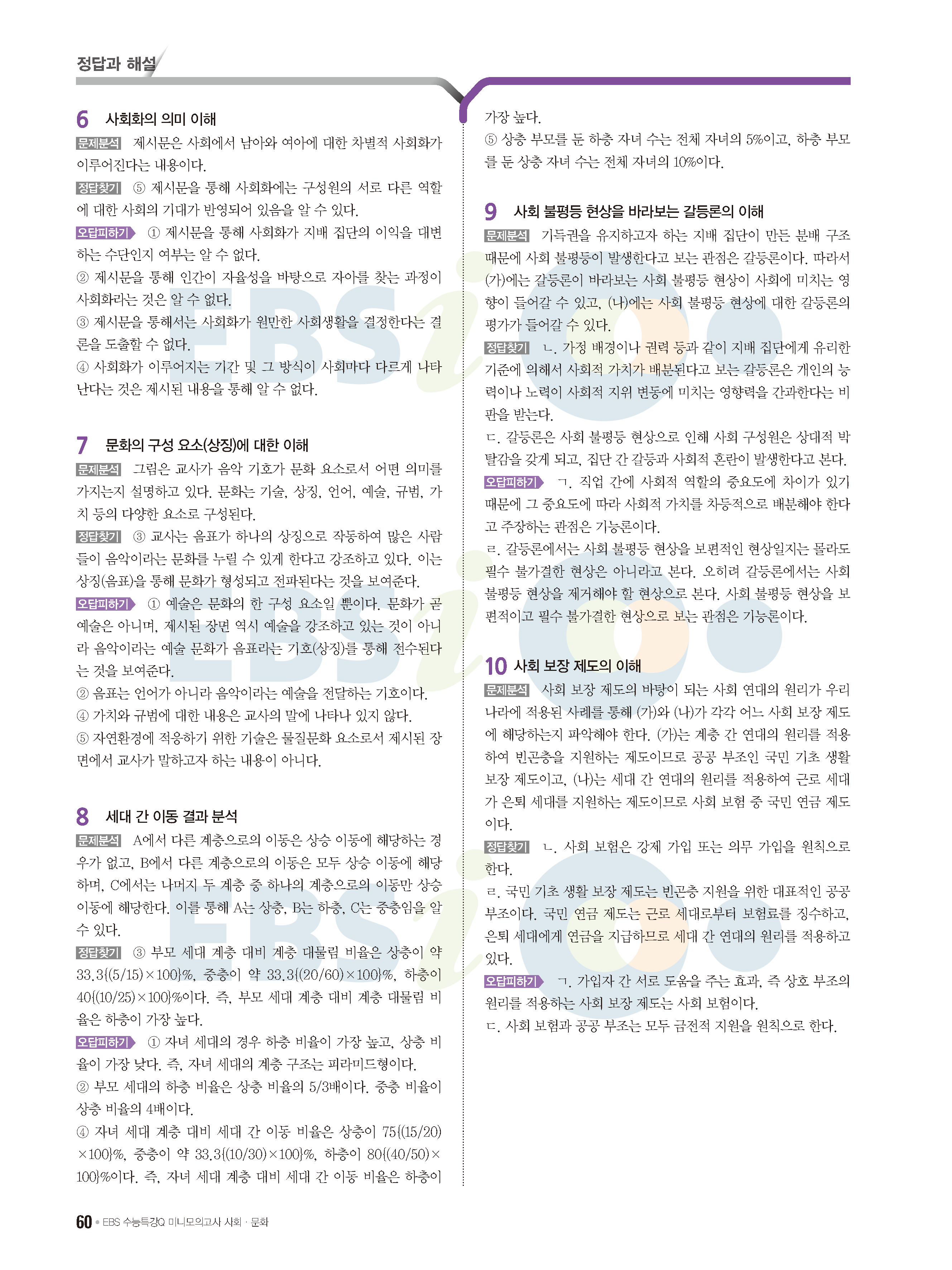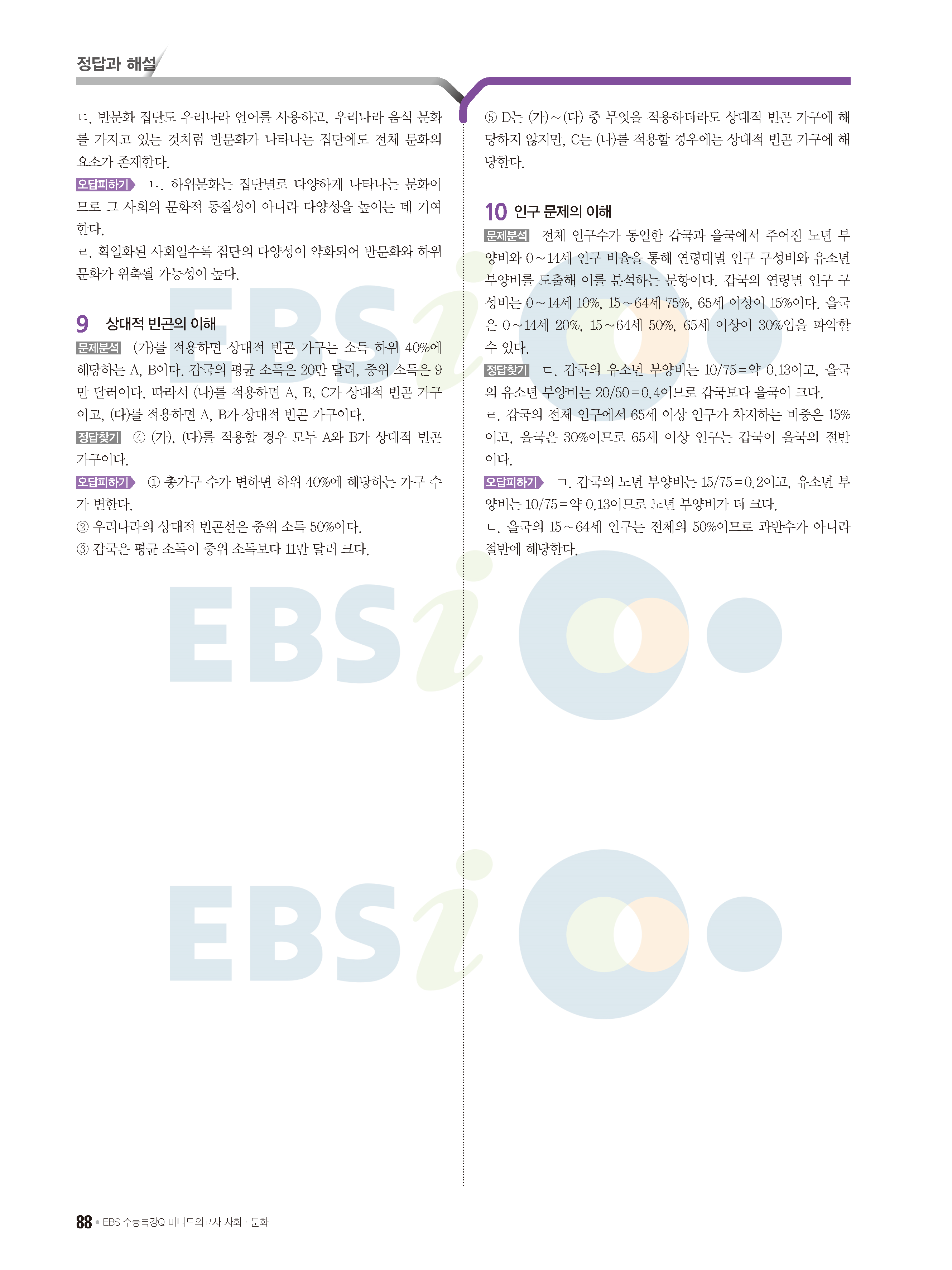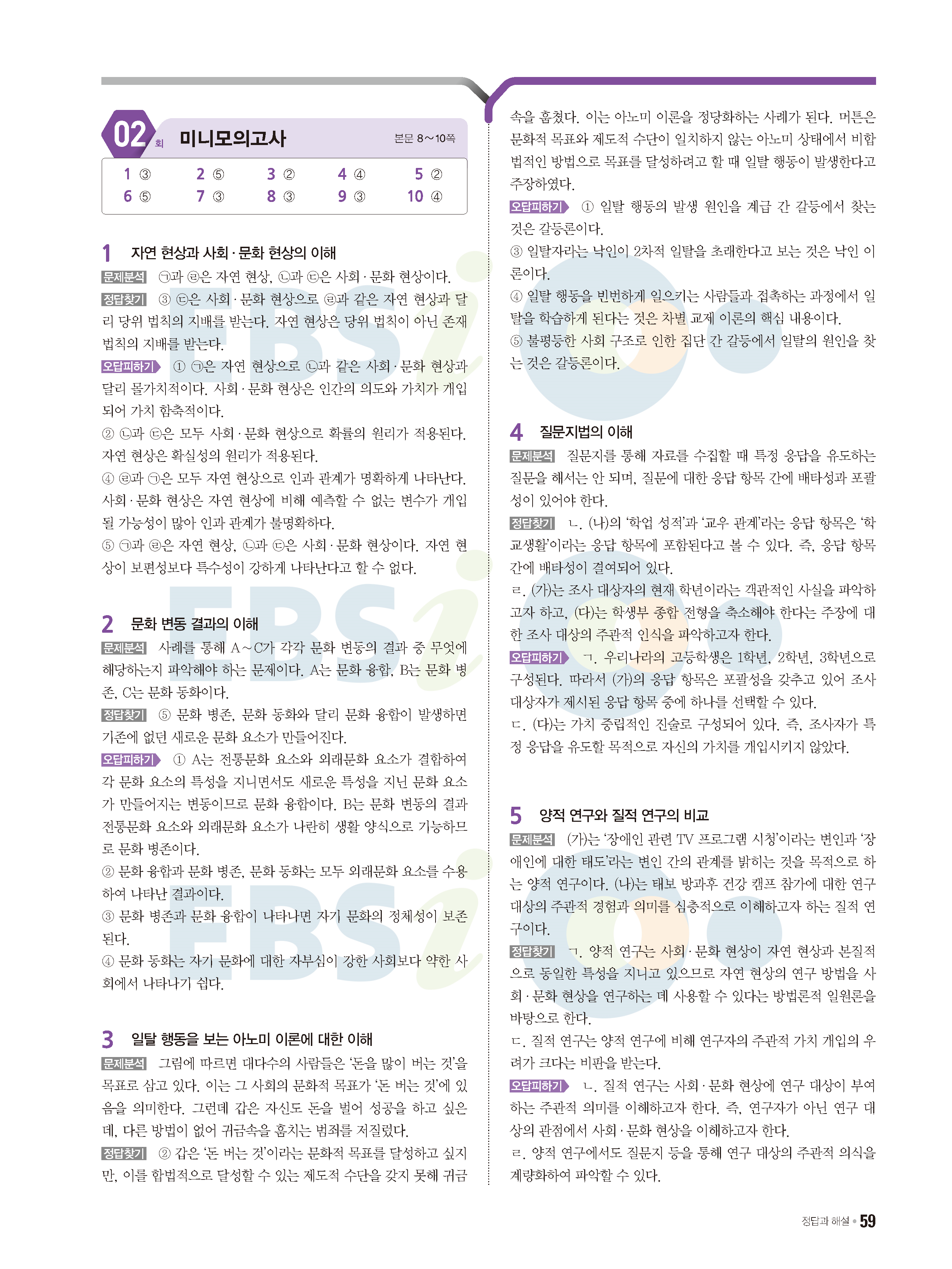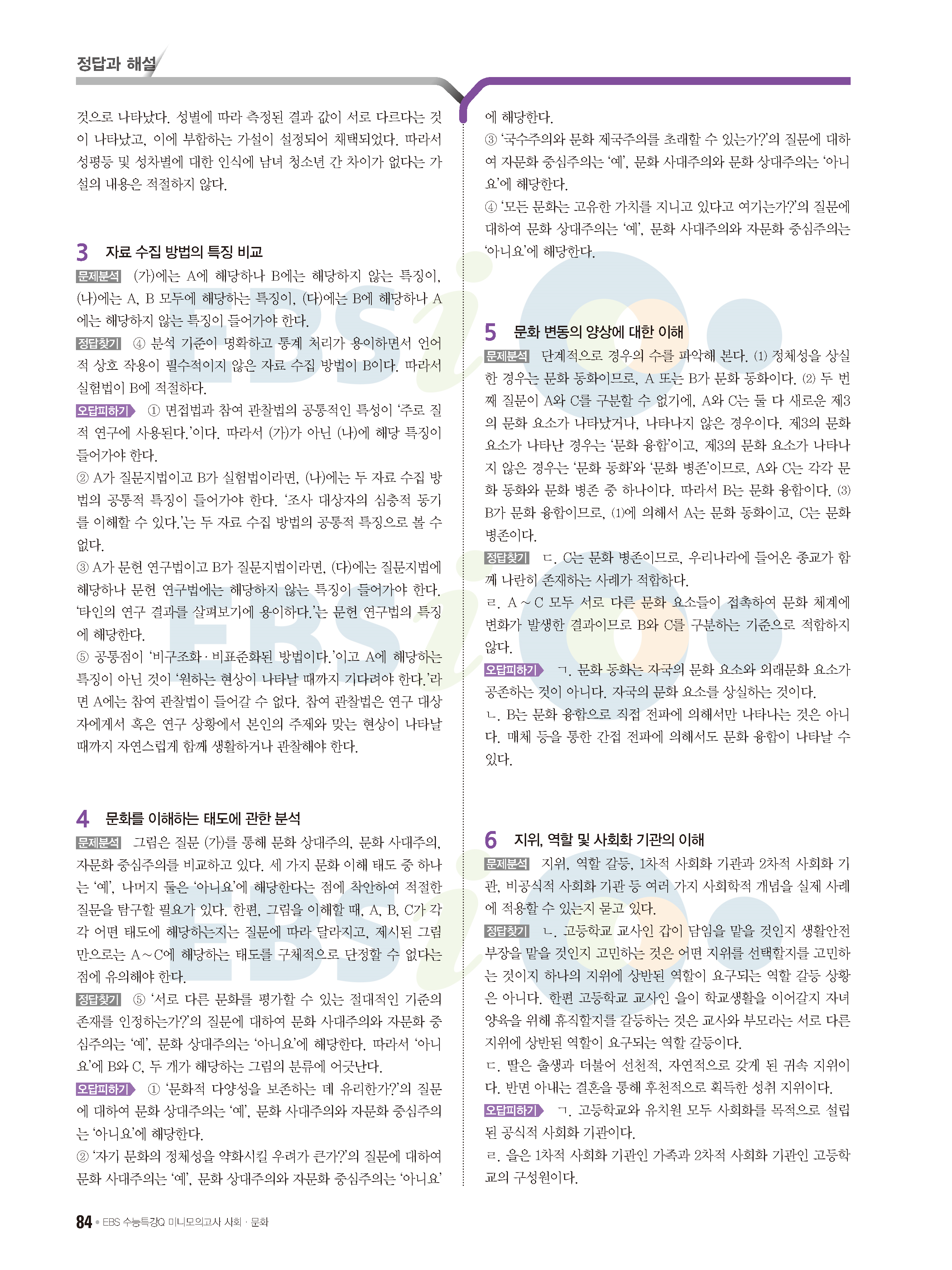 2022 EBS 수능특강큐 미니모의고사 사회문화 답지 해설 사진답지 모바일최적화