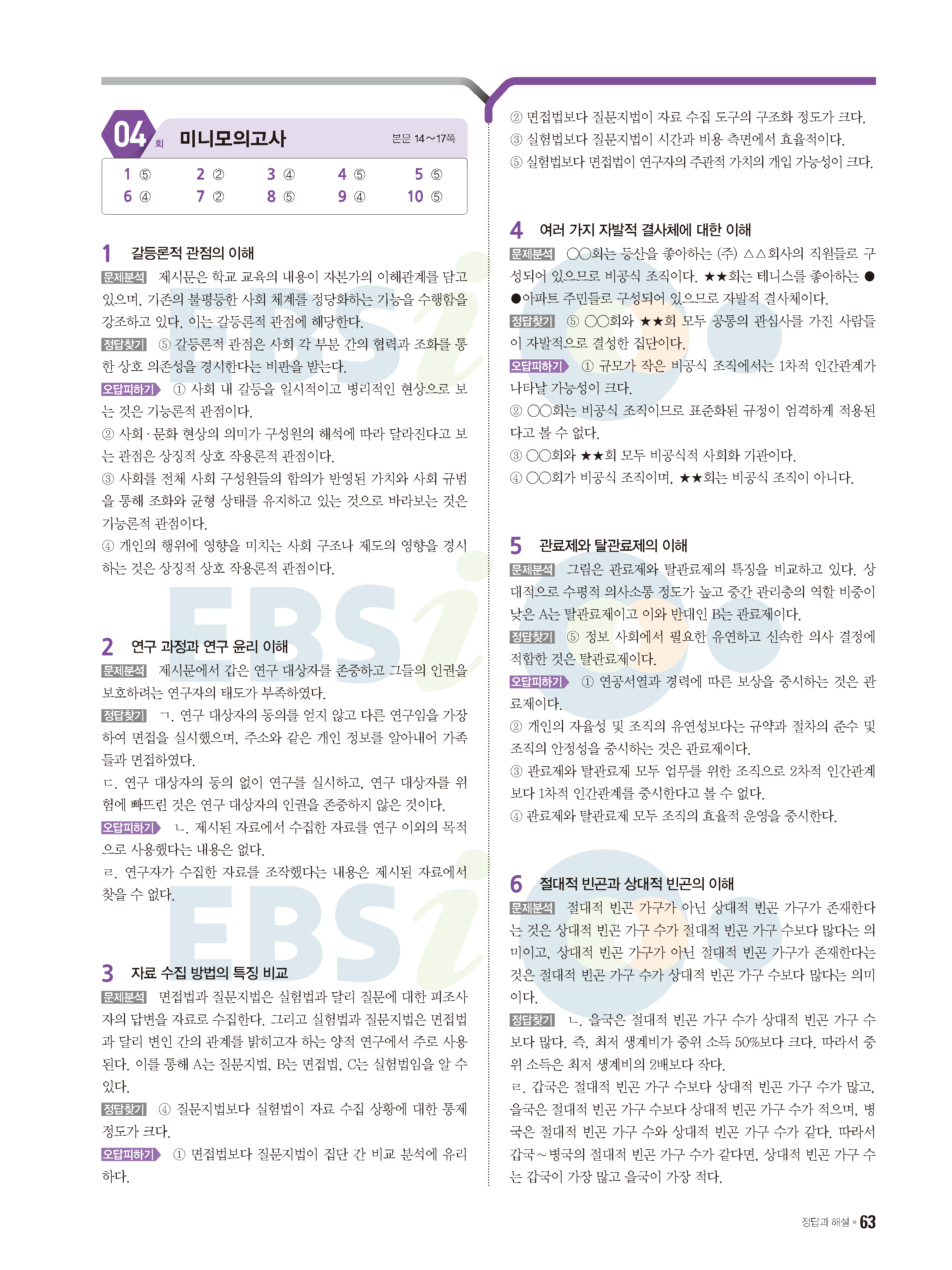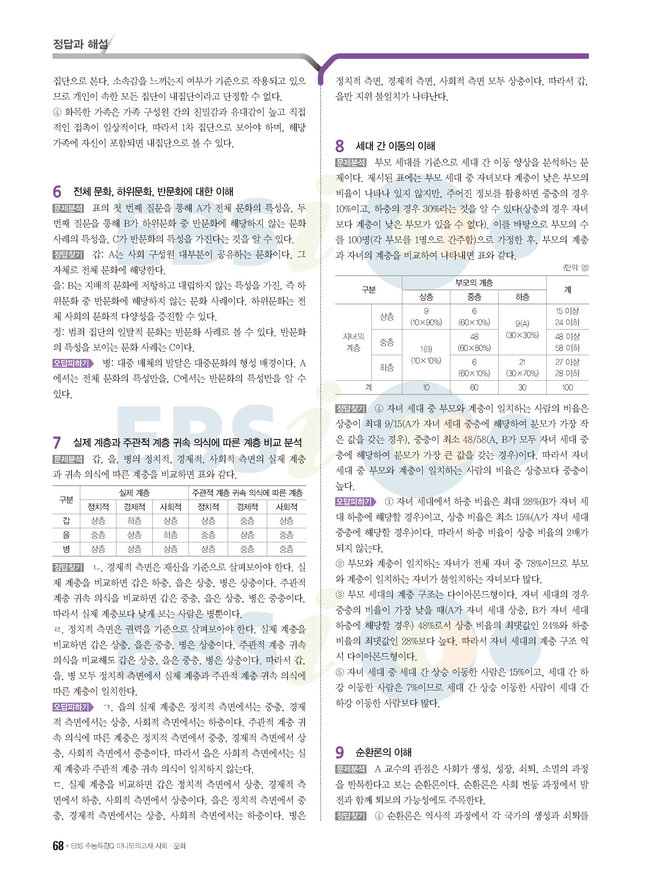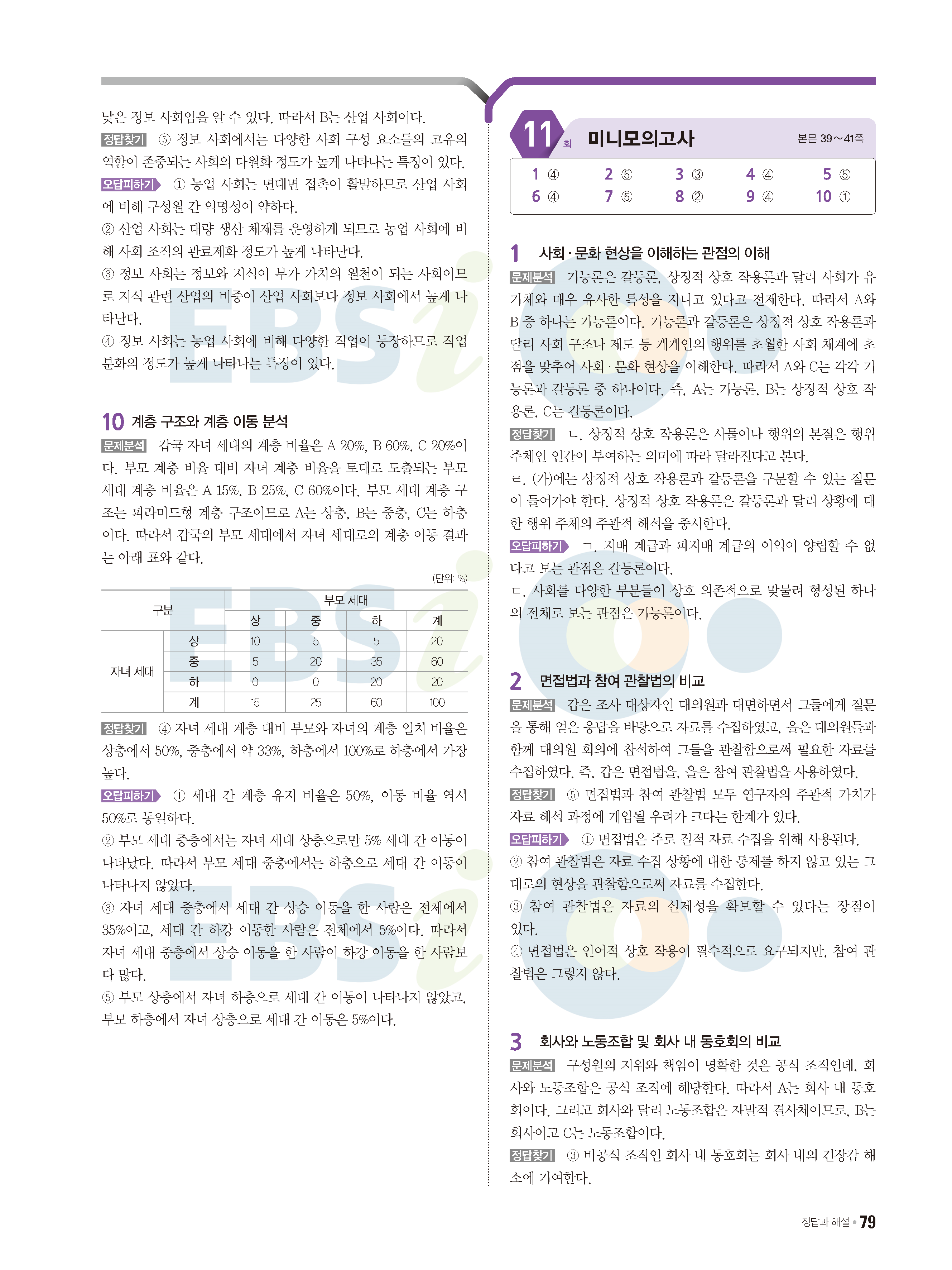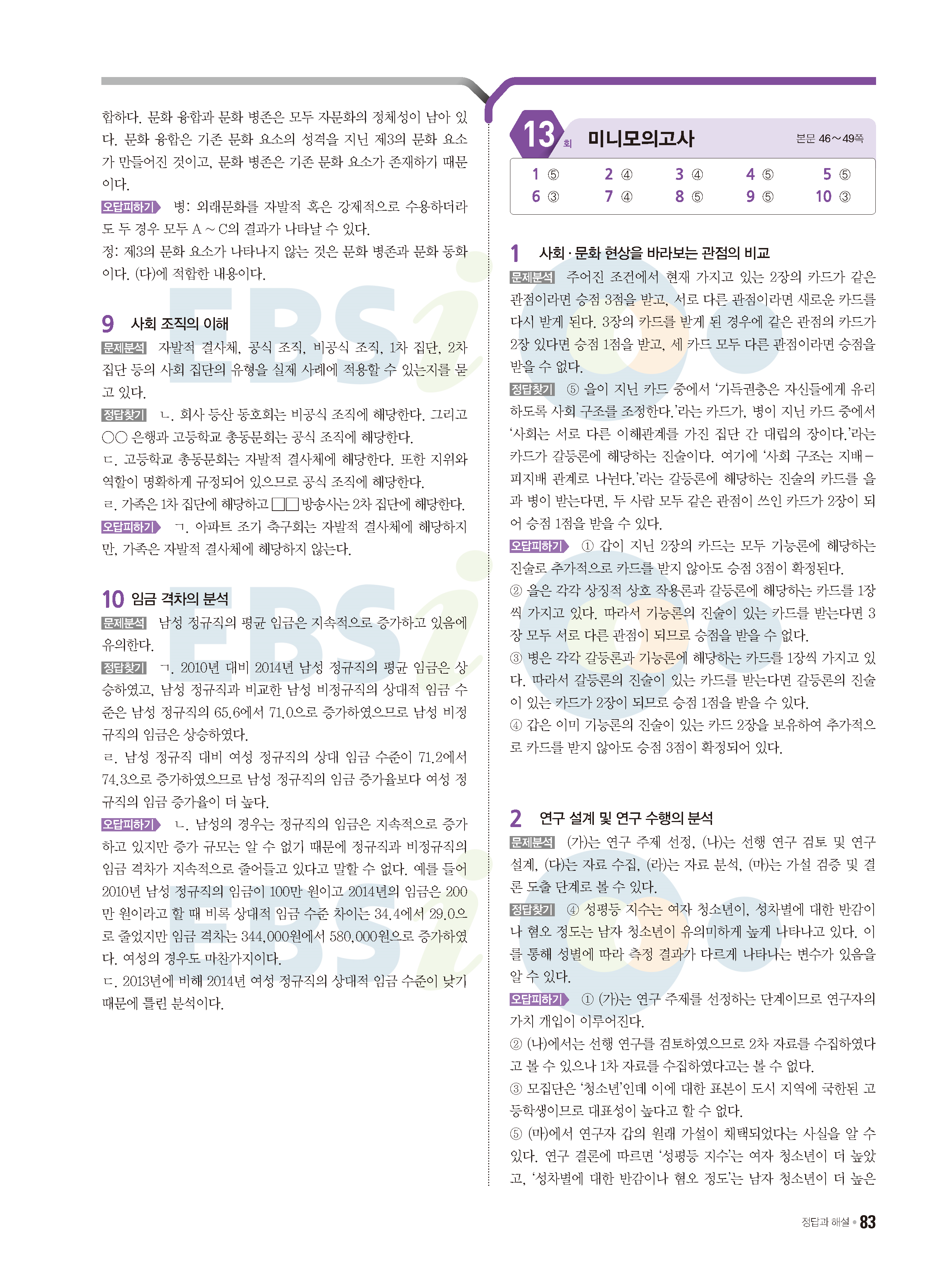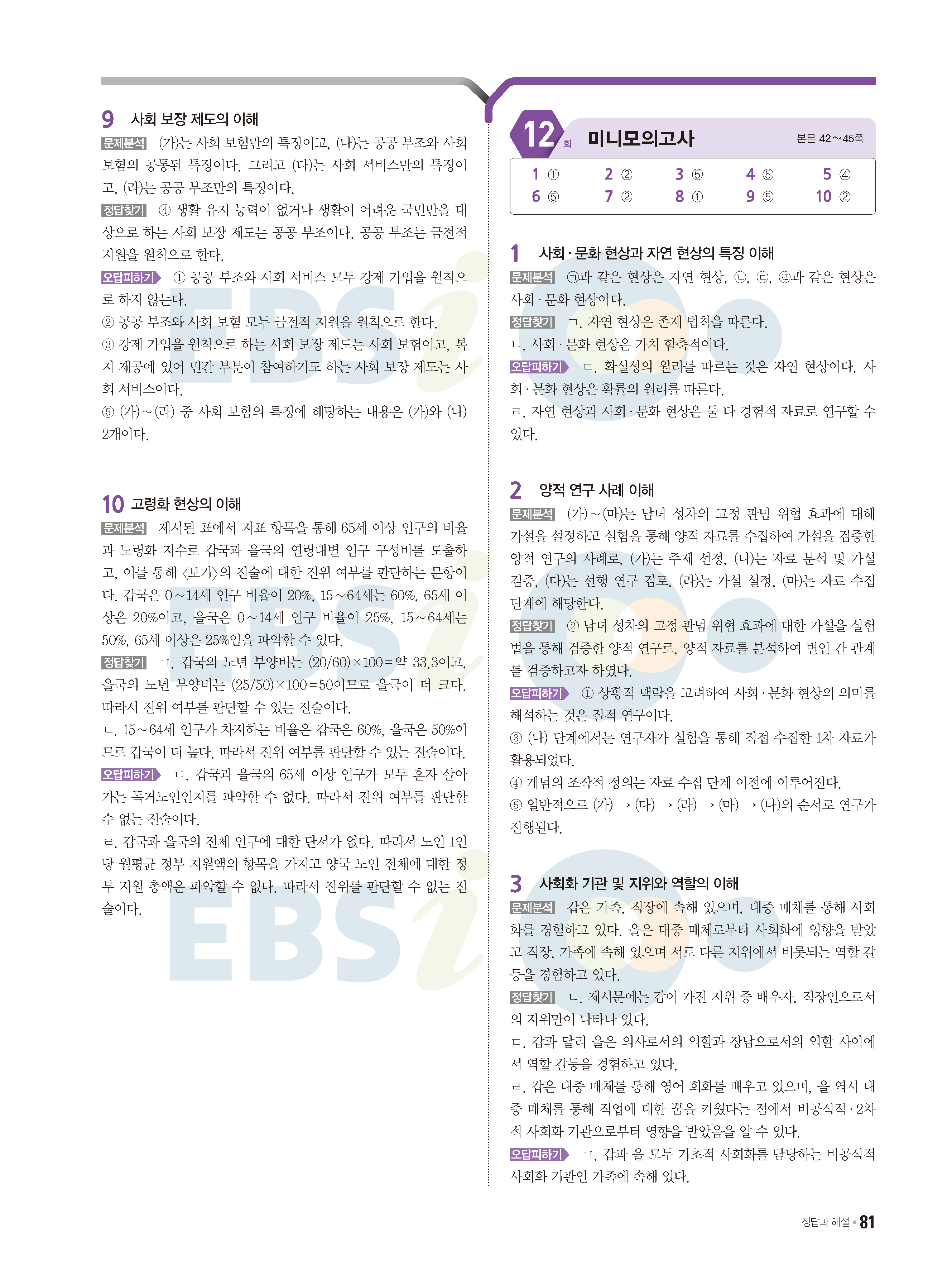 2022 EBS 수능특강큐 미니모의고사 사회문화 답지 해설 사진답지 모바일최적화