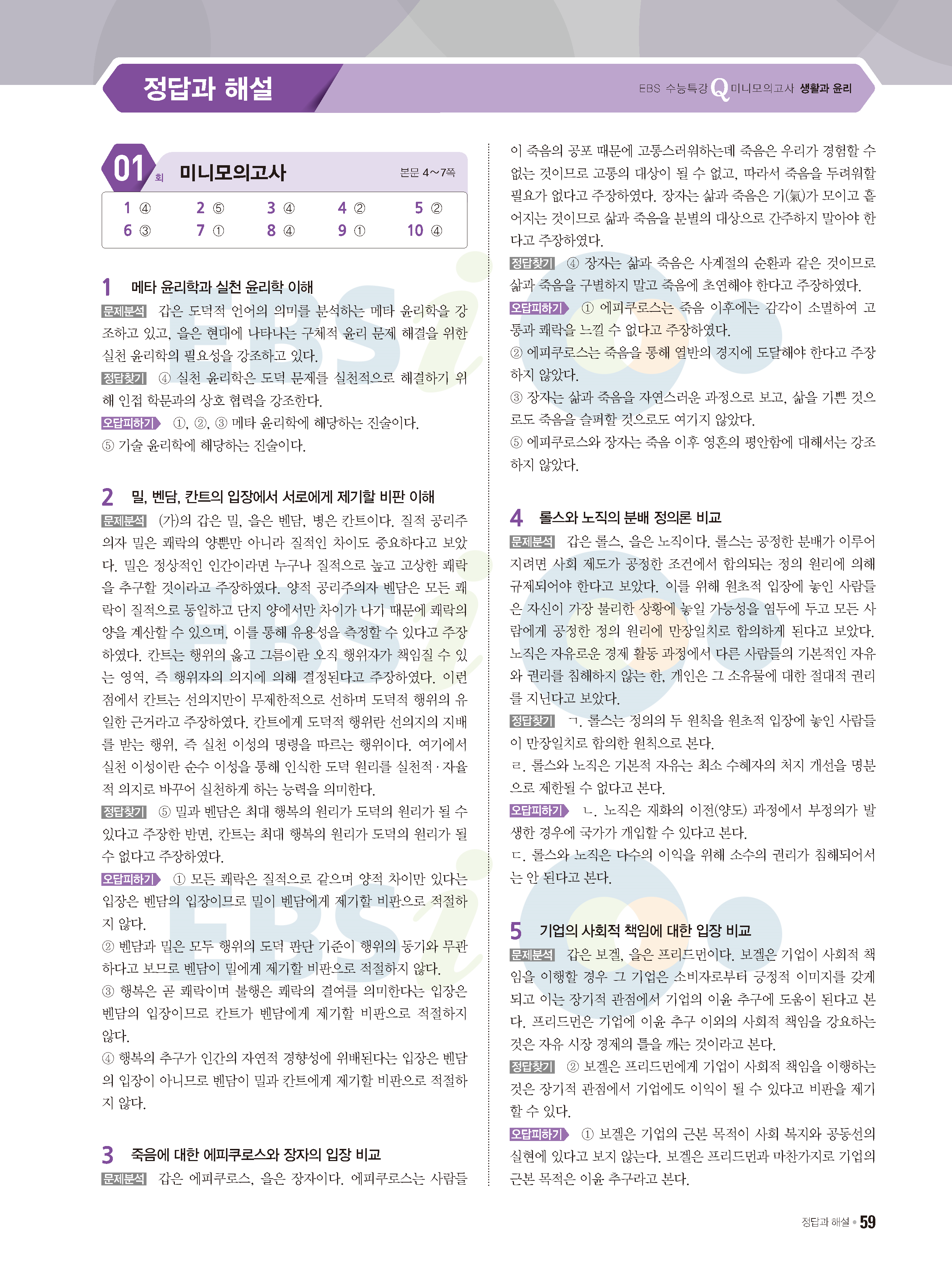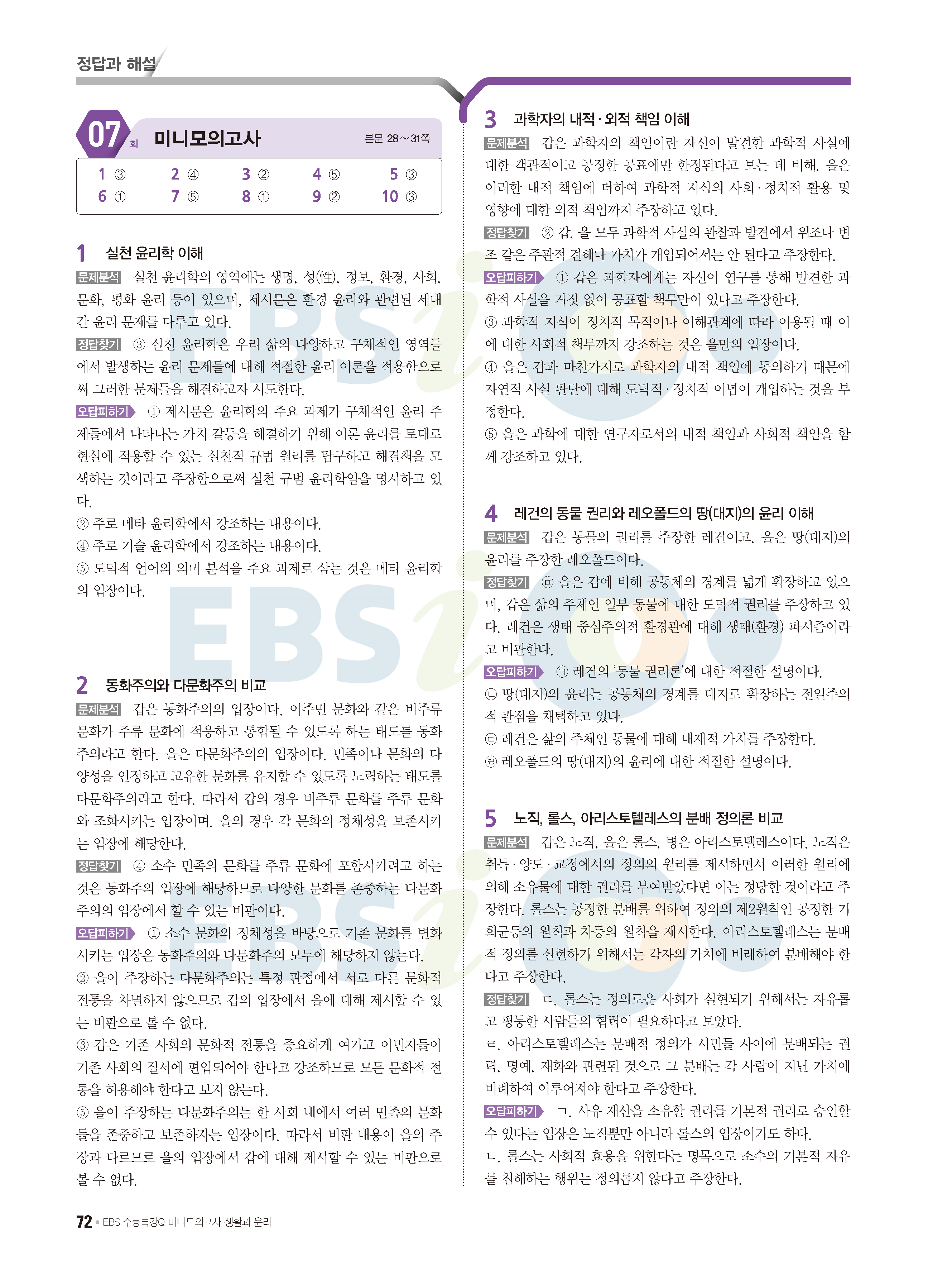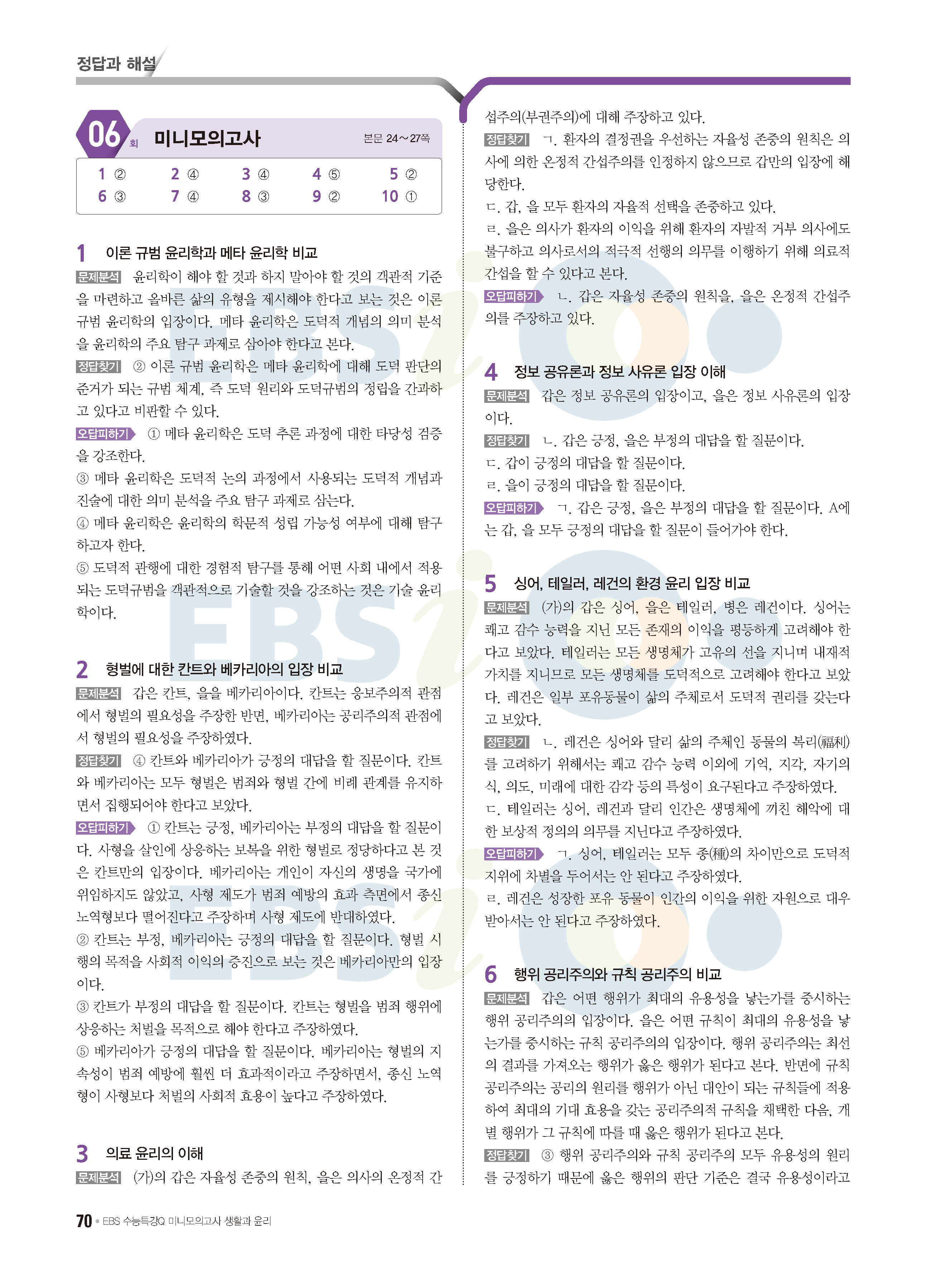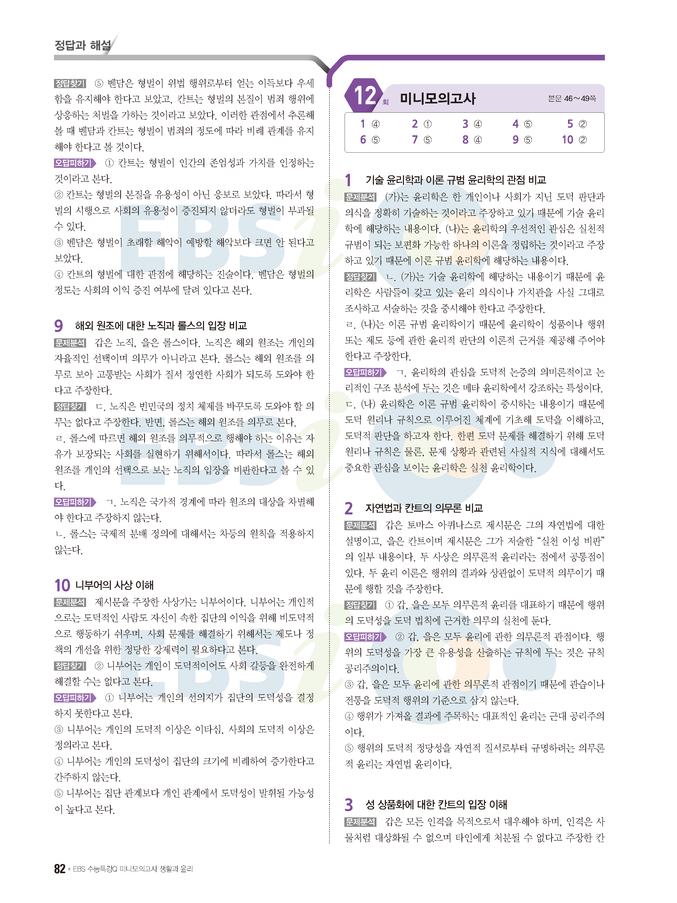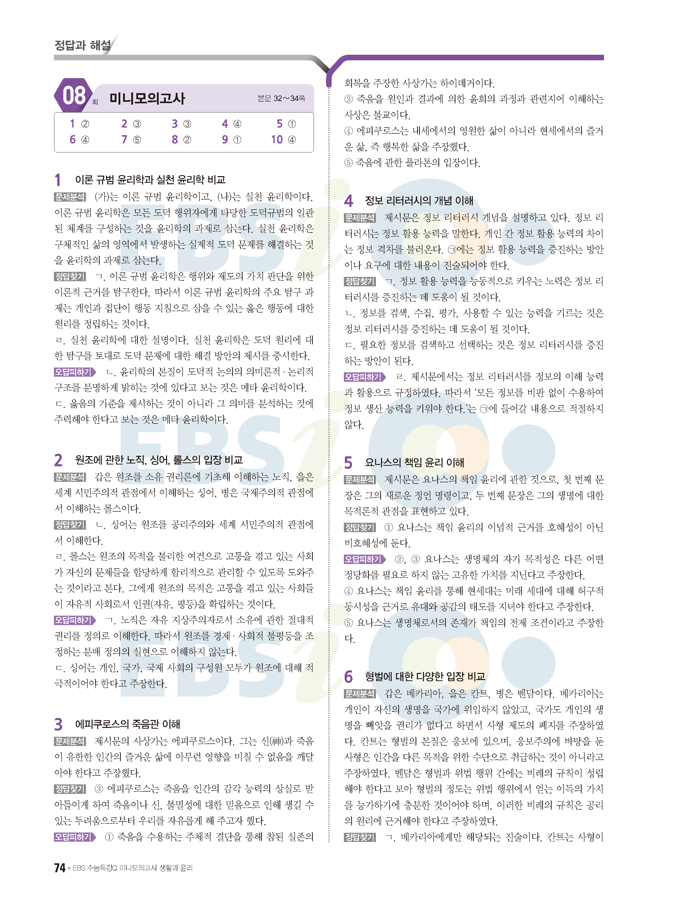 2022 EBS 수능특강큐 미니모의고사 생활과윤리 답지 해설 사진답지 모바일최적화