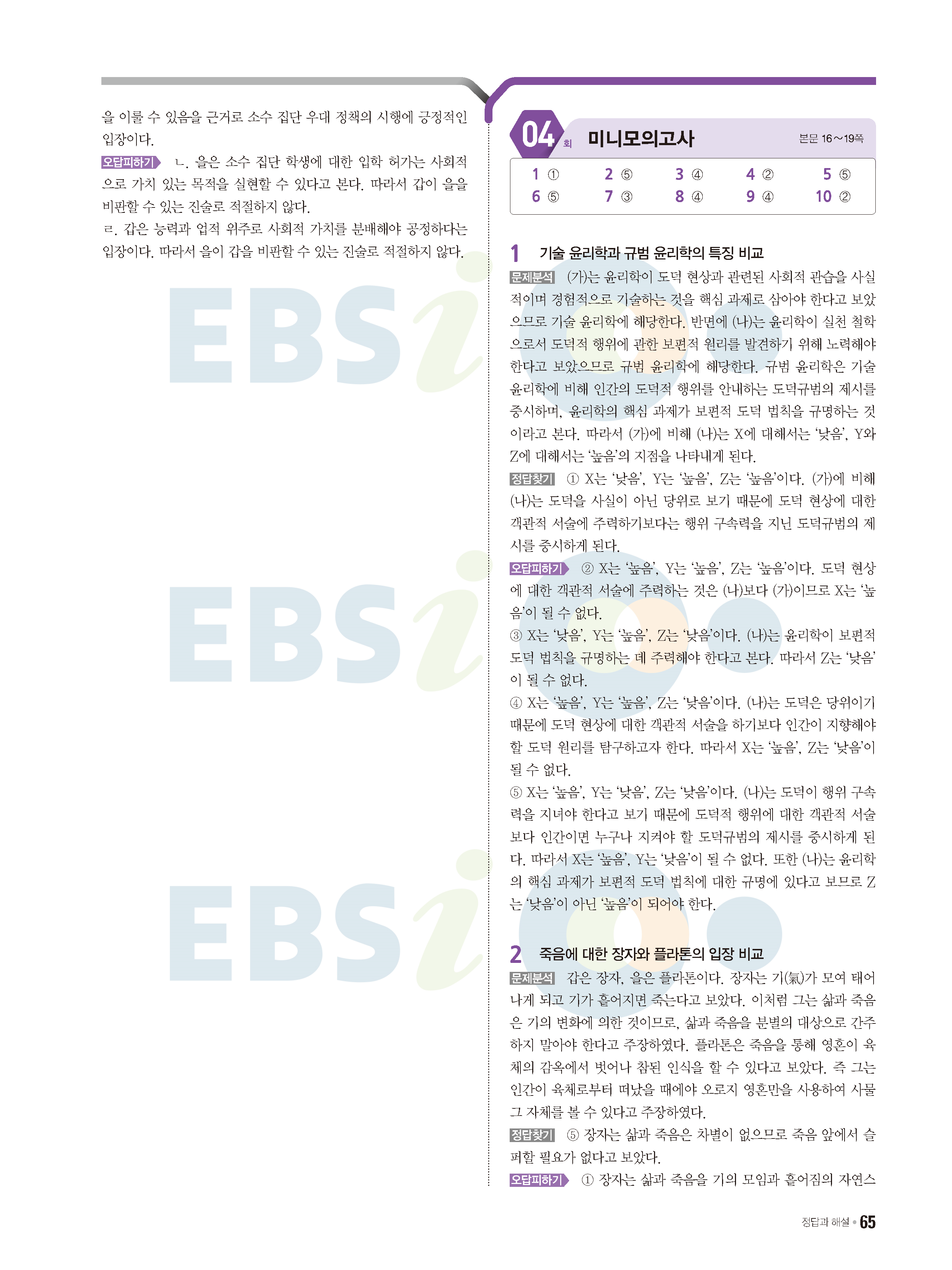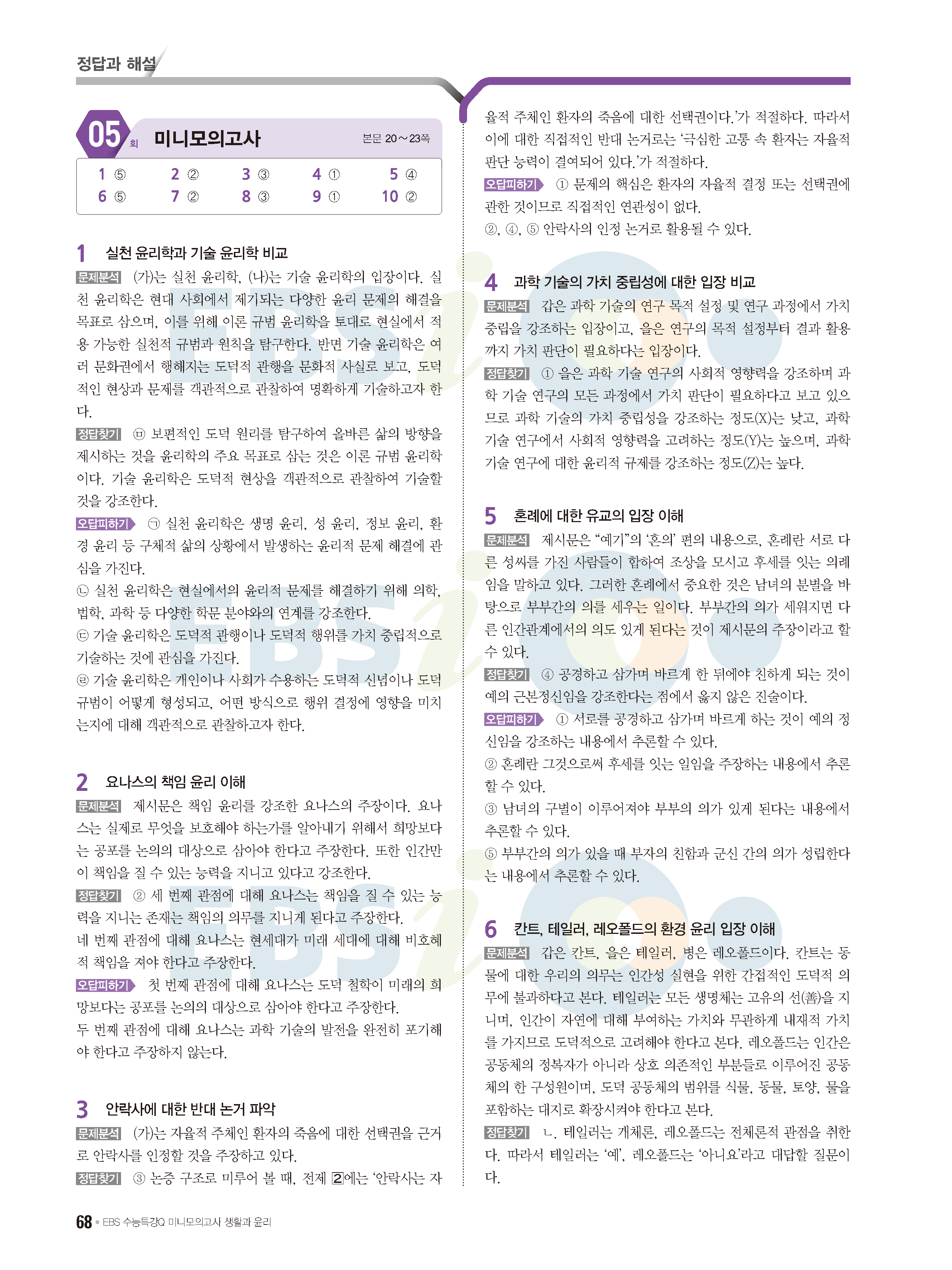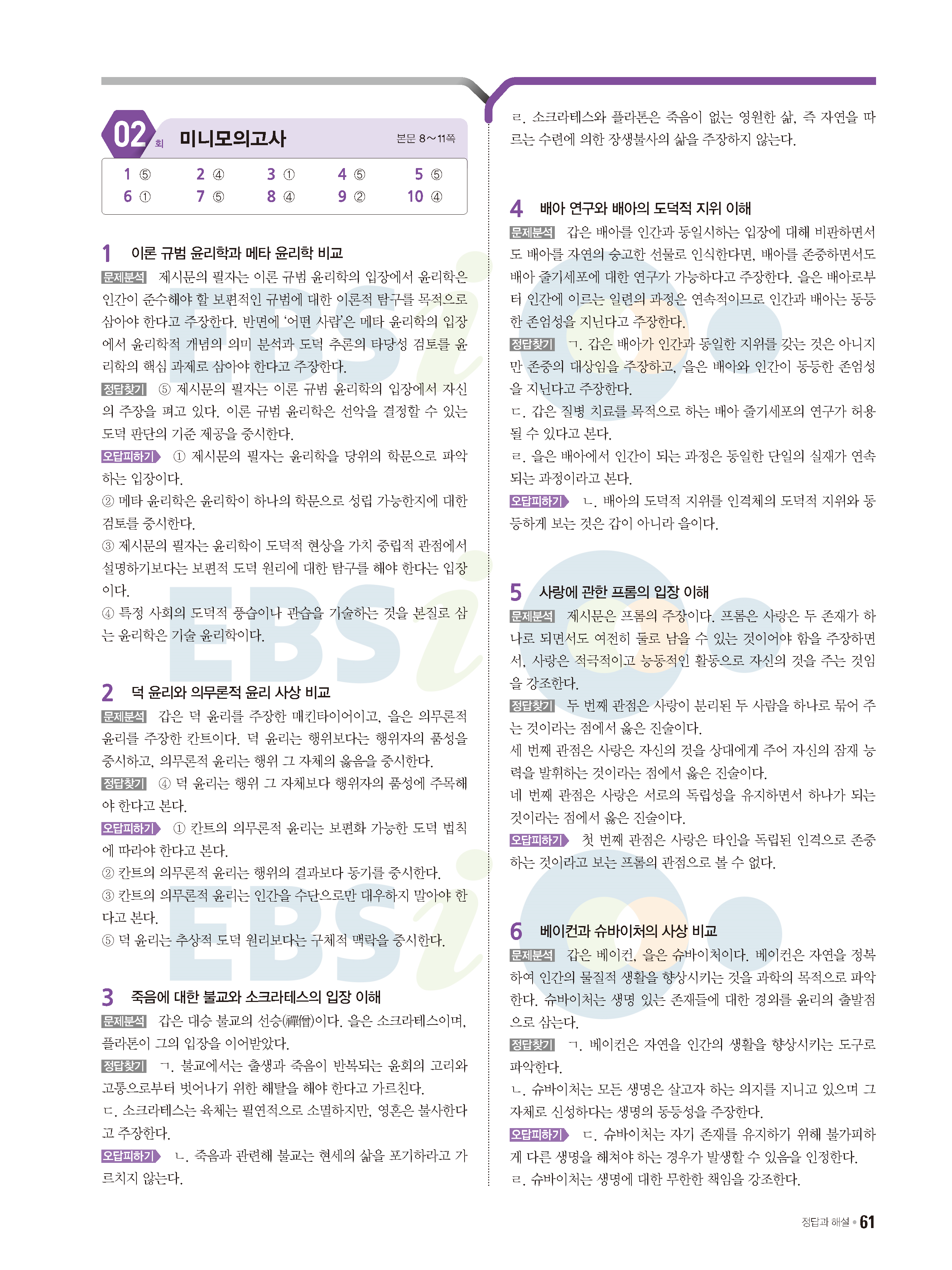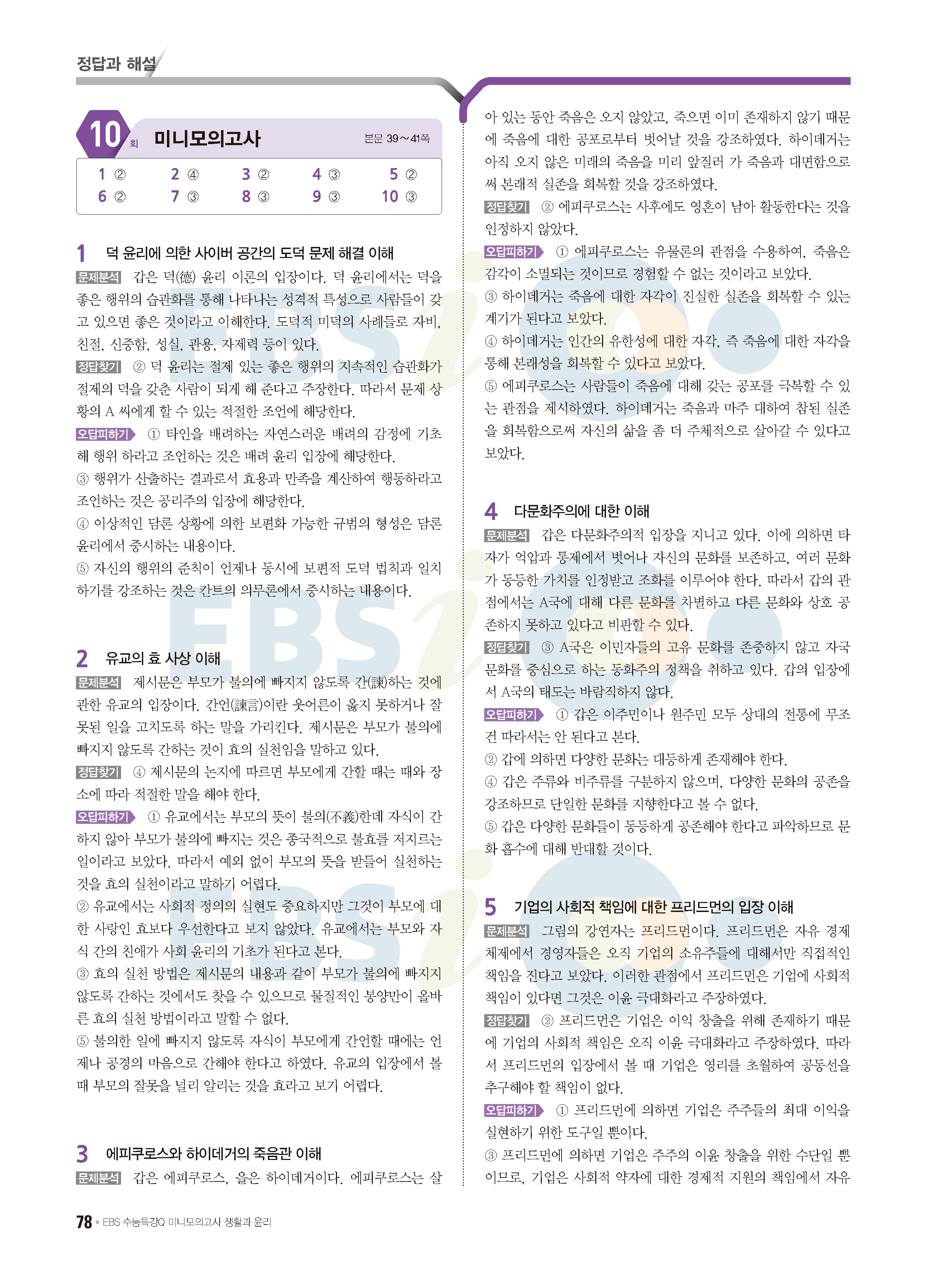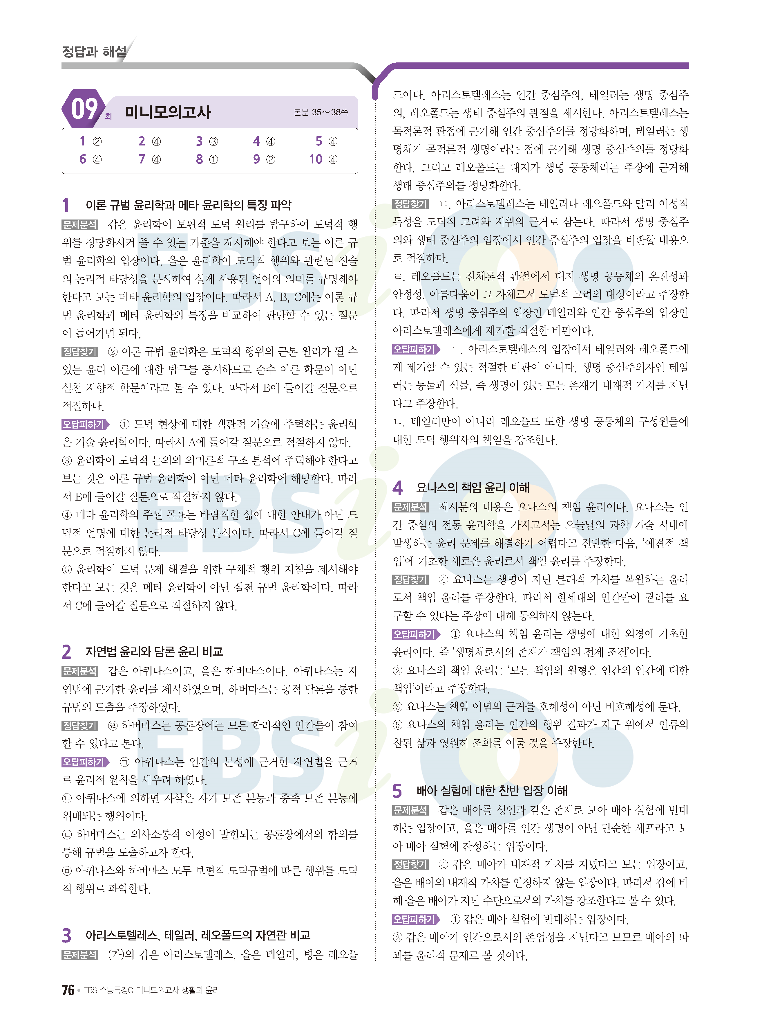 2022 EBS 수능특강큐 미니모의고사 생활과윤리 답지 해설 사진답지 모바일최적화