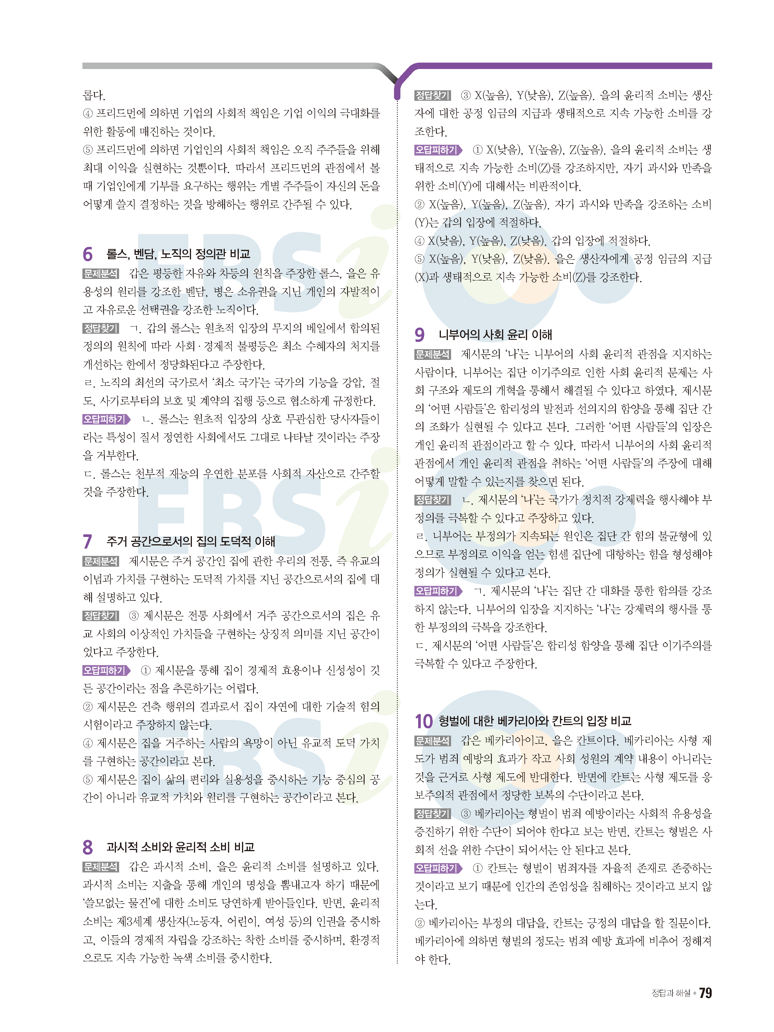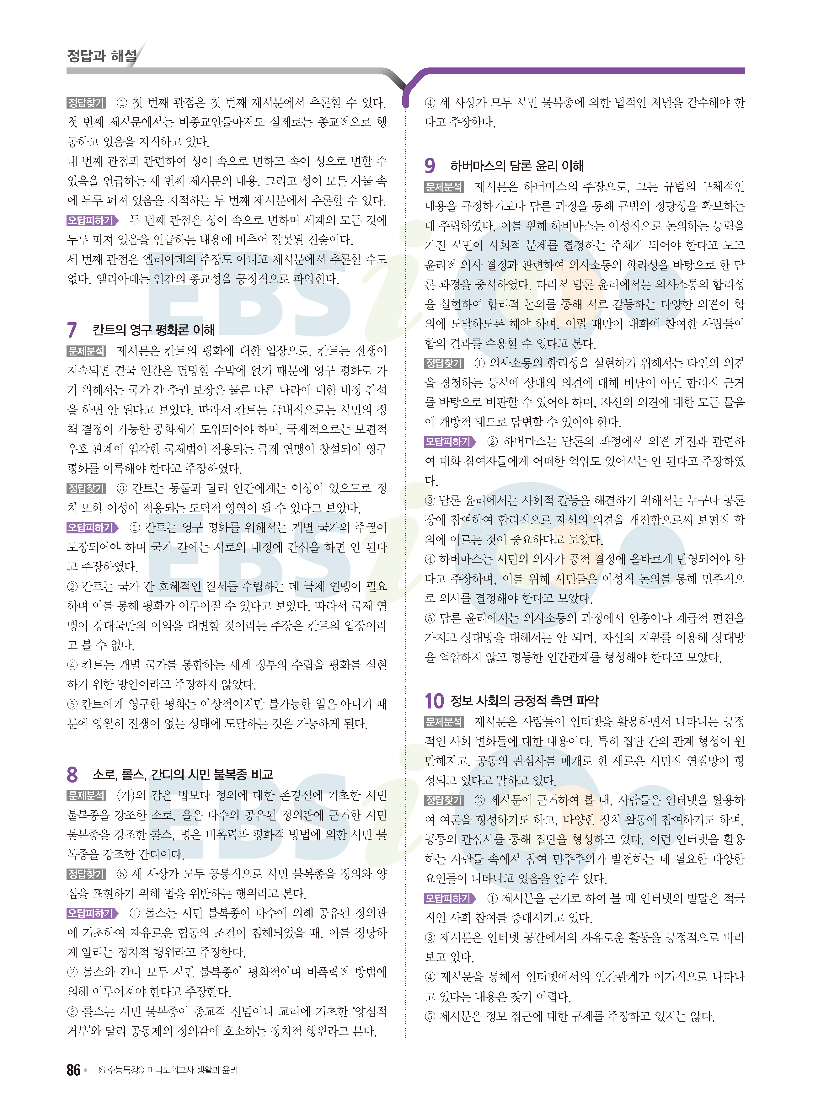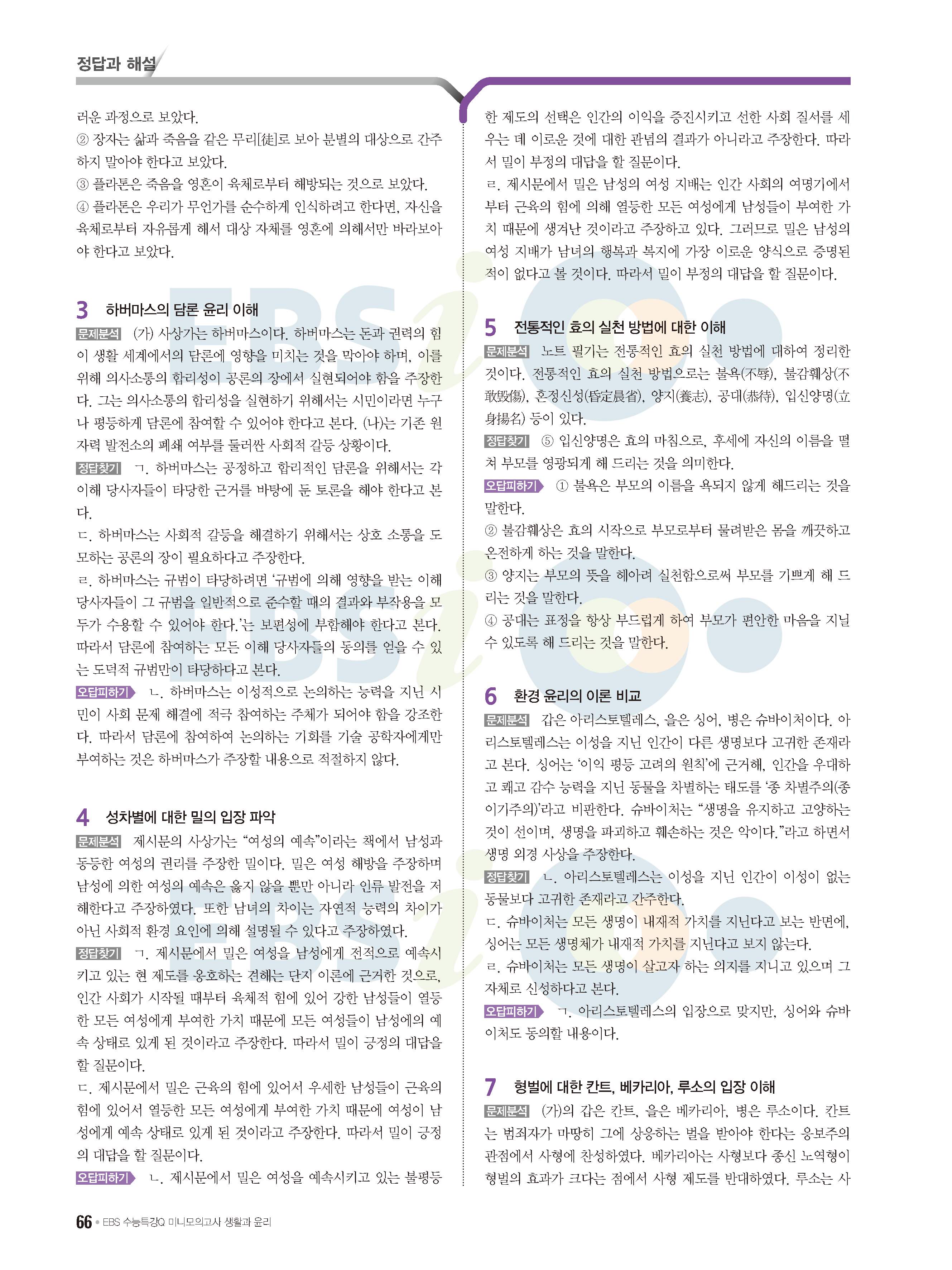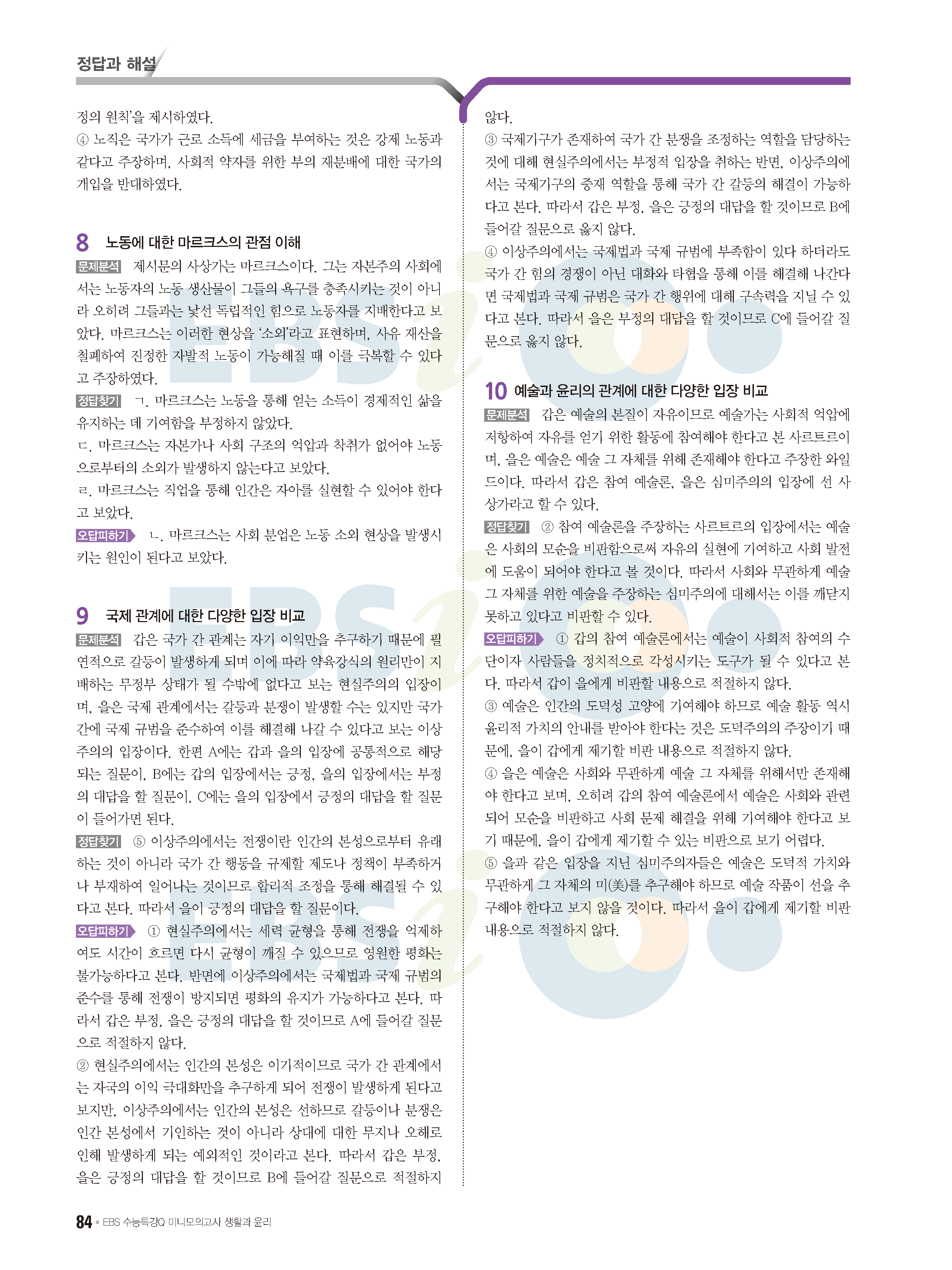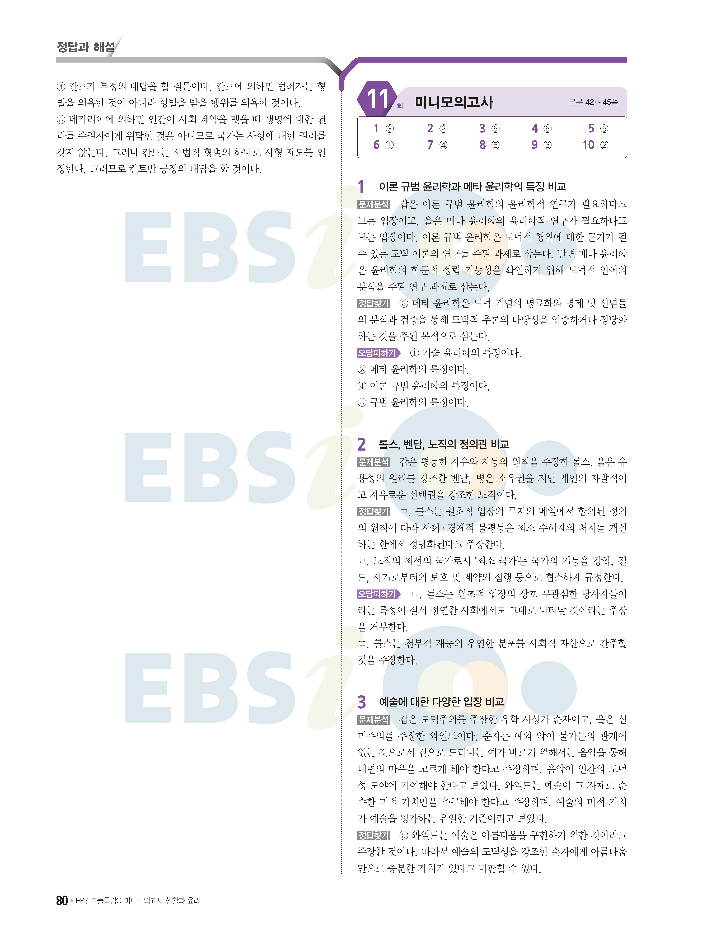 2022 EBS 수능특강큐 미니모의고사 생활과윤리 답지 해설 사진답지 모바일최적화