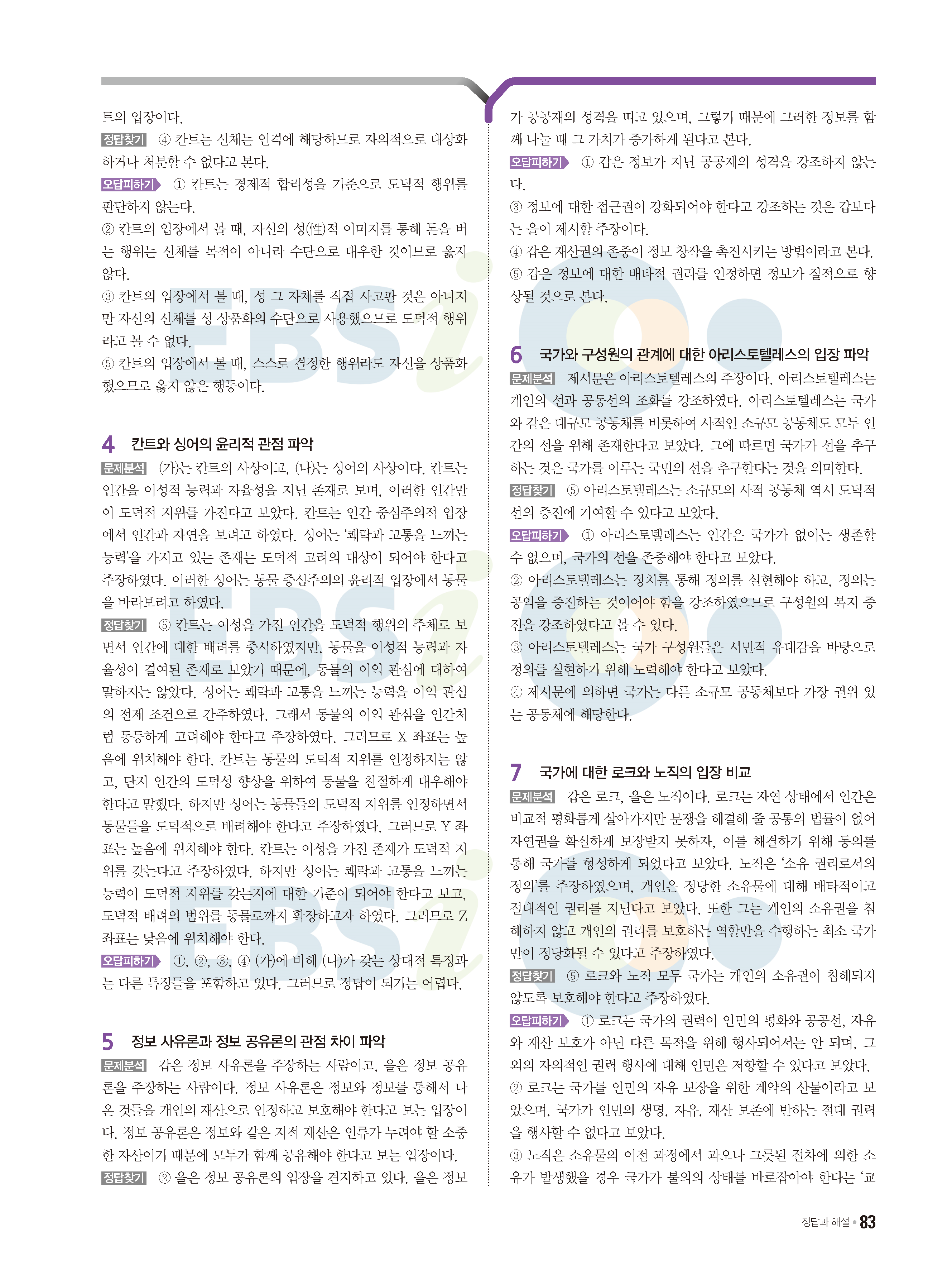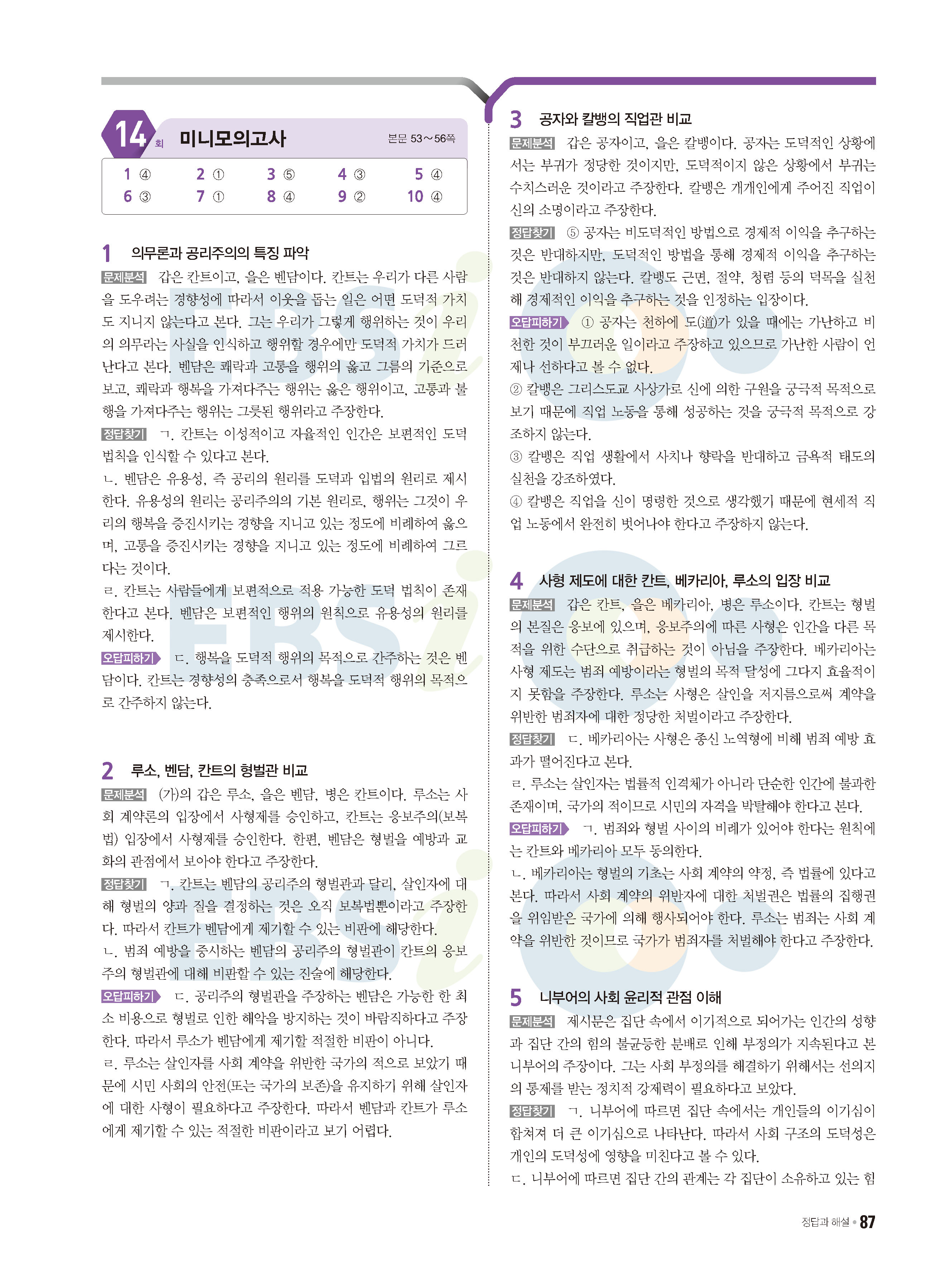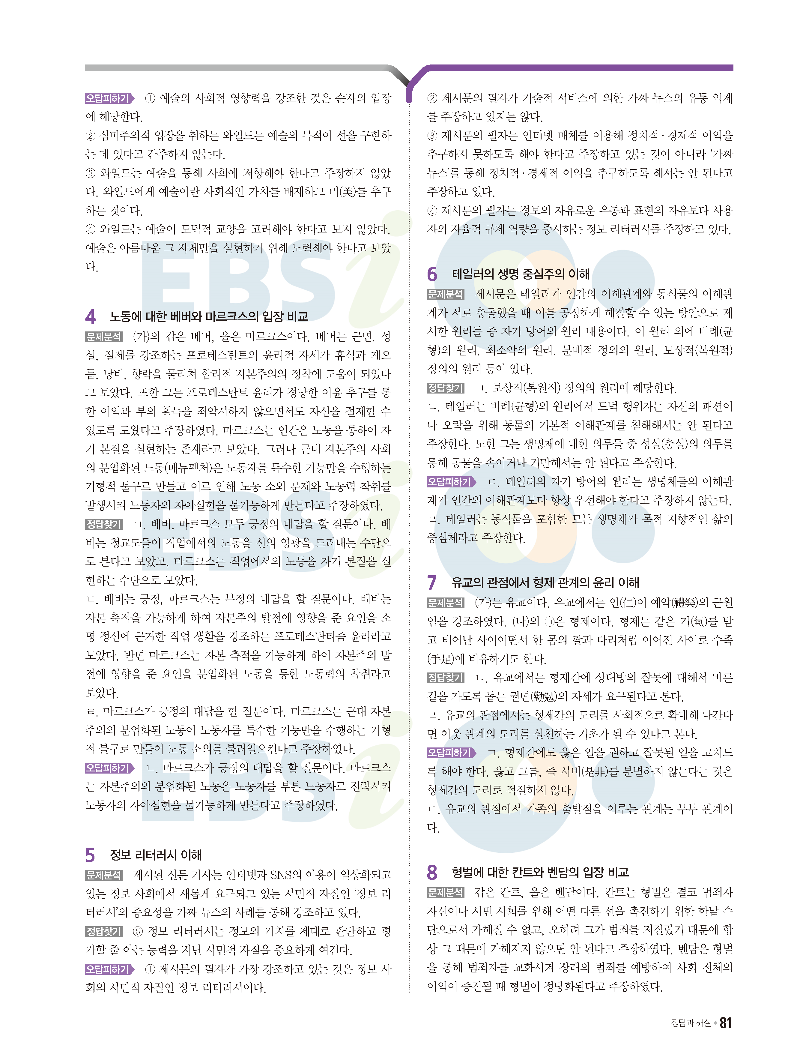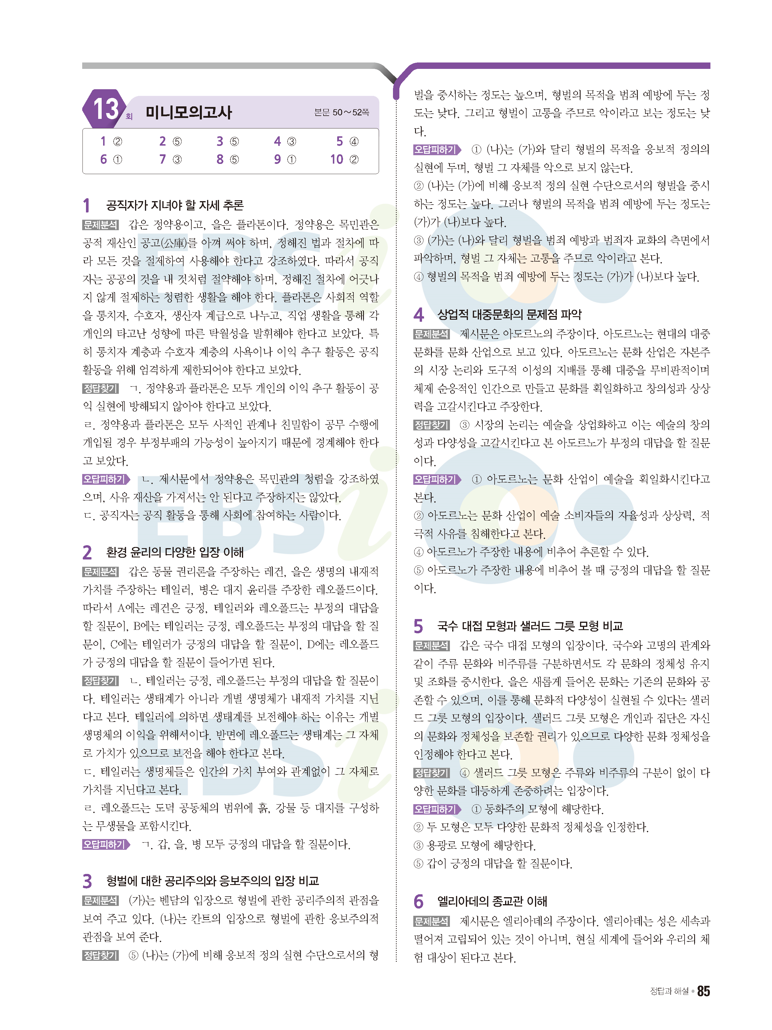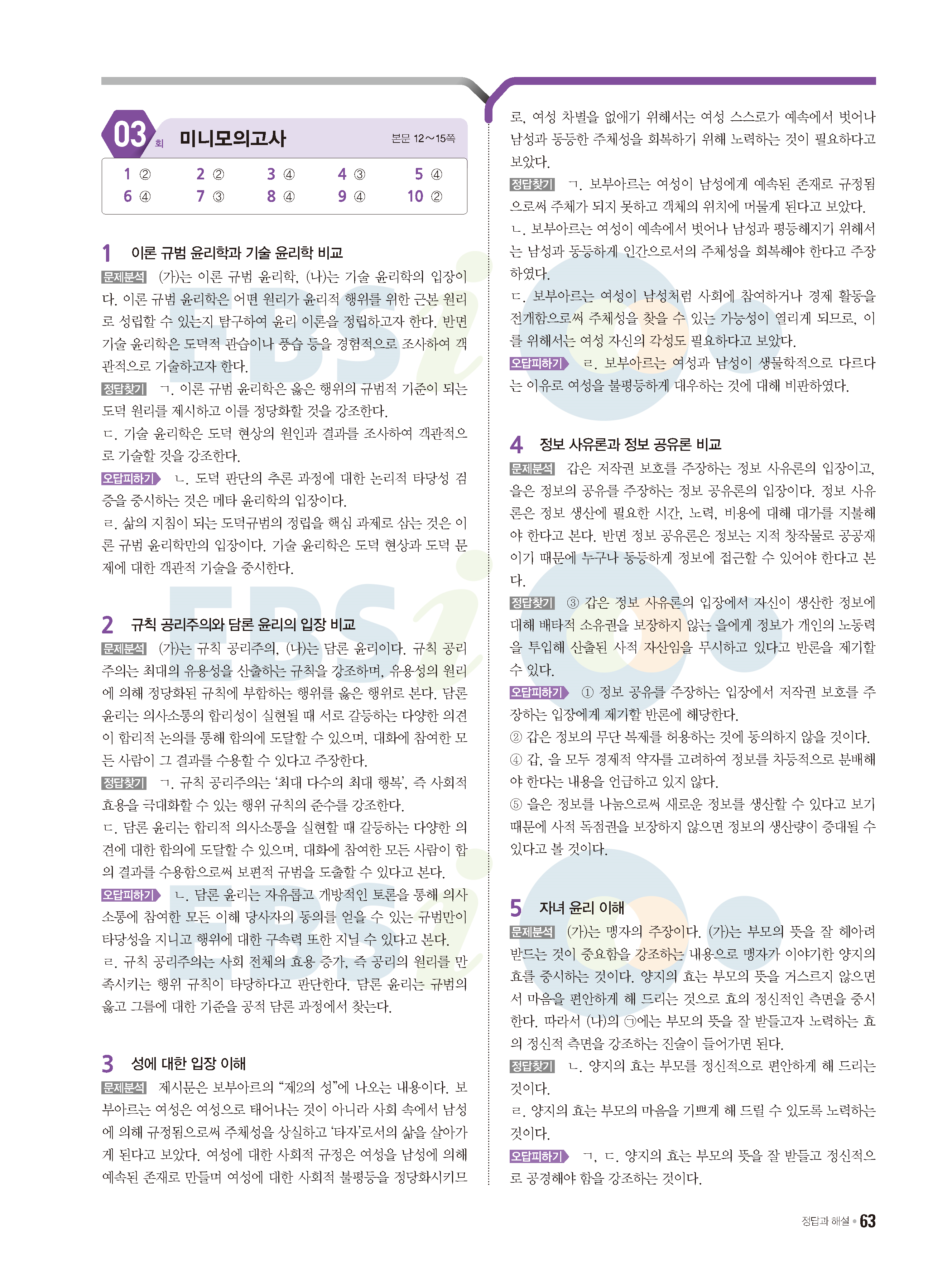 2022 EBS 수능특강큐 미니모의고사 생활과윤리 답지 해설 사진답지 모바일최적화