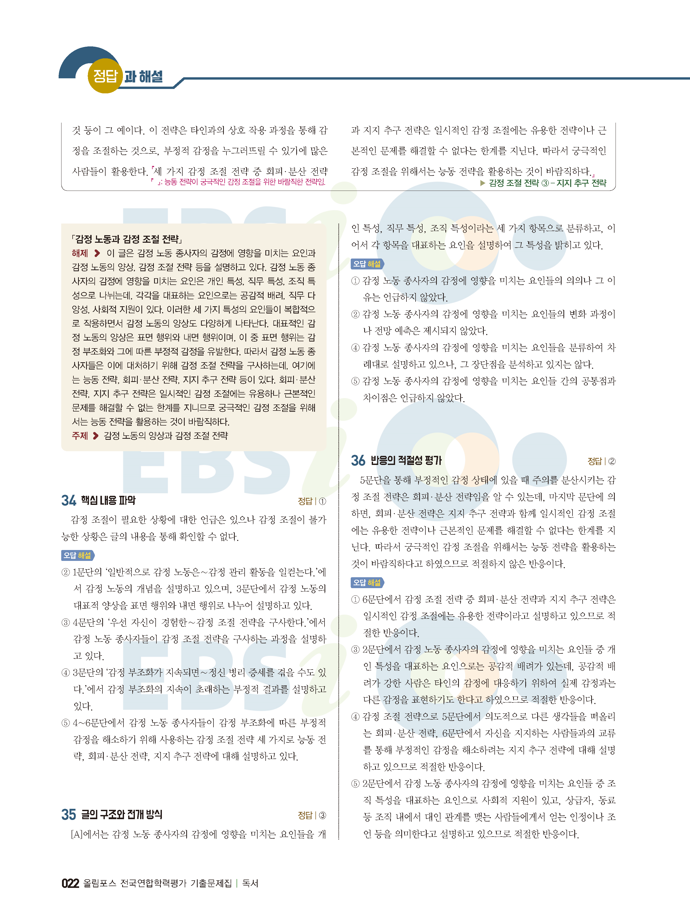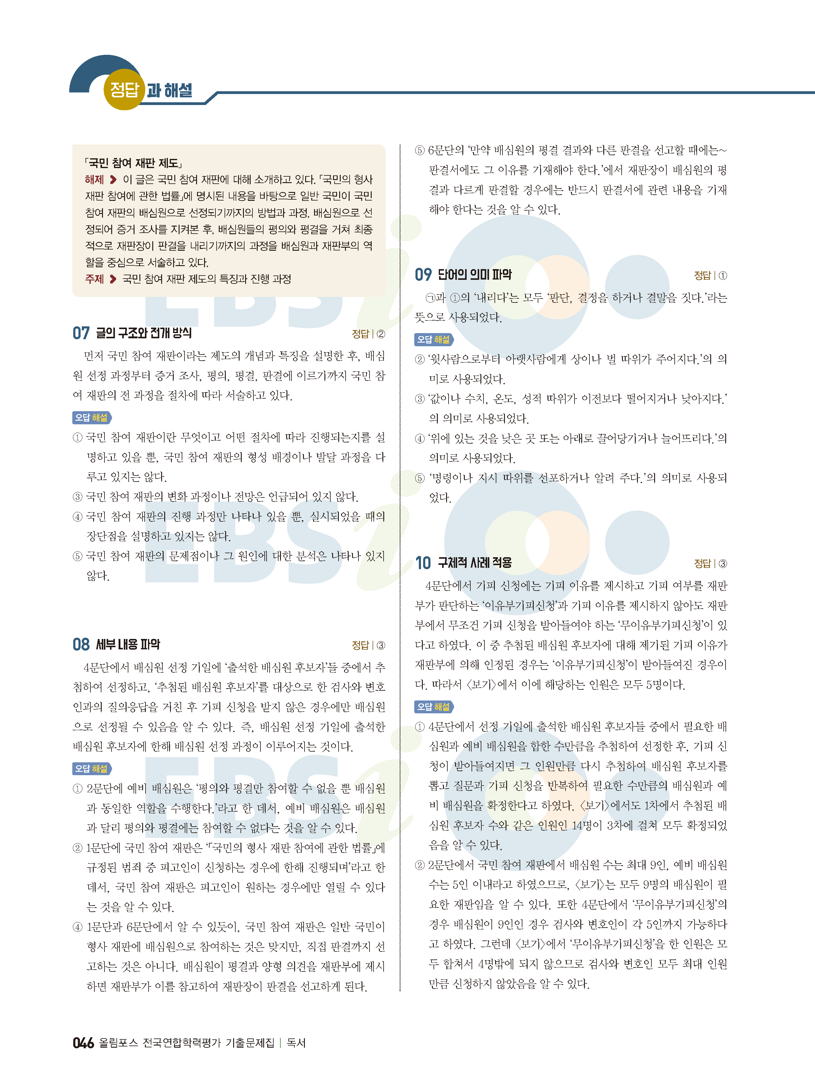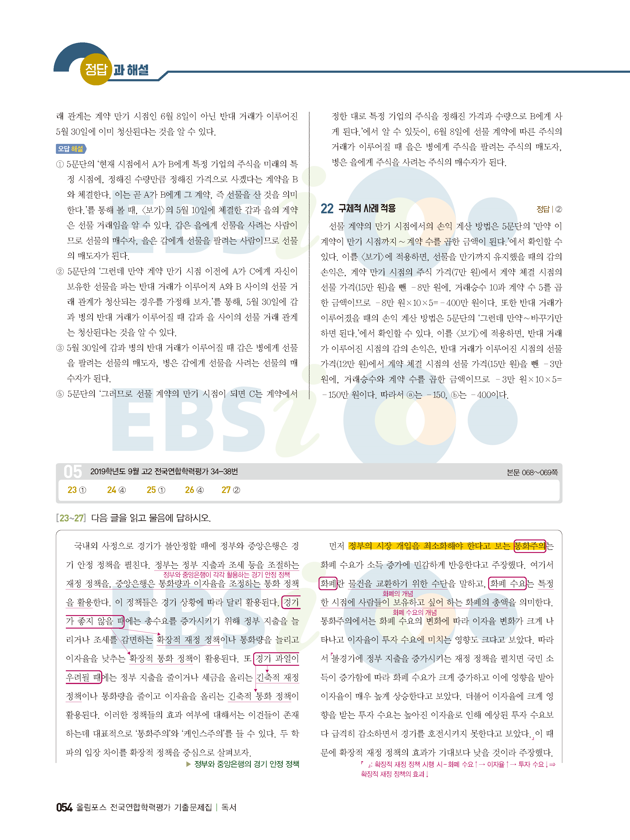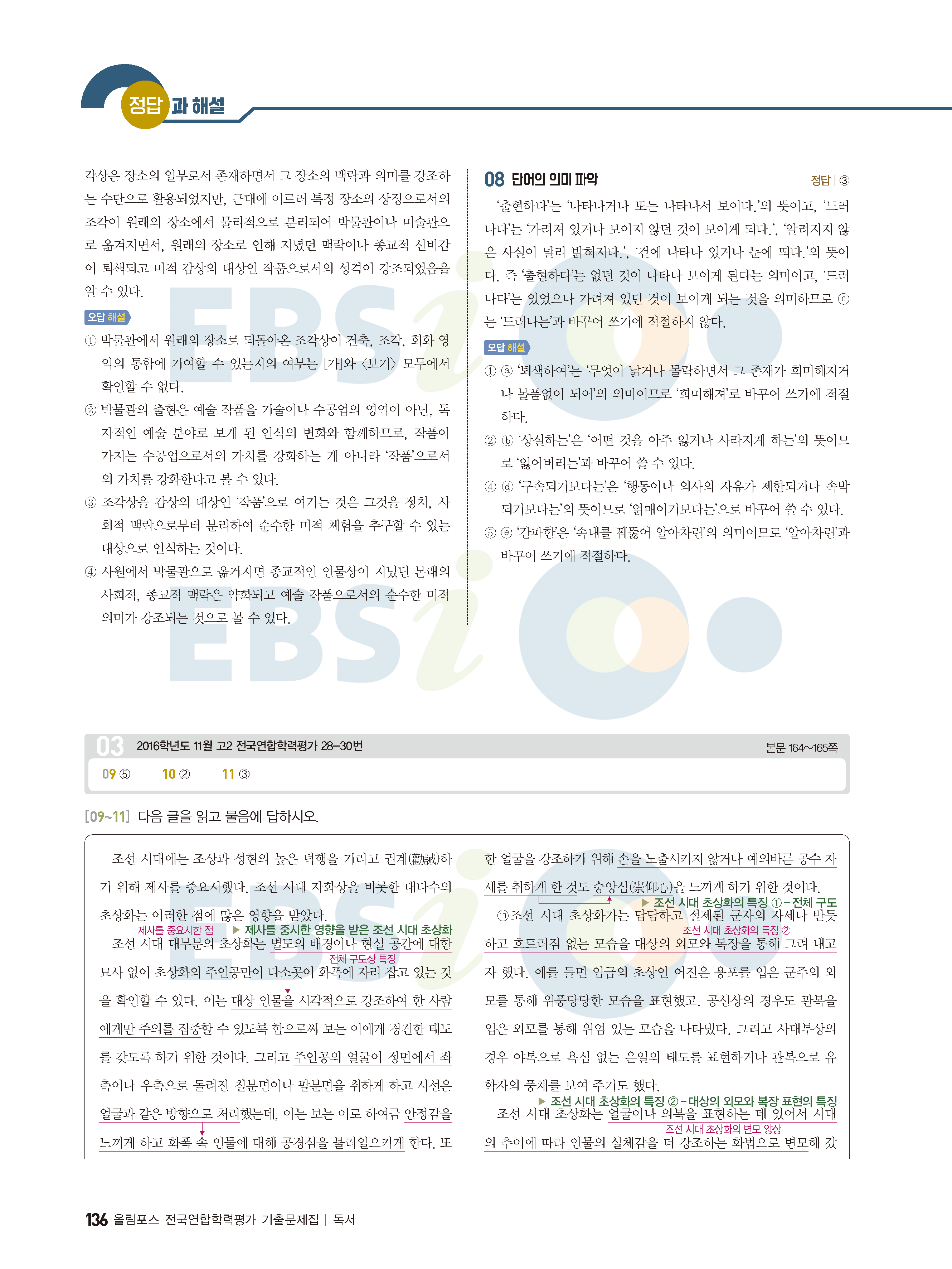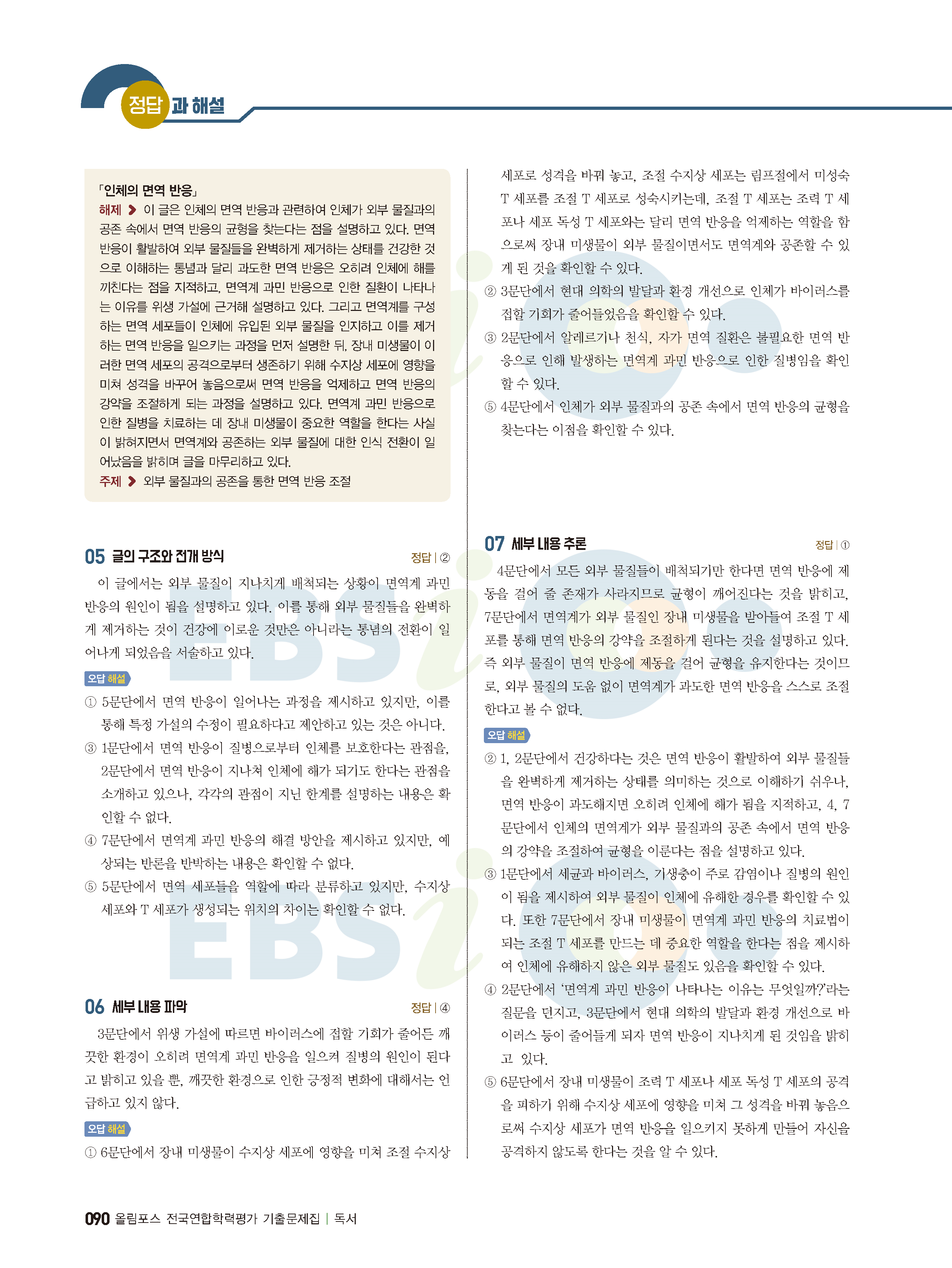 ebs 올림포스 기출문제집 독서 답지 해설지 바로보는 사진답지 빠른답지 모바일최적화