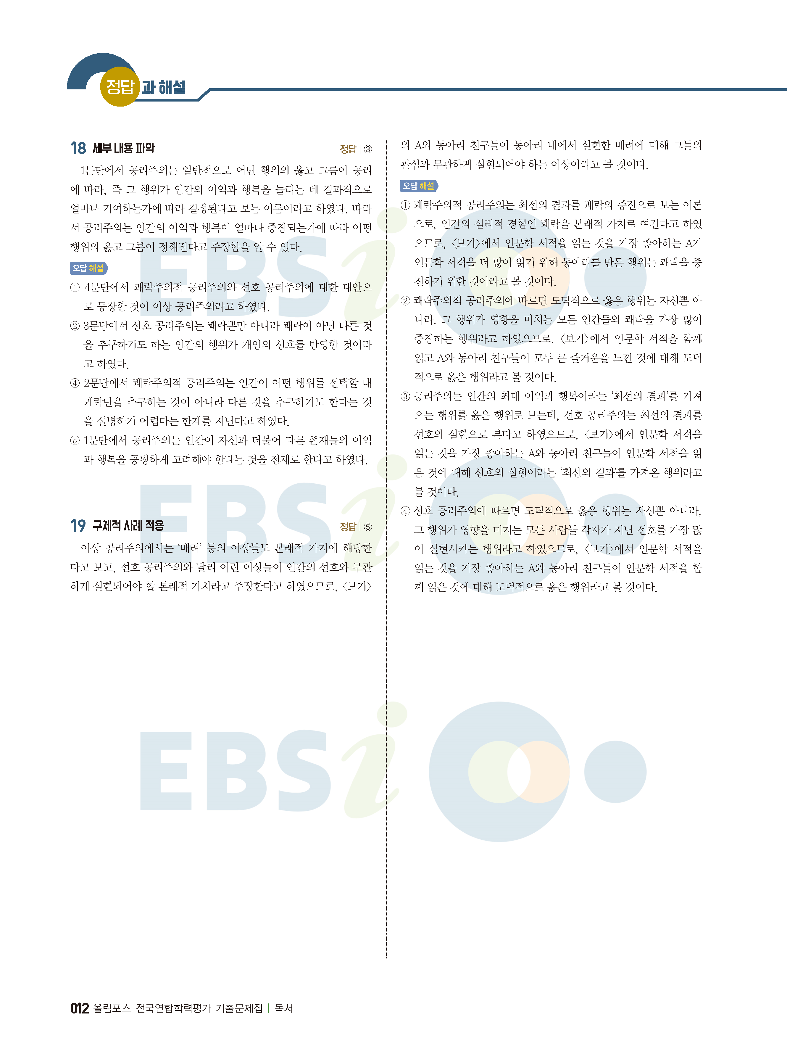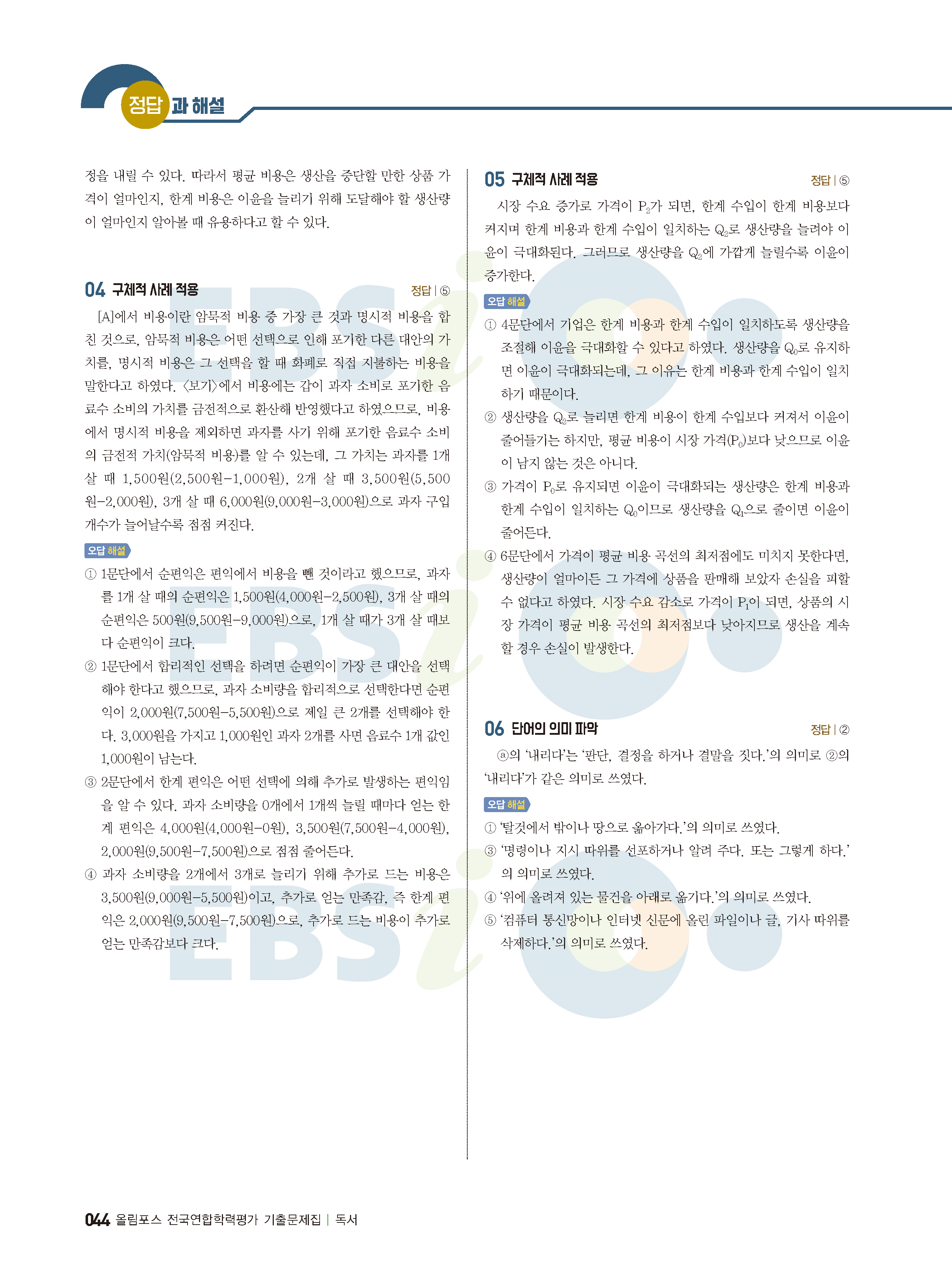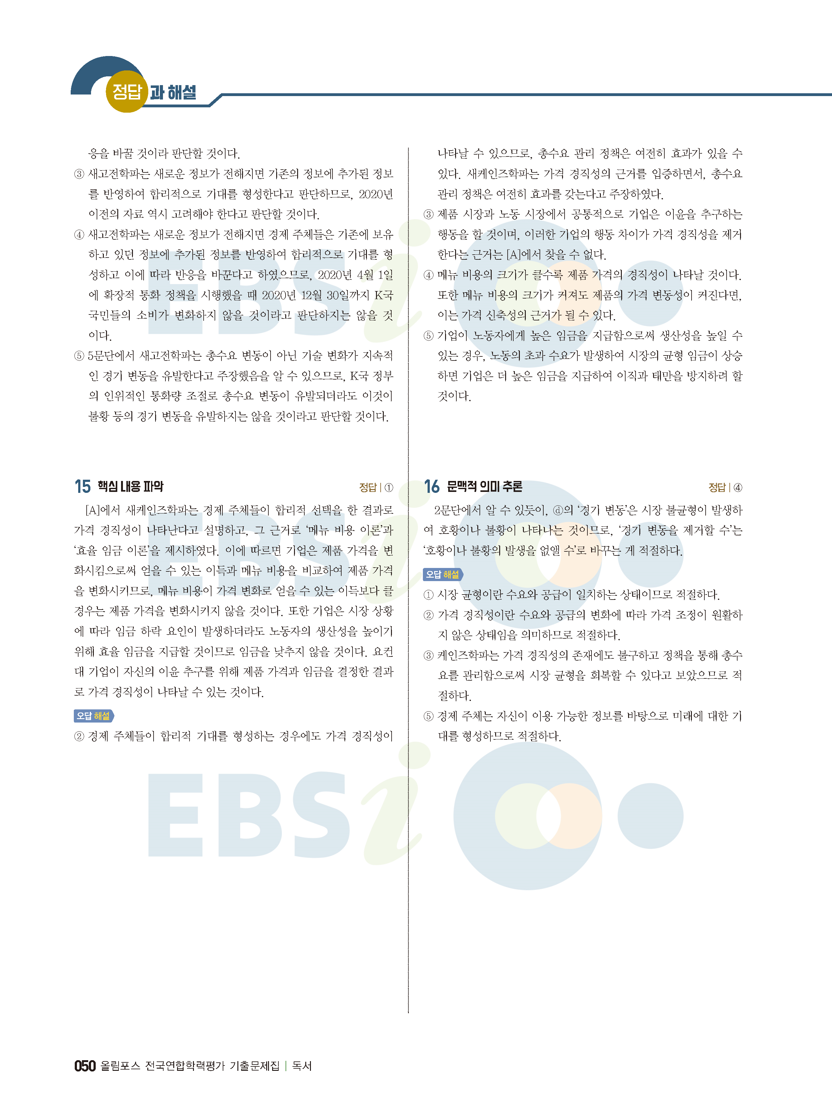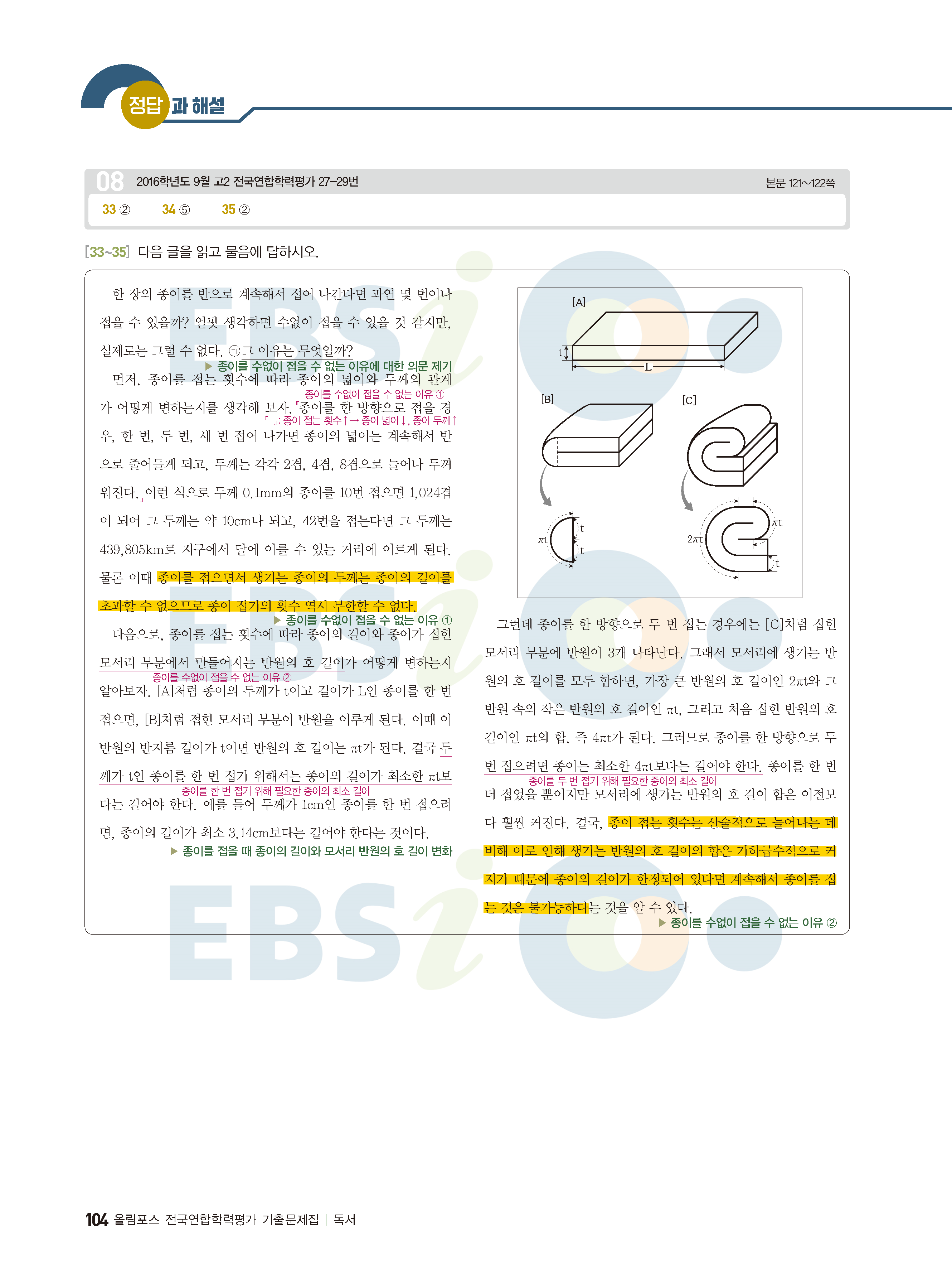 ebs 올림포스 기출문제집 독서 답지 해설지 바로보는 사진답지 빠른답지 모바일최적화