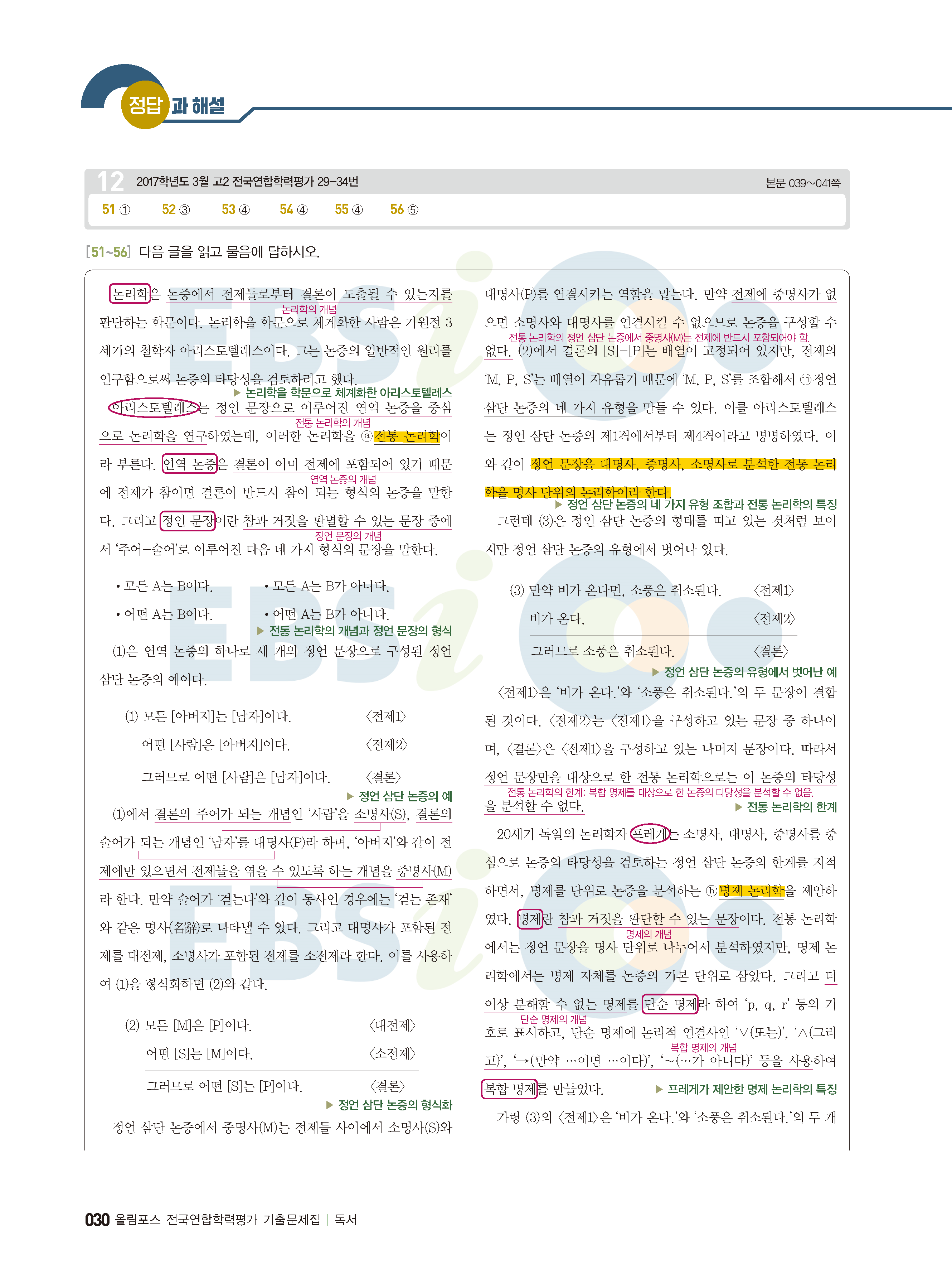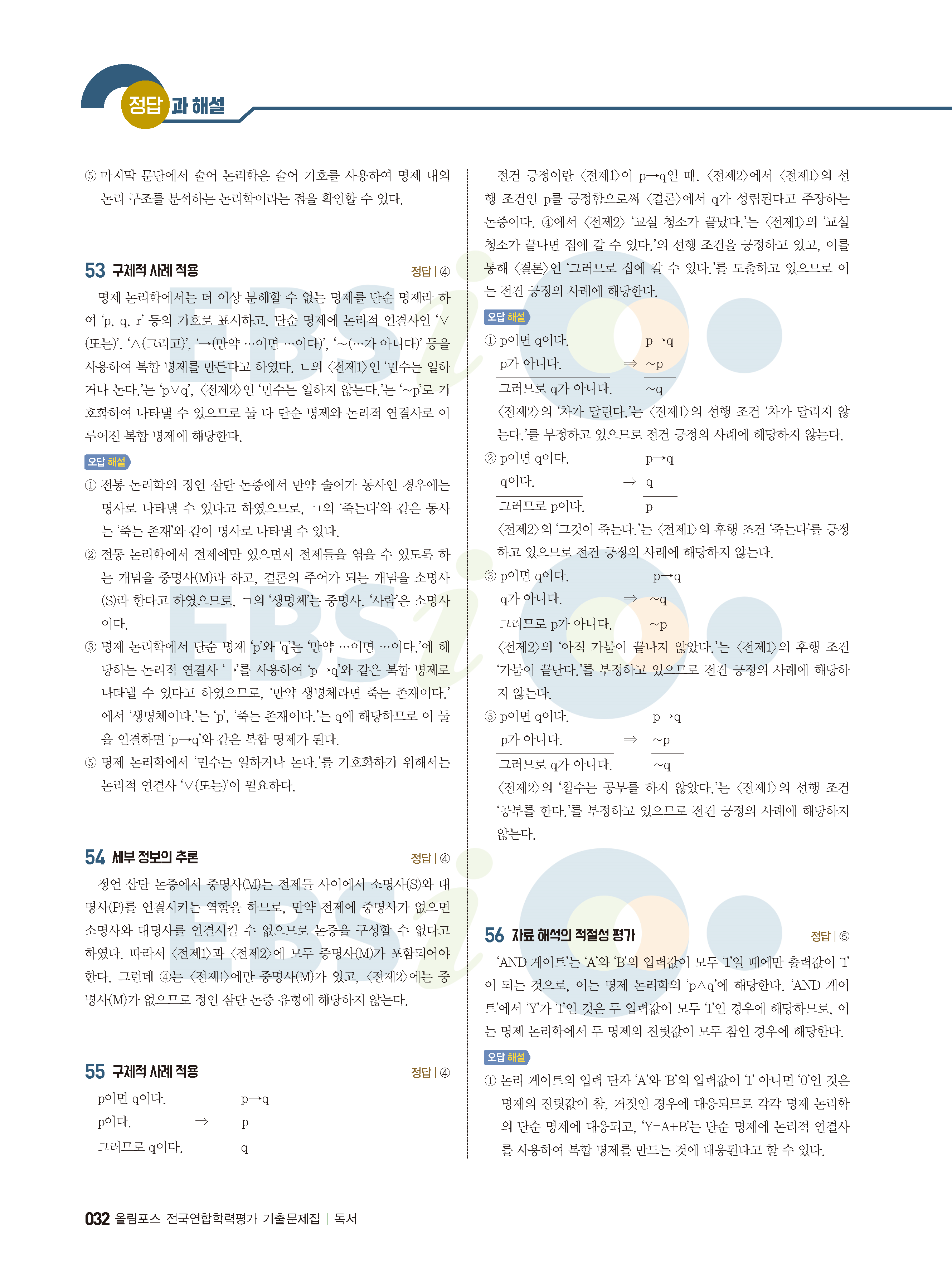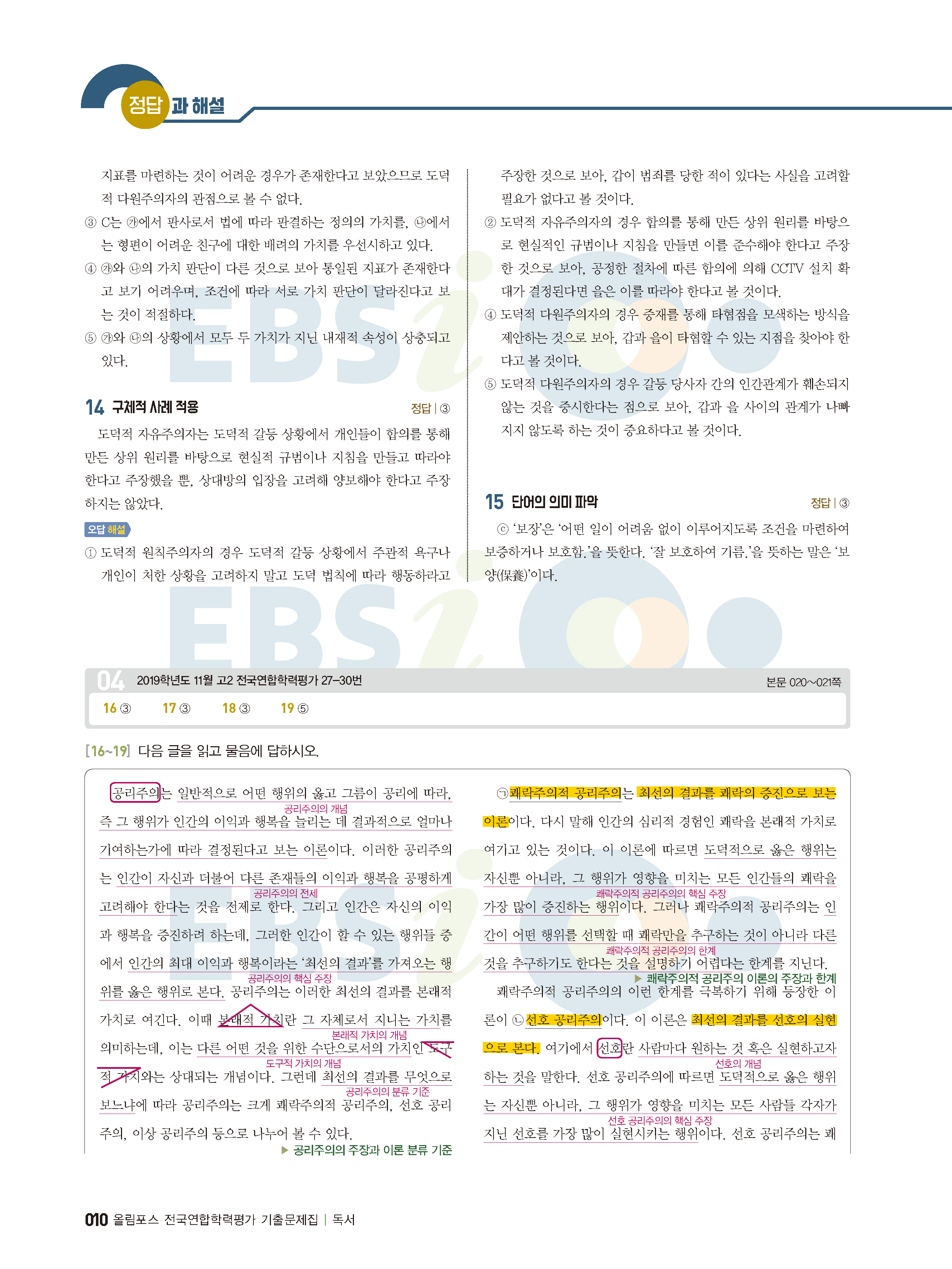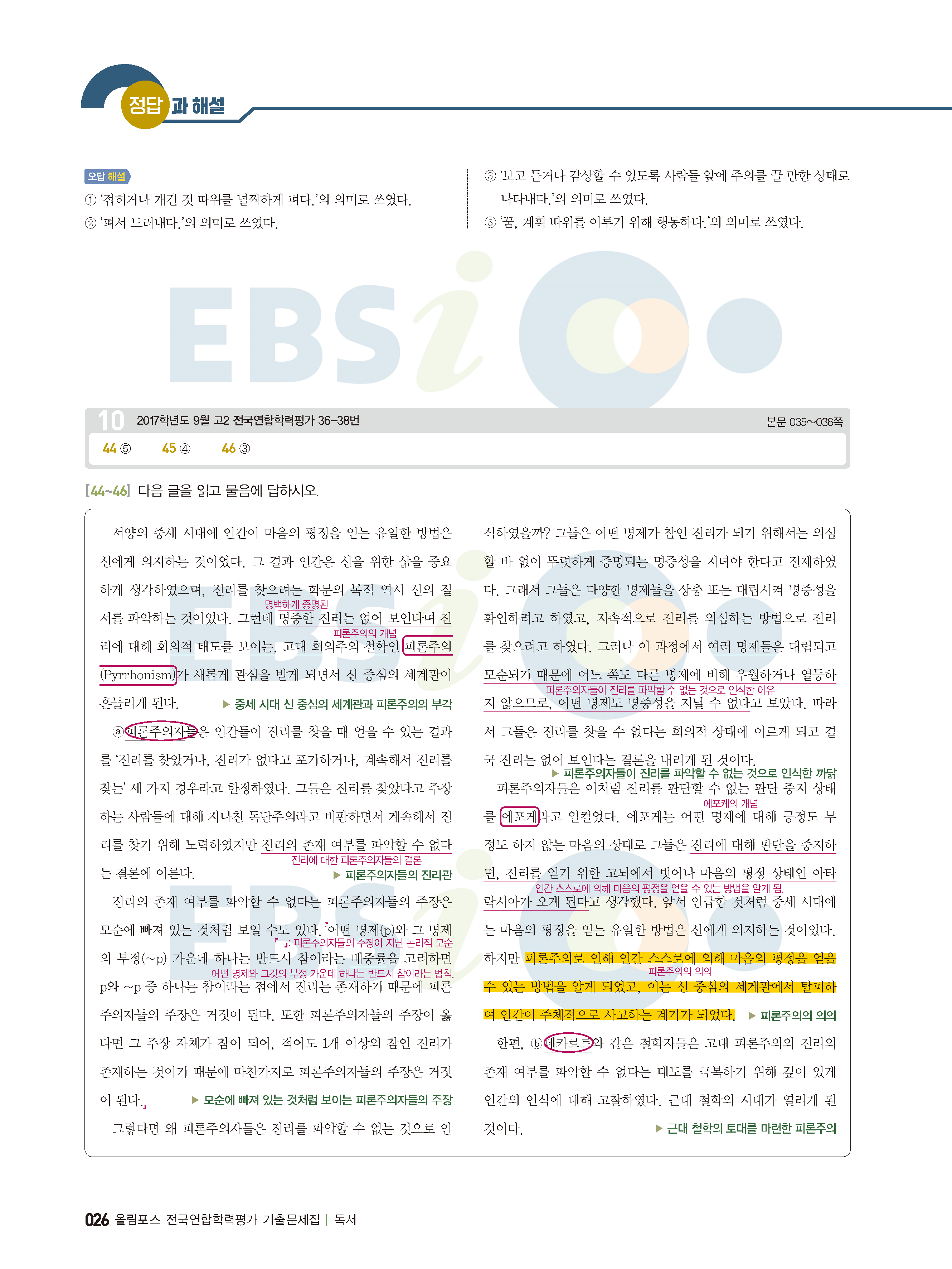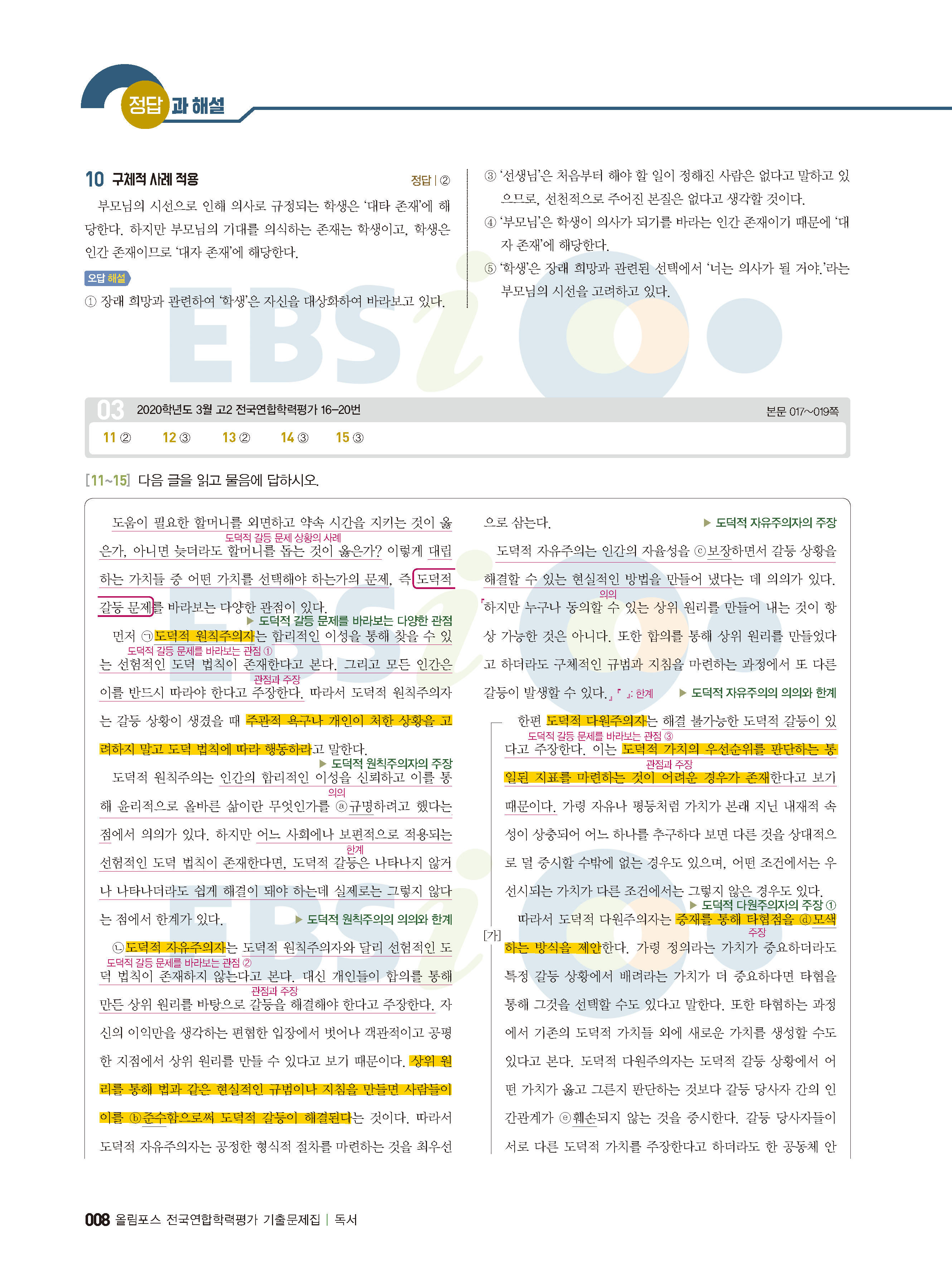 ebs 올림포스 기출문제집 독서 답지 해설지 바로보는 사진답지 빠른답지 모바일최적화