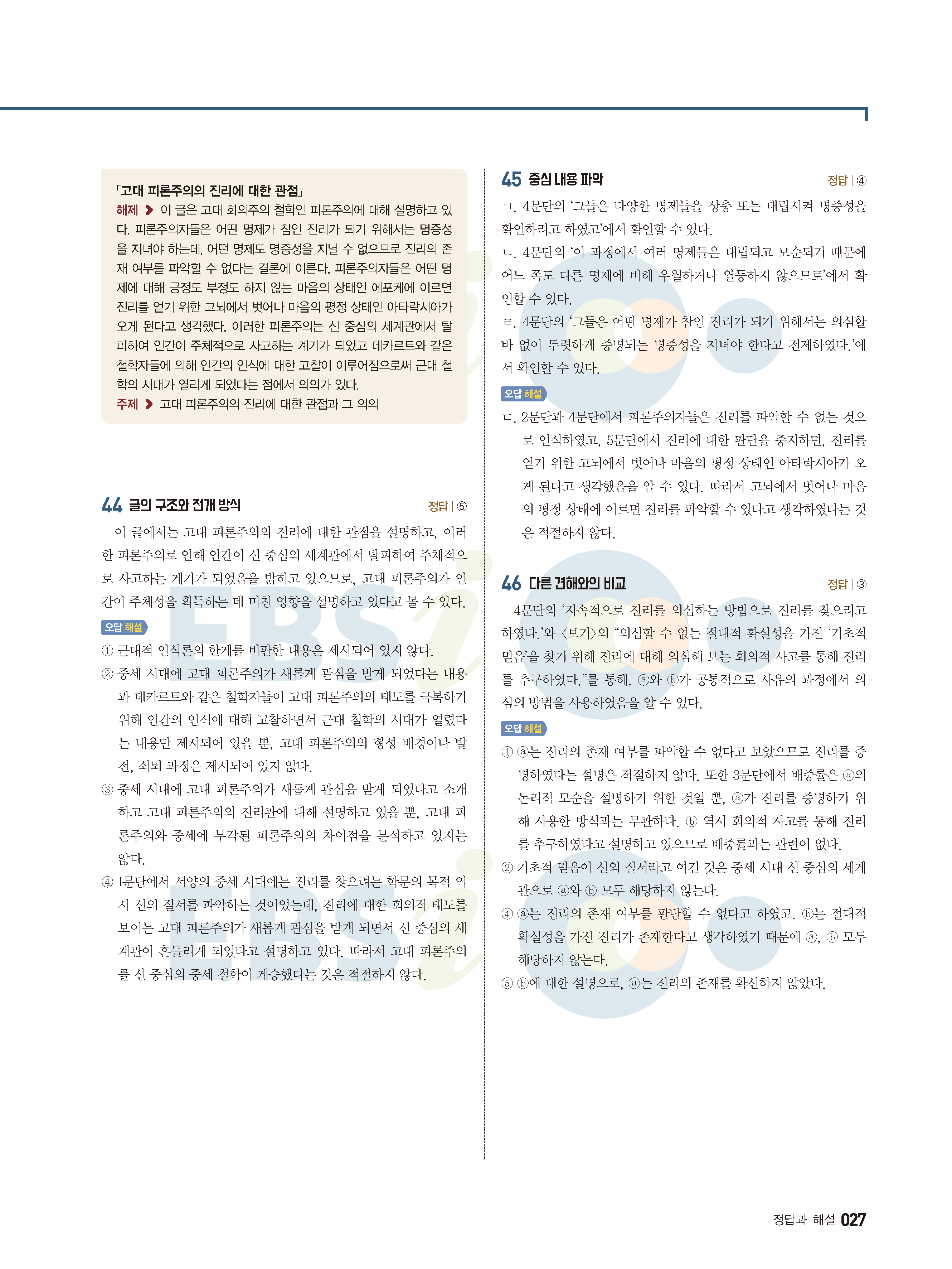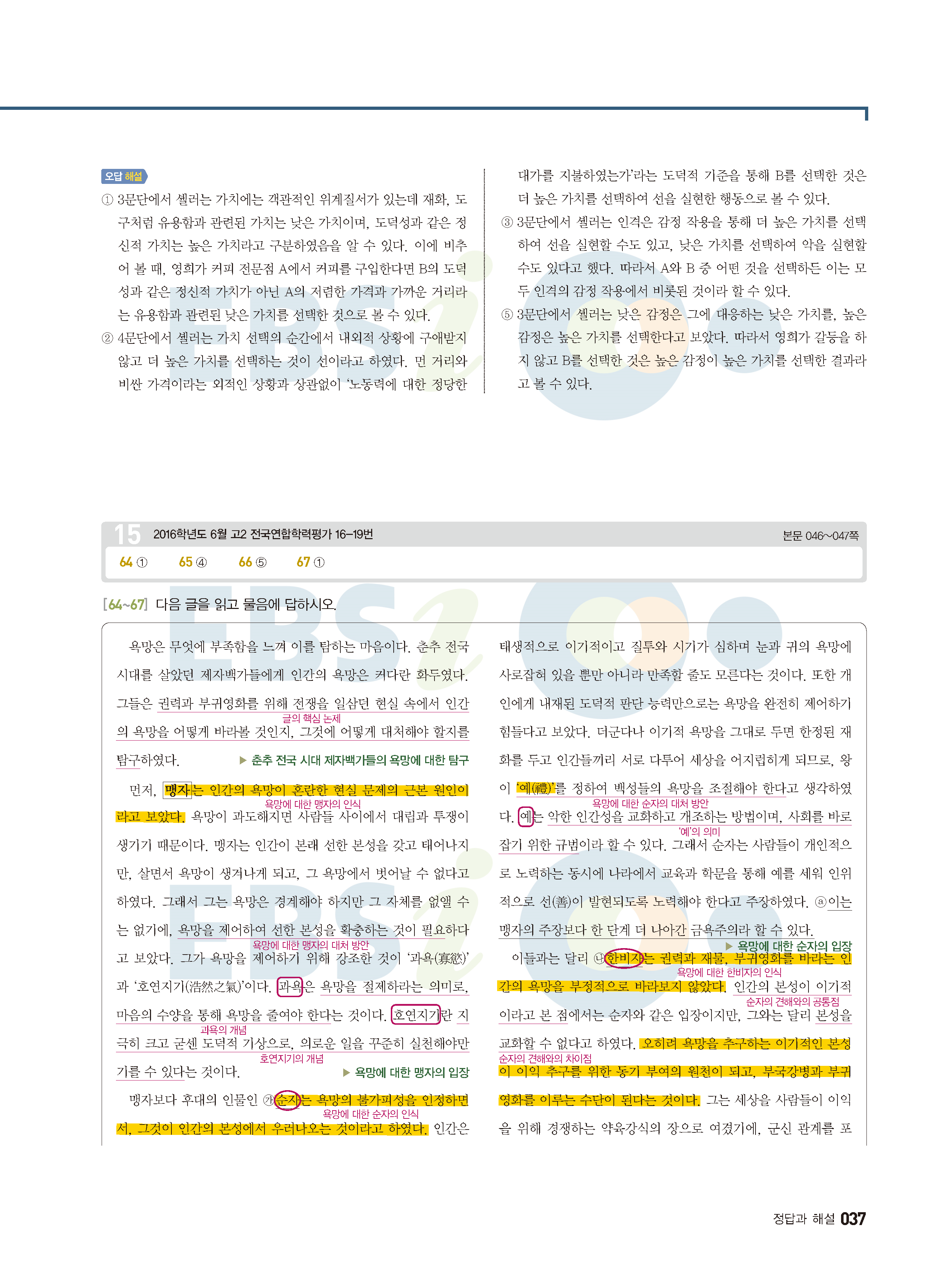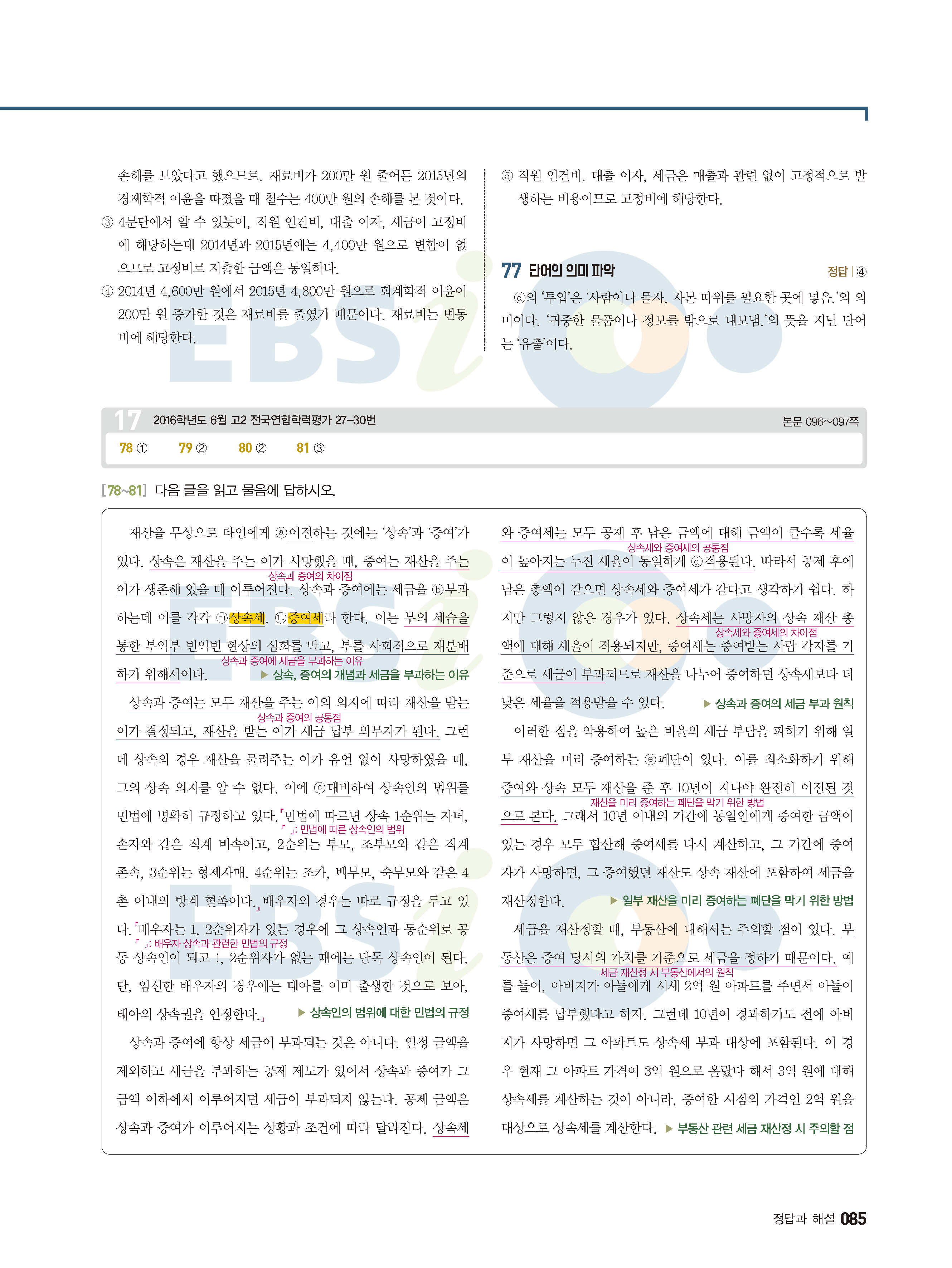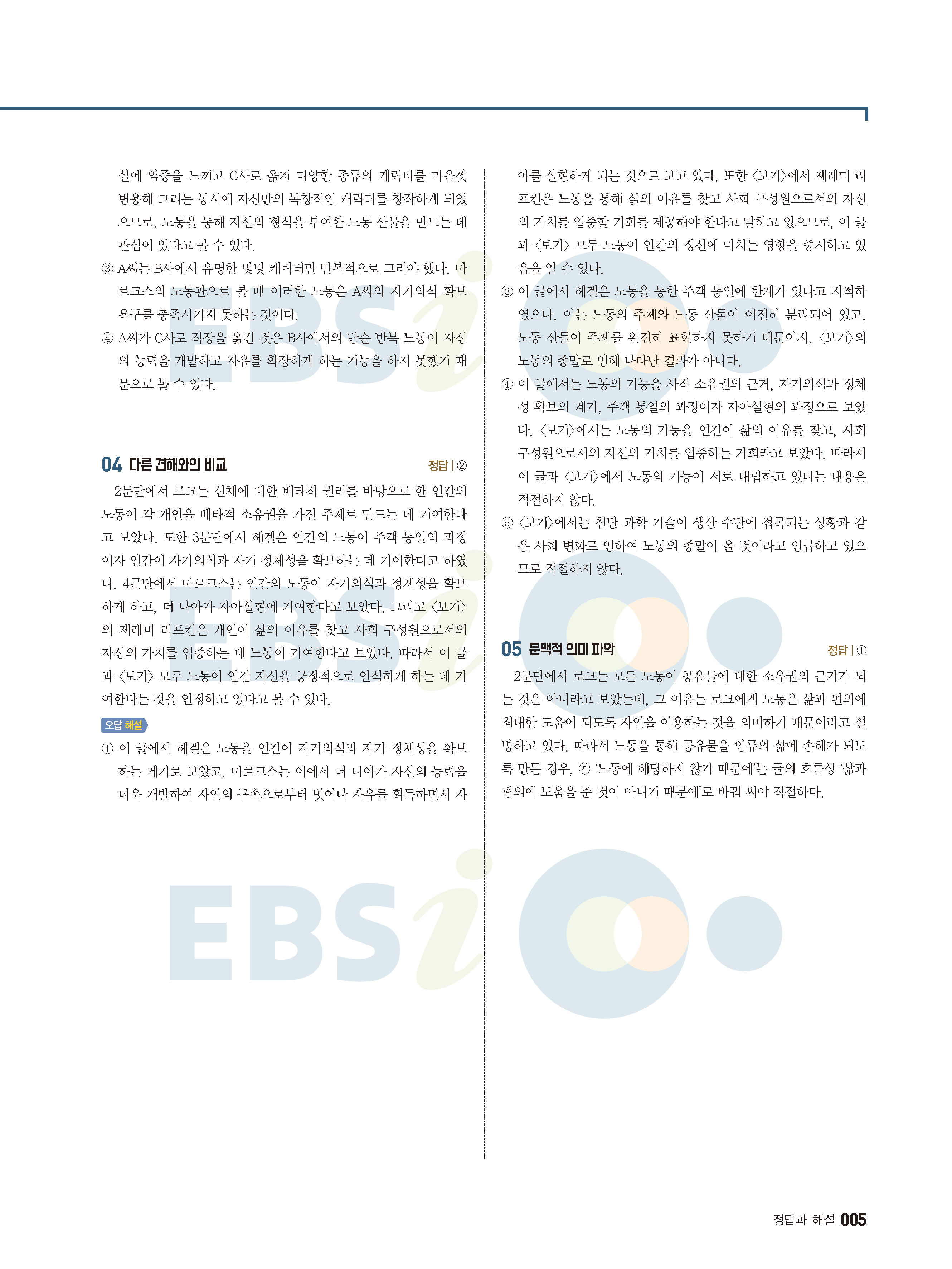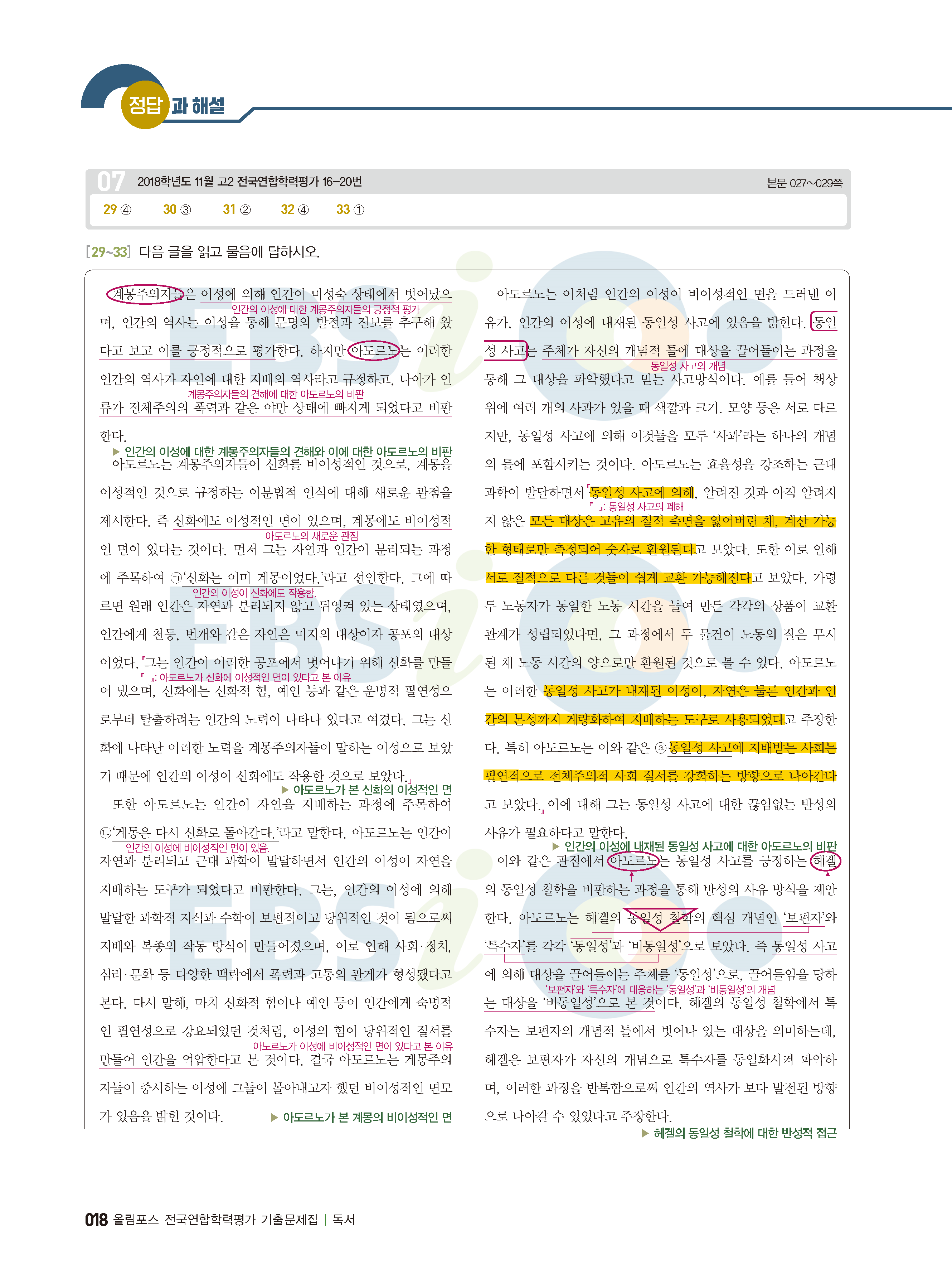 ebs 올림포스 기출문제집 독서 답지 해설지 바로보는 사진답지 빠른답지 모바일최적화